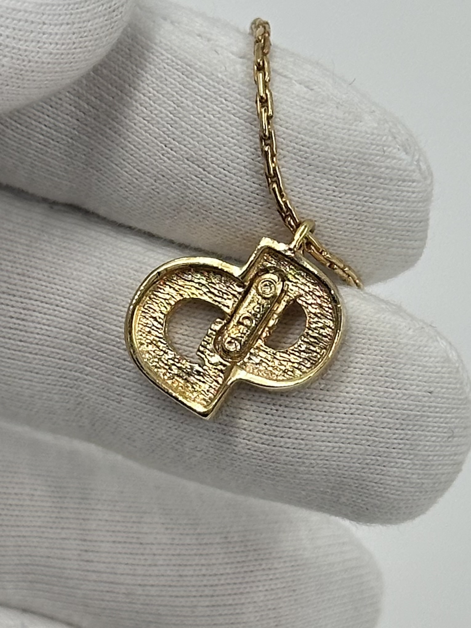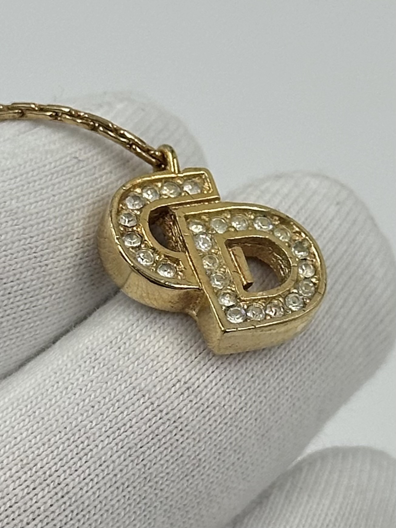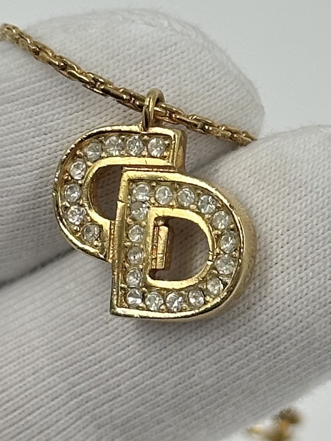 Бижутерный сплав, позолота, кристаллы. На подвеске присутствует незначительный скол покрытия.