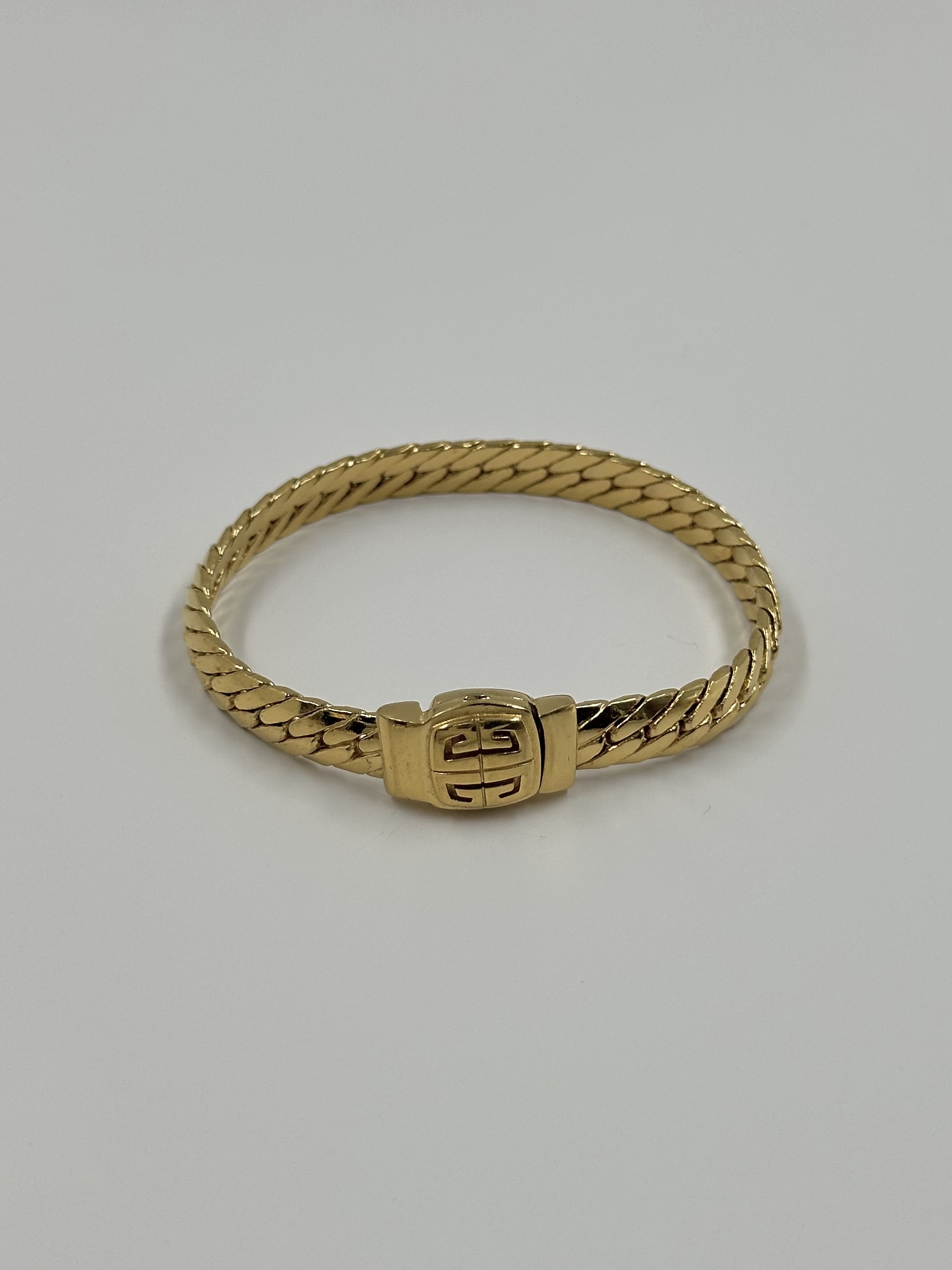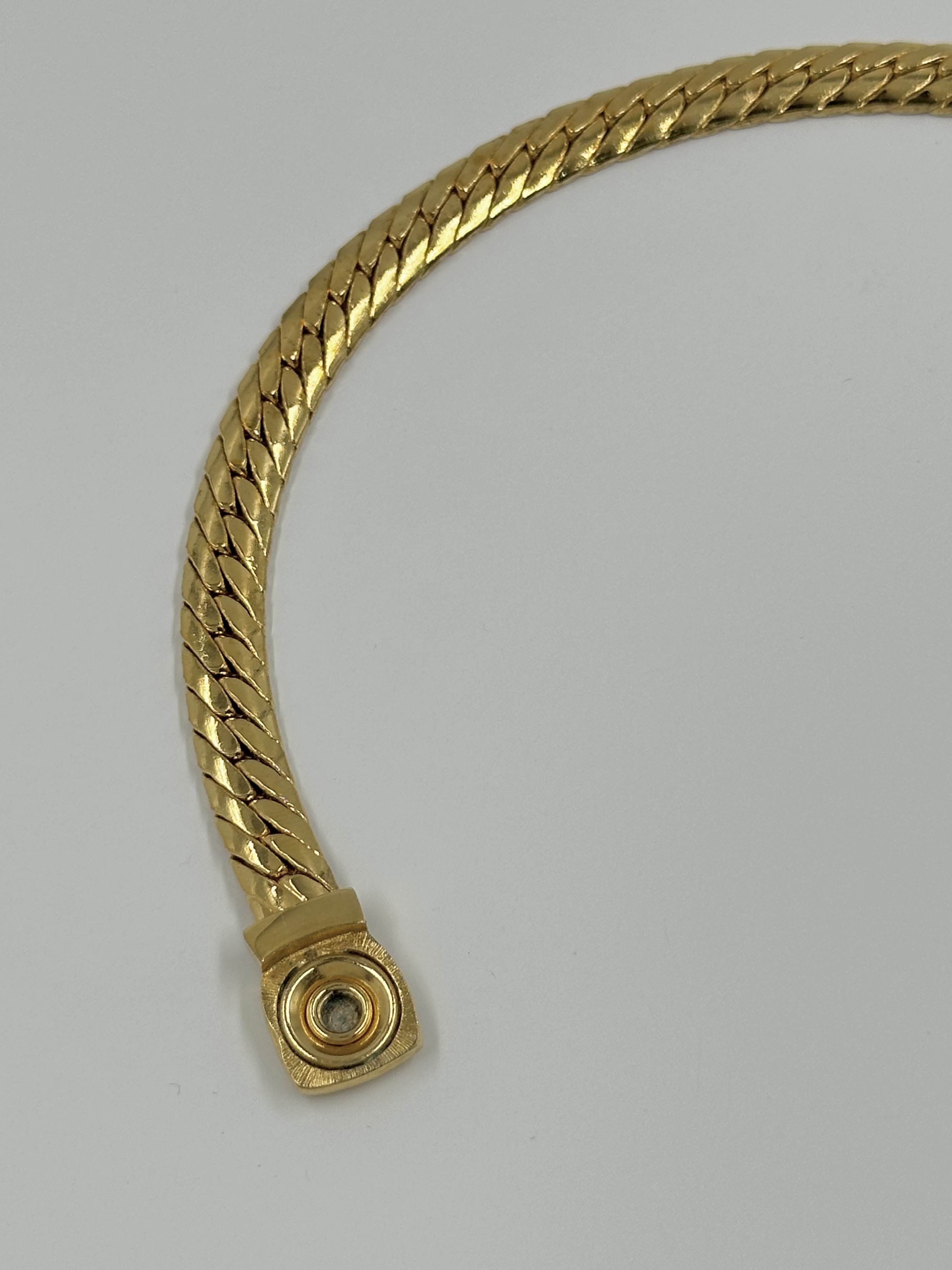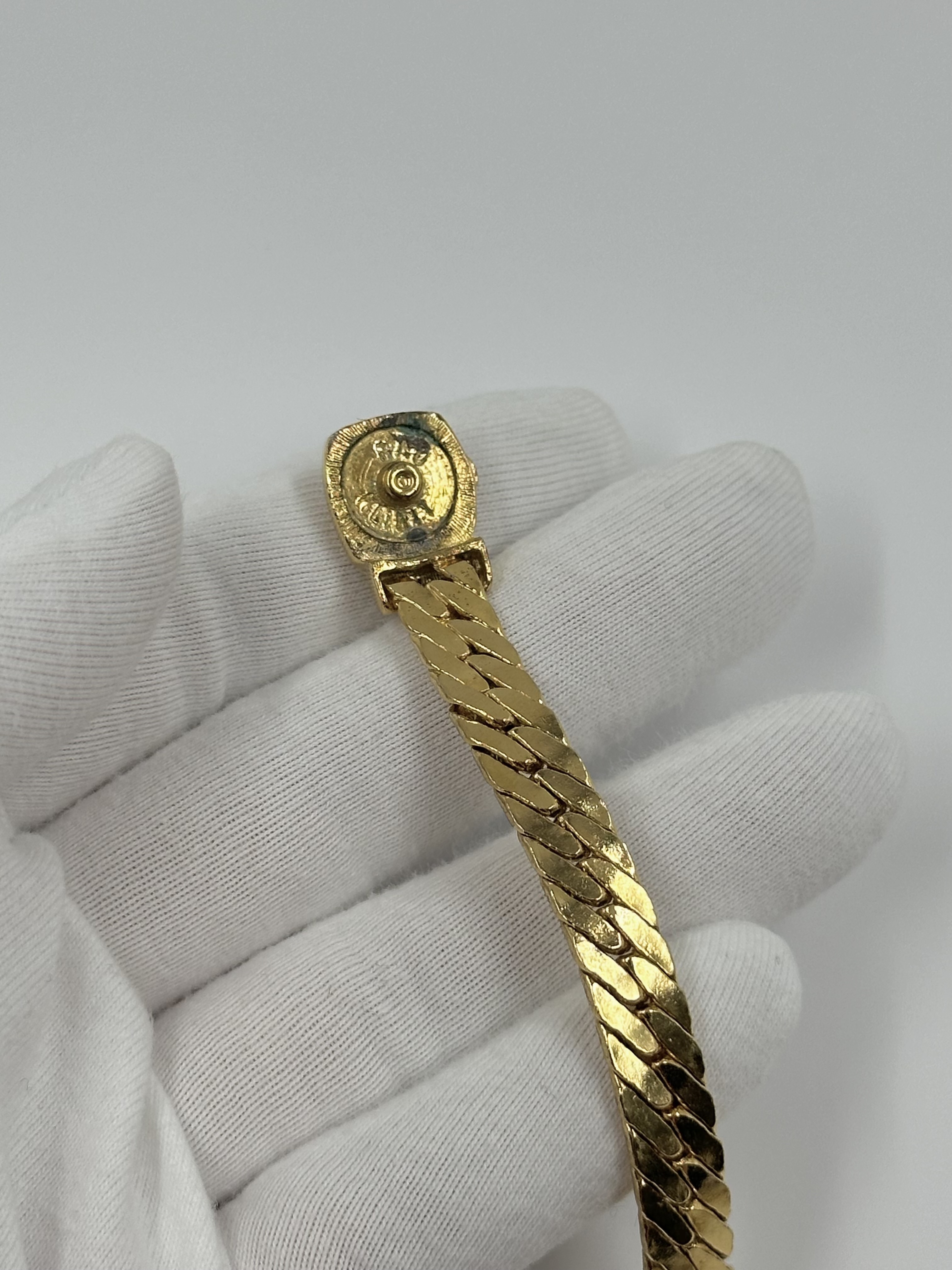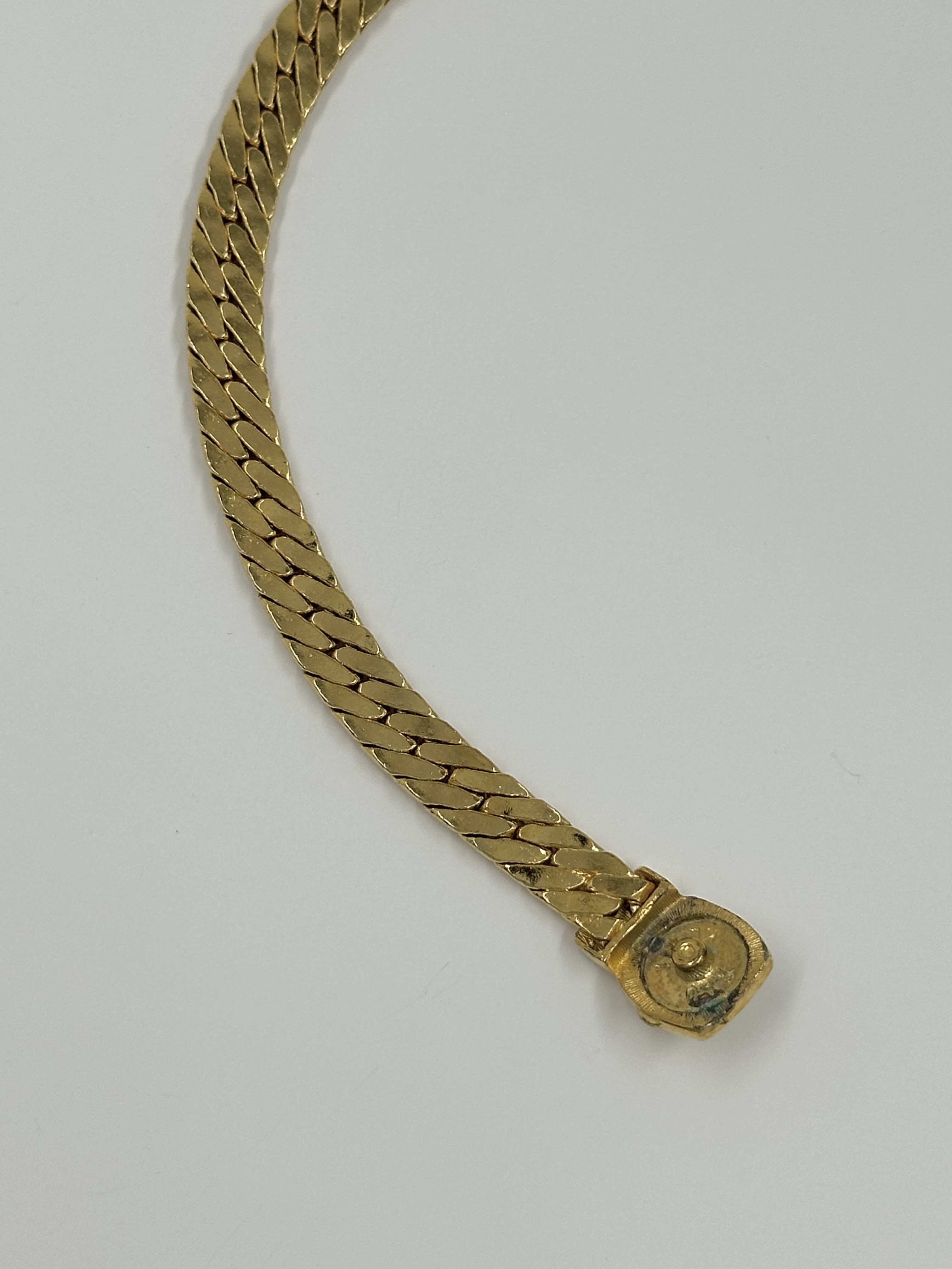 Бижутерный сплав, позолота. На внутренней стороны замка парисутствует патина. Длина 18,4см.
