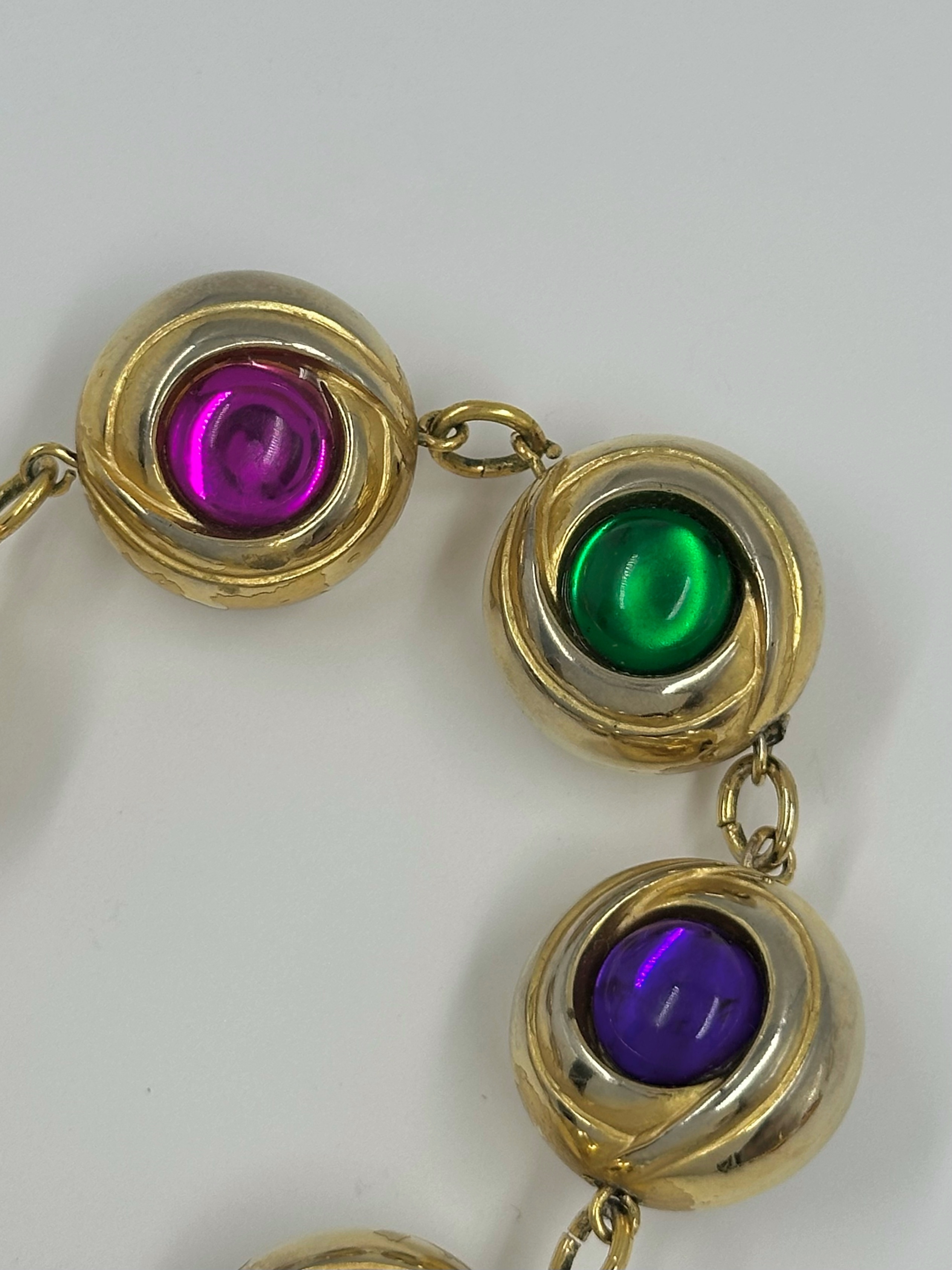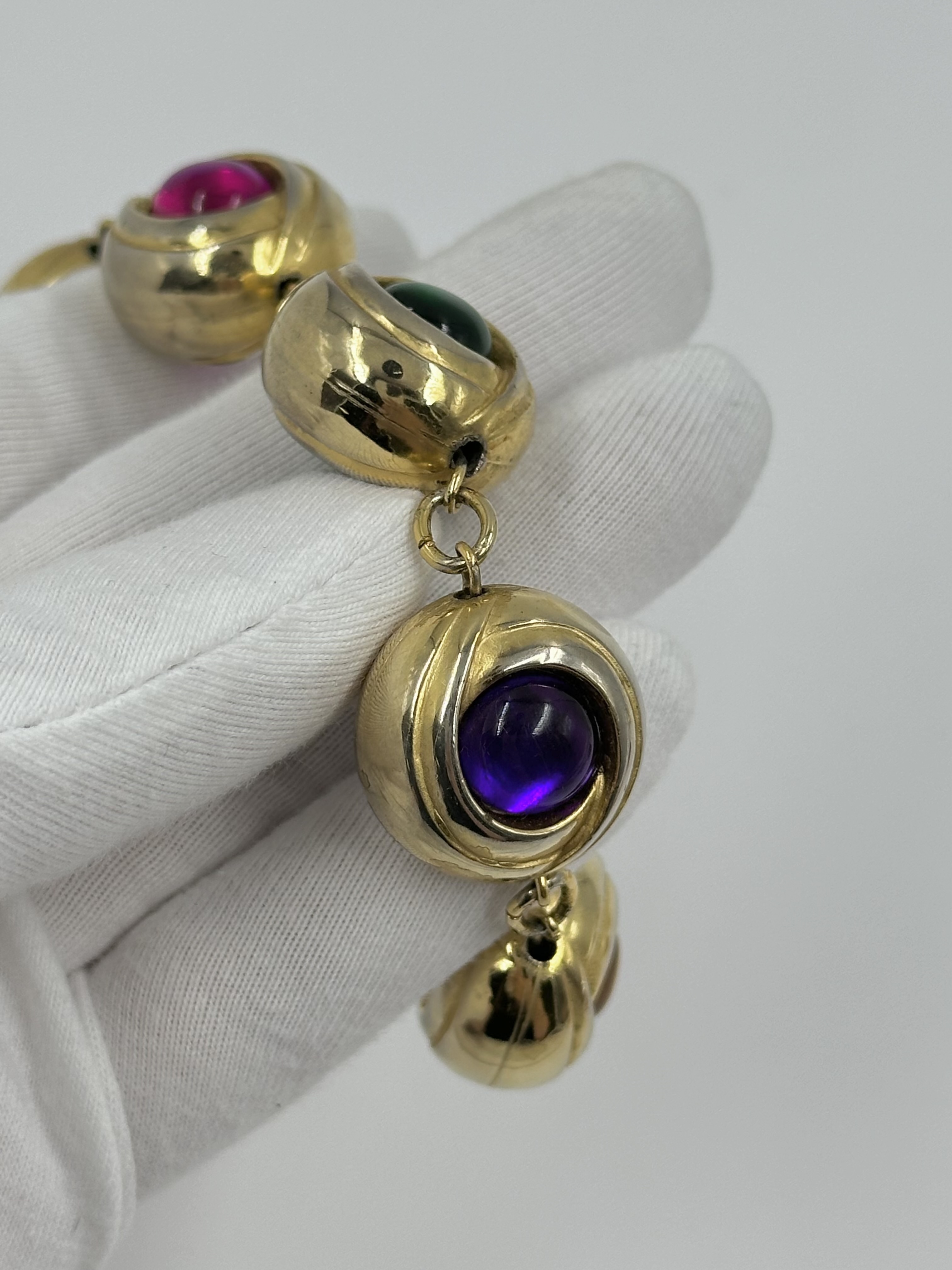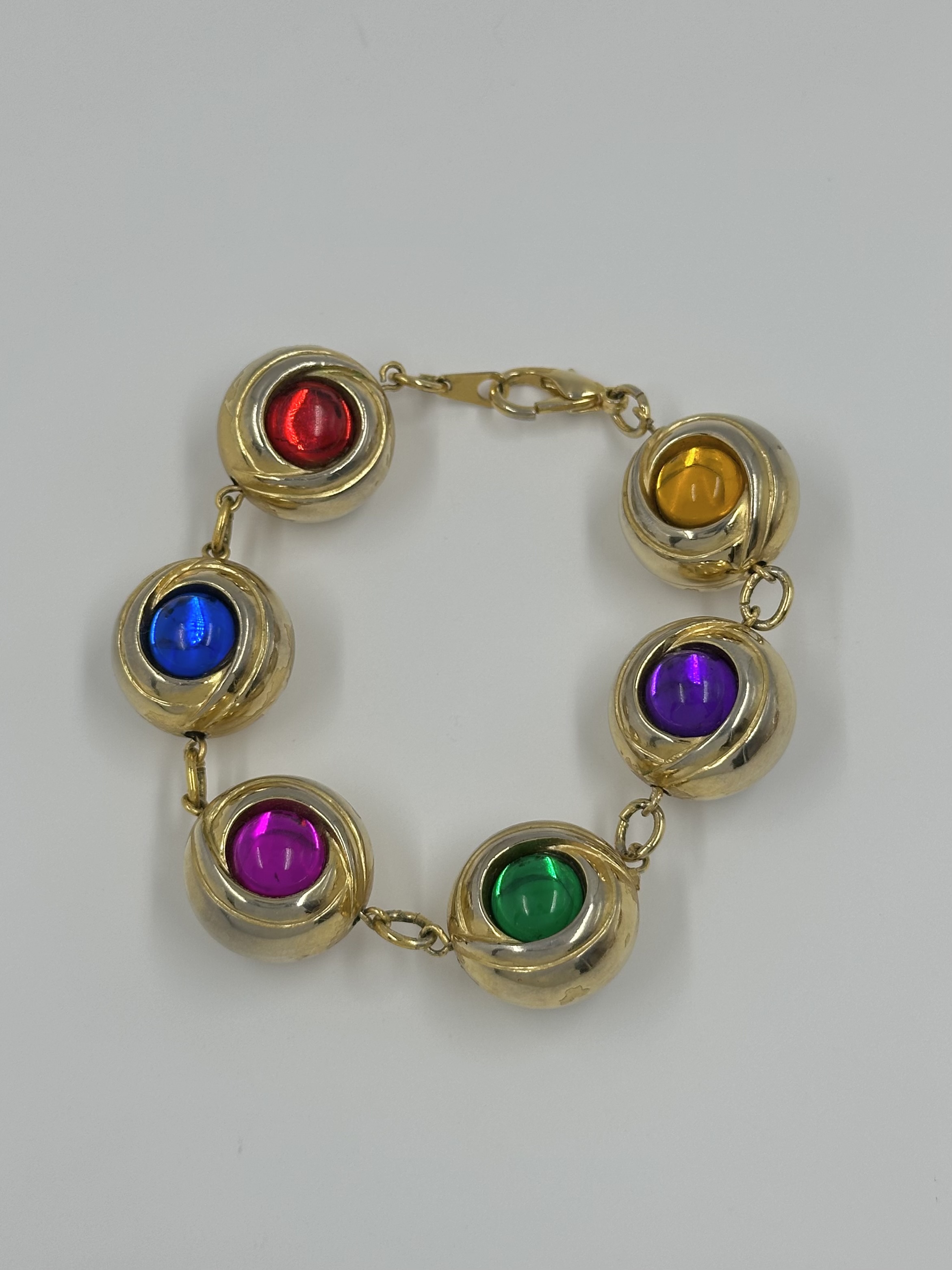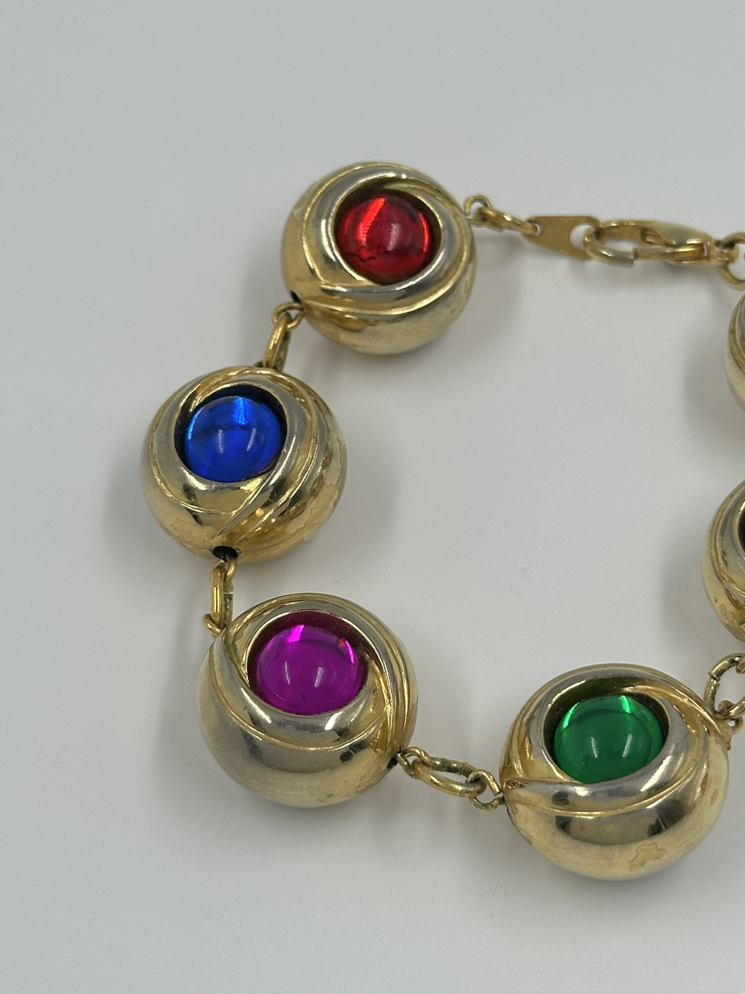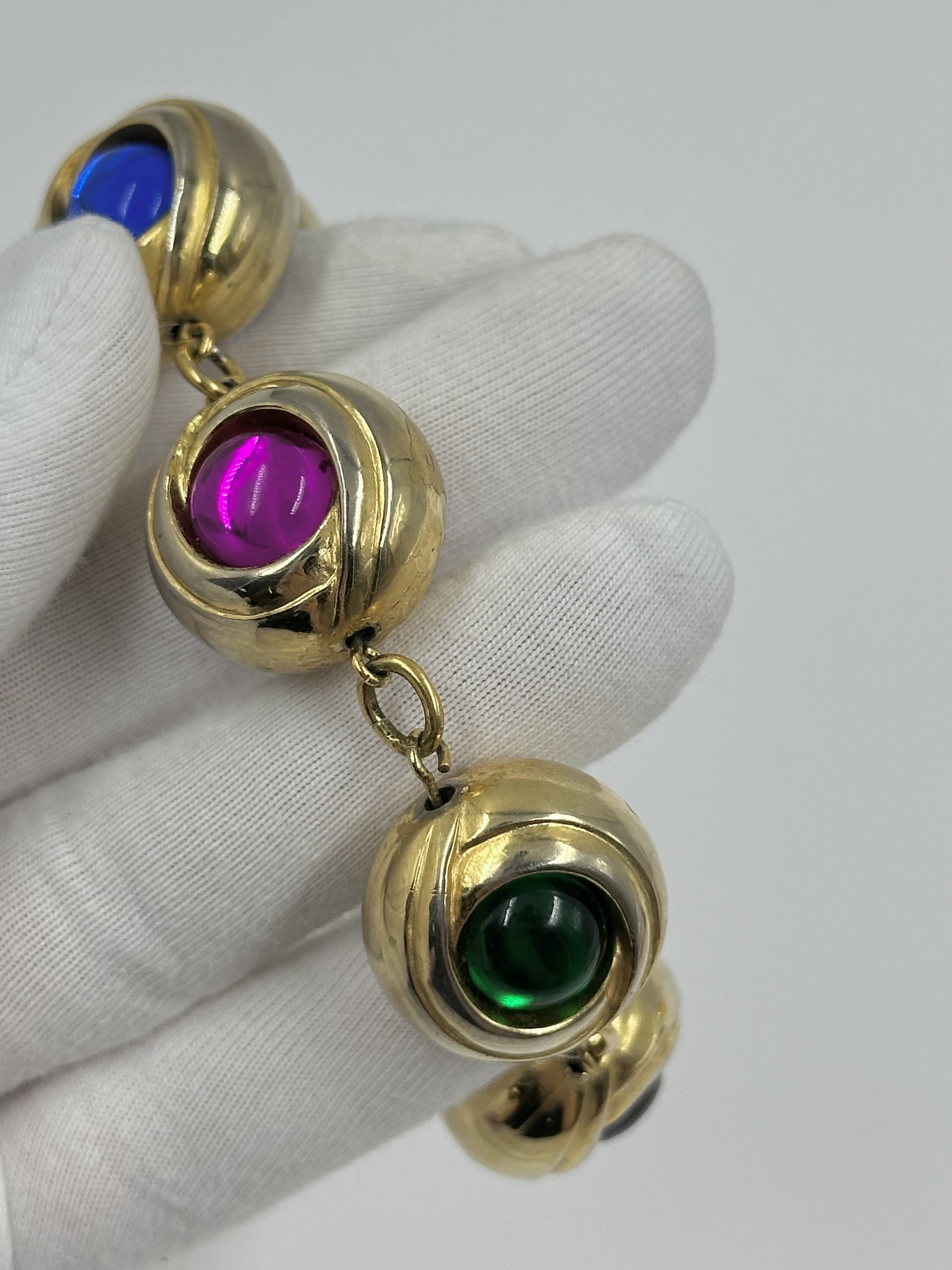 Бижутерный сплав, пластик. Присутствуют потертости, сходы покрытия. На запястье до 17,5см.