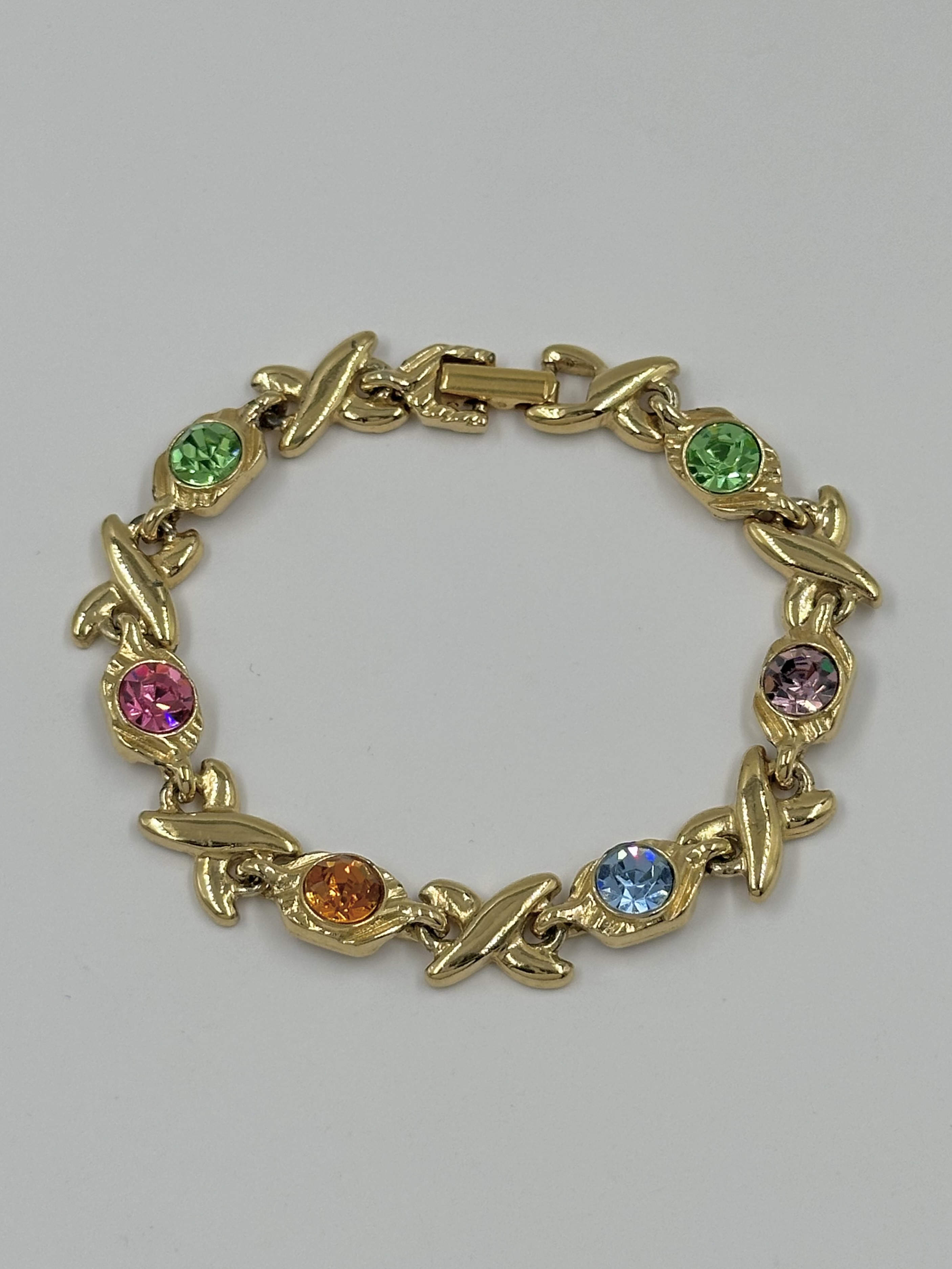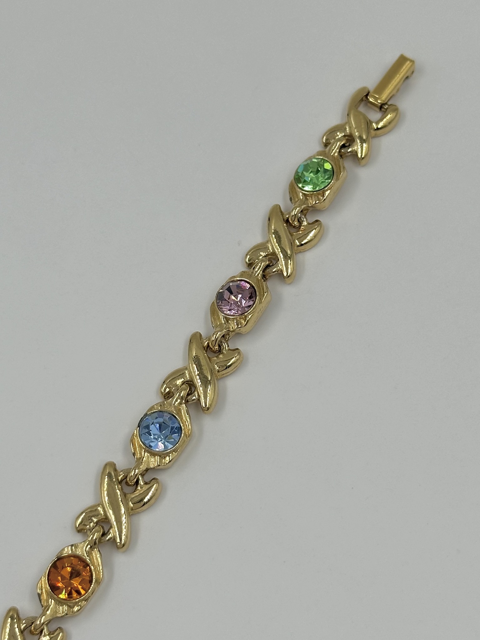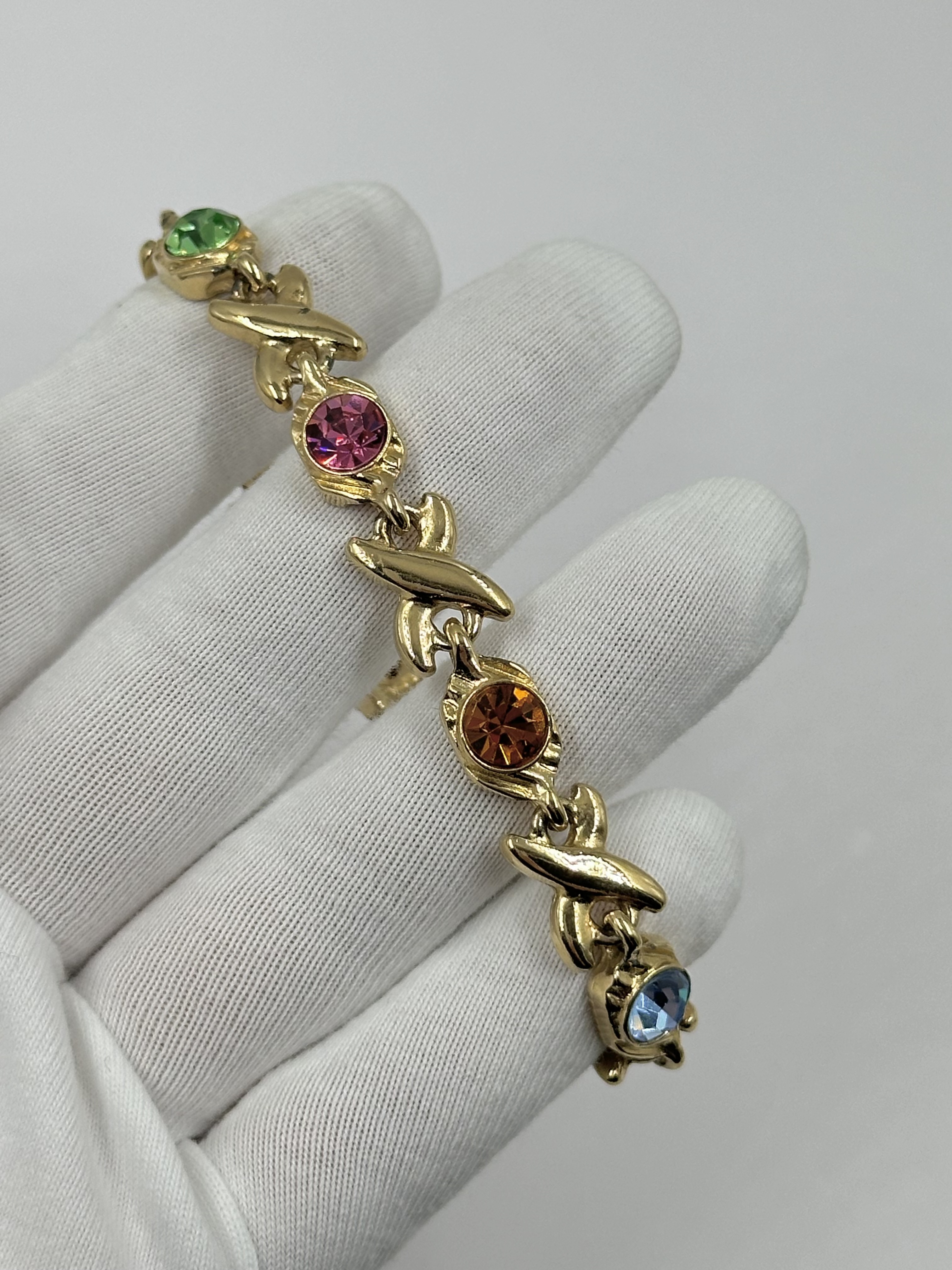 Бижутерный сплав, кристаллы. Присутствуют небольшие сколы покрытия. Длина 18см.