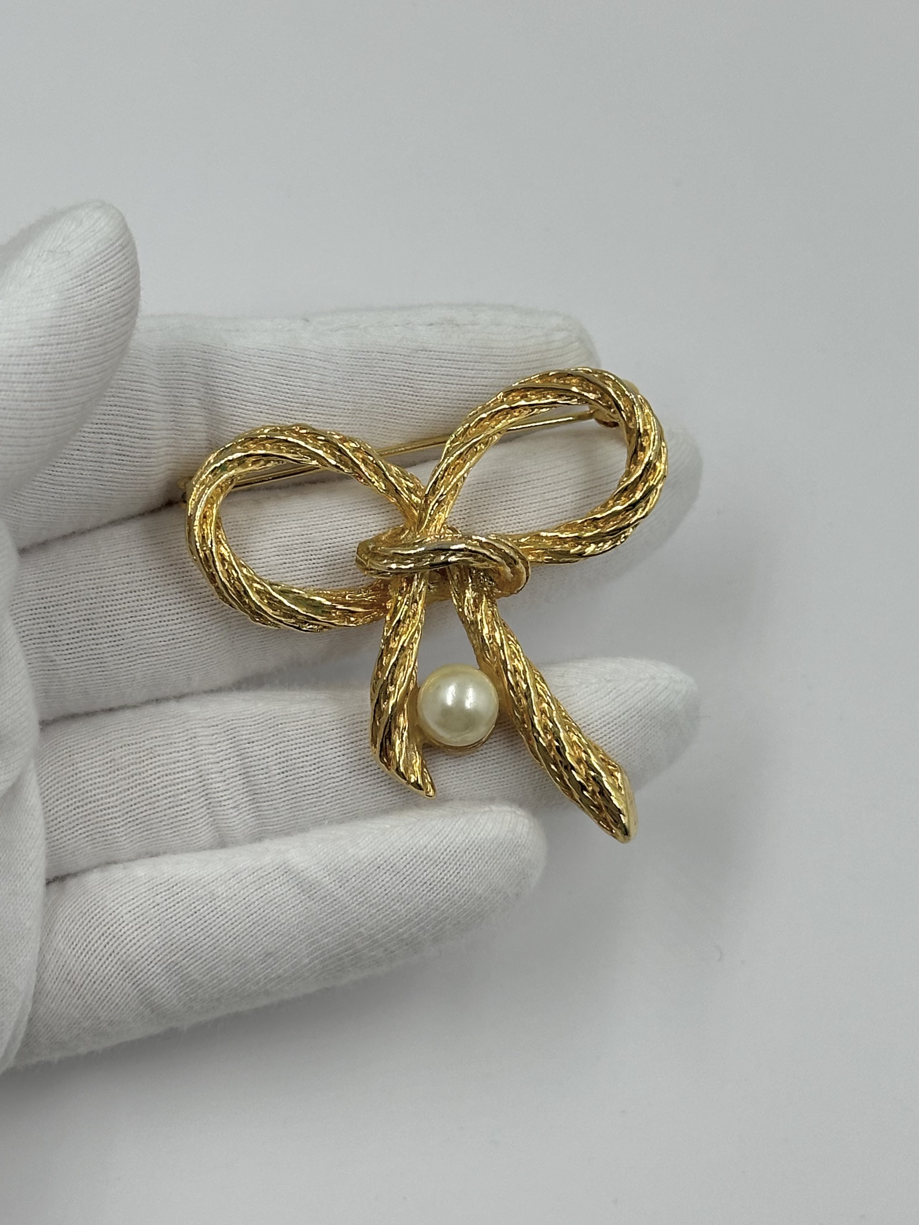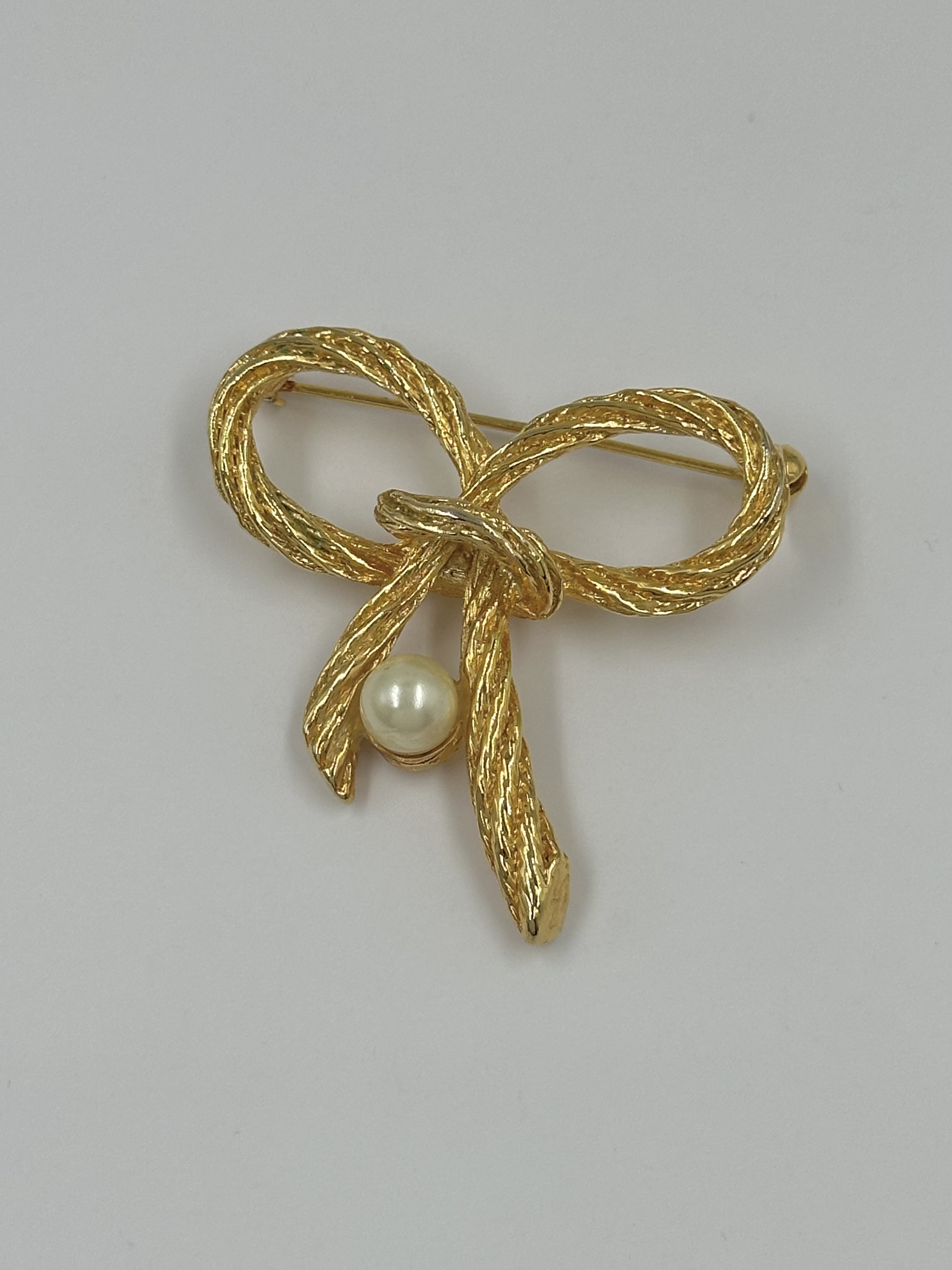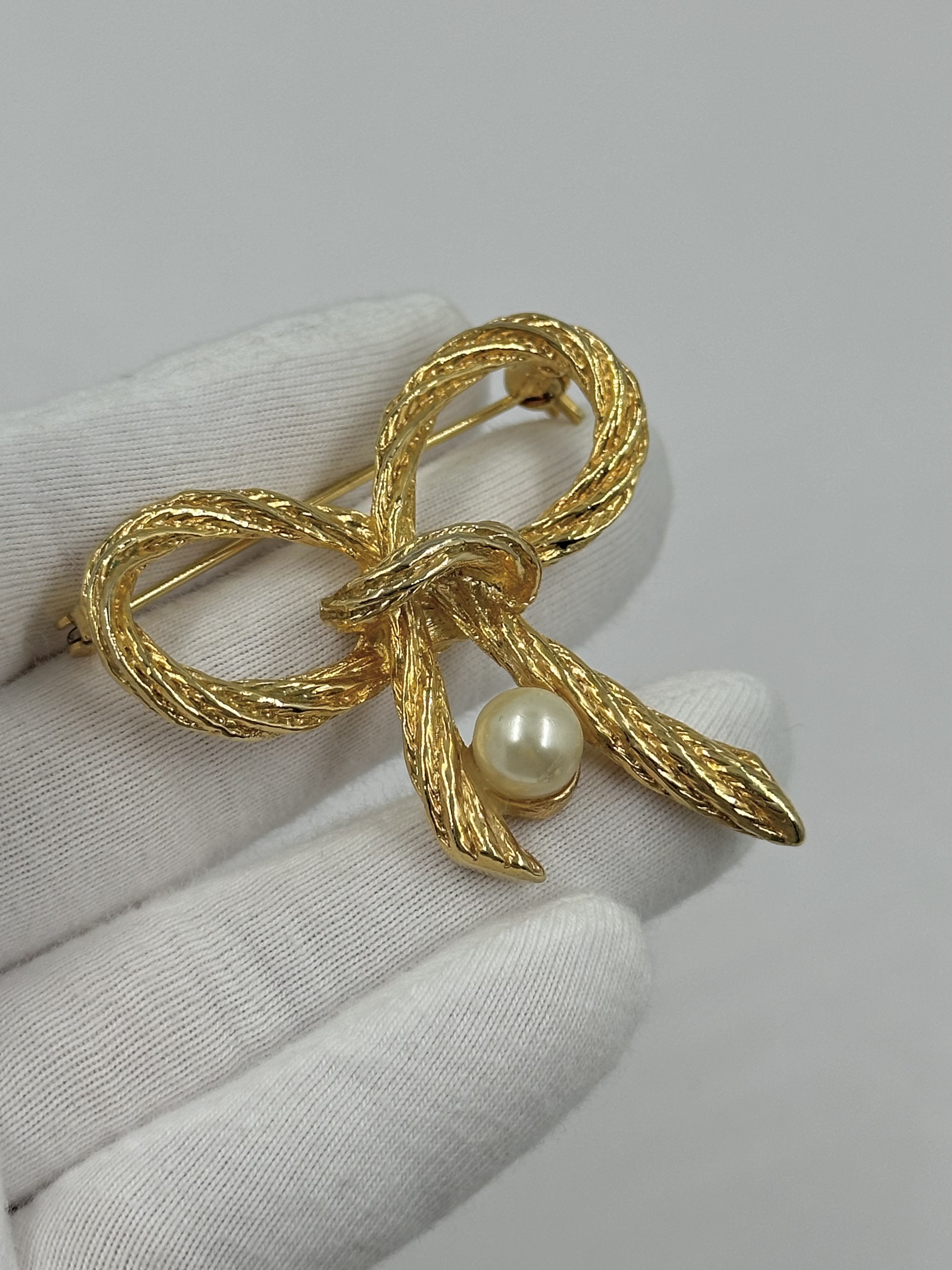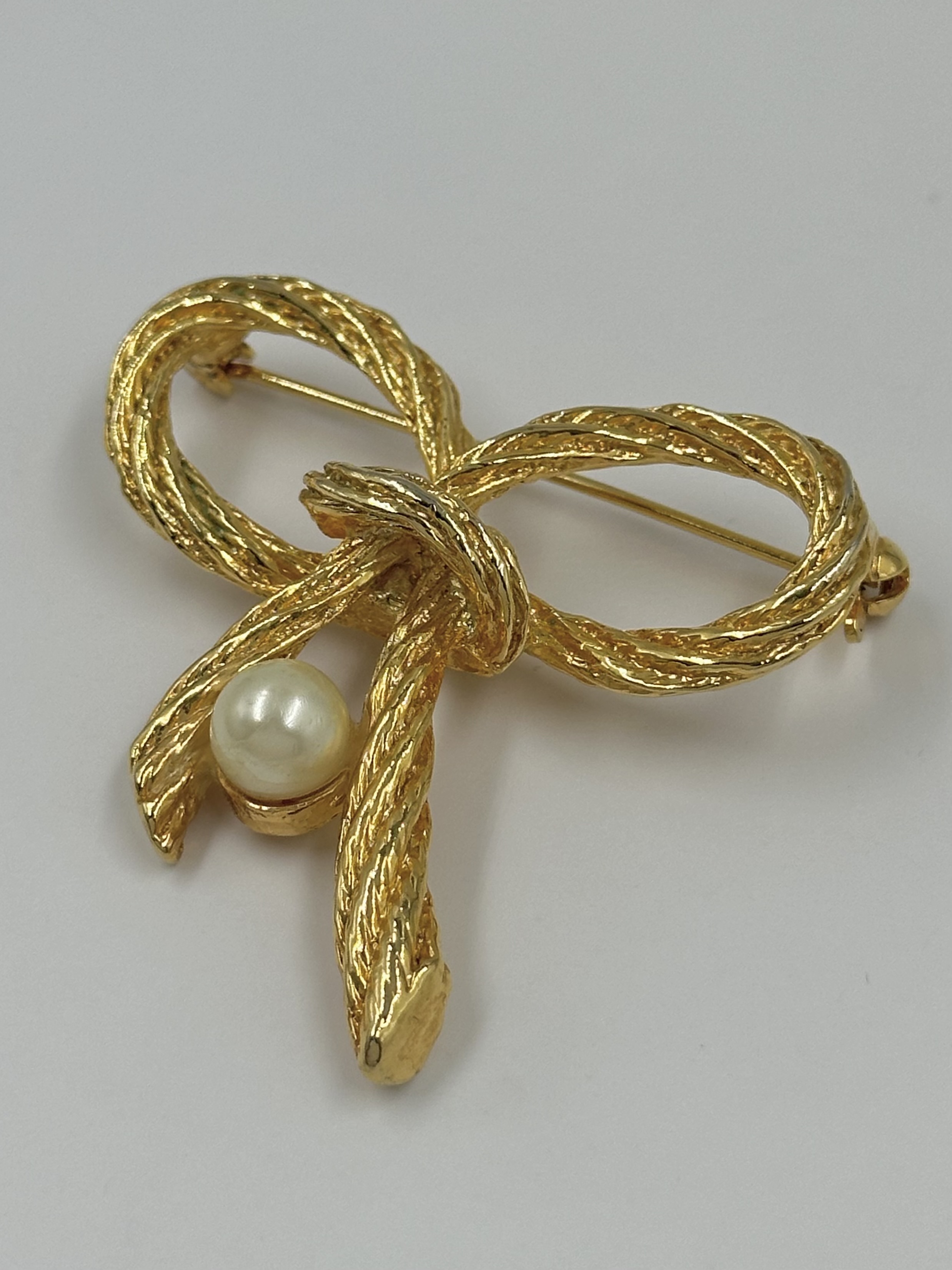 Бижутерный сплав, имитация жемчуга. Присутствуют небольшие потертости на выступающих частях.