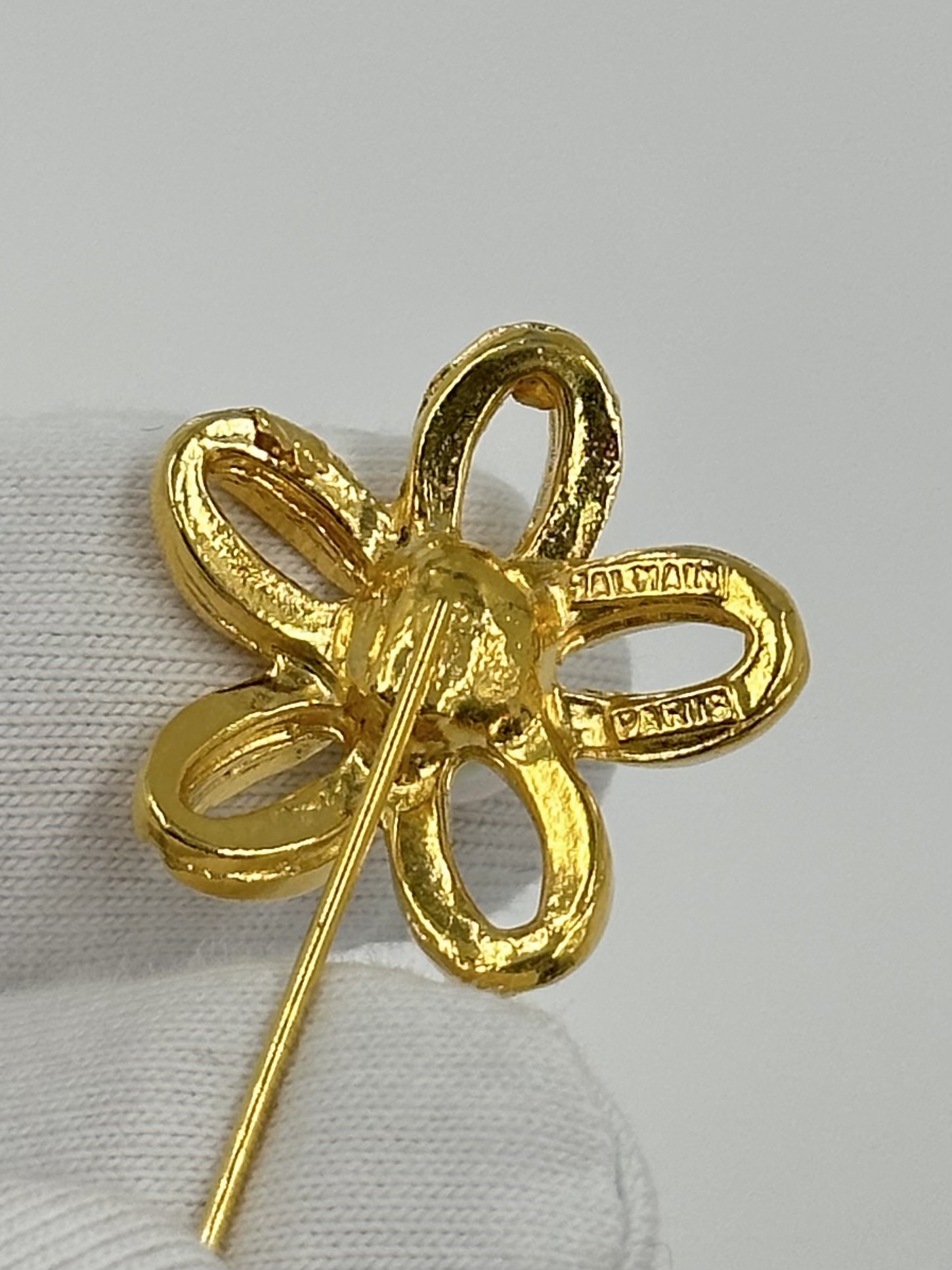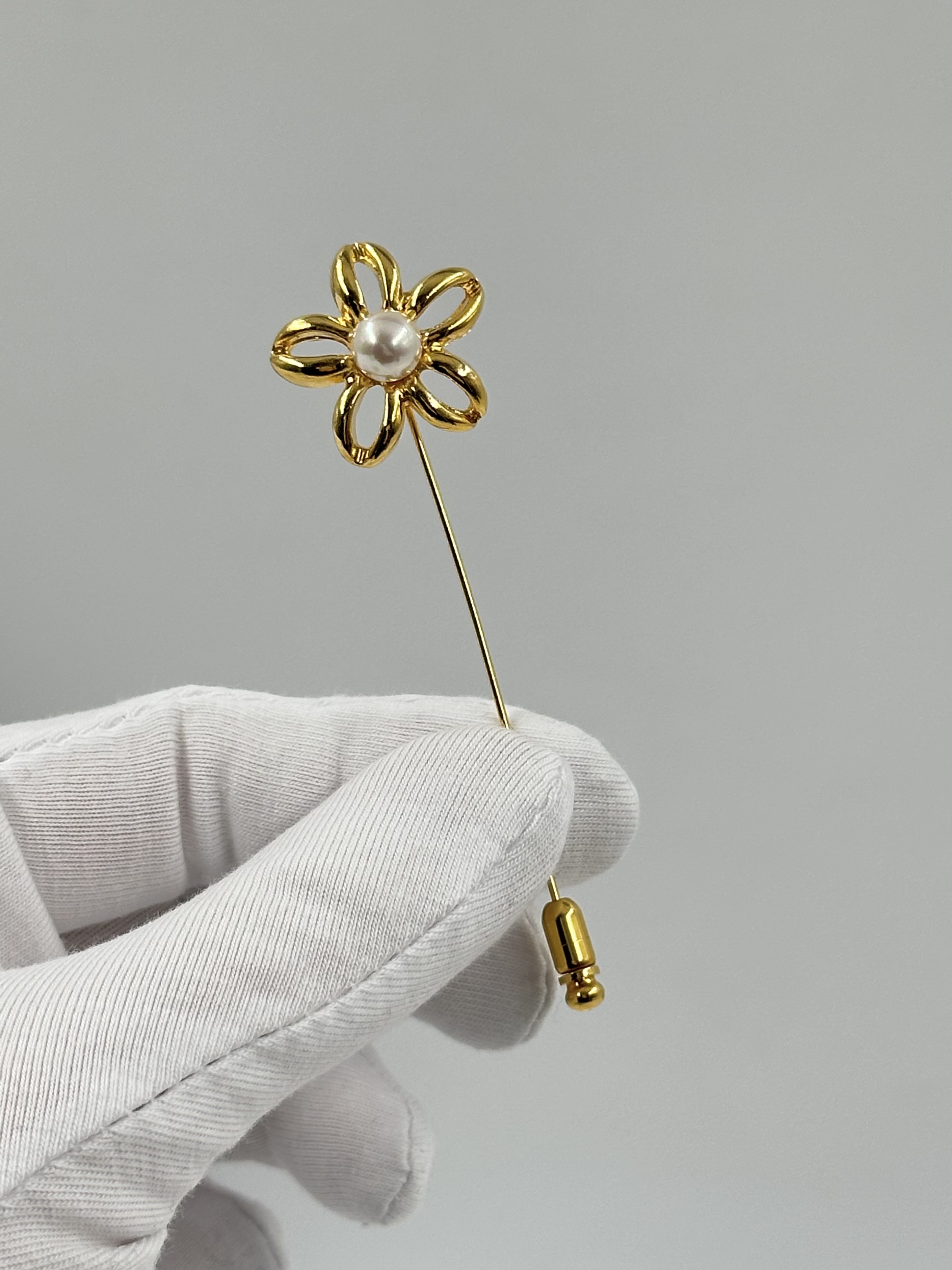 Бижутерный сплав, позолота, имитация жемчуга.