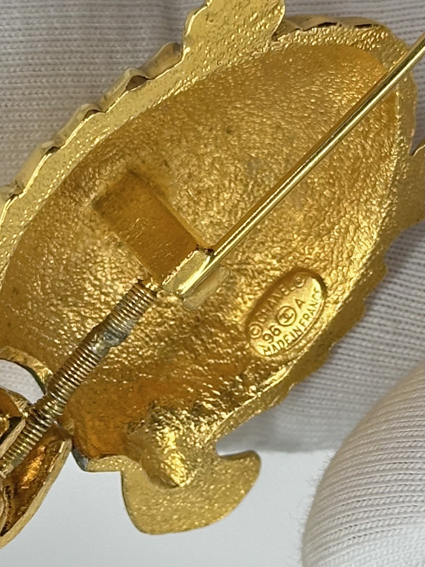 Бижутерный сплав, позолота. Размер 3,7 х 8,8см. Коллекция Осень 1998 года.