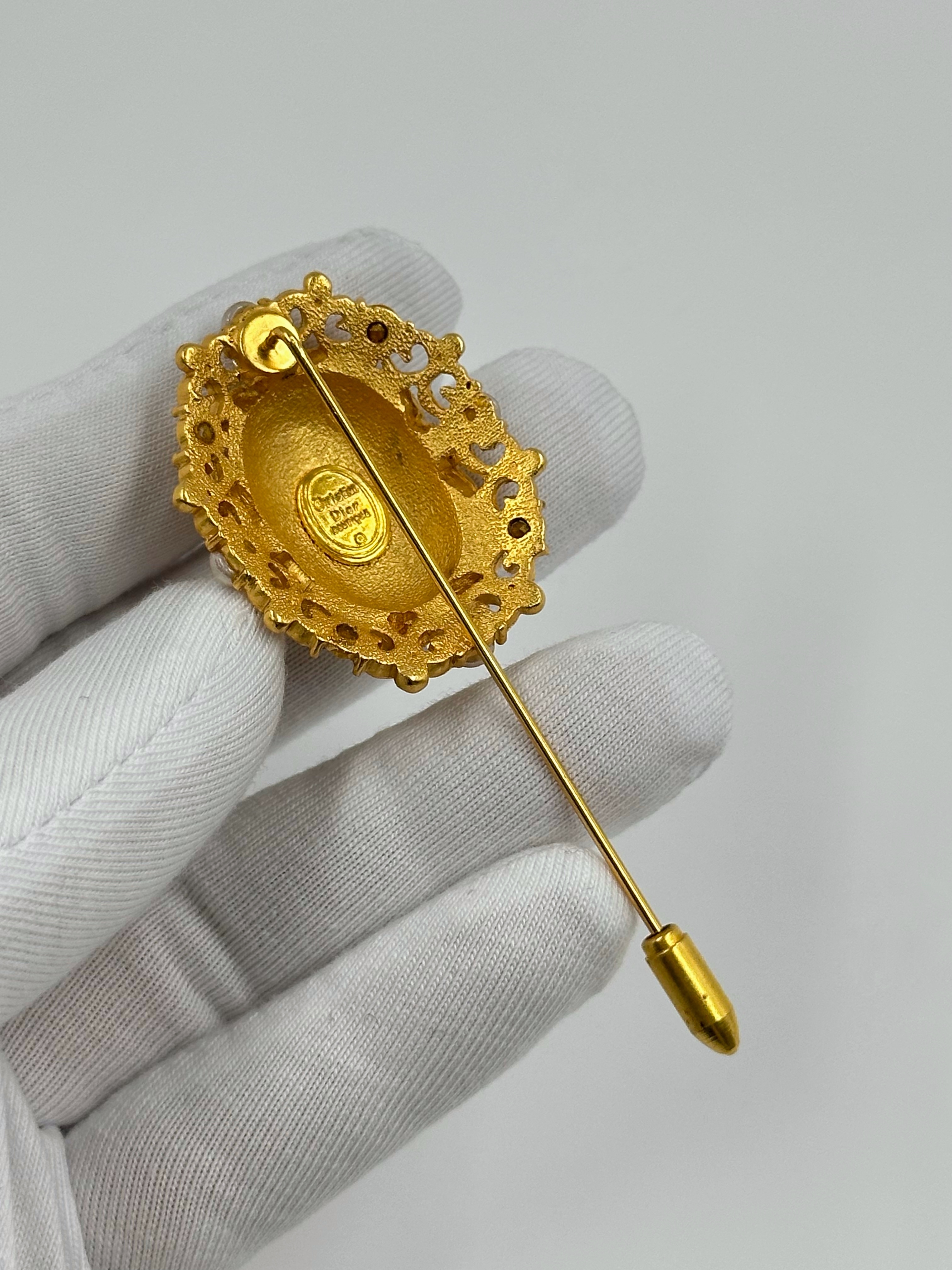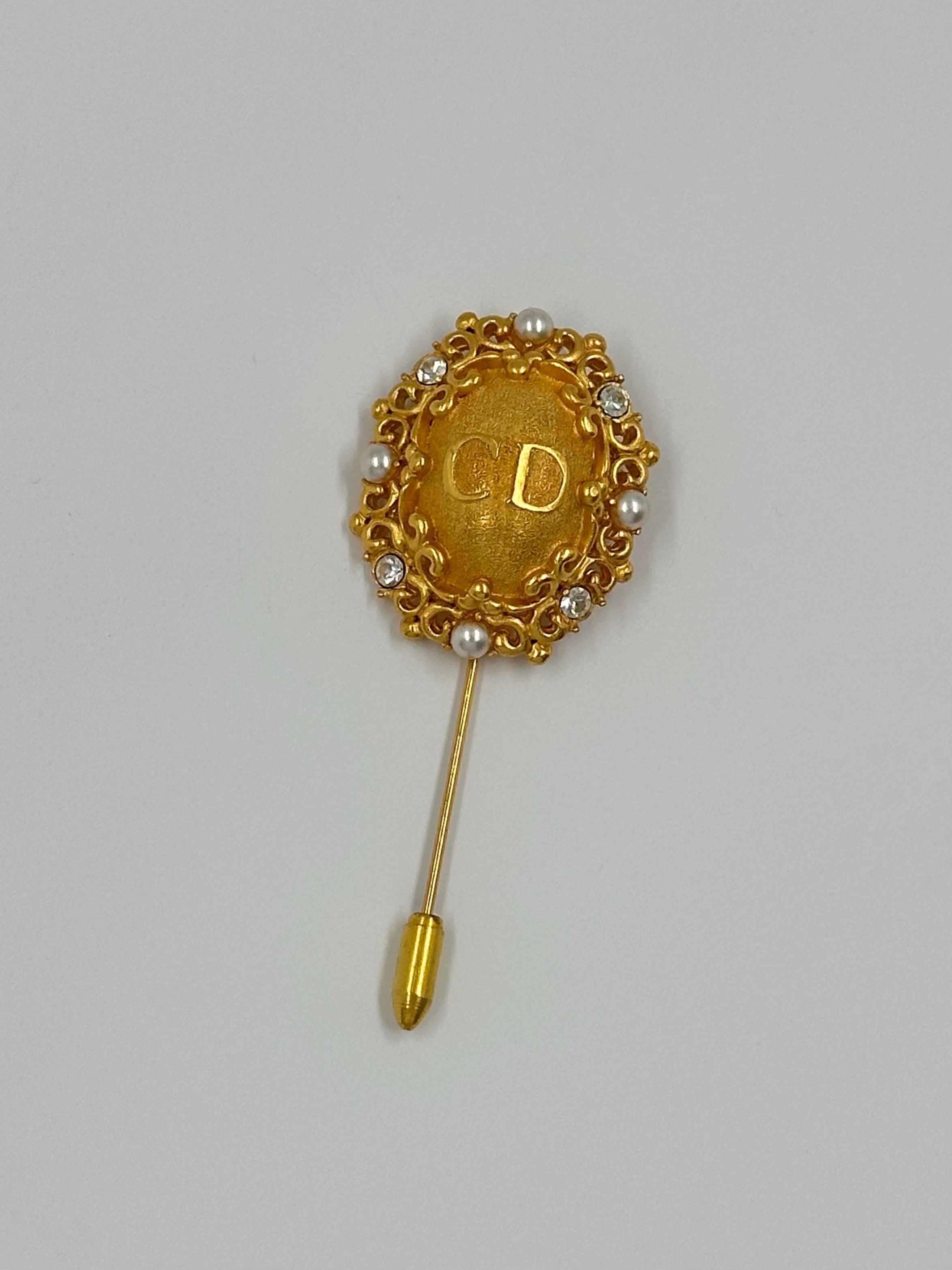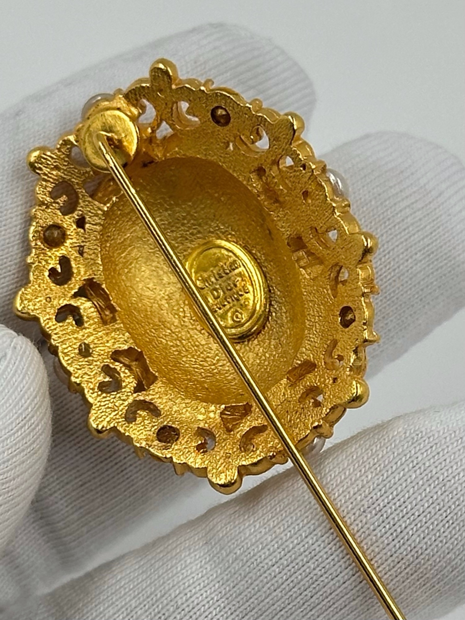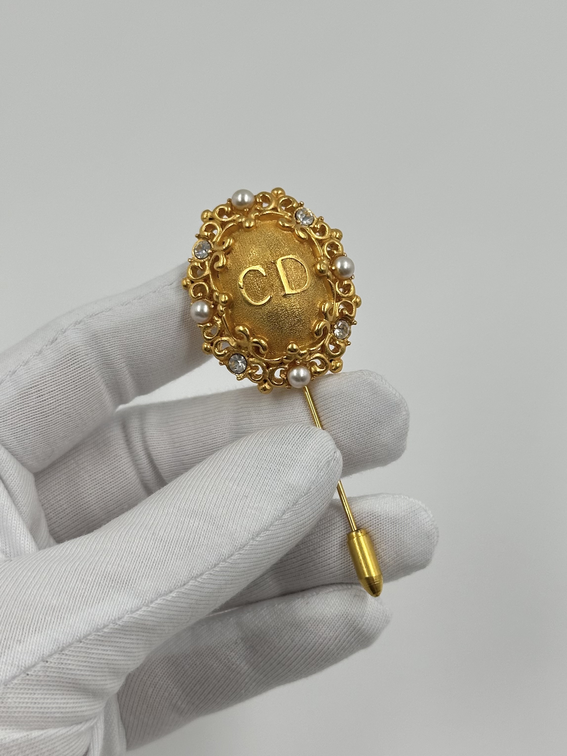 Бижутерный сплав, позолота, имитация жемчуга, кристаллы. Размер 2,8 х 7,1см.