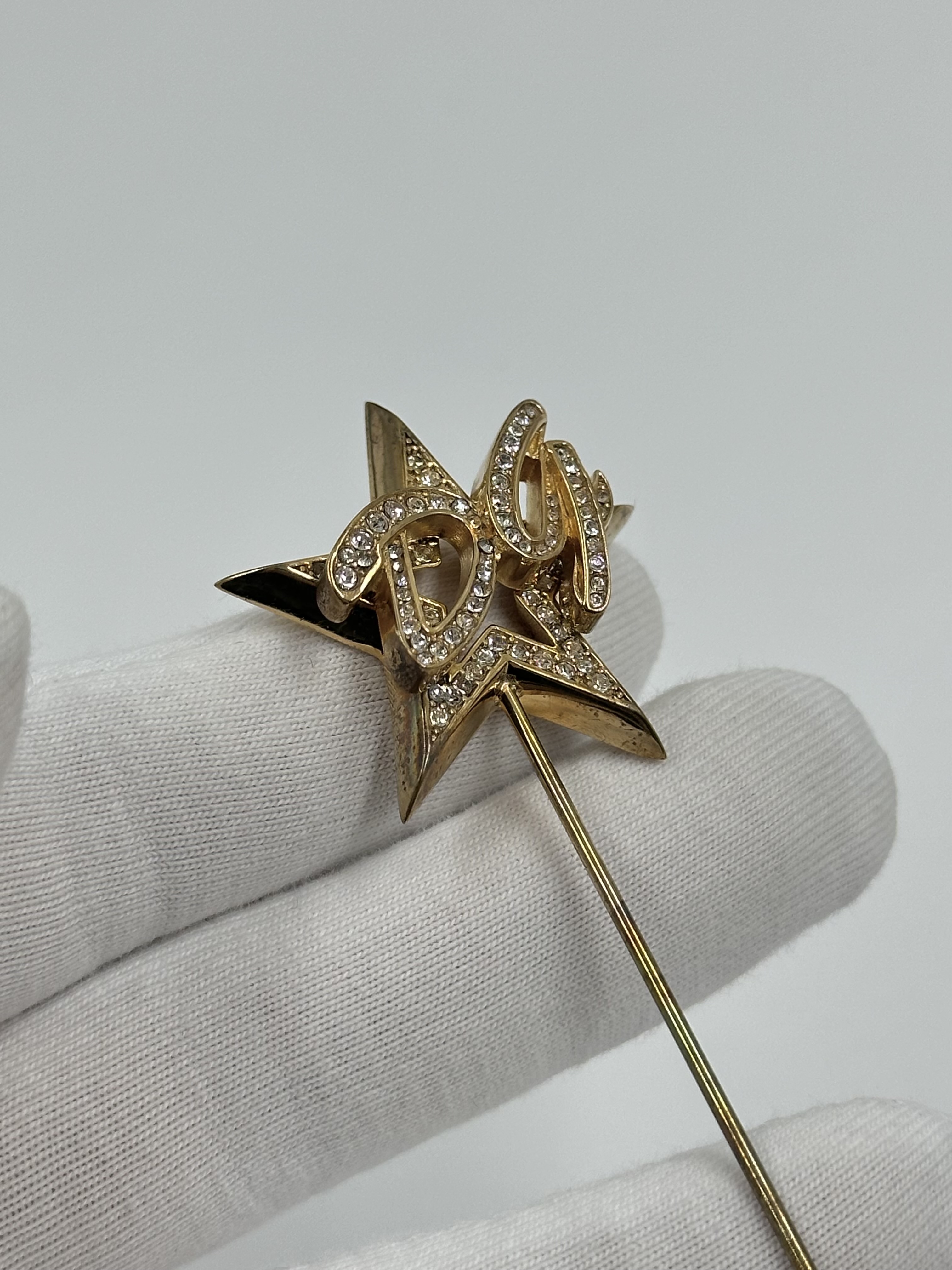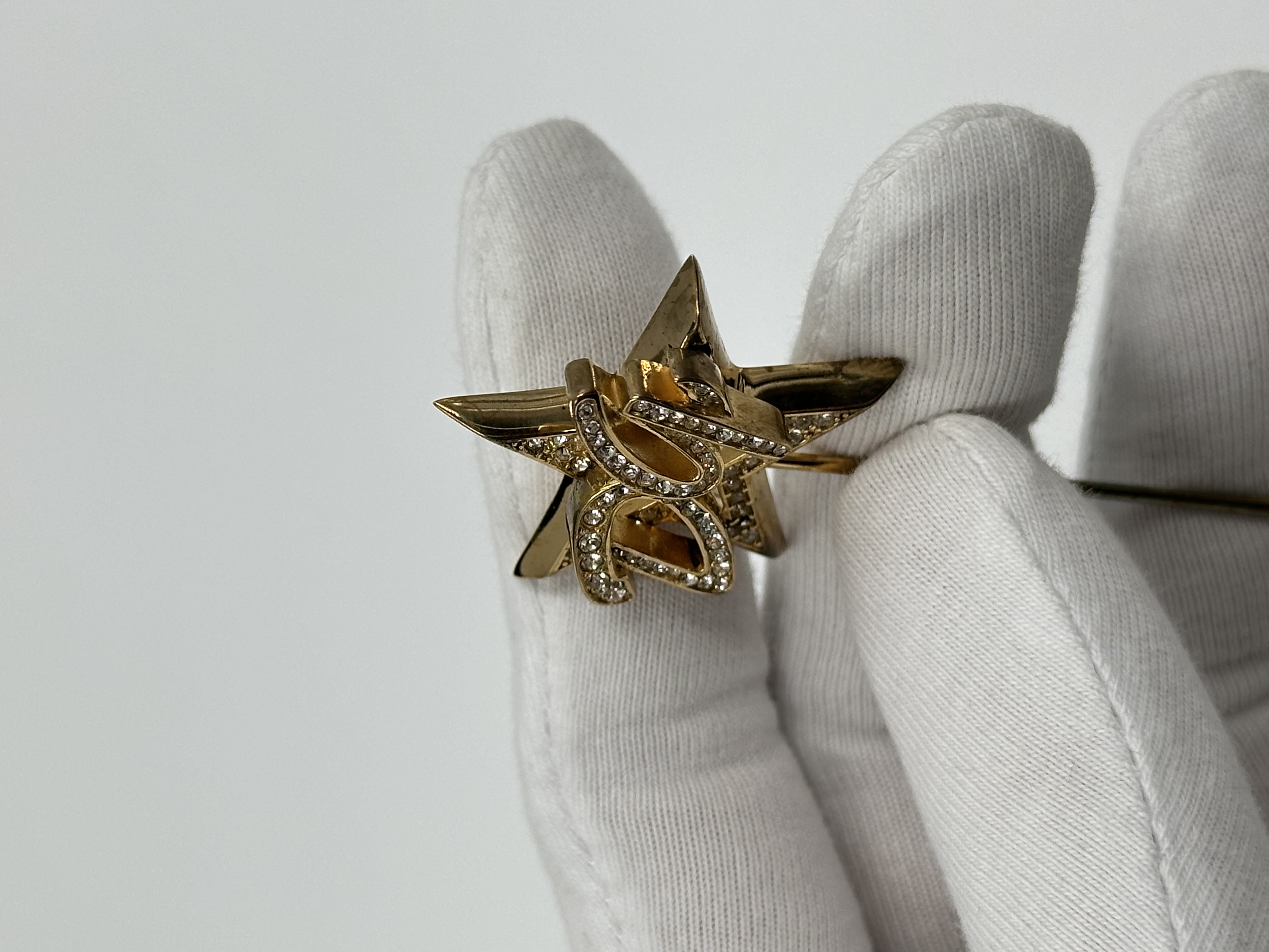 Бижутерный сплав, позолота, кристаллы. Присутствуют потемнения покрытия.