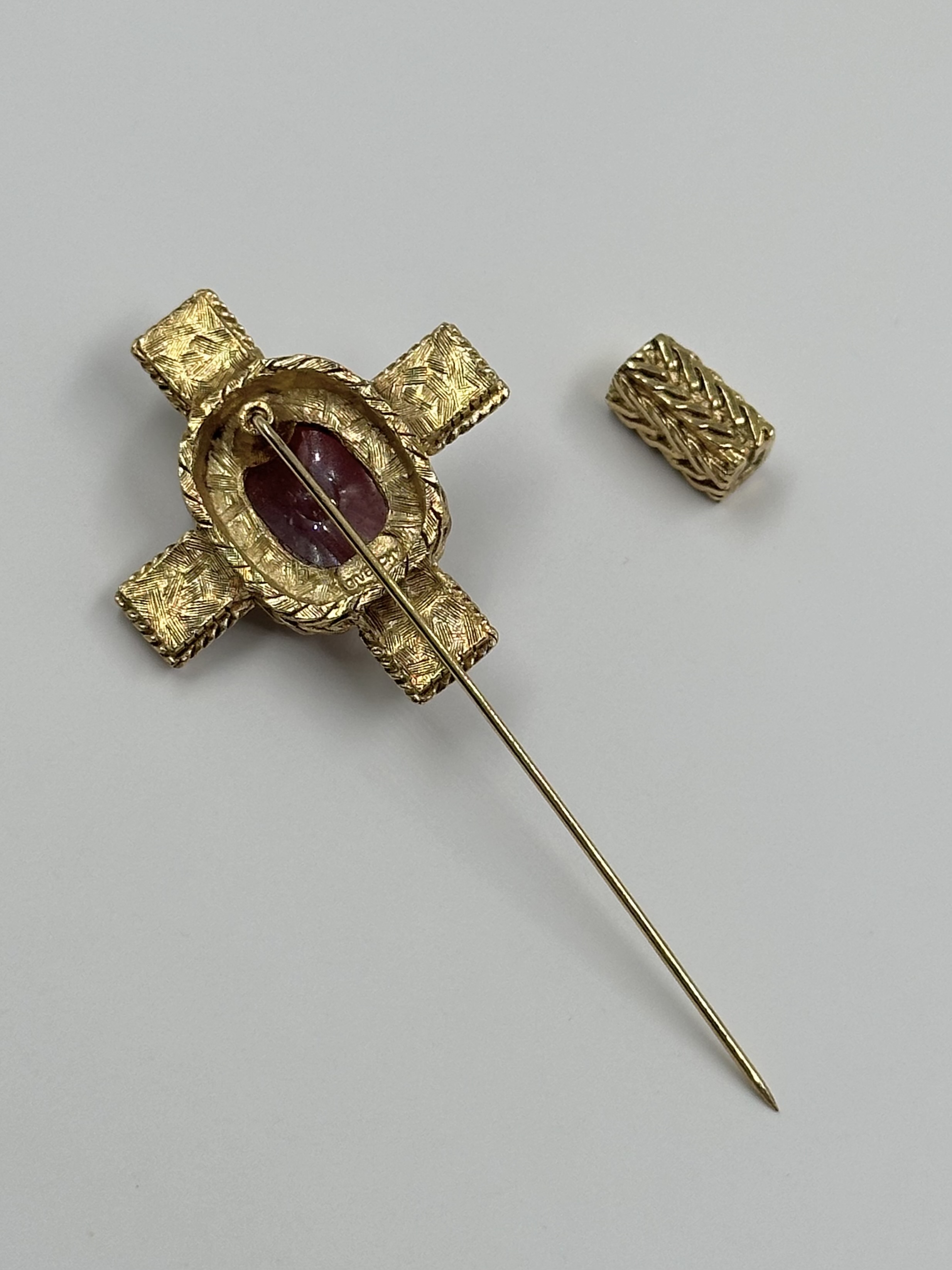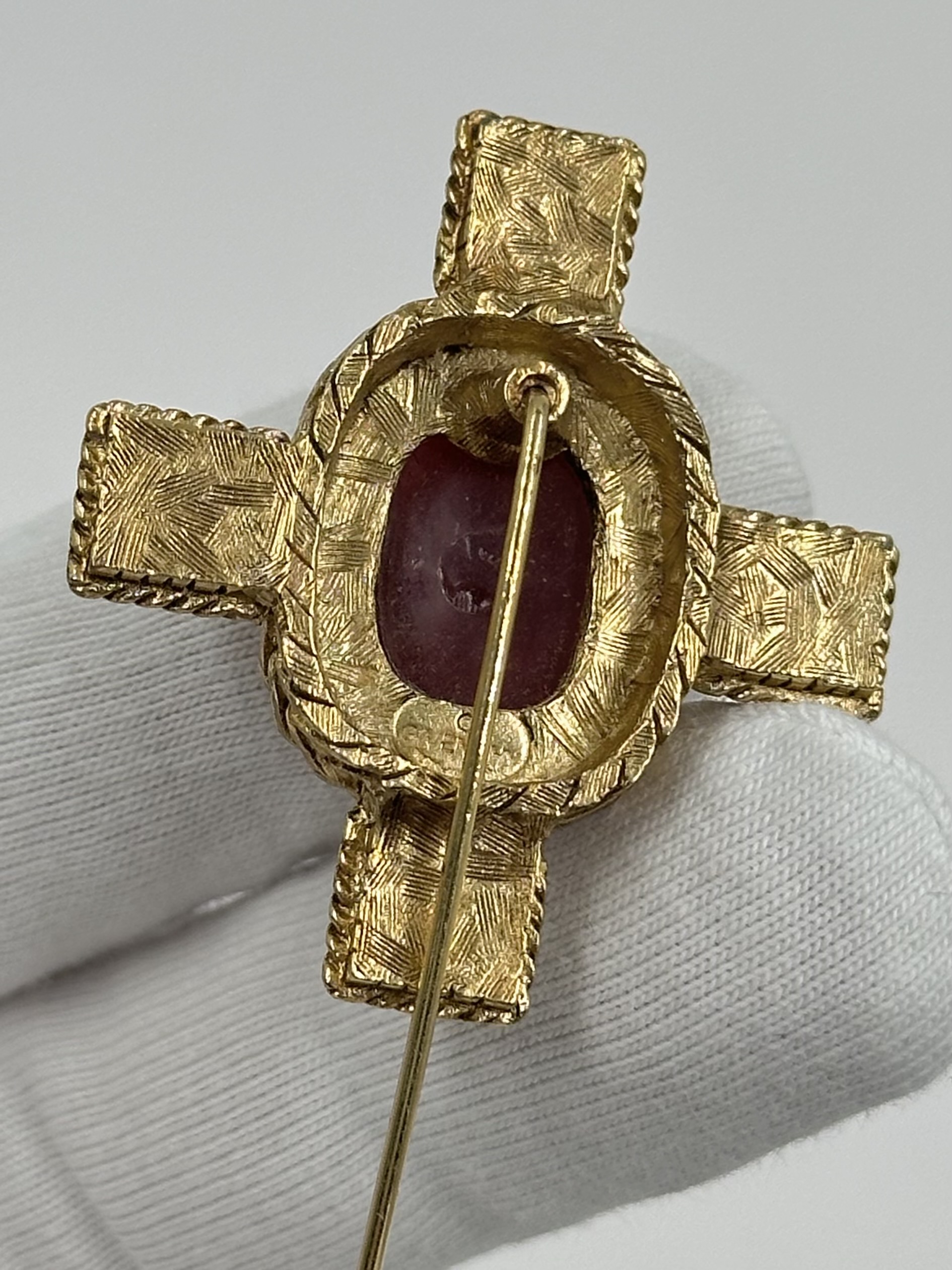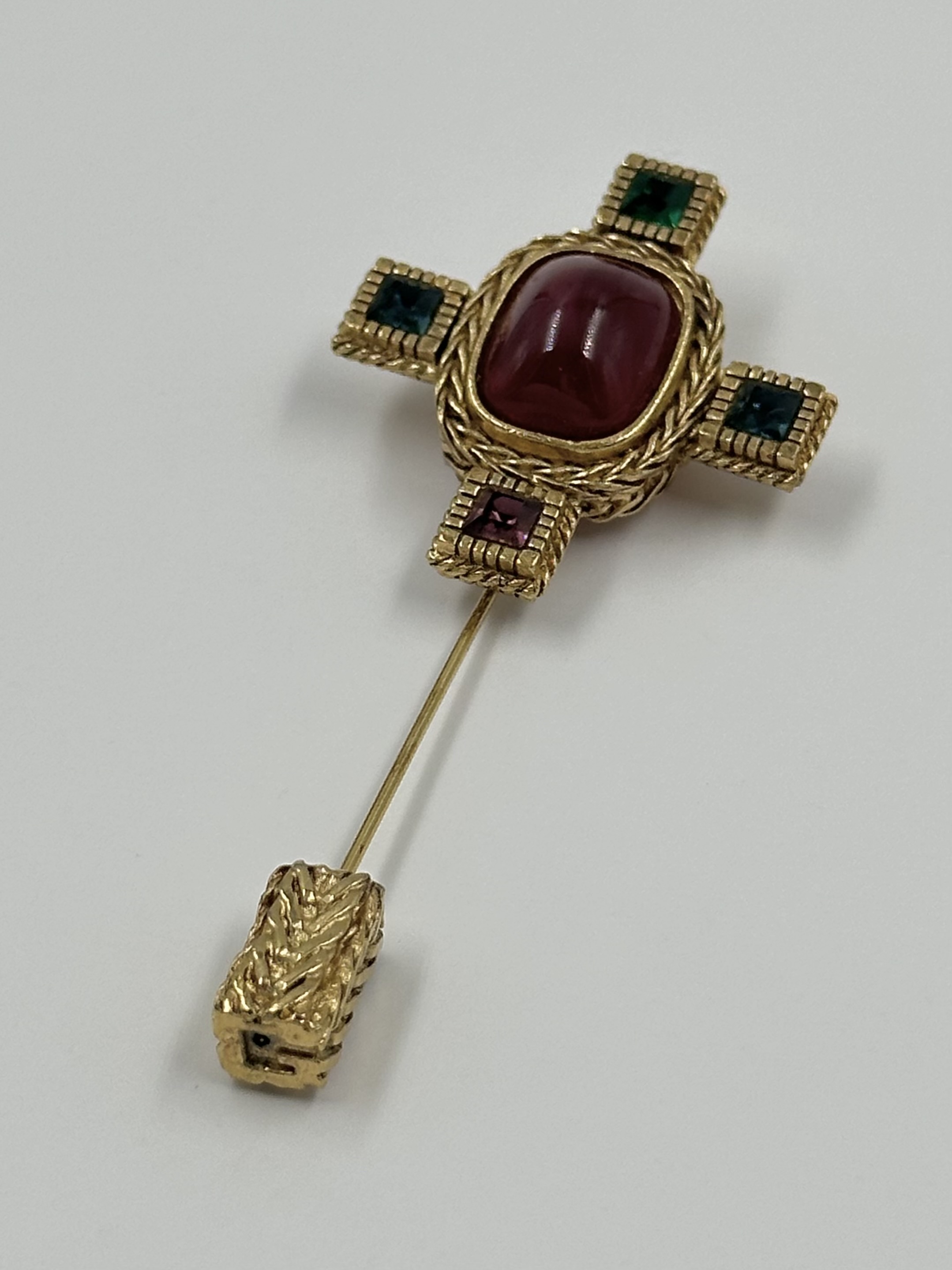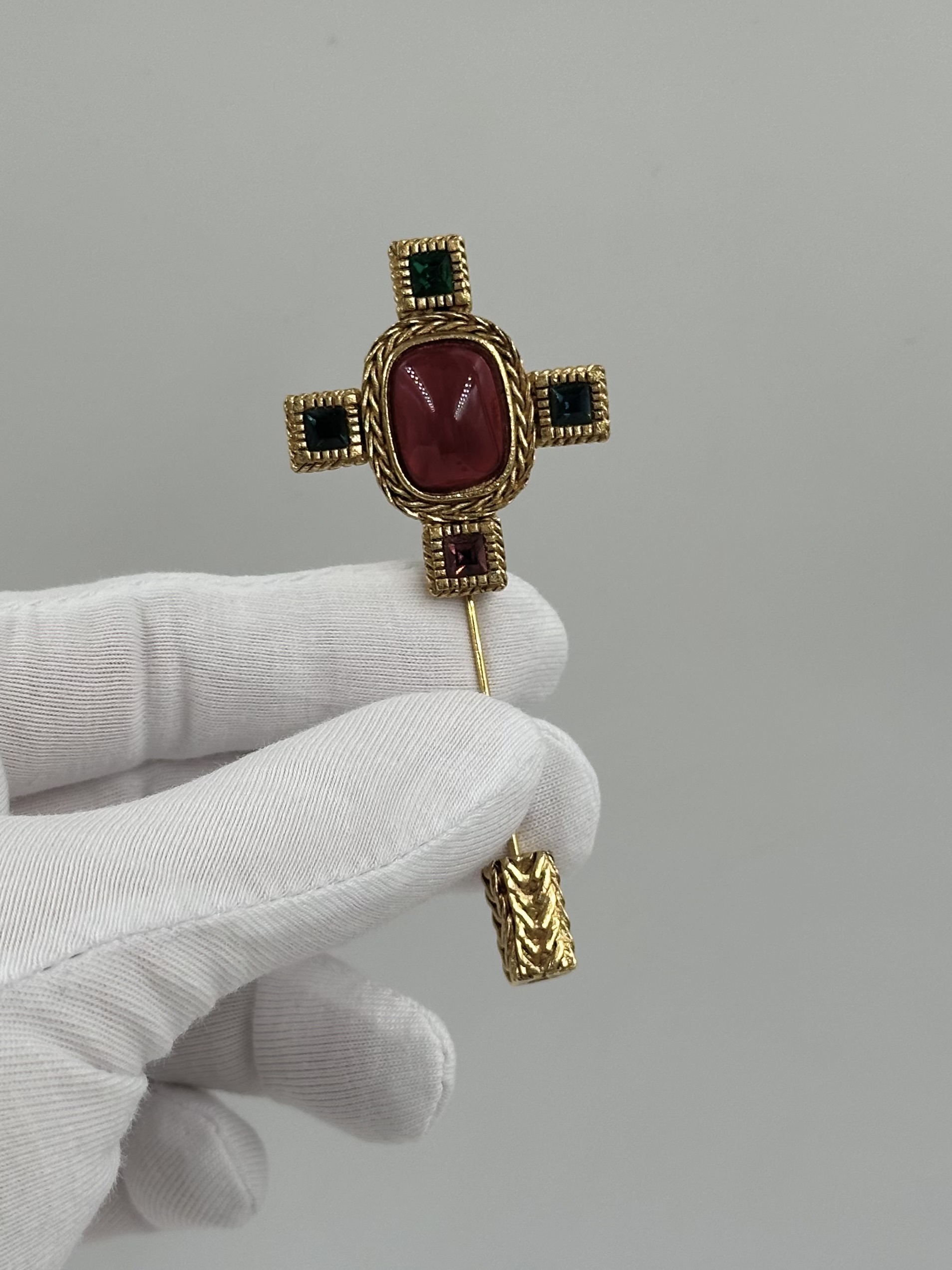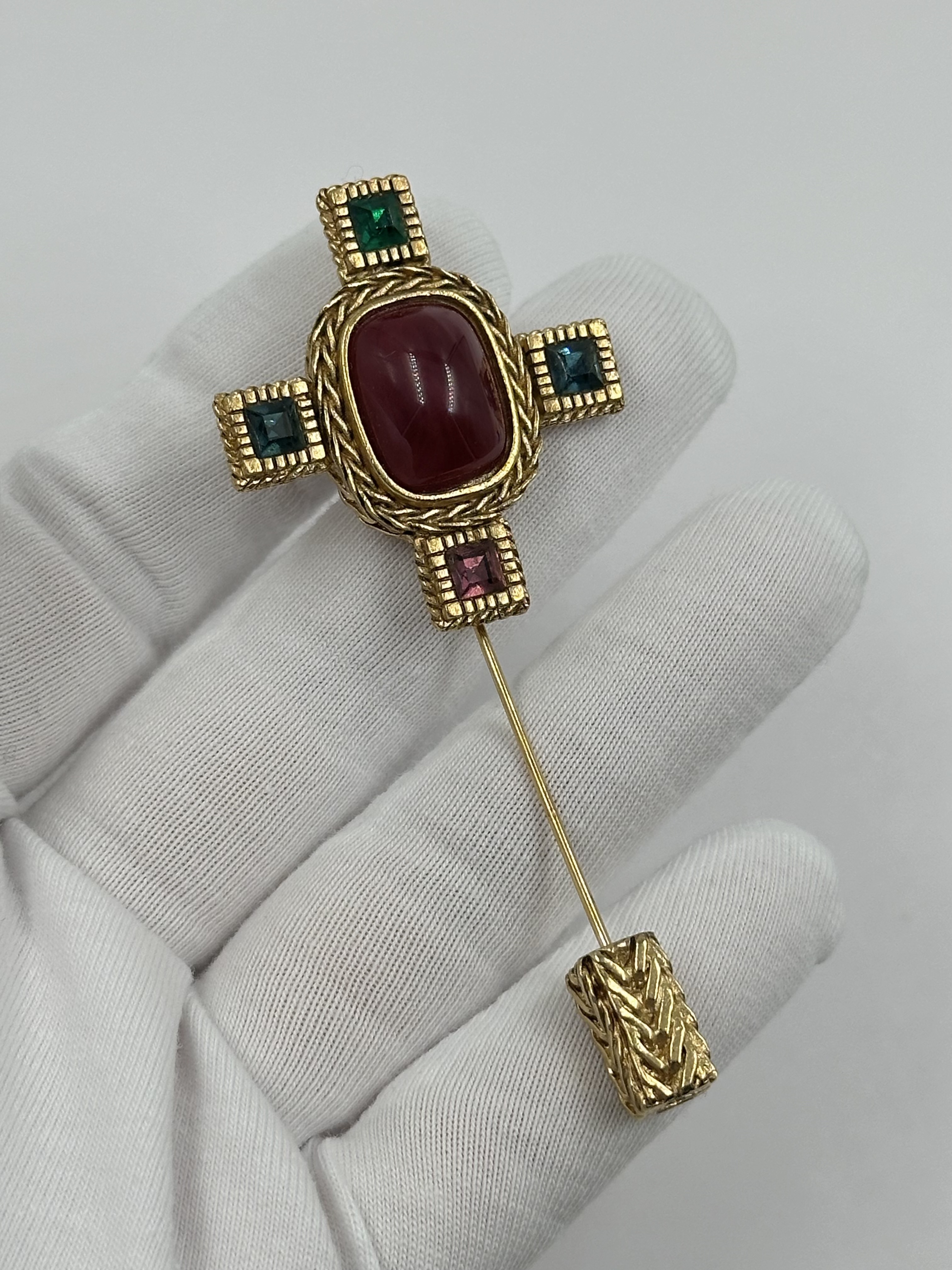 Бижутерный сплав, позолота, стекло, кристаллы.
