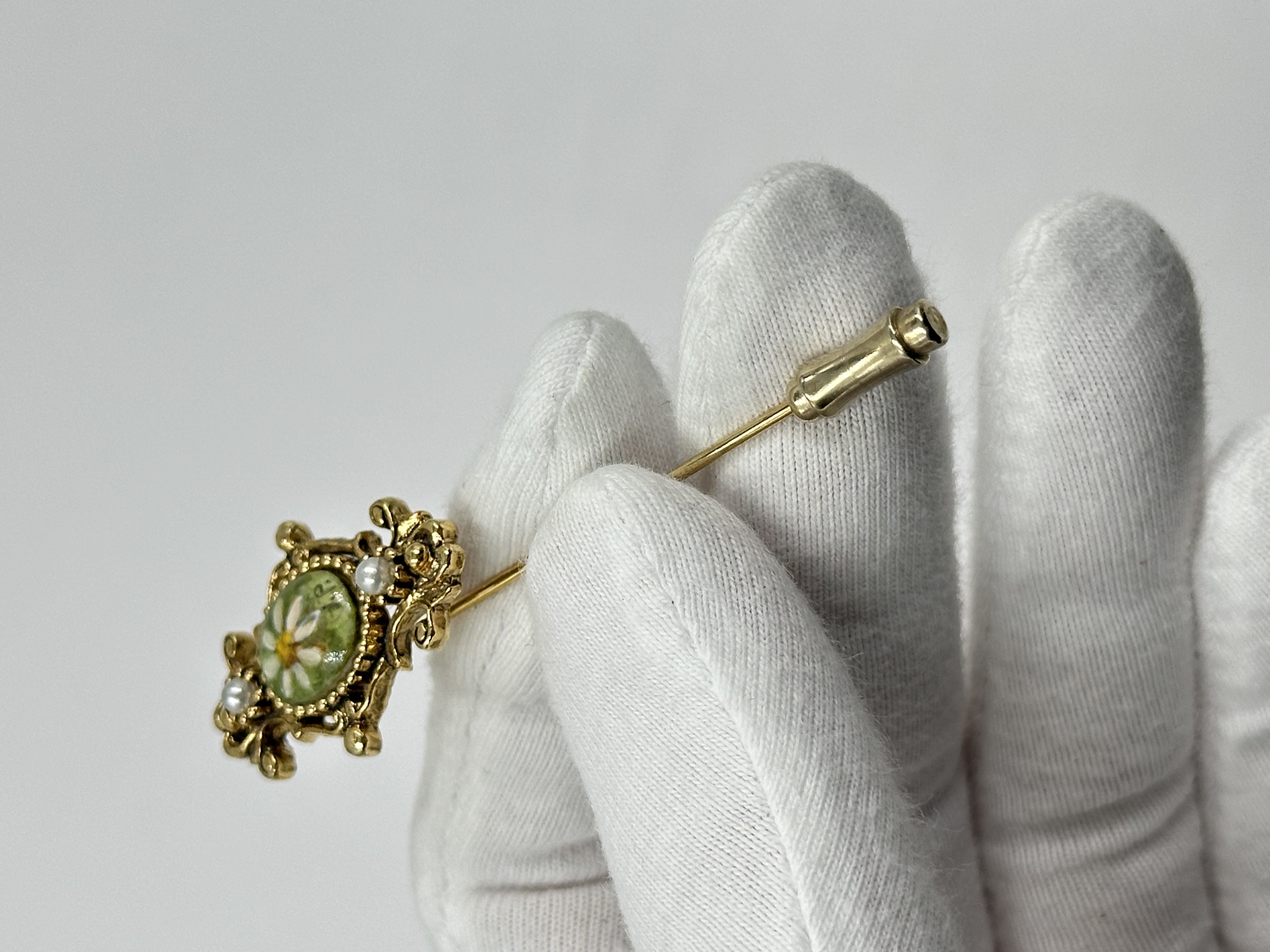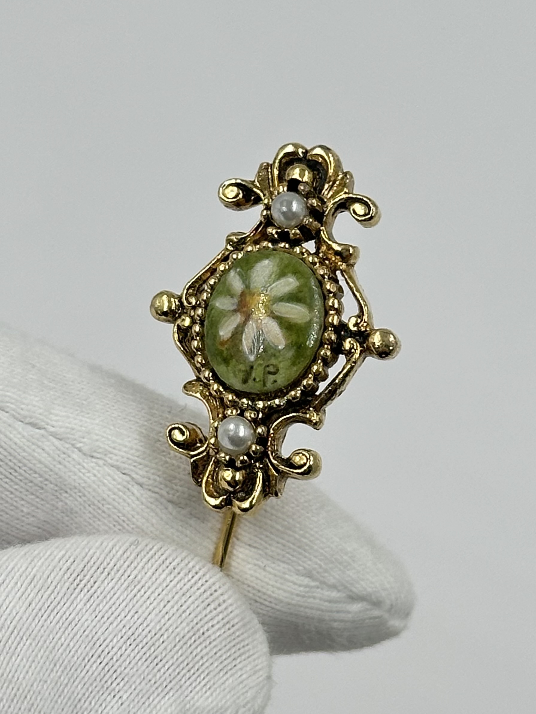 Бижутерный сплав, пластик. Размер в длину 6,2см.