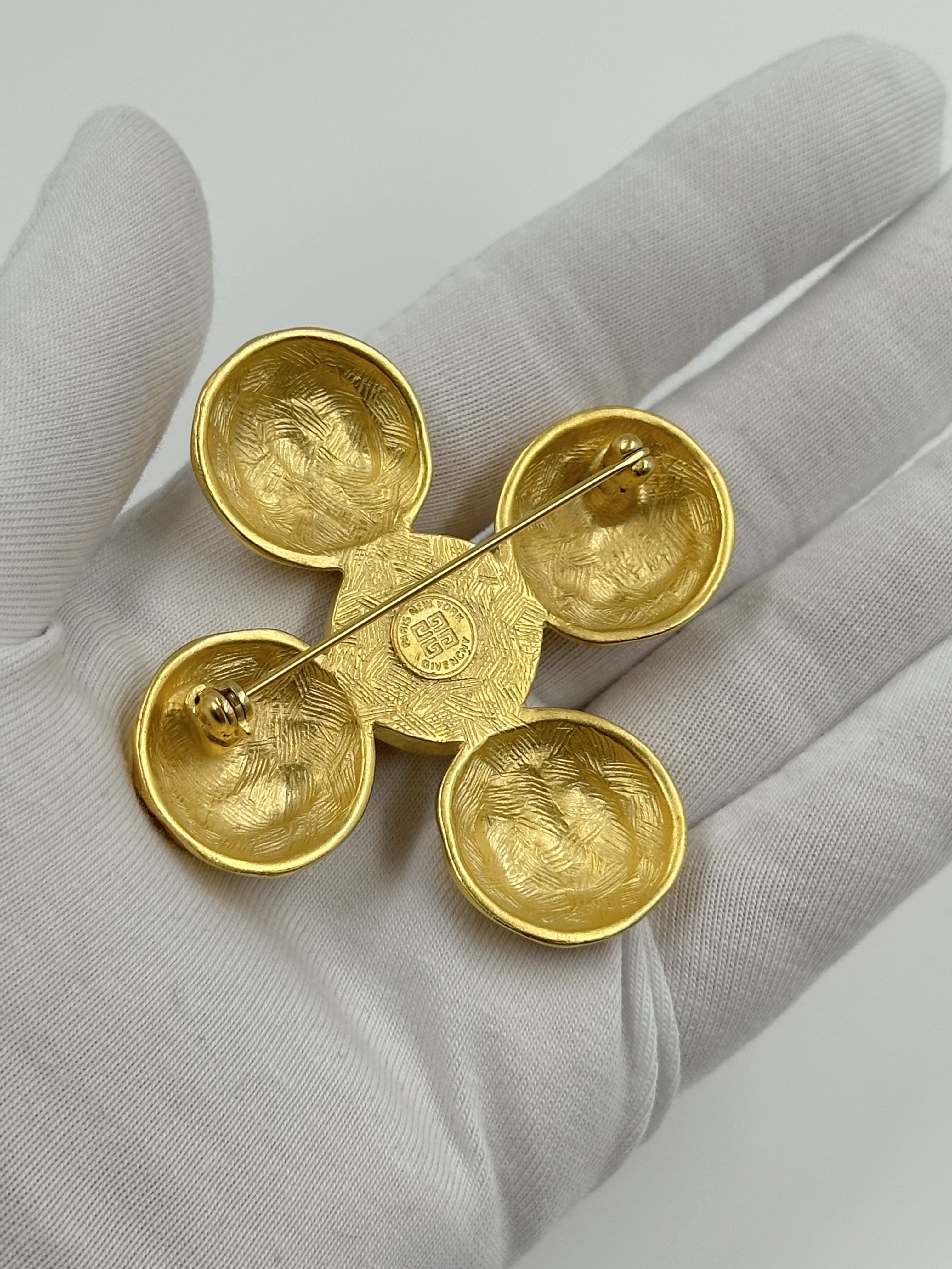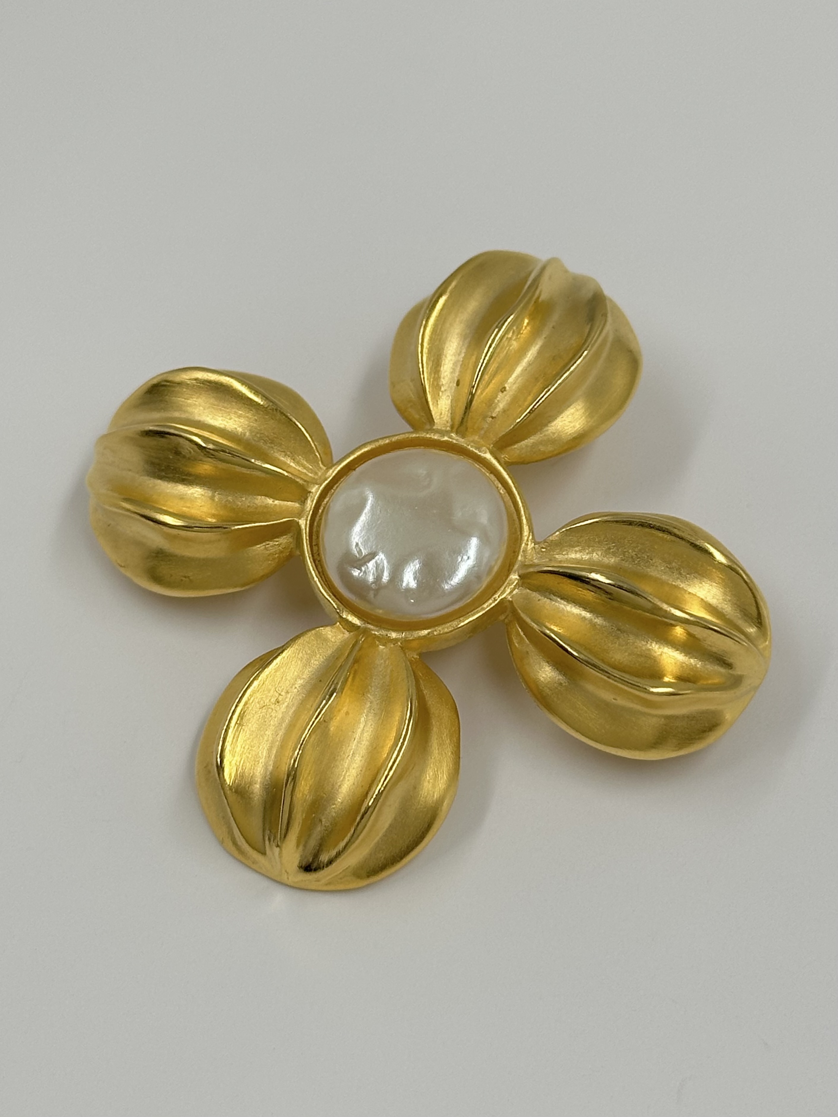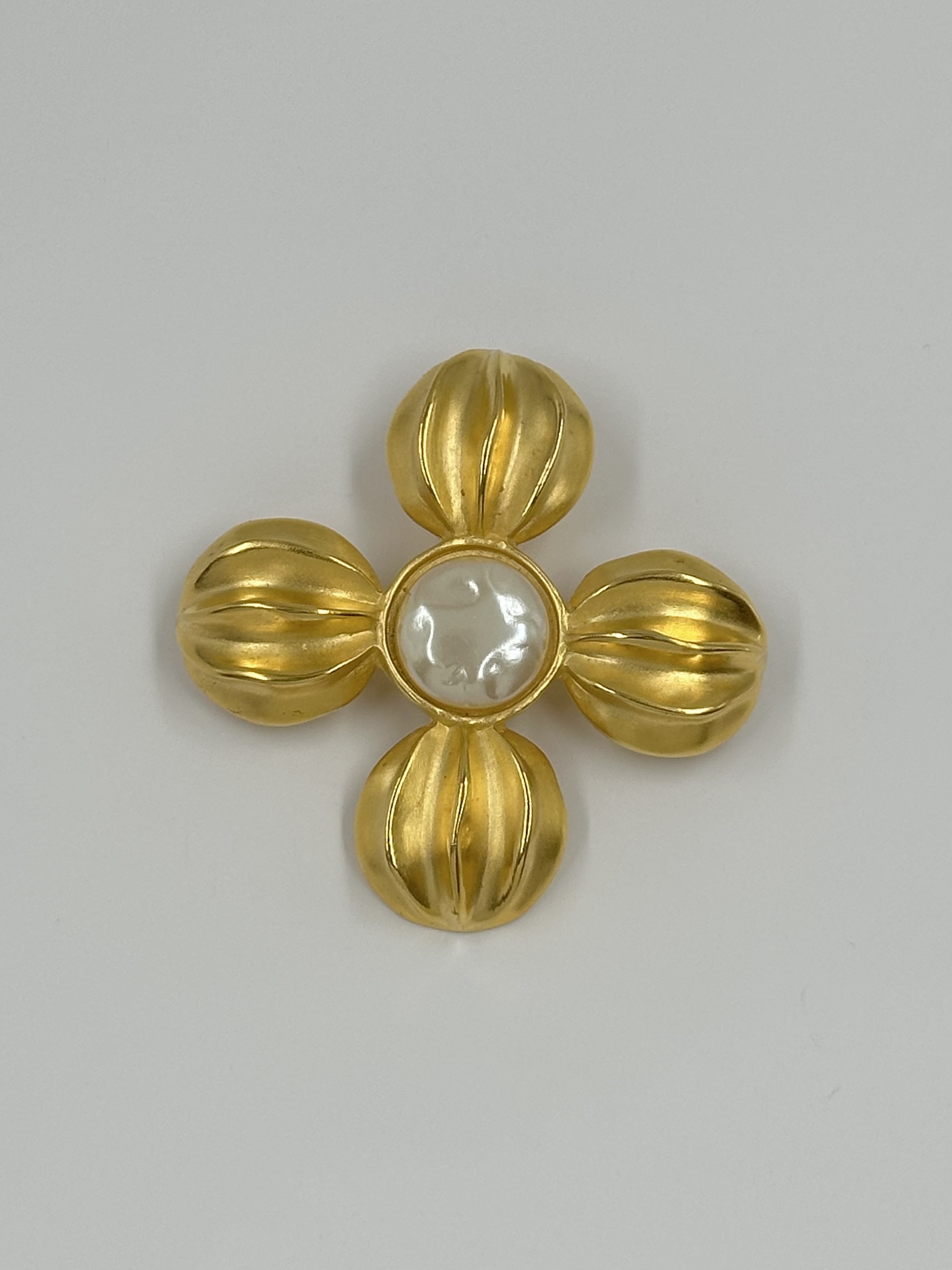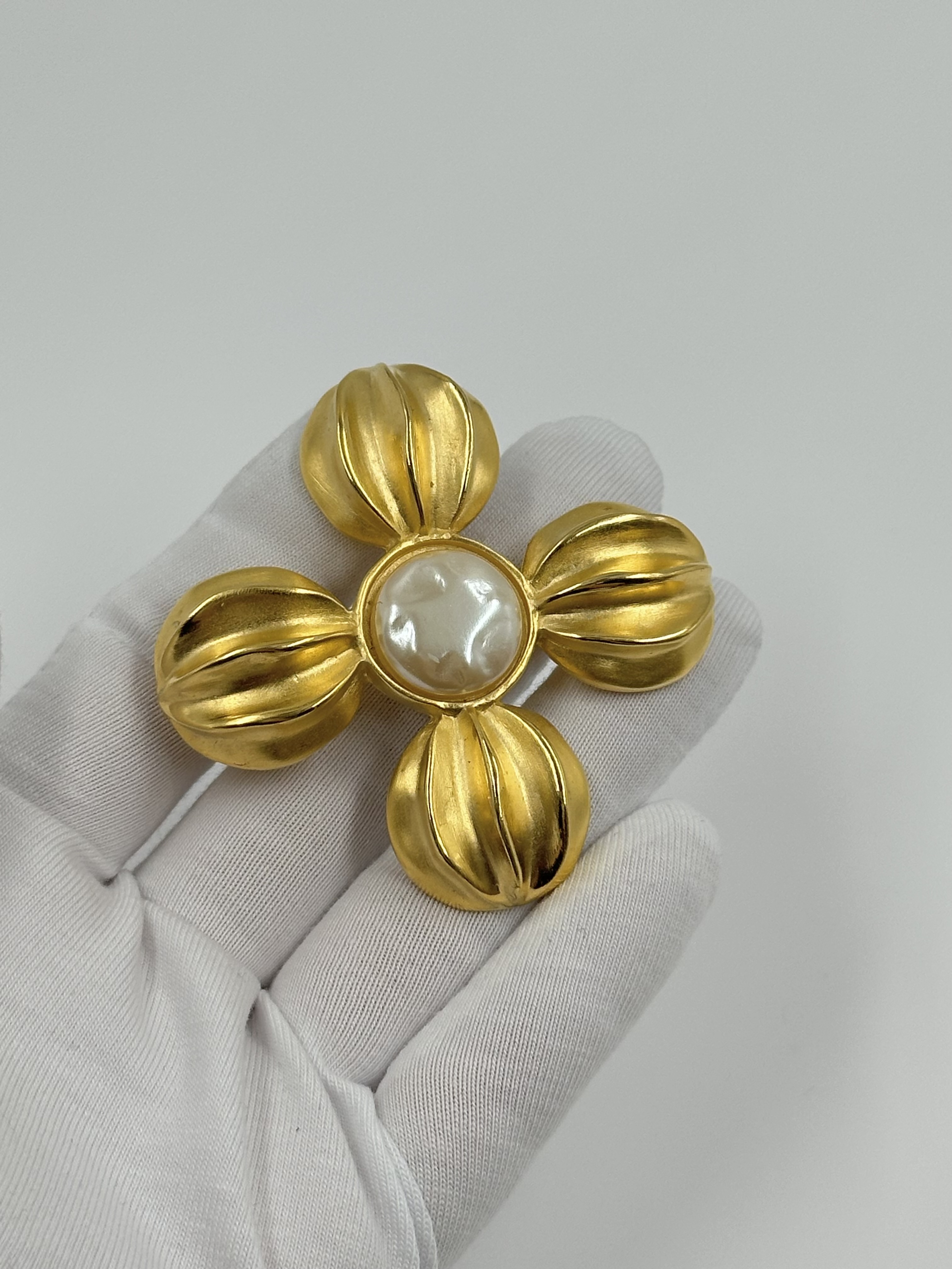 Бижутерный сплав, позолота, имитация жемчуга. Размер 5,9см.
