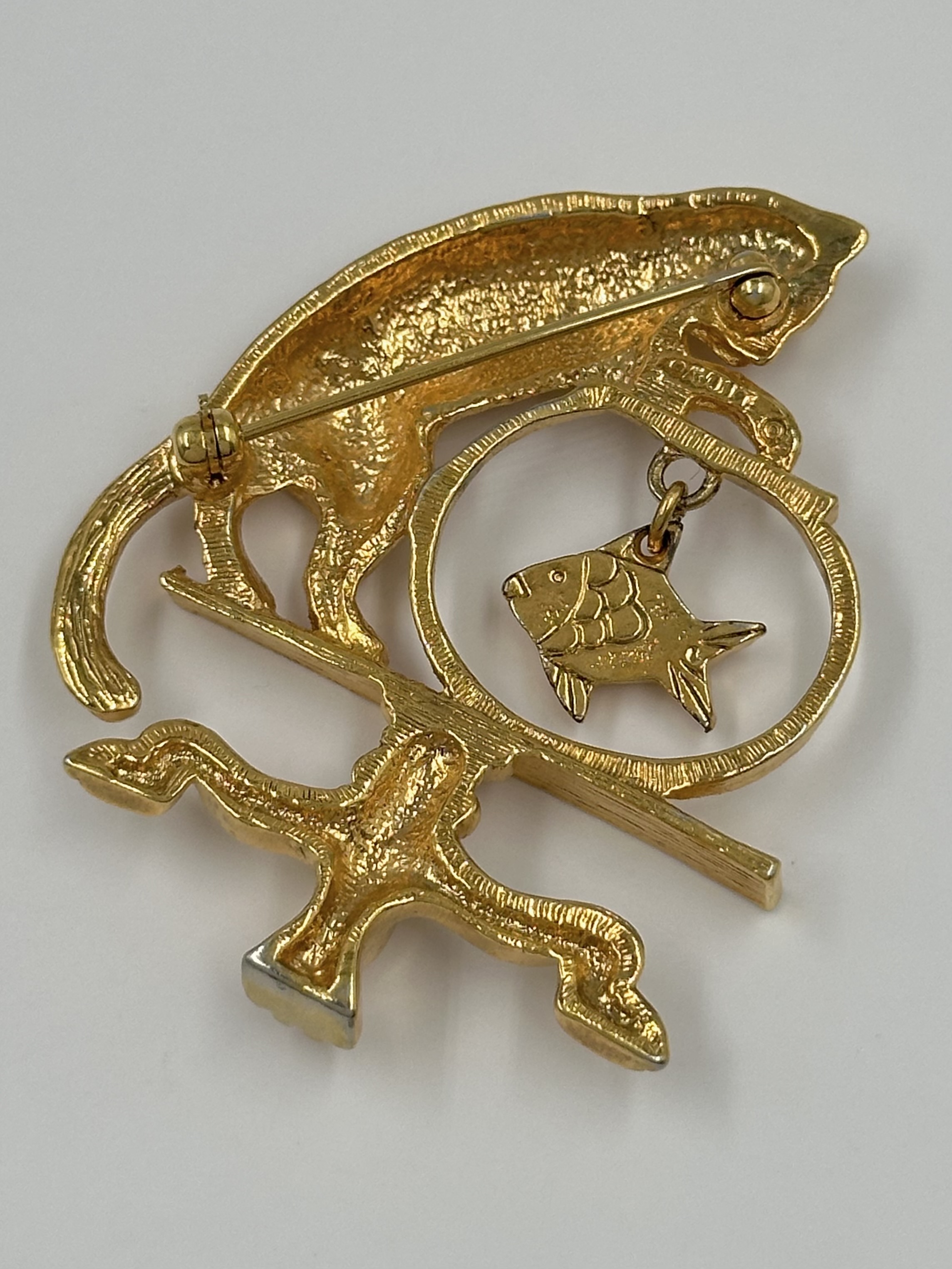 Бижутерный сплав. Размер 4,2 x 5,3см. На ножке аквариума небольшая потертость.