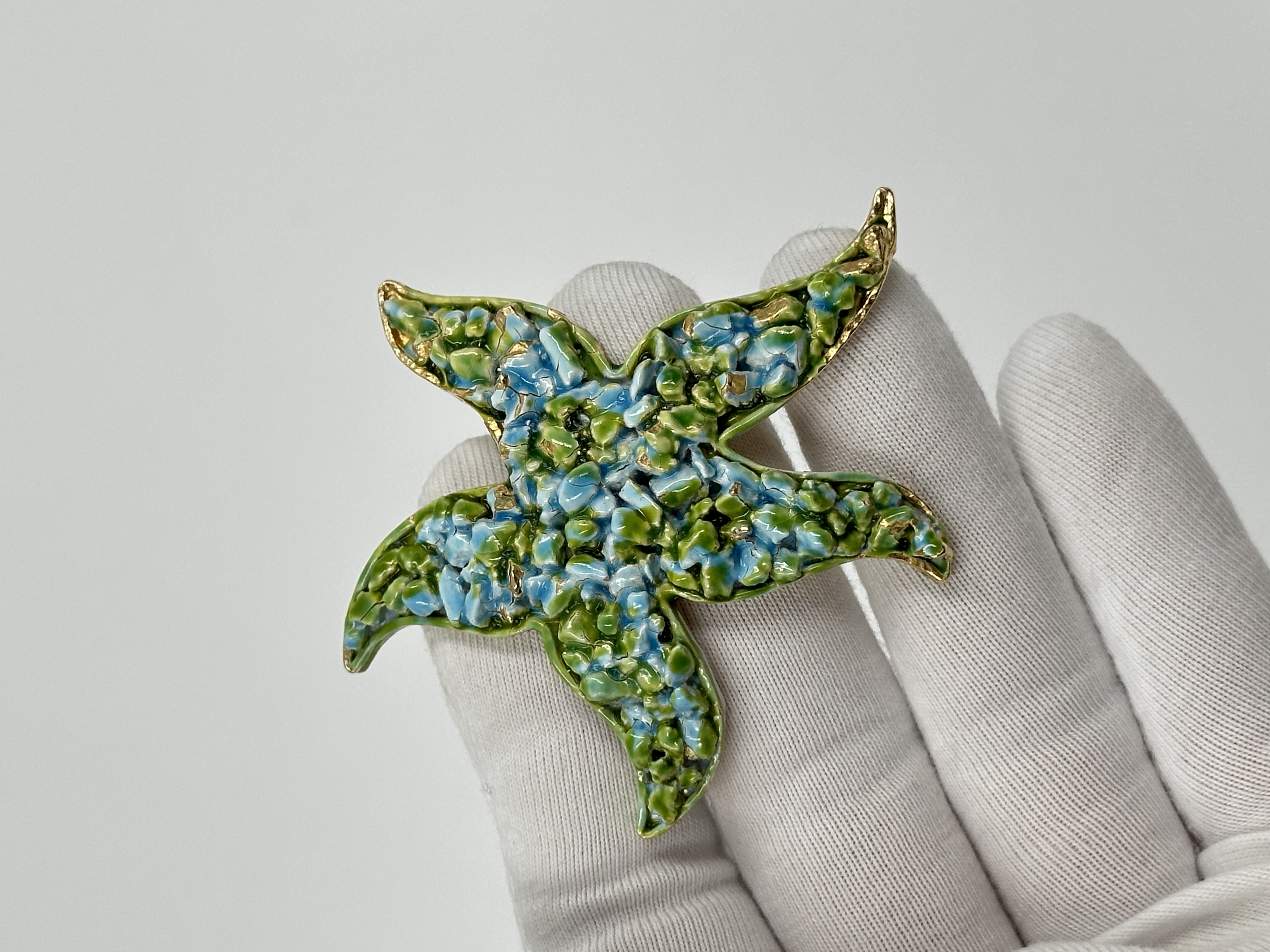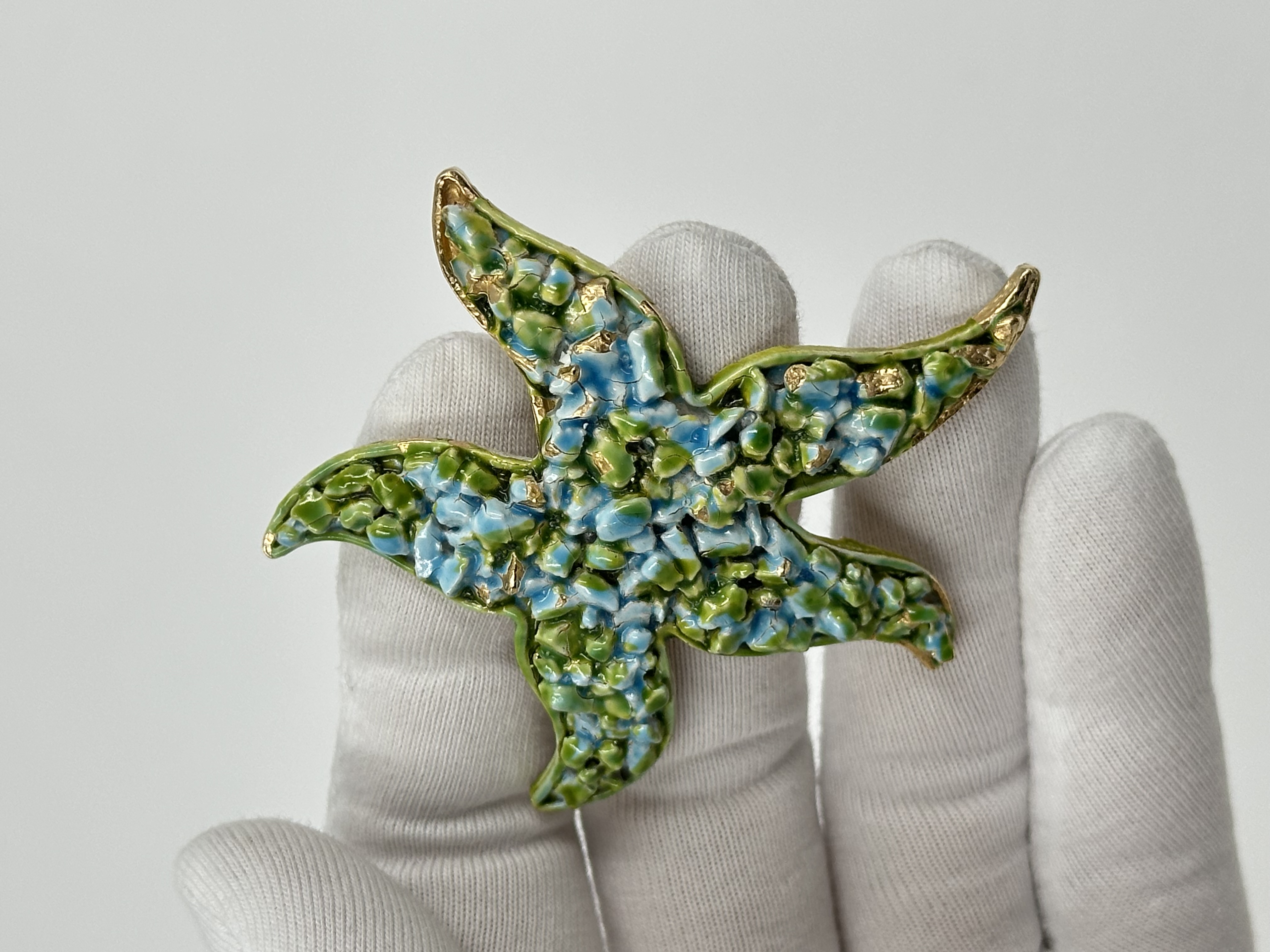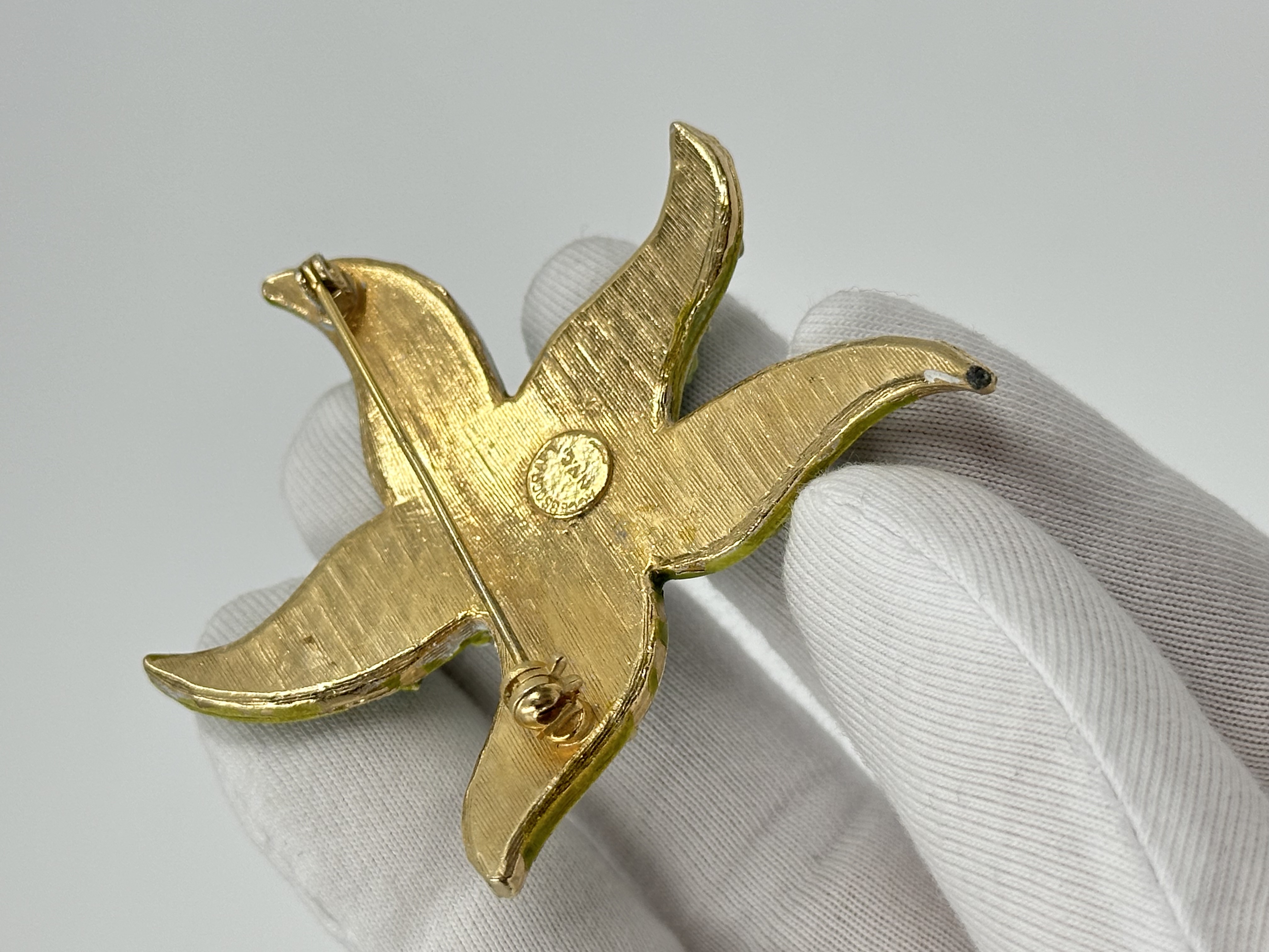 Бижутерный сплав, эмаль. Присутствуют сколы эмали, скол покрытия с обратной стороны.