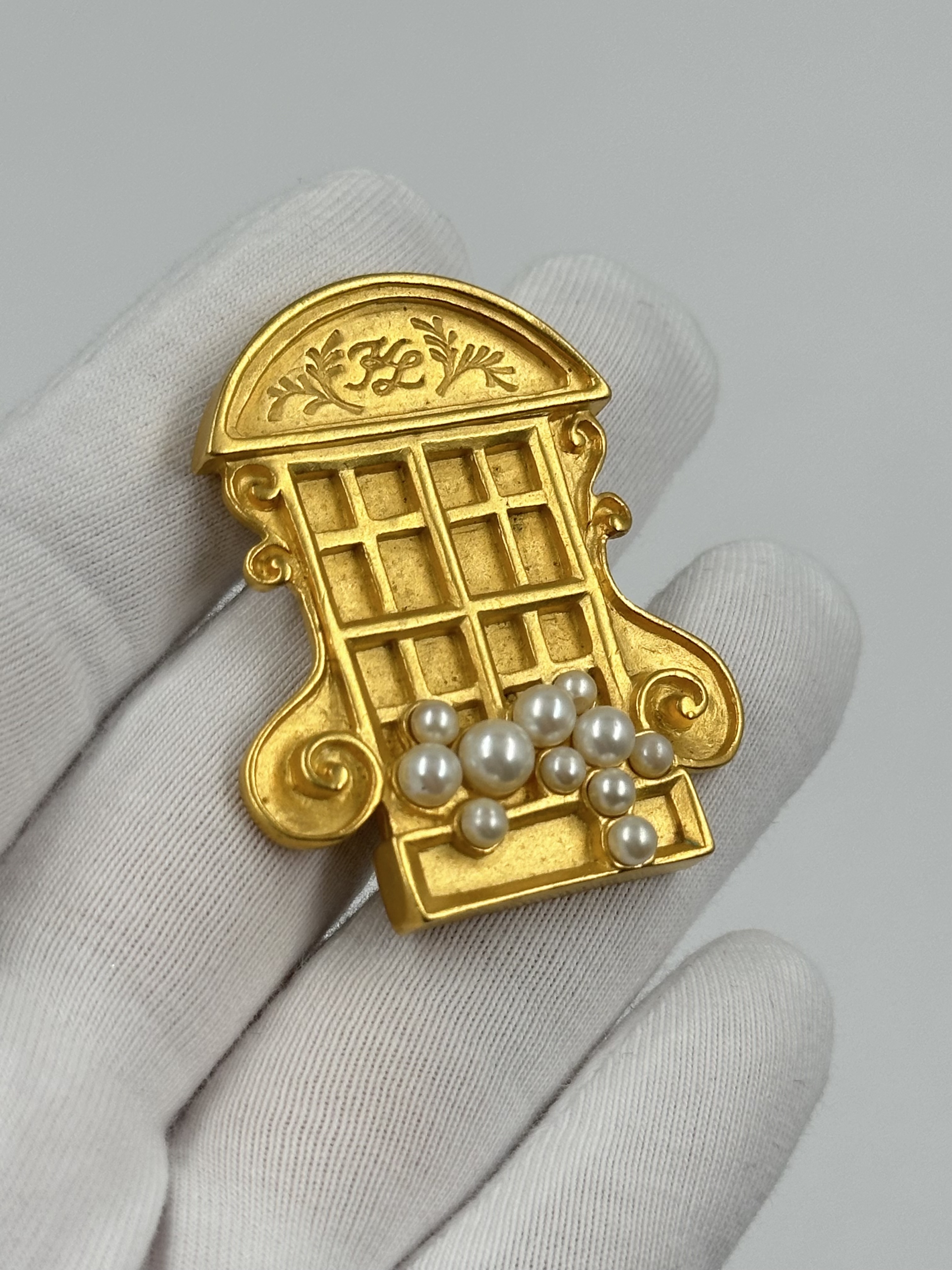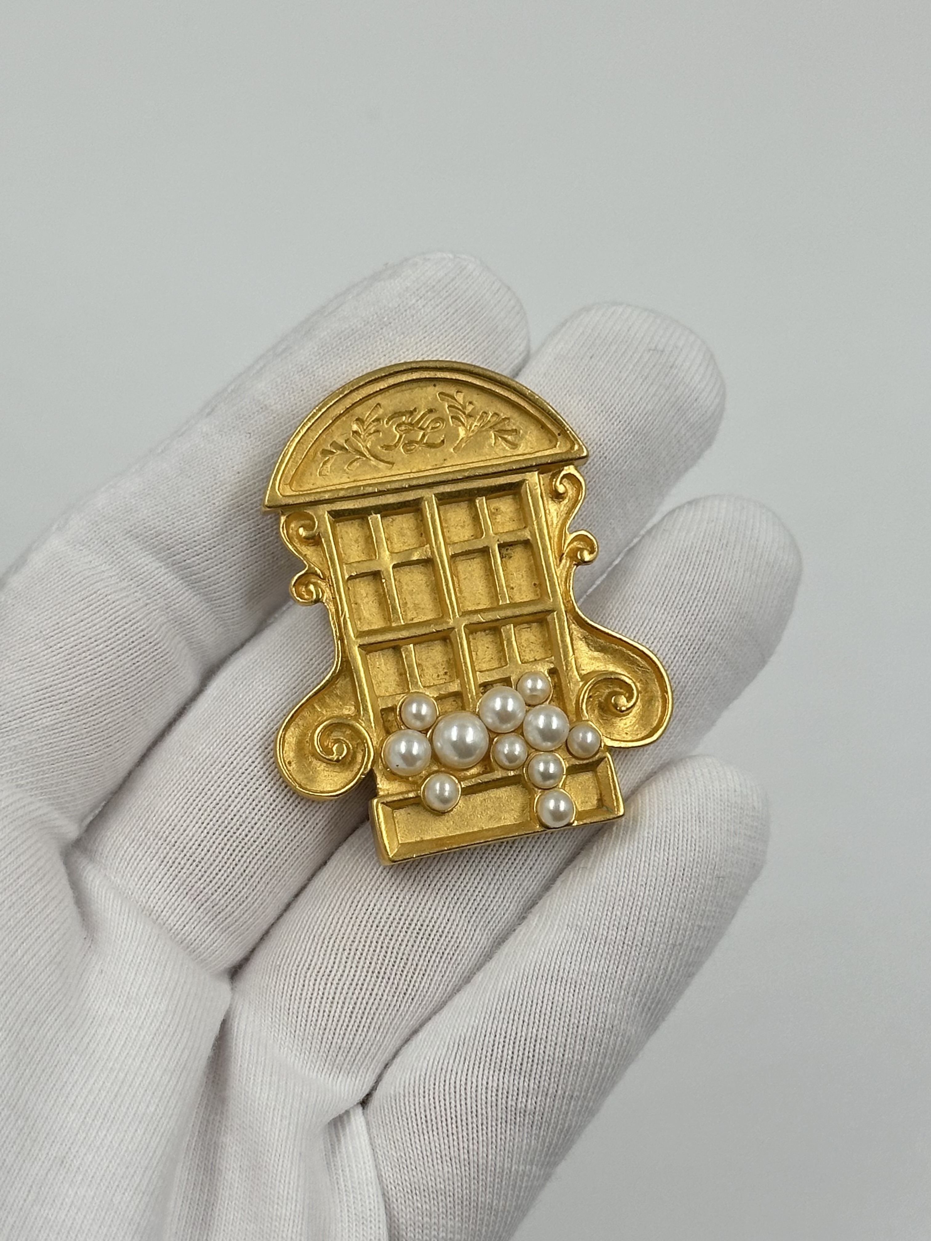 Бижутерный сплав, позолота, имитация жемчуга.