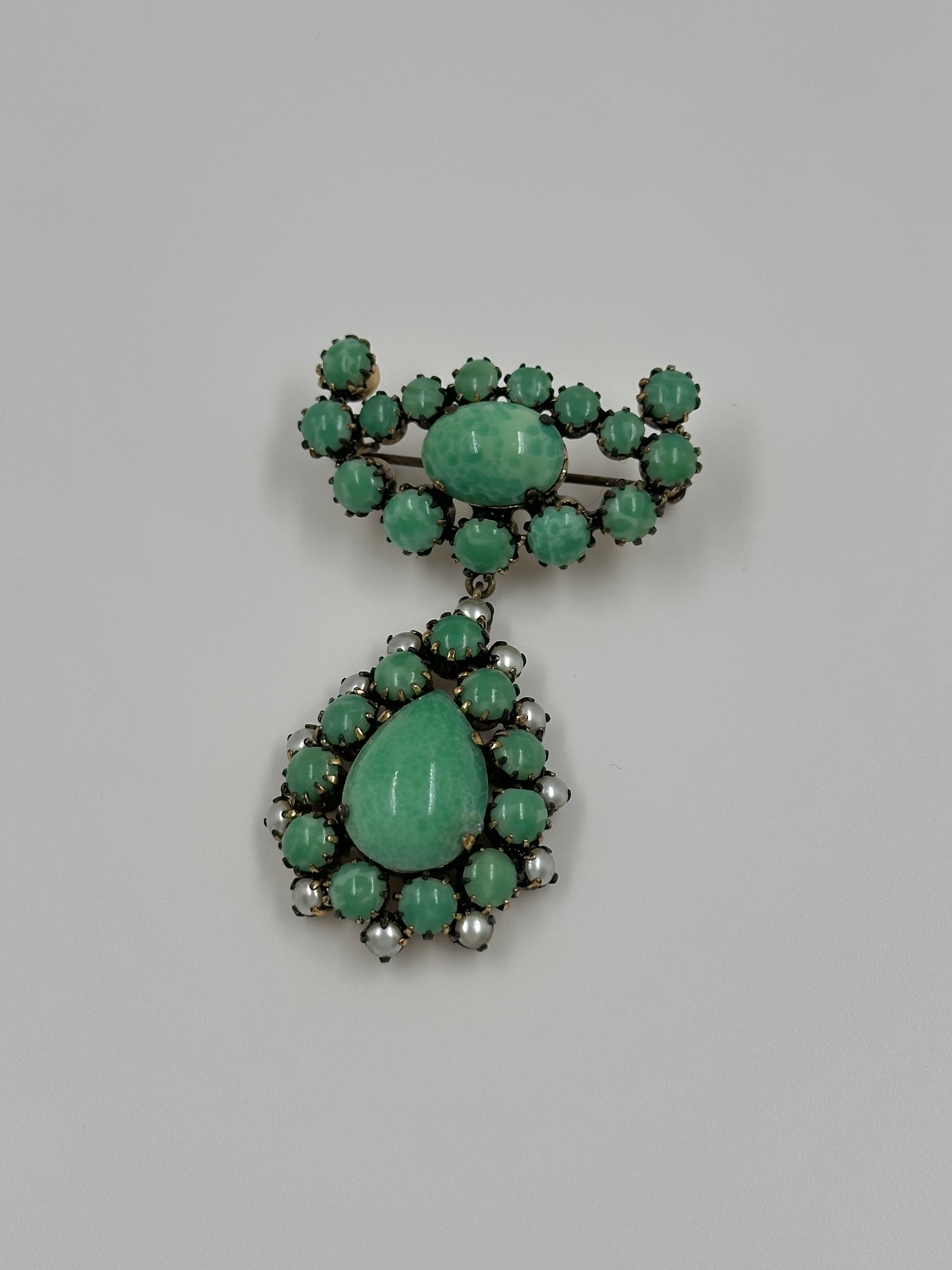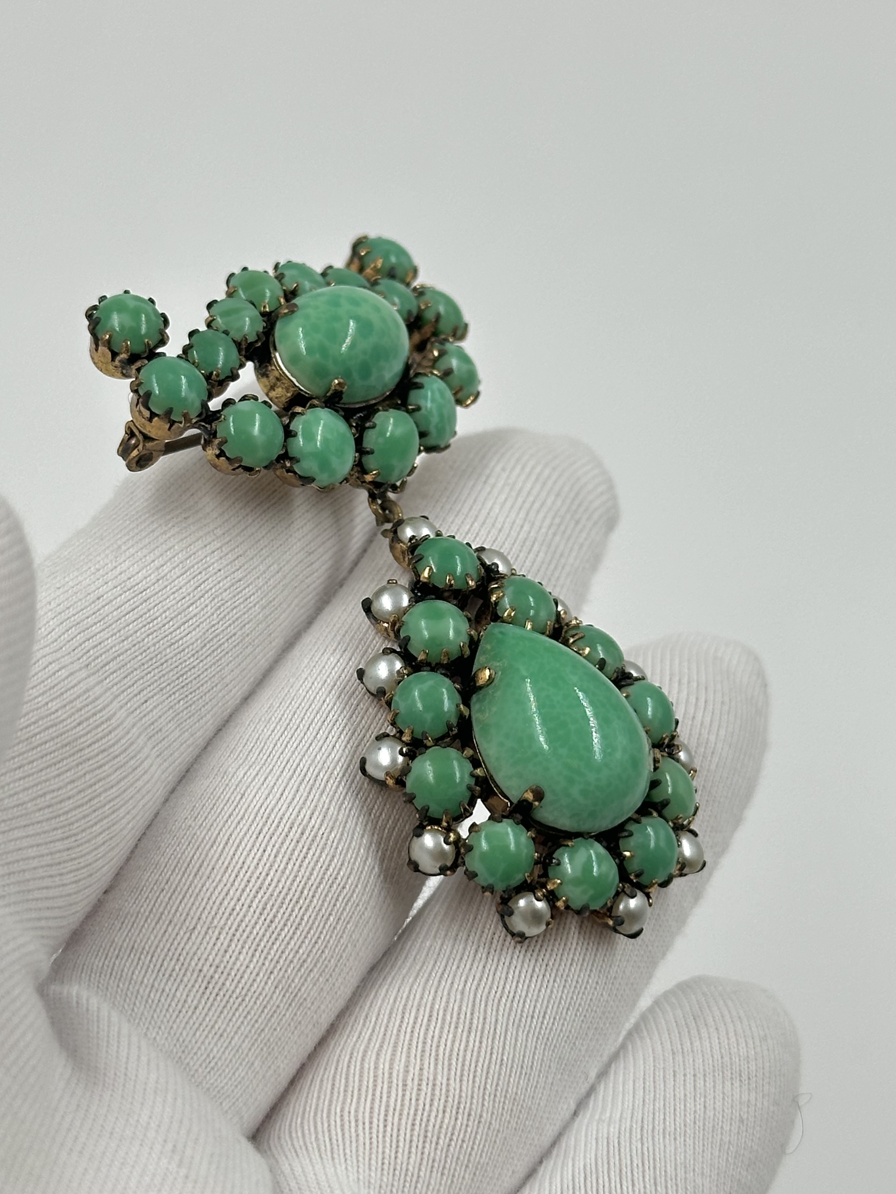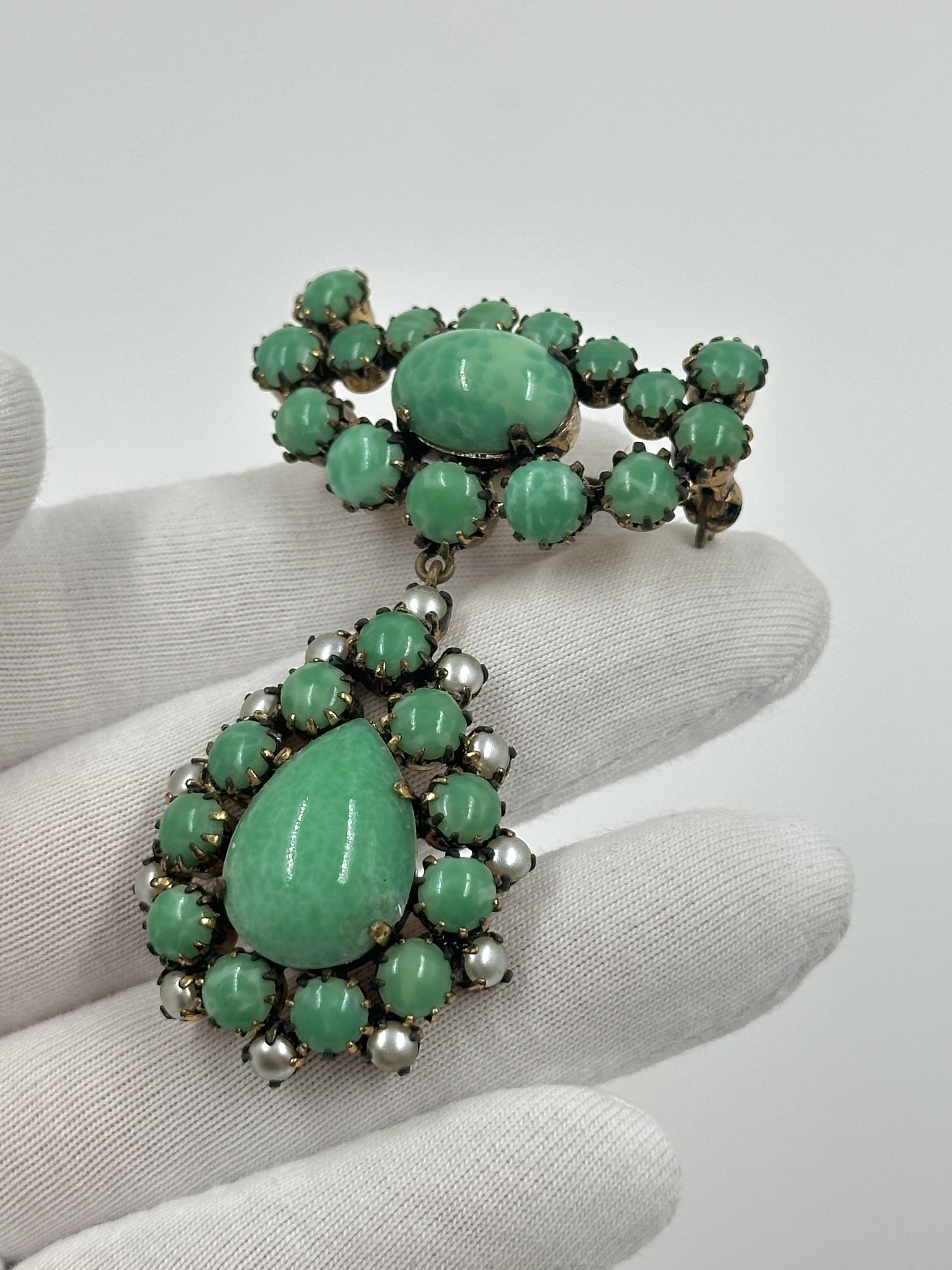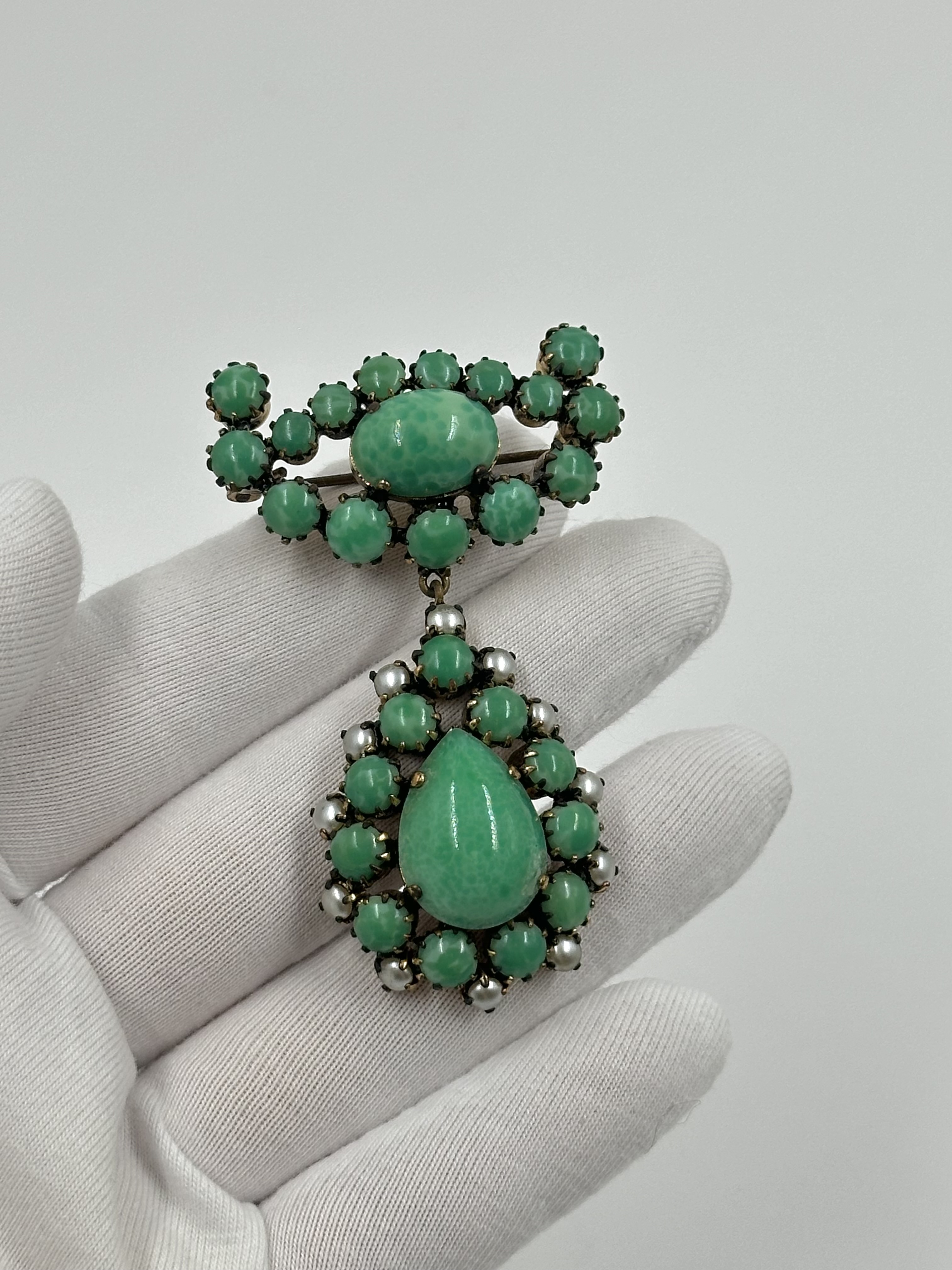 Бижутерный сплав, "пекинское" стекло (декоративное стекло изготавливаемое по многослойной технике с последующей резьбой, зародившееся в Китае в конце 17 века).