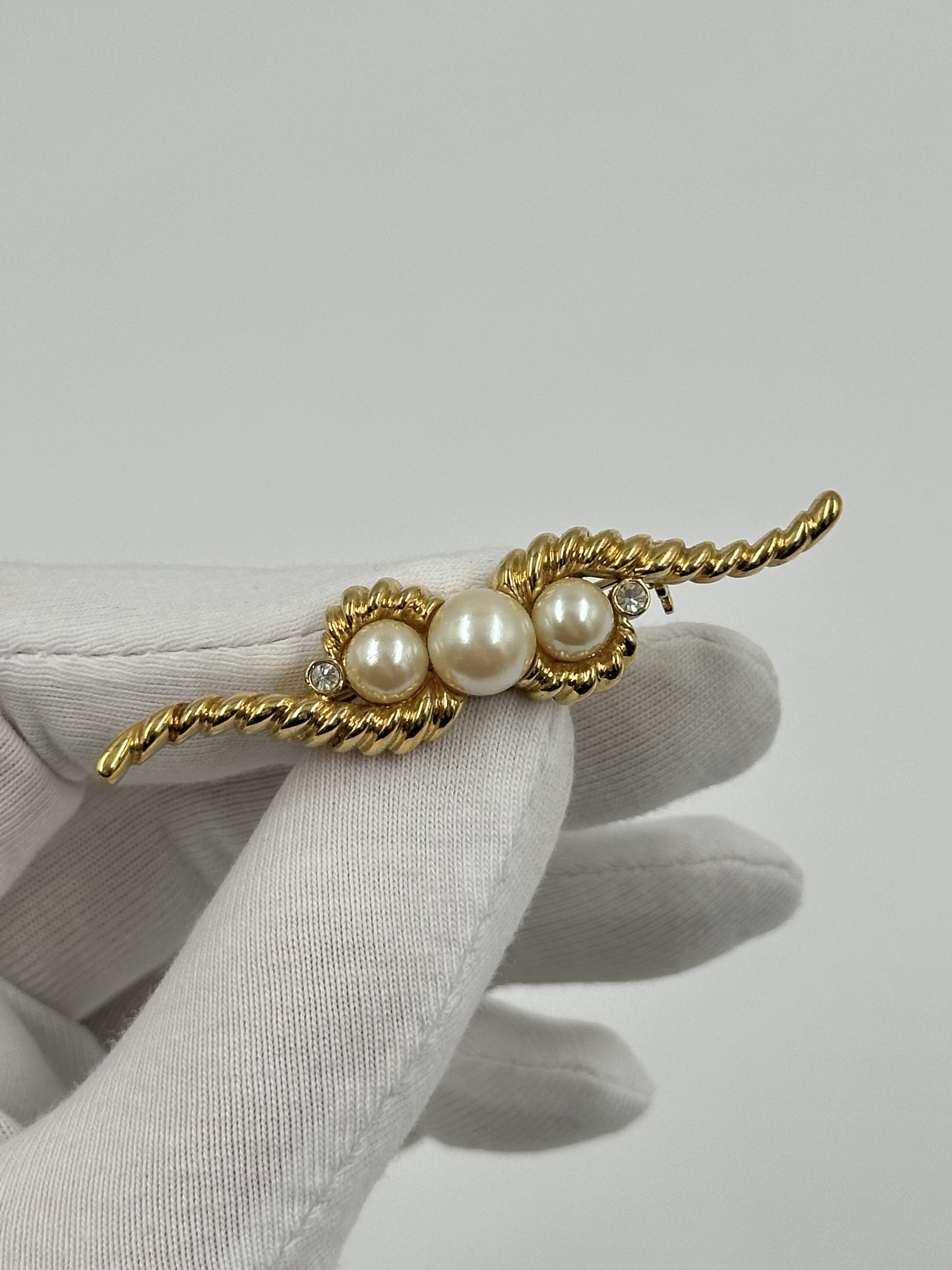 Бижутерный сплав, имитация жемчуга, кристаллы. Размер 5,8см.