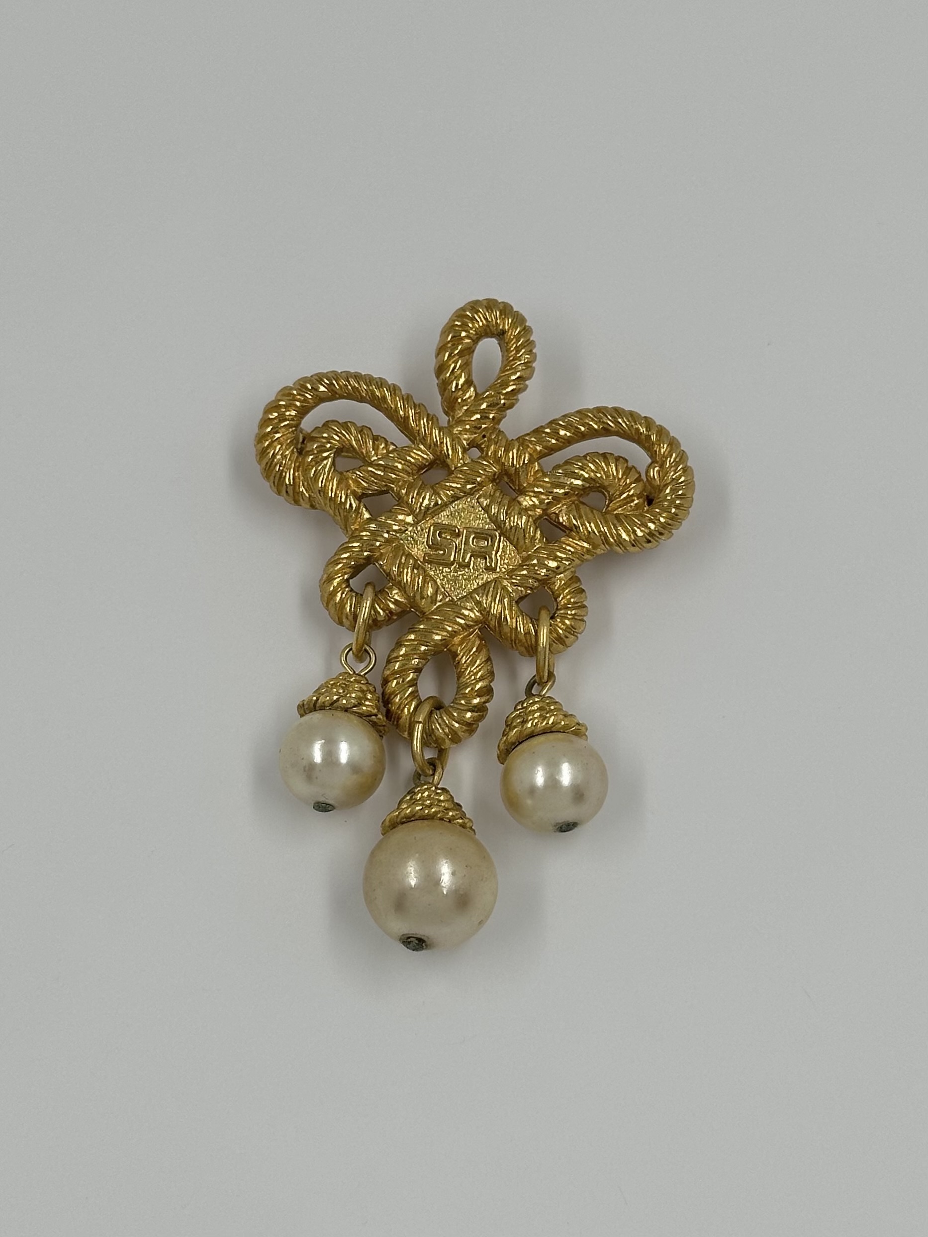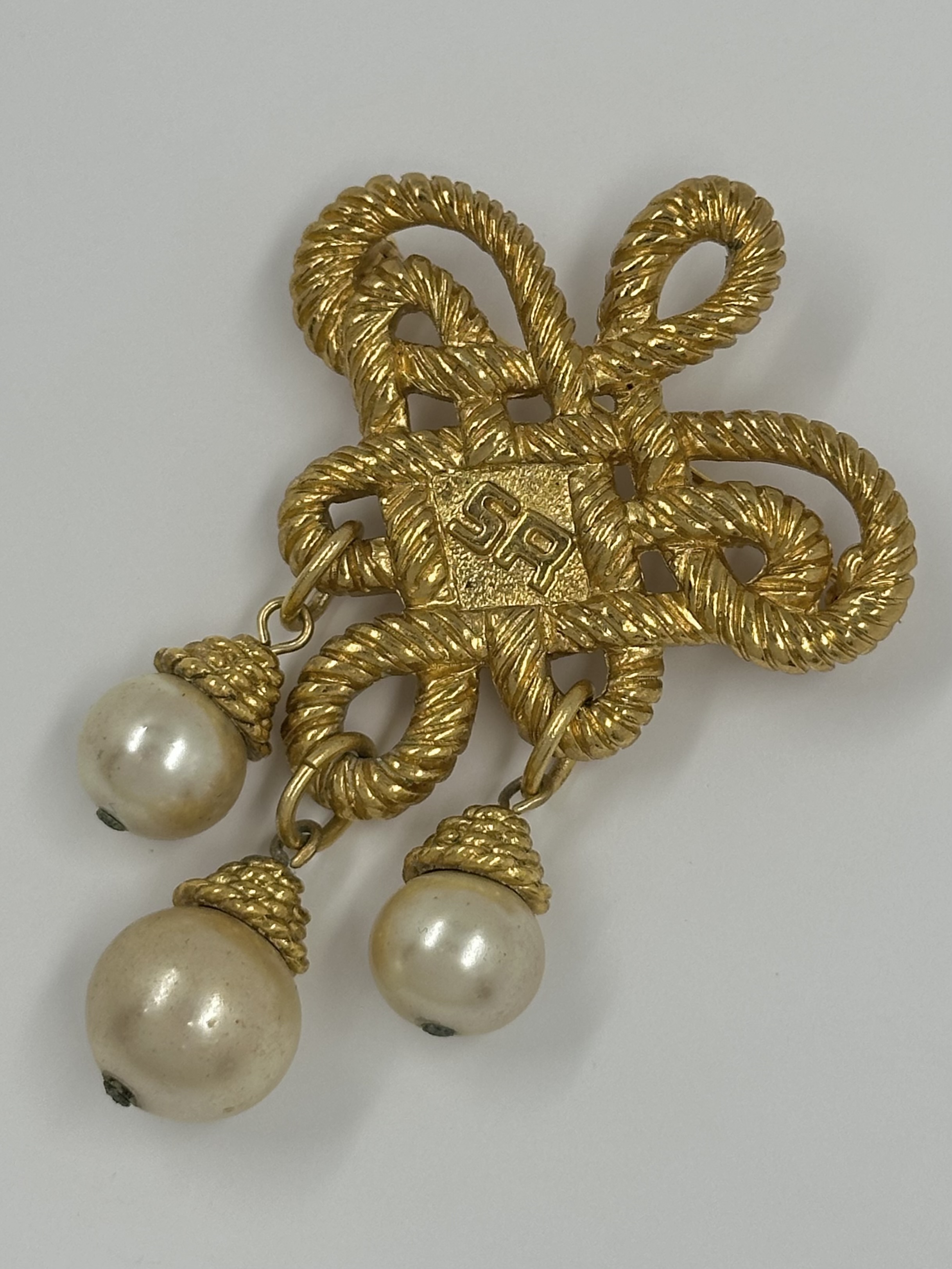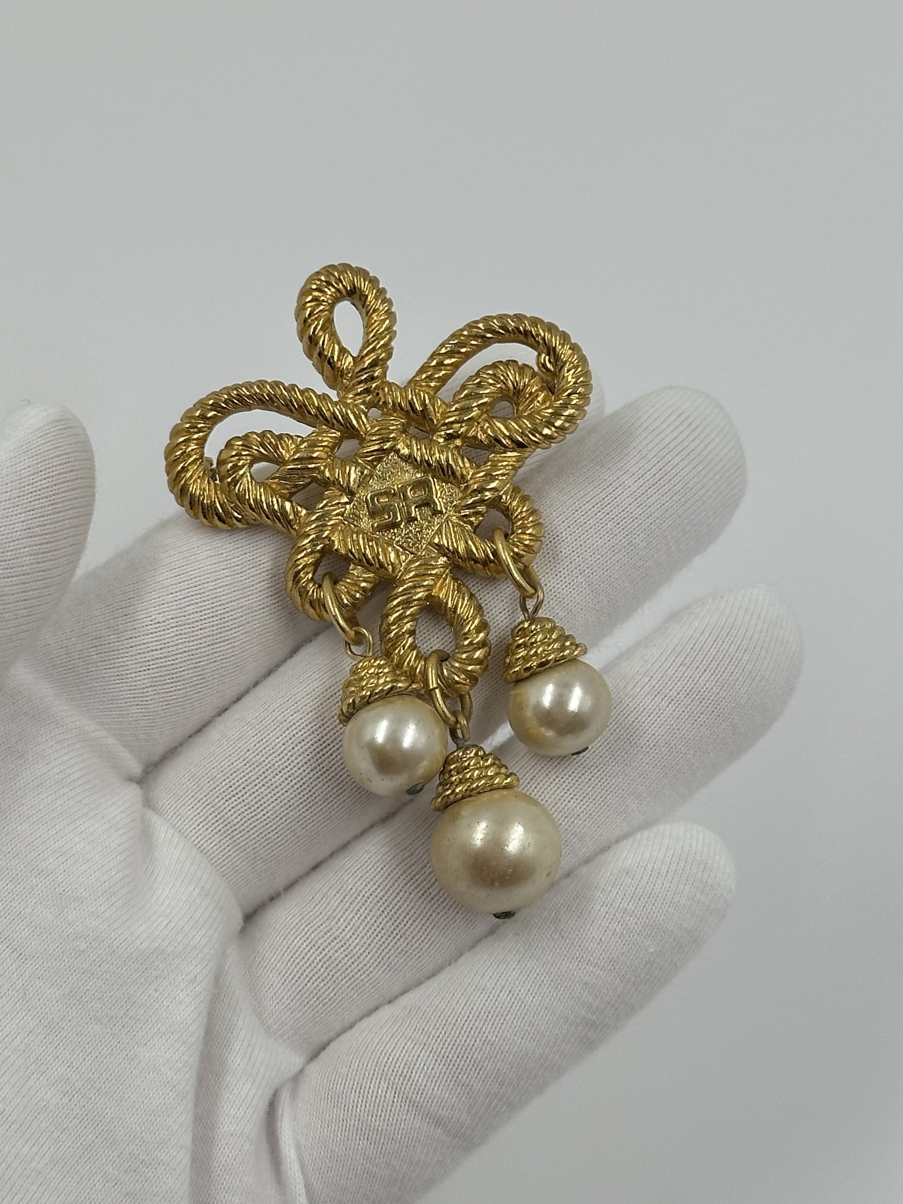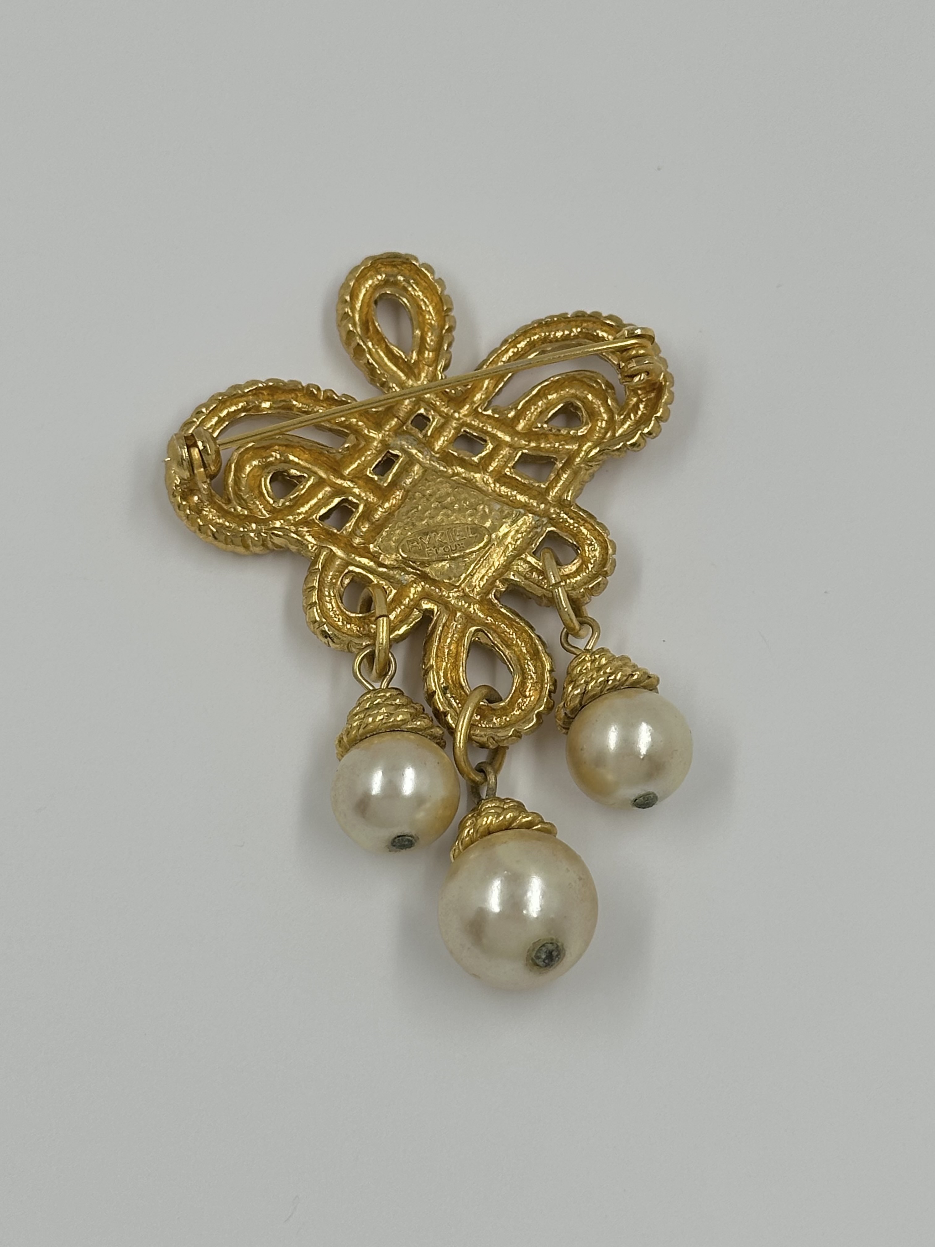 Бижутерный сплав, позолота, имитация жемчуга. На бусинах присутствуют следы времени, патина. Размер 4,4 х 6,8см.
