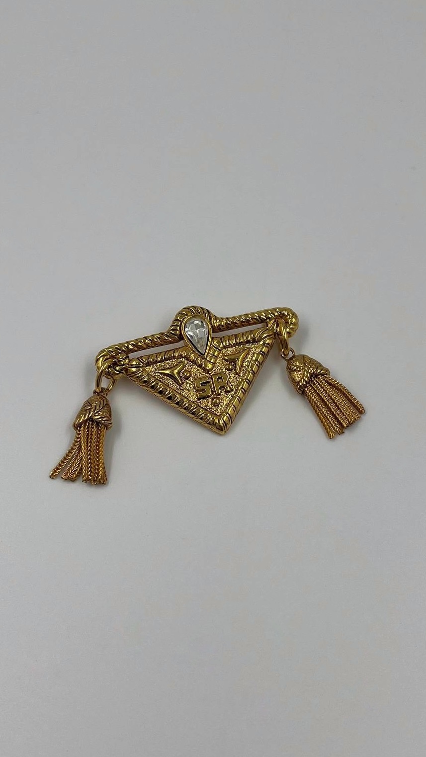Бижутерный сплав, позолота, кристалл. Размер 5,5 х 3,7см.