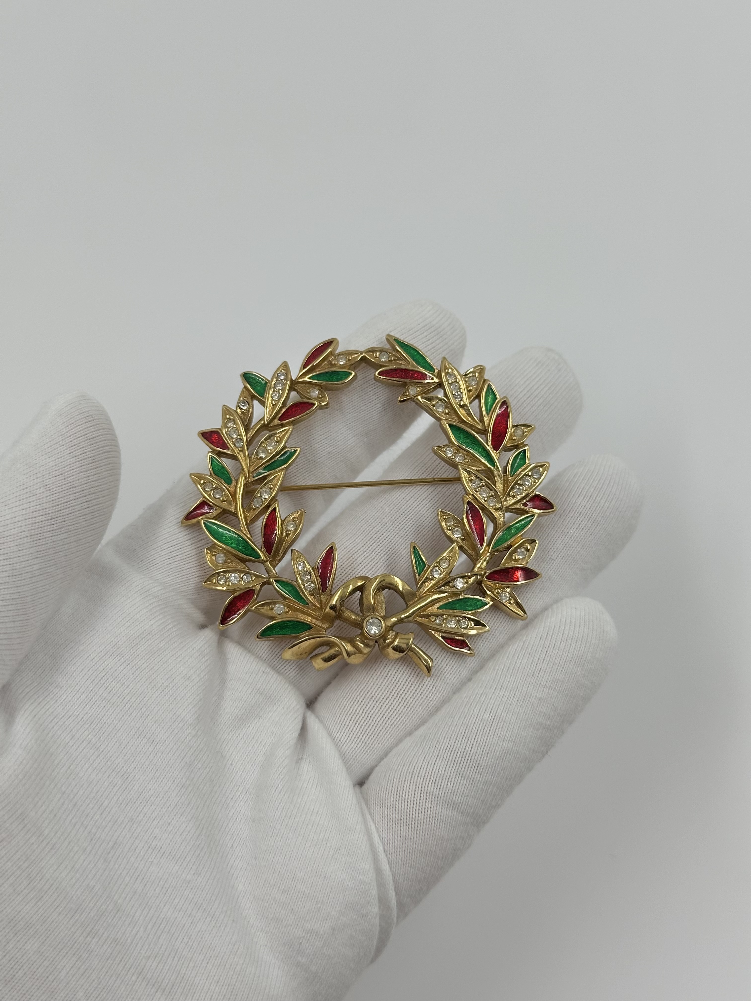 Бижутерный сплав, позолота, эмаль. кристаллы. Размер 5,5 x 5,7см.