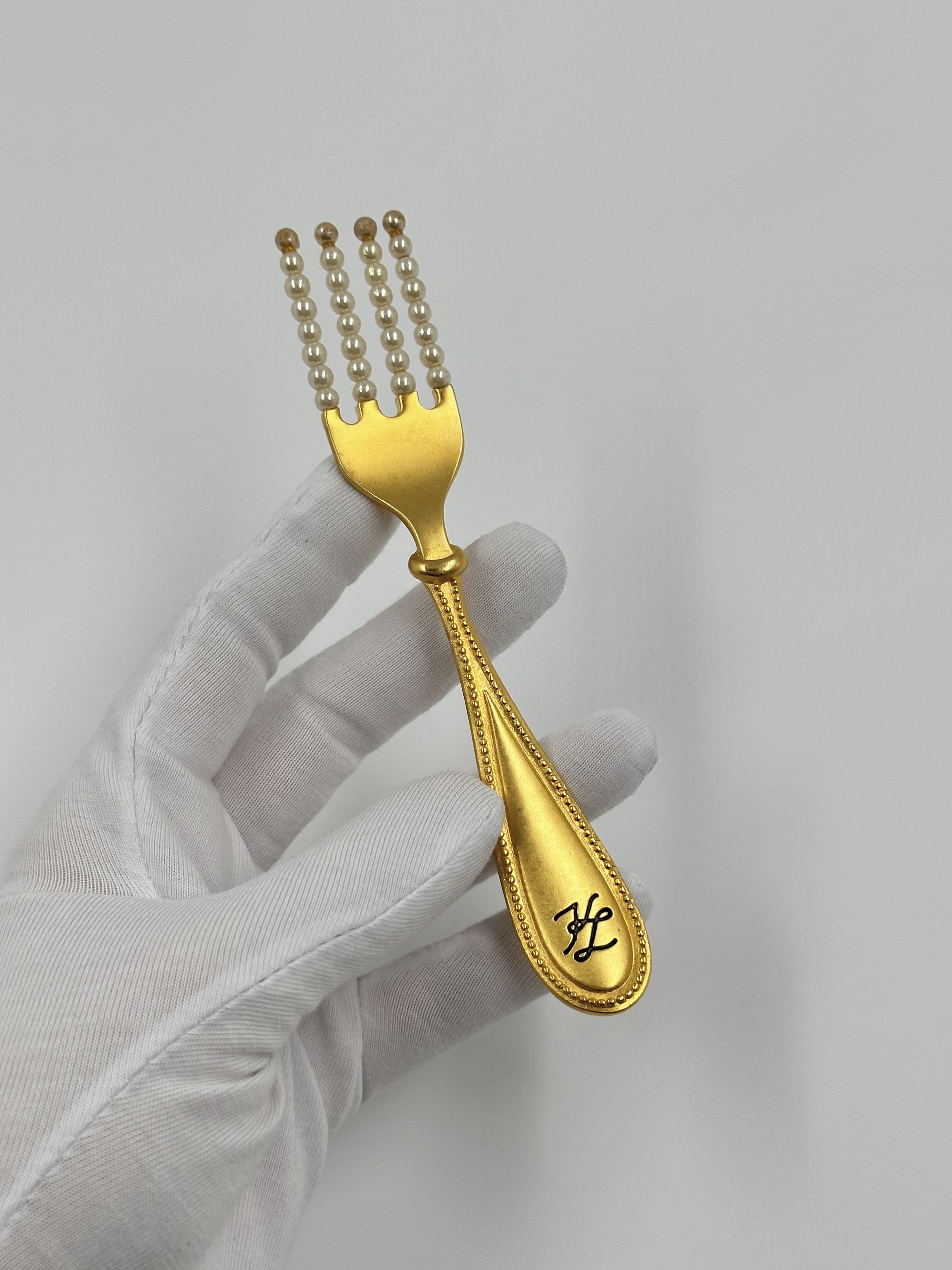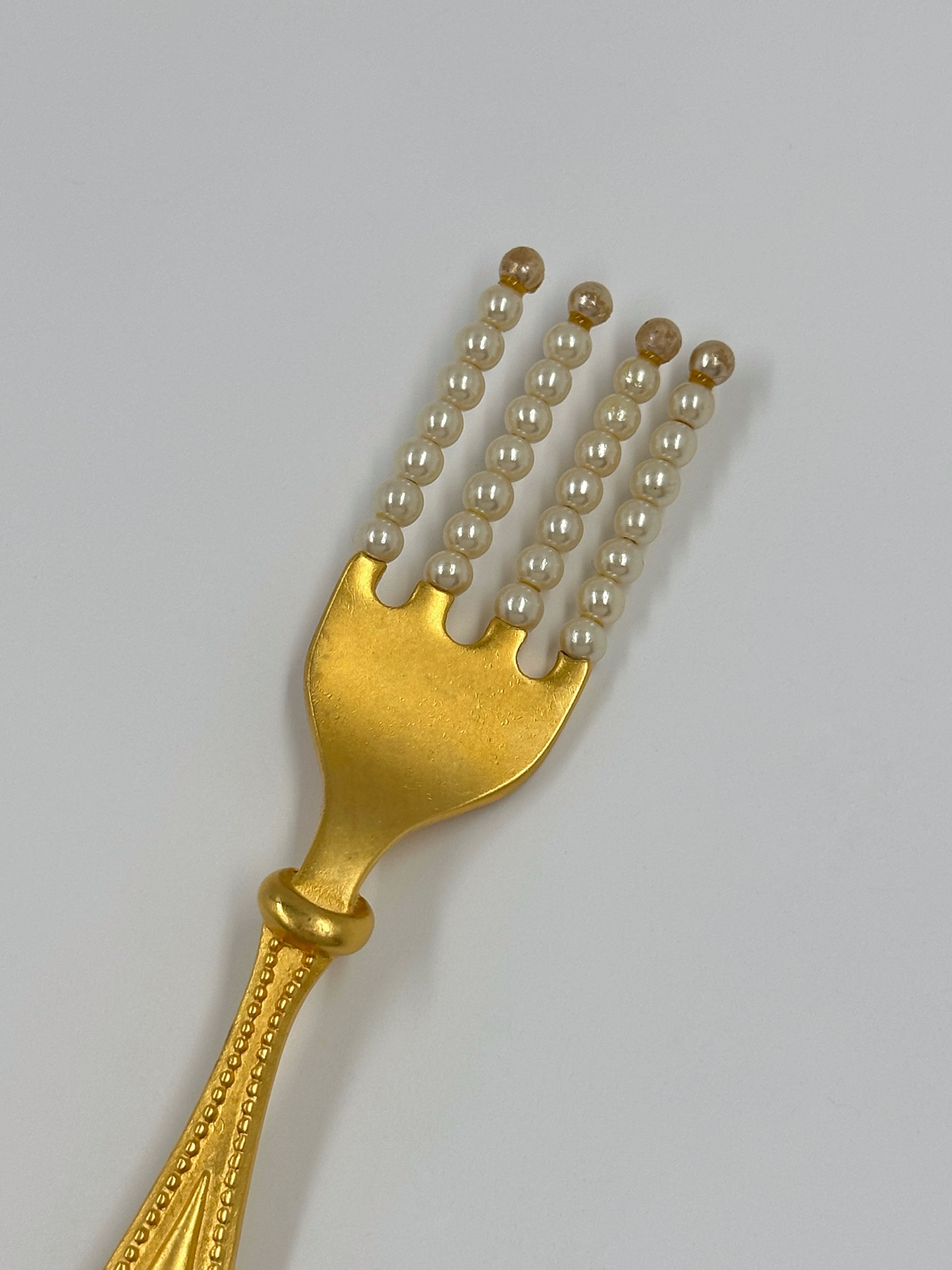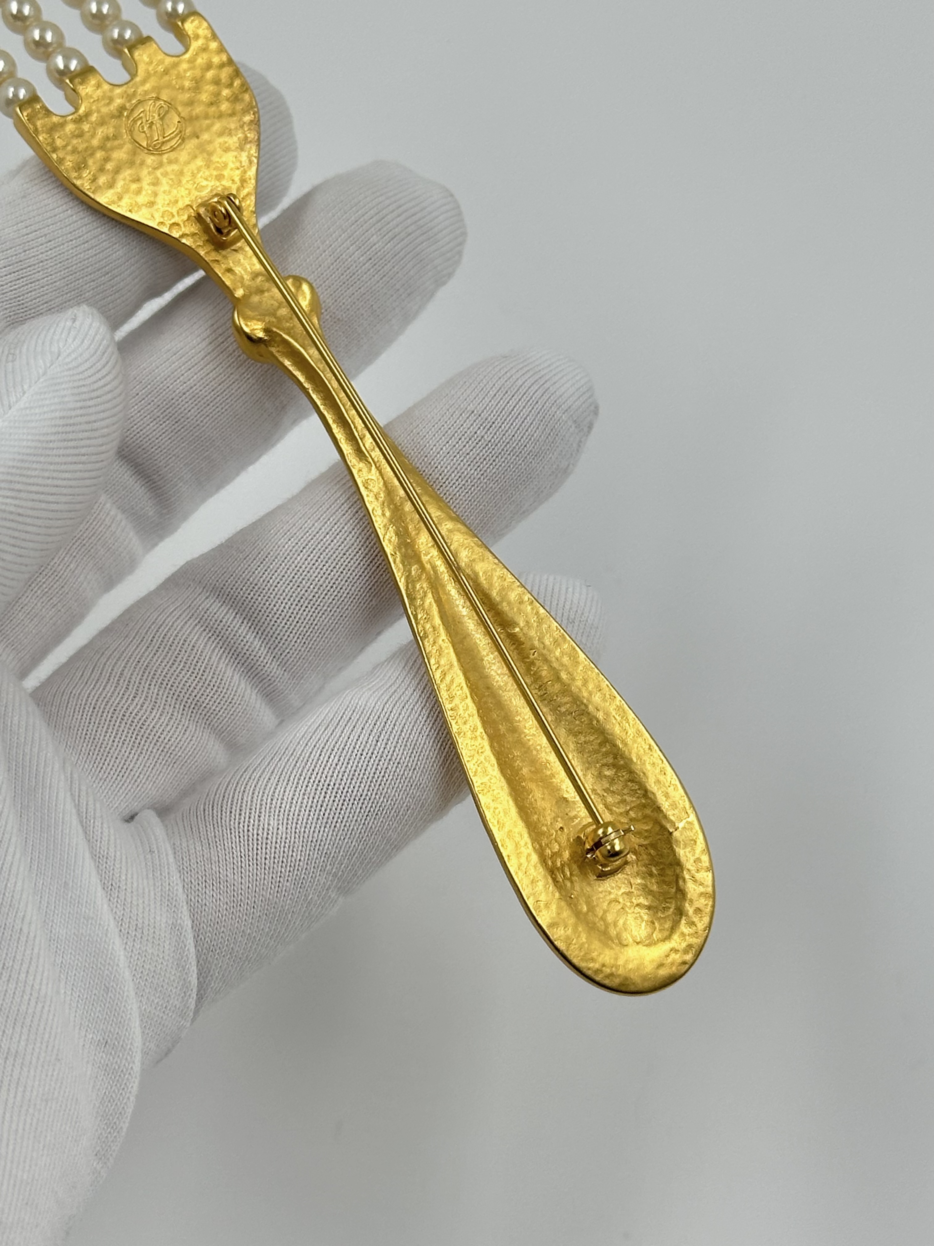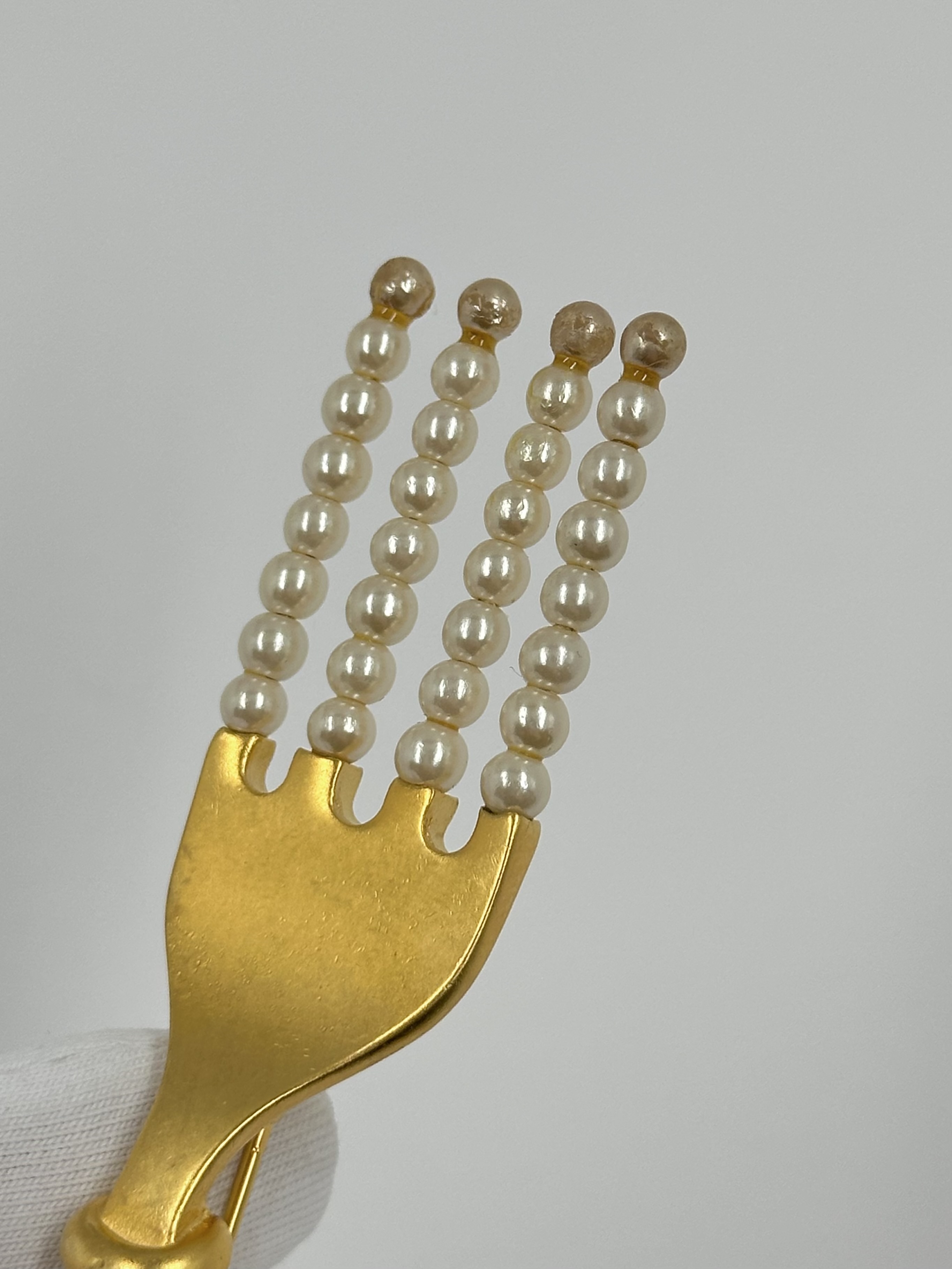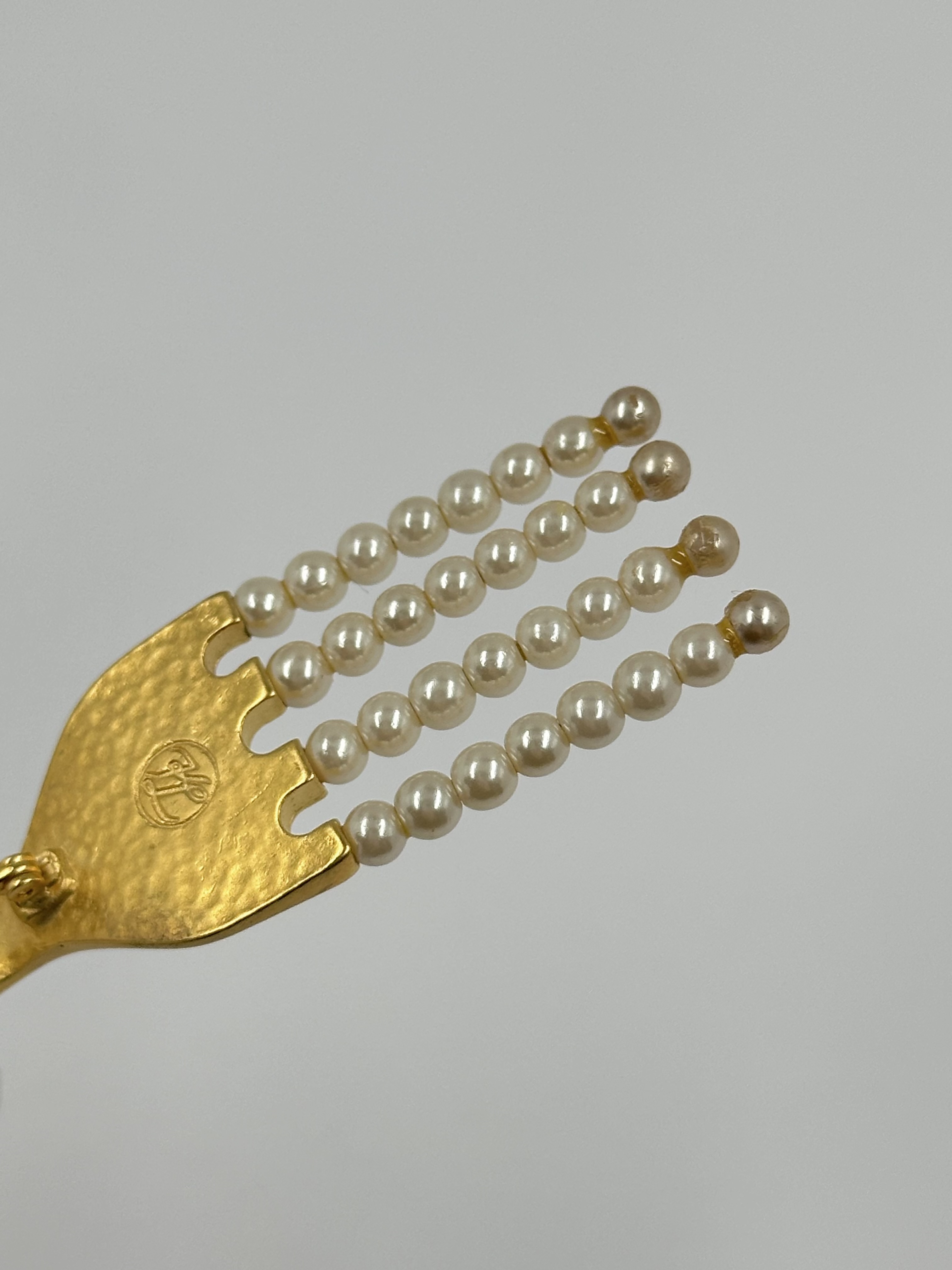 Бижутерный сплав, позолота, имитация жемчуга. На бусинах присутствуют сходы покрытия. Длина 13,6см.