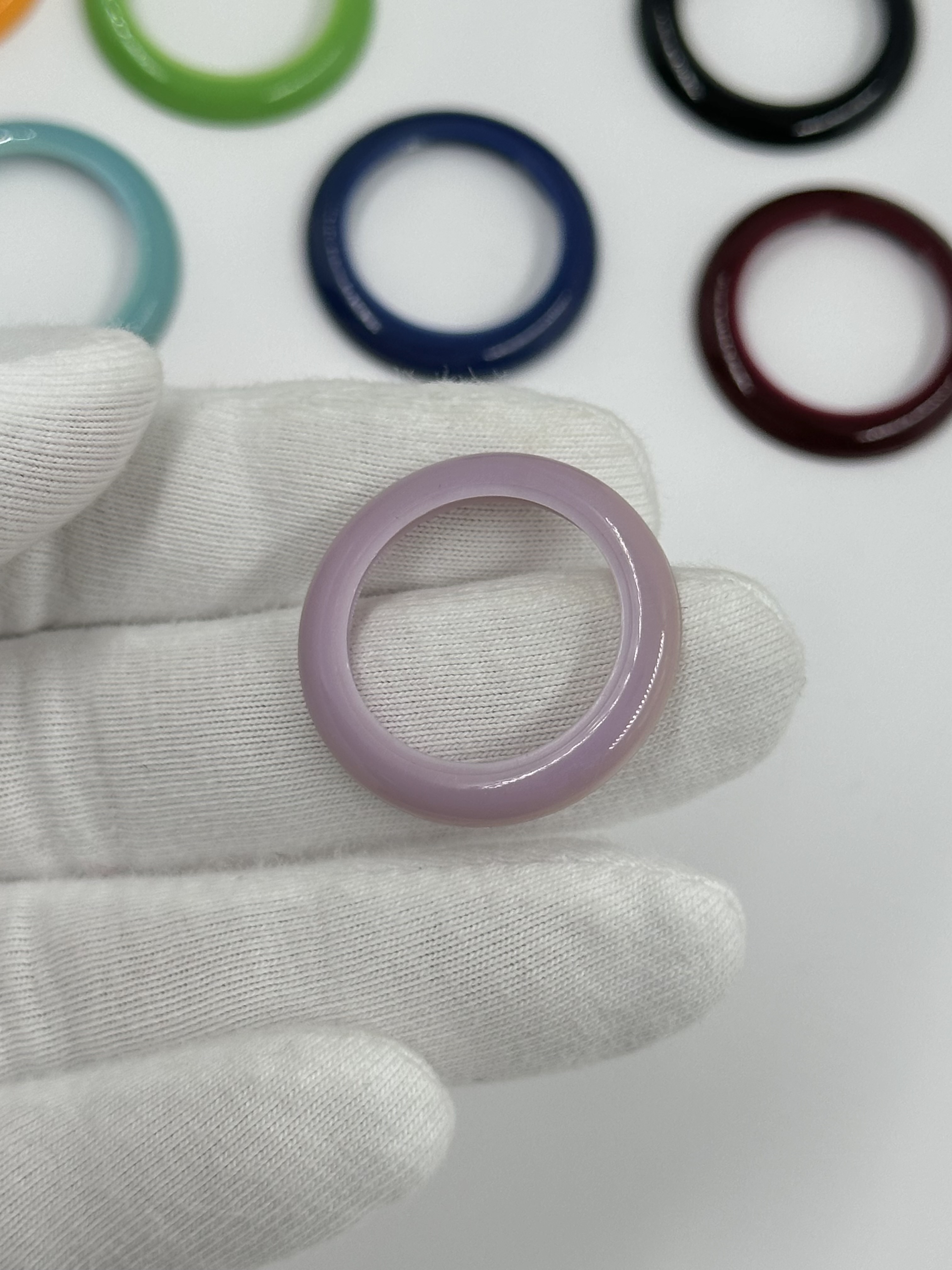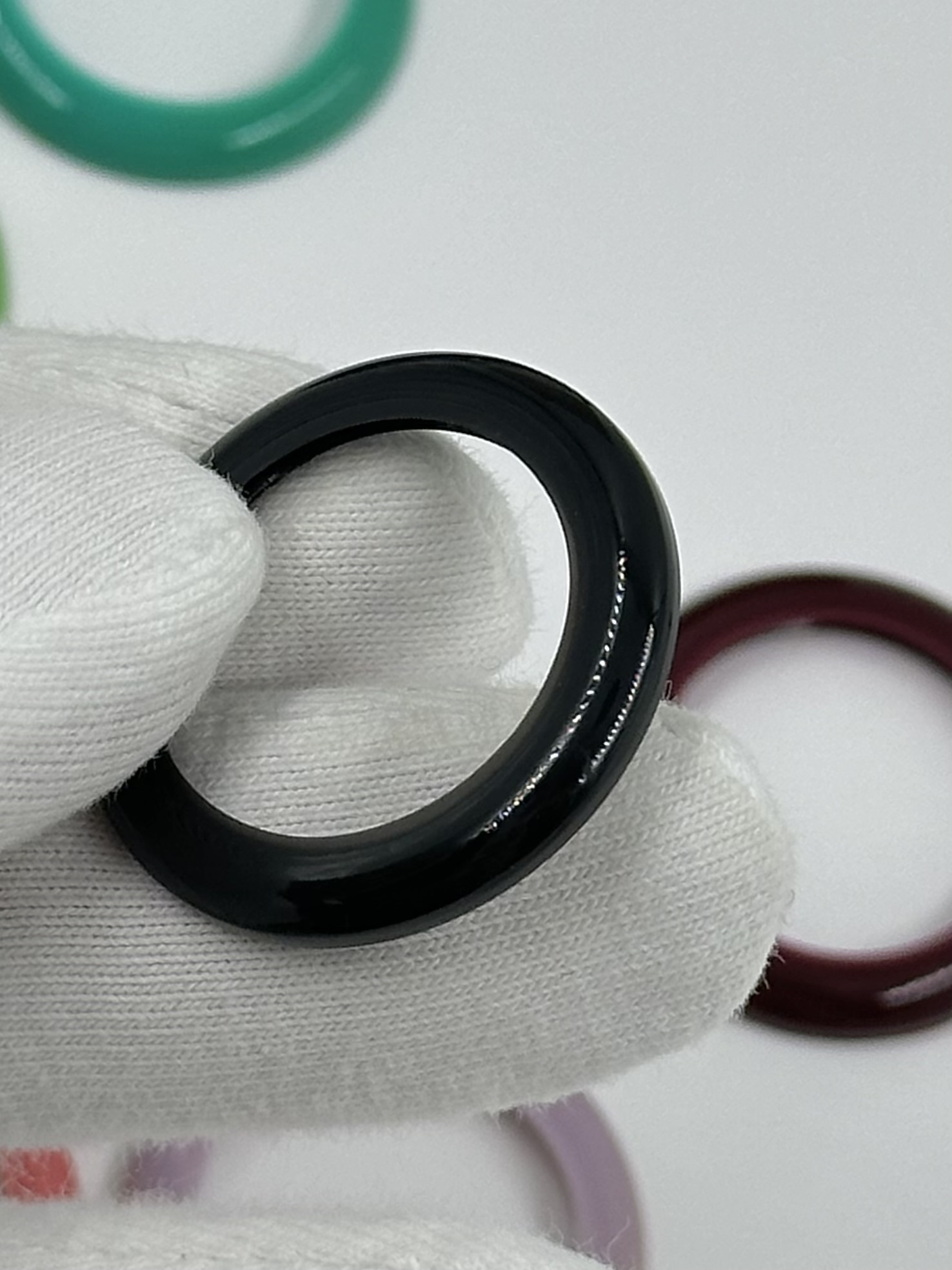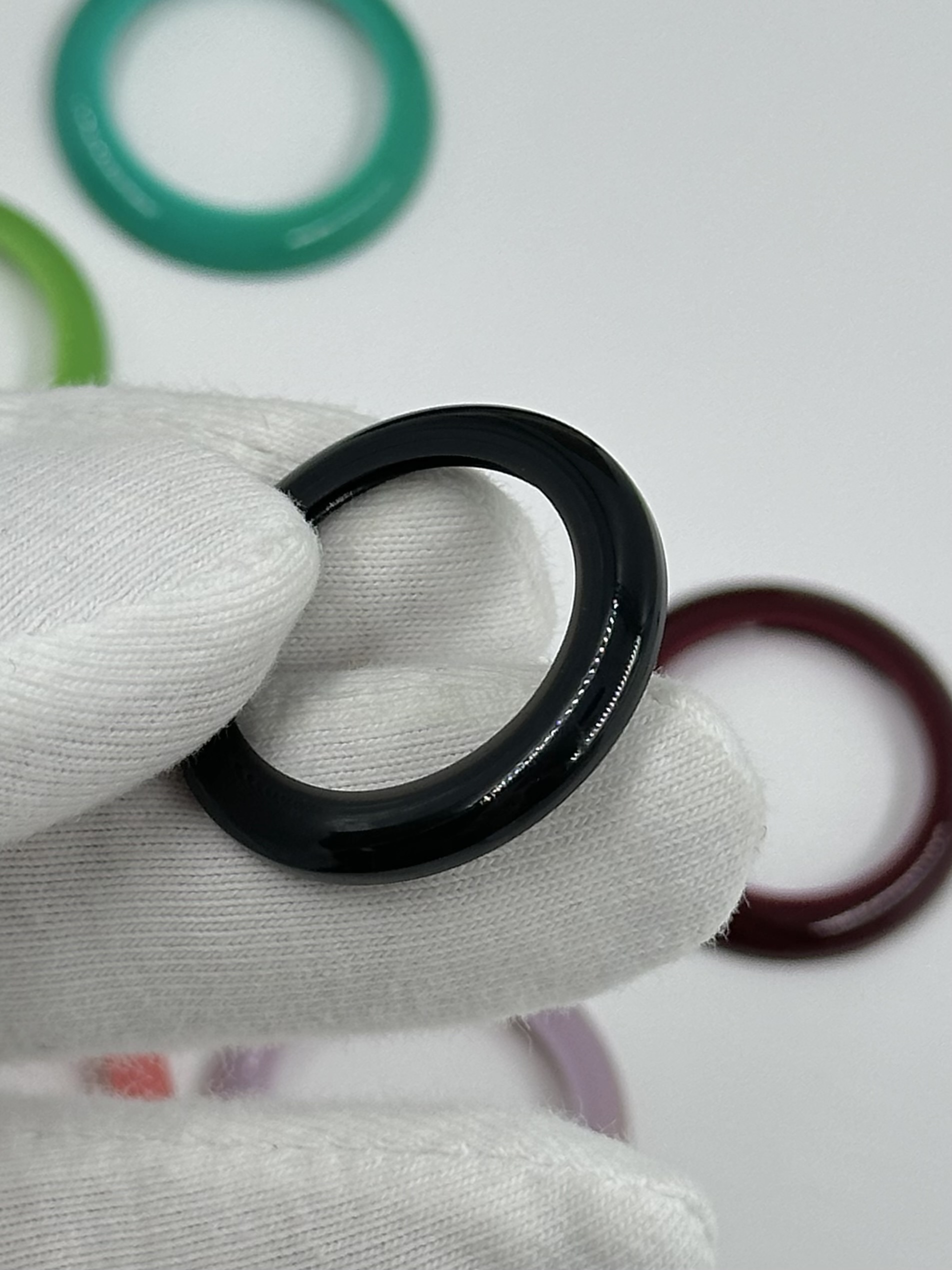 Потемнения на голубом и сиреневых кольцах. На чёрном небольшая царапина.