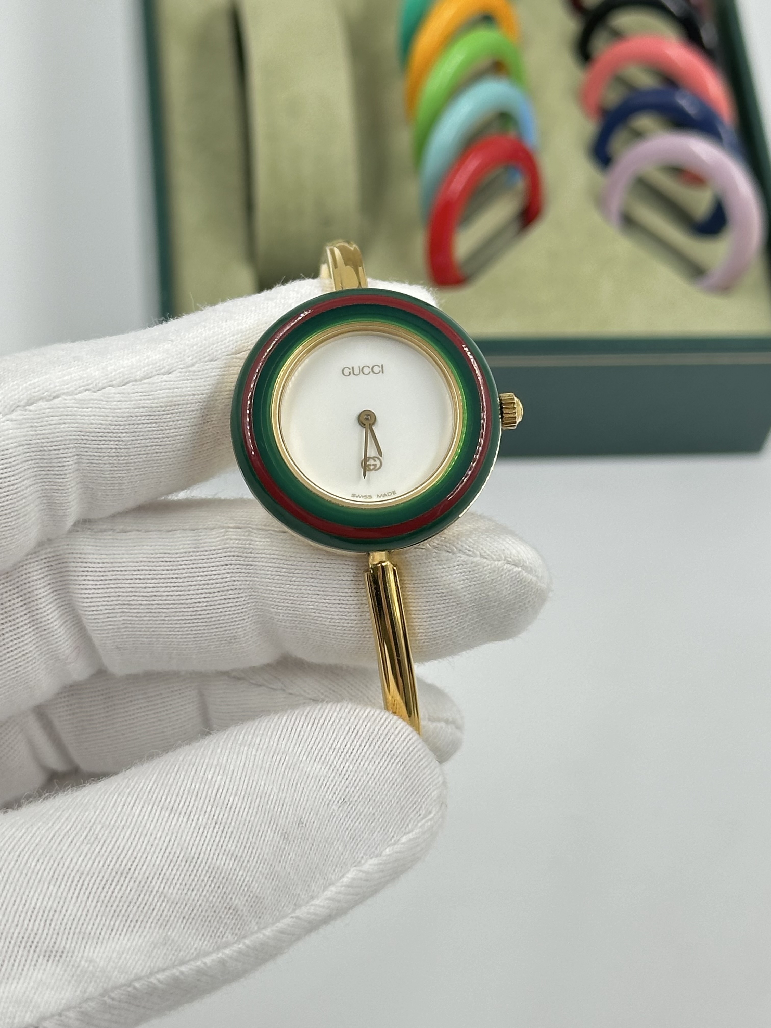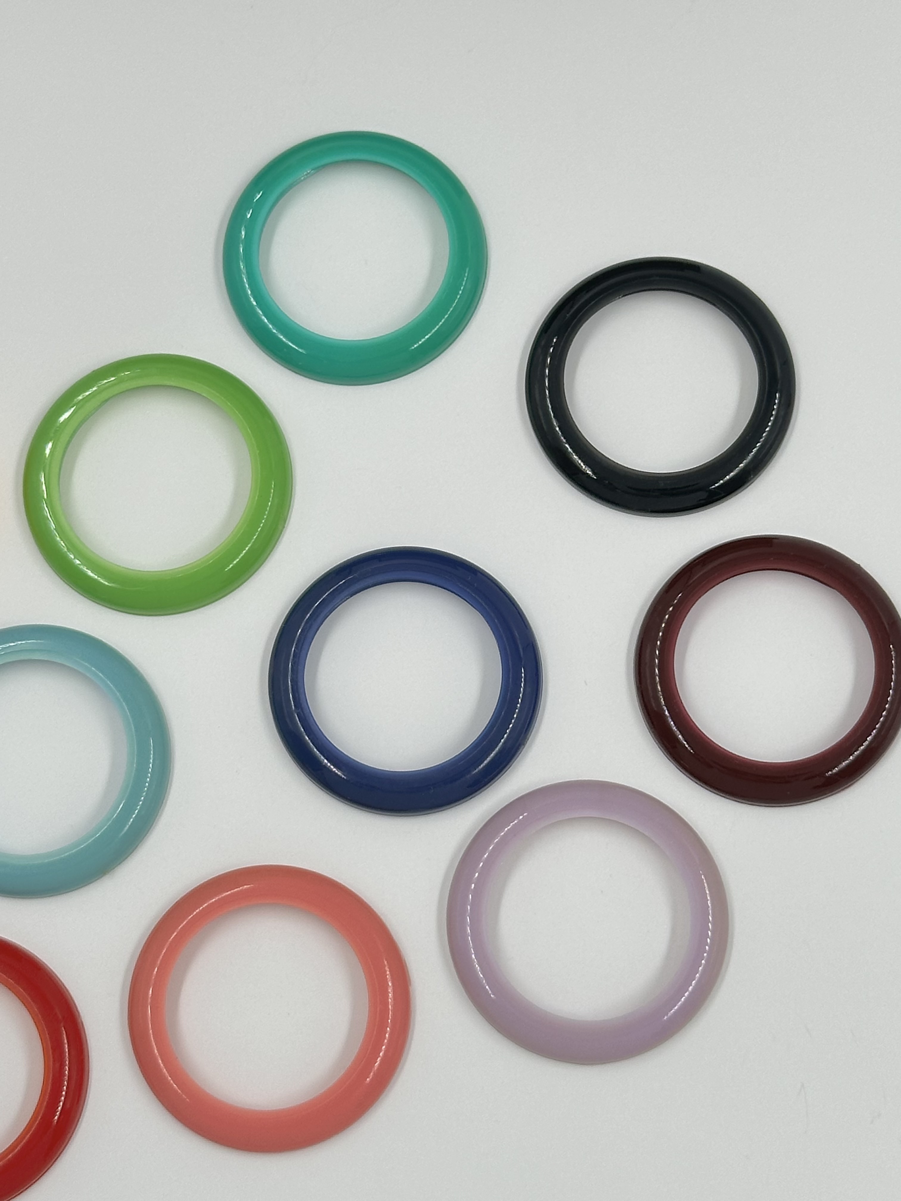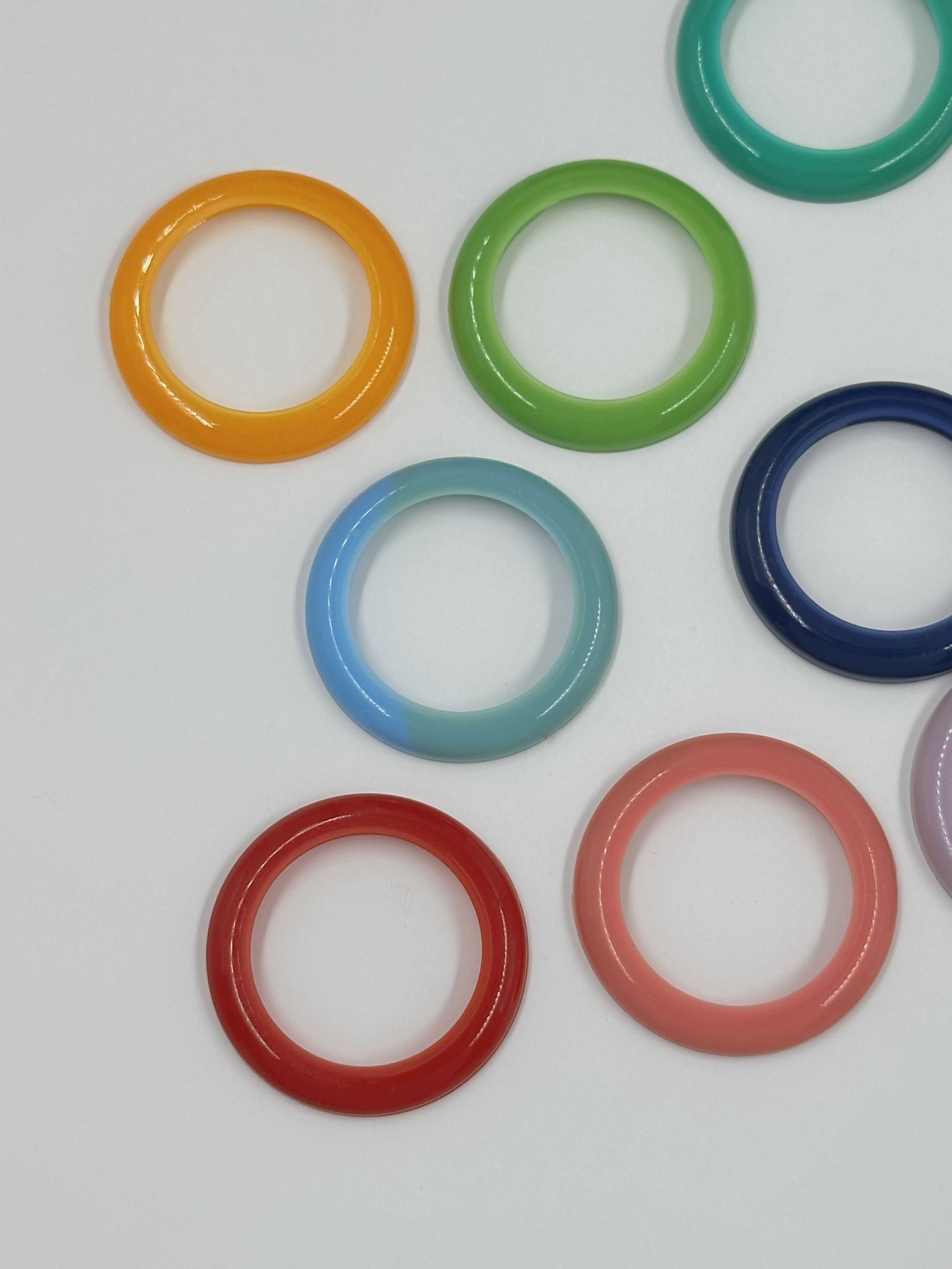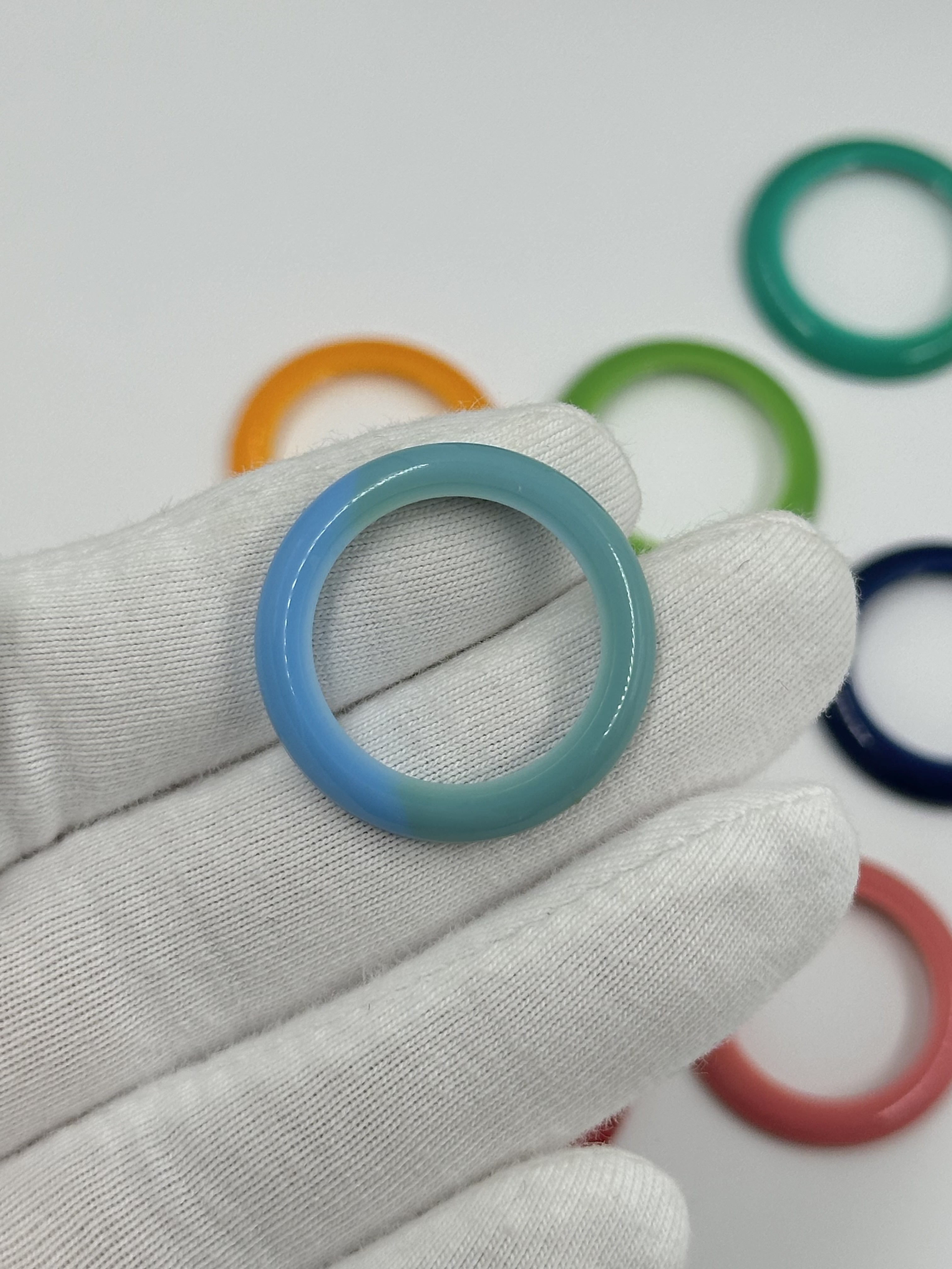 Потемнения на голубом и сиреневых кольцах. На чёрном небольшая царапина.