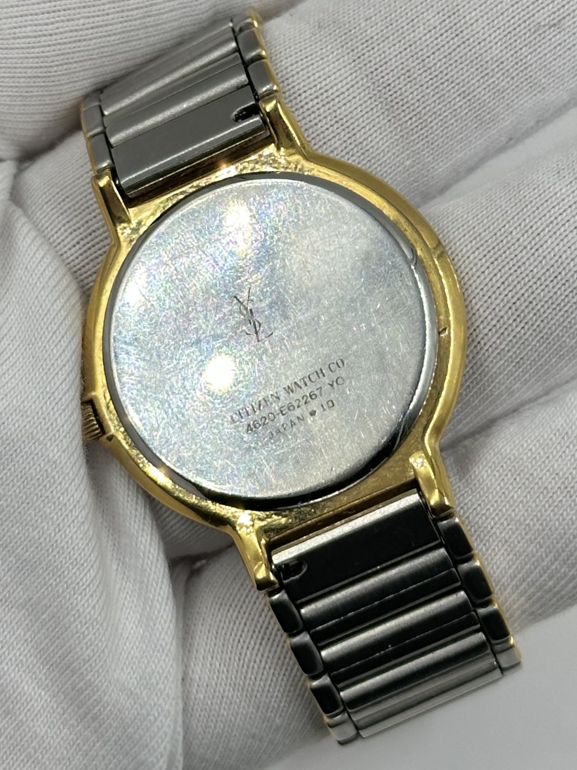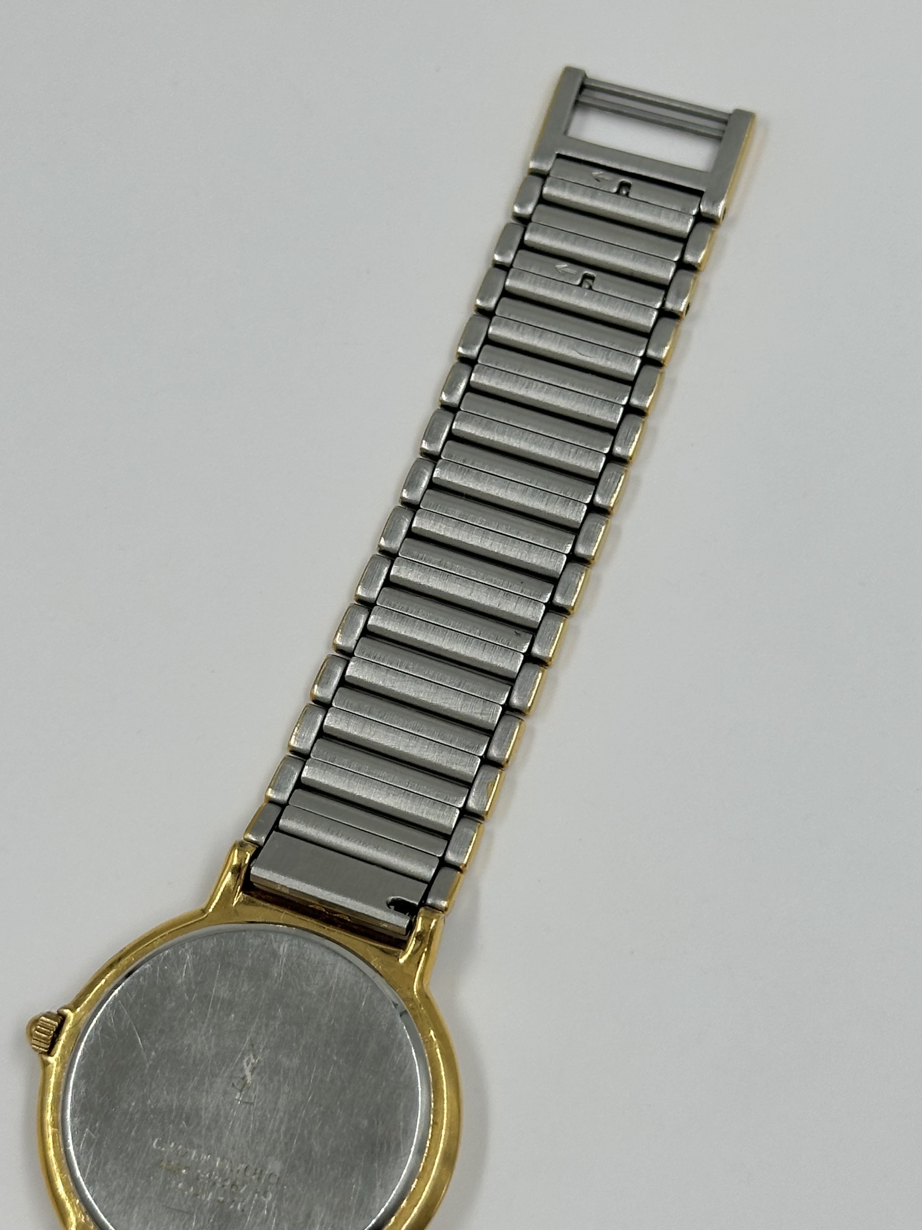Кварцевый механизм в рабочем состоянии. Стальной браслет на запястье до 17см, можно уменьшить в мастерской. На браслете присутствуют потертости позолоты, небольшие загрязнения под стеклом.