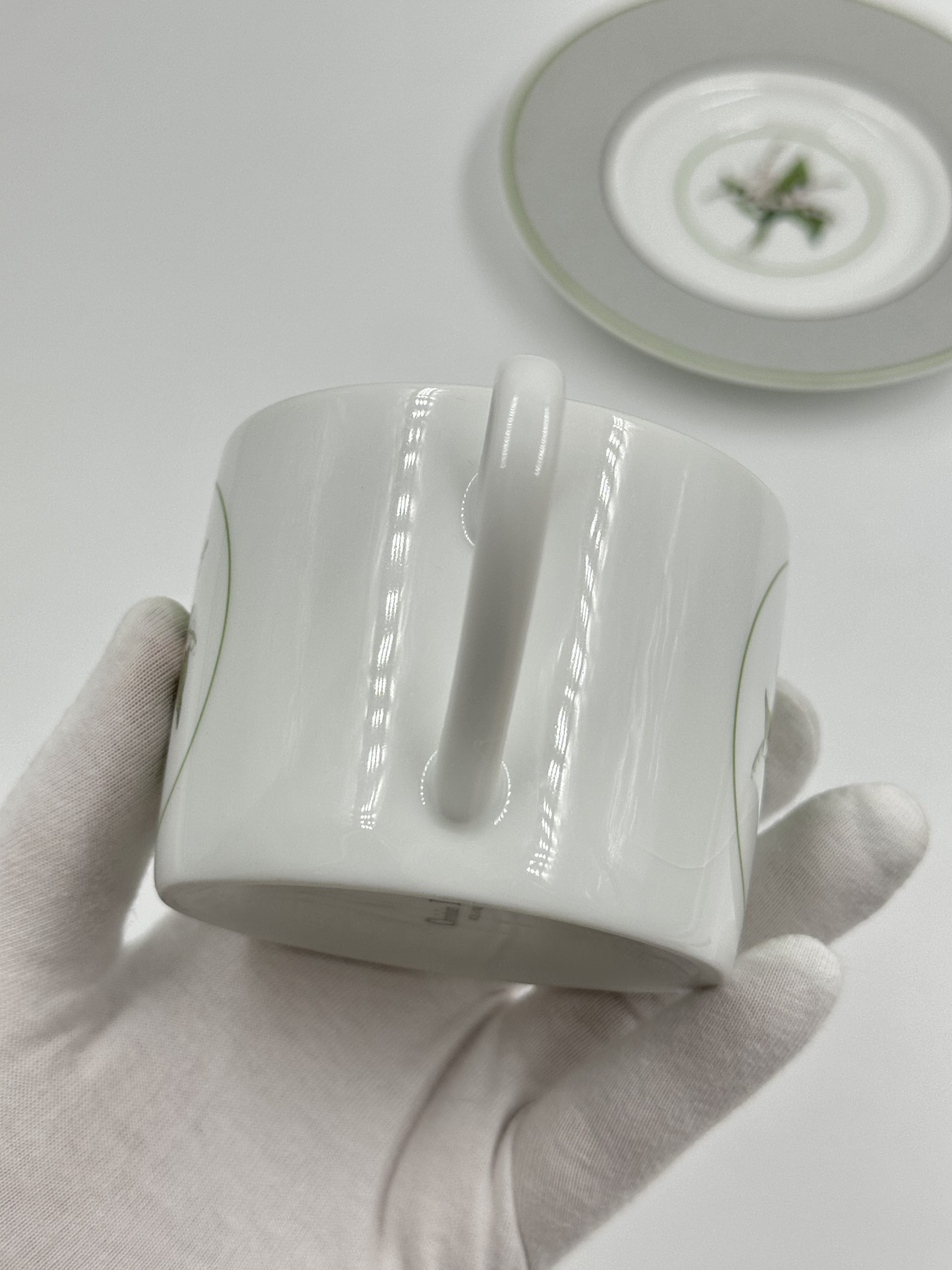 Фарфор. Диаметр блюдца 13,8см. Объём чашки 200мл.