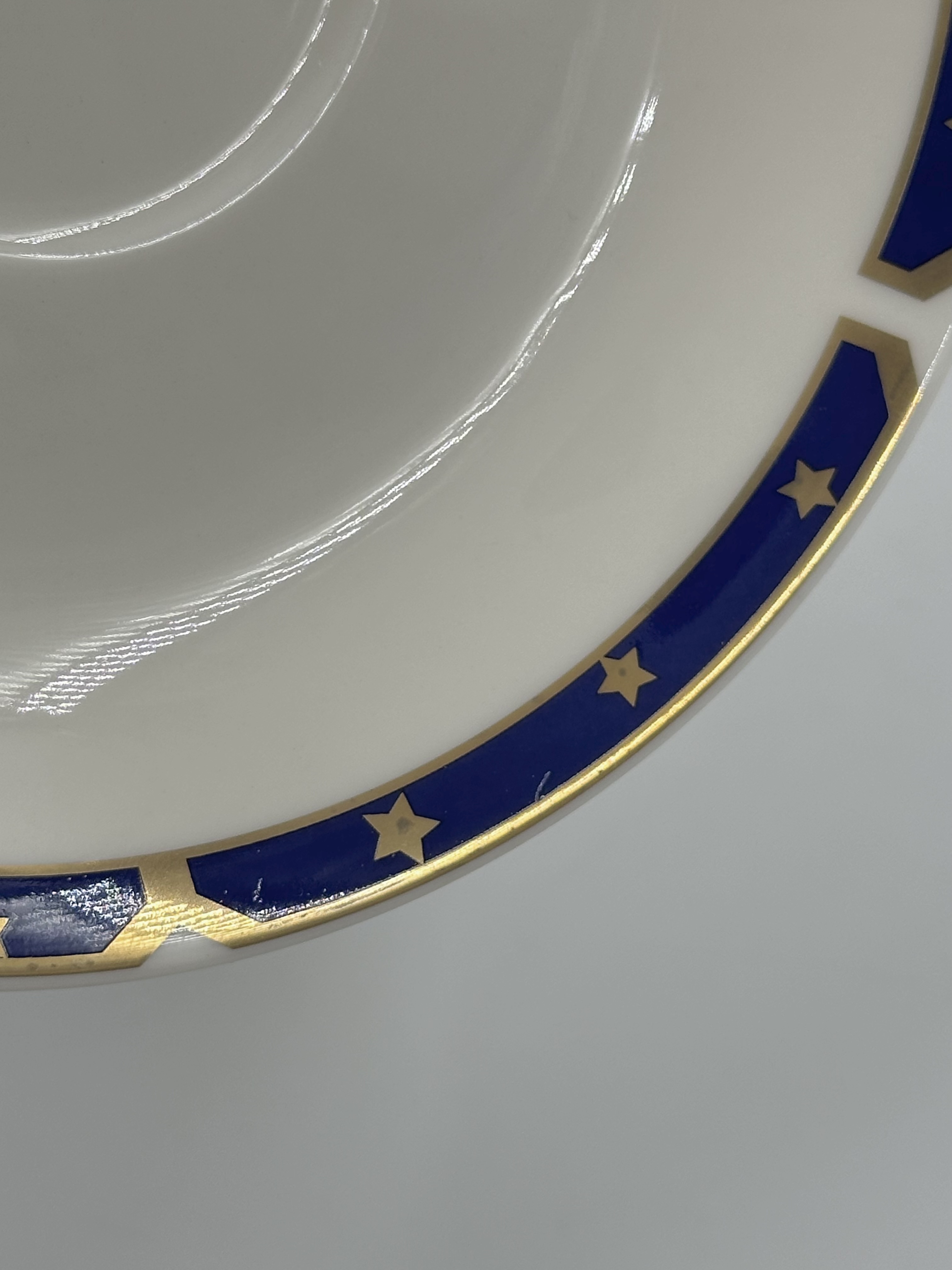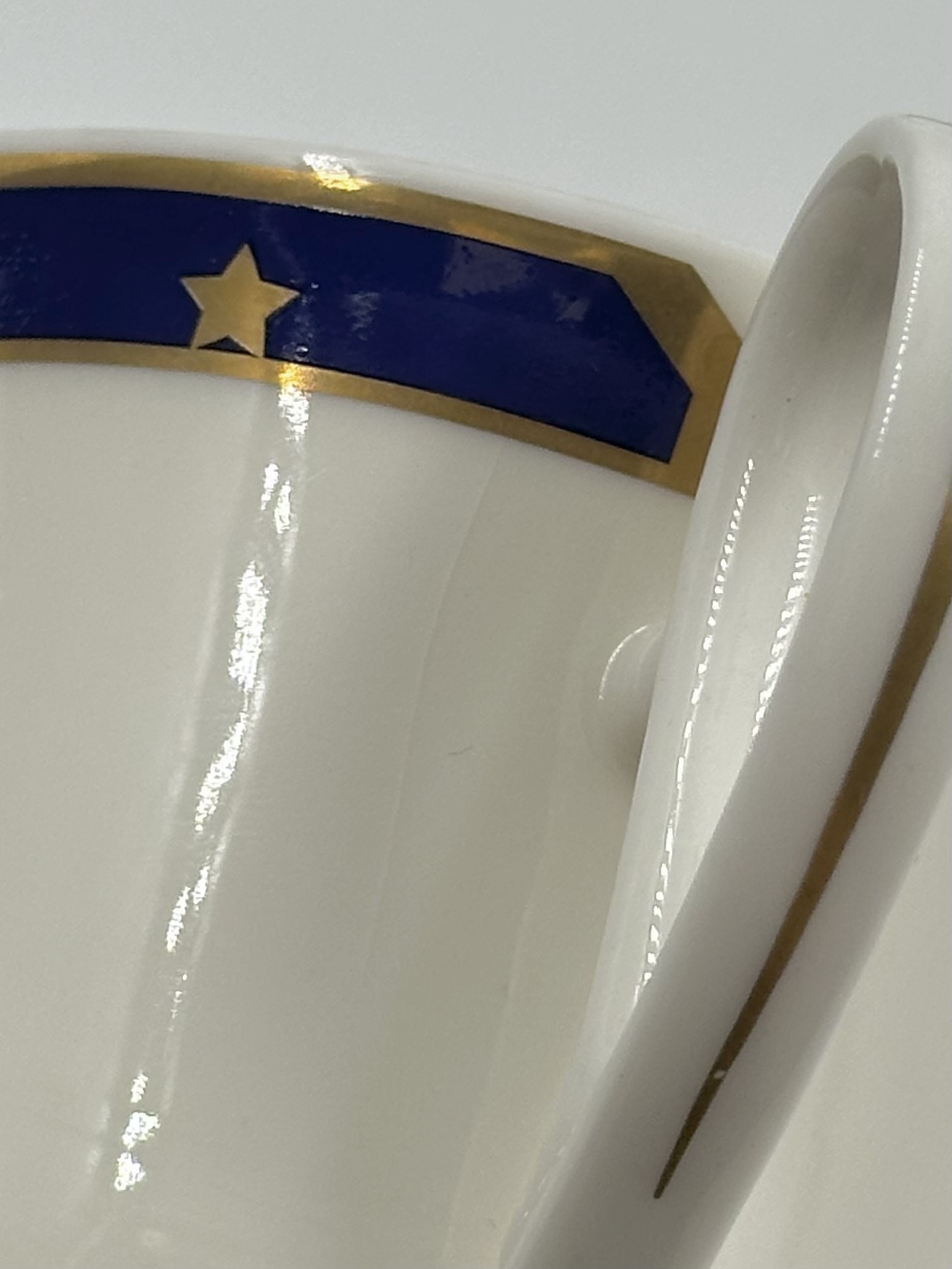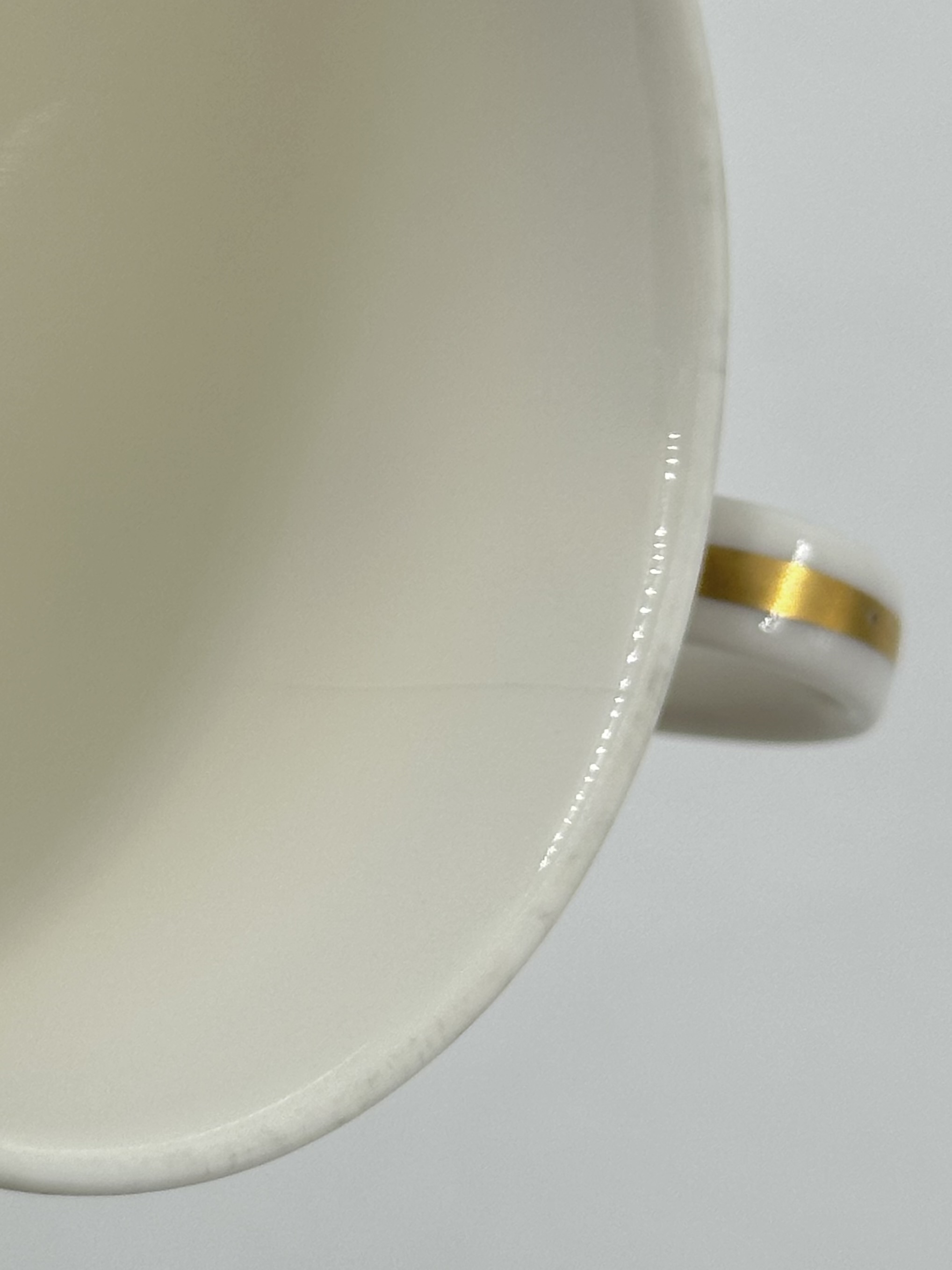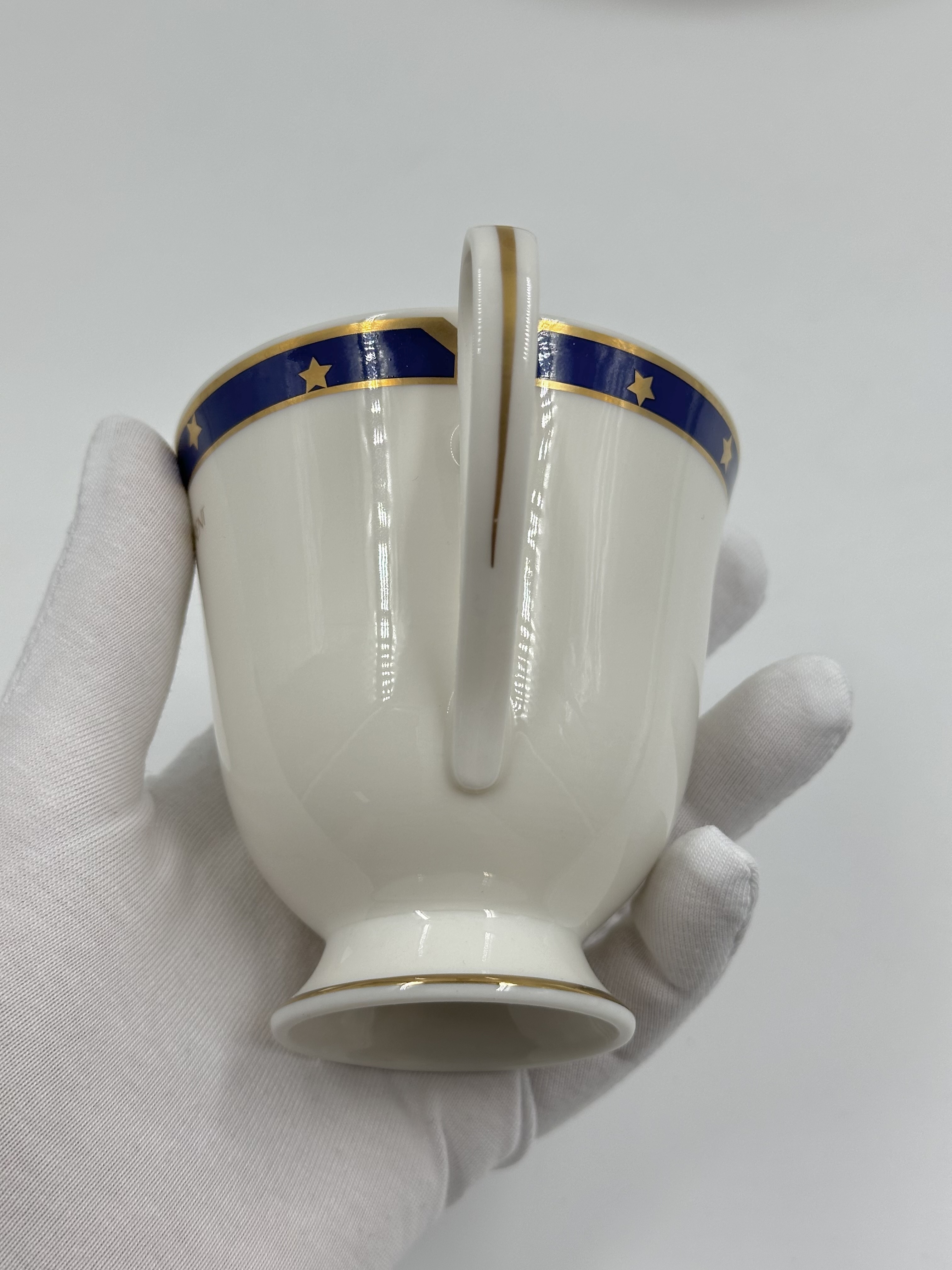 Фарфор. На чашке присутствует трещина, воду не пропускает. Диаметр блюдца 15,3см. Объём чашки 200мл.