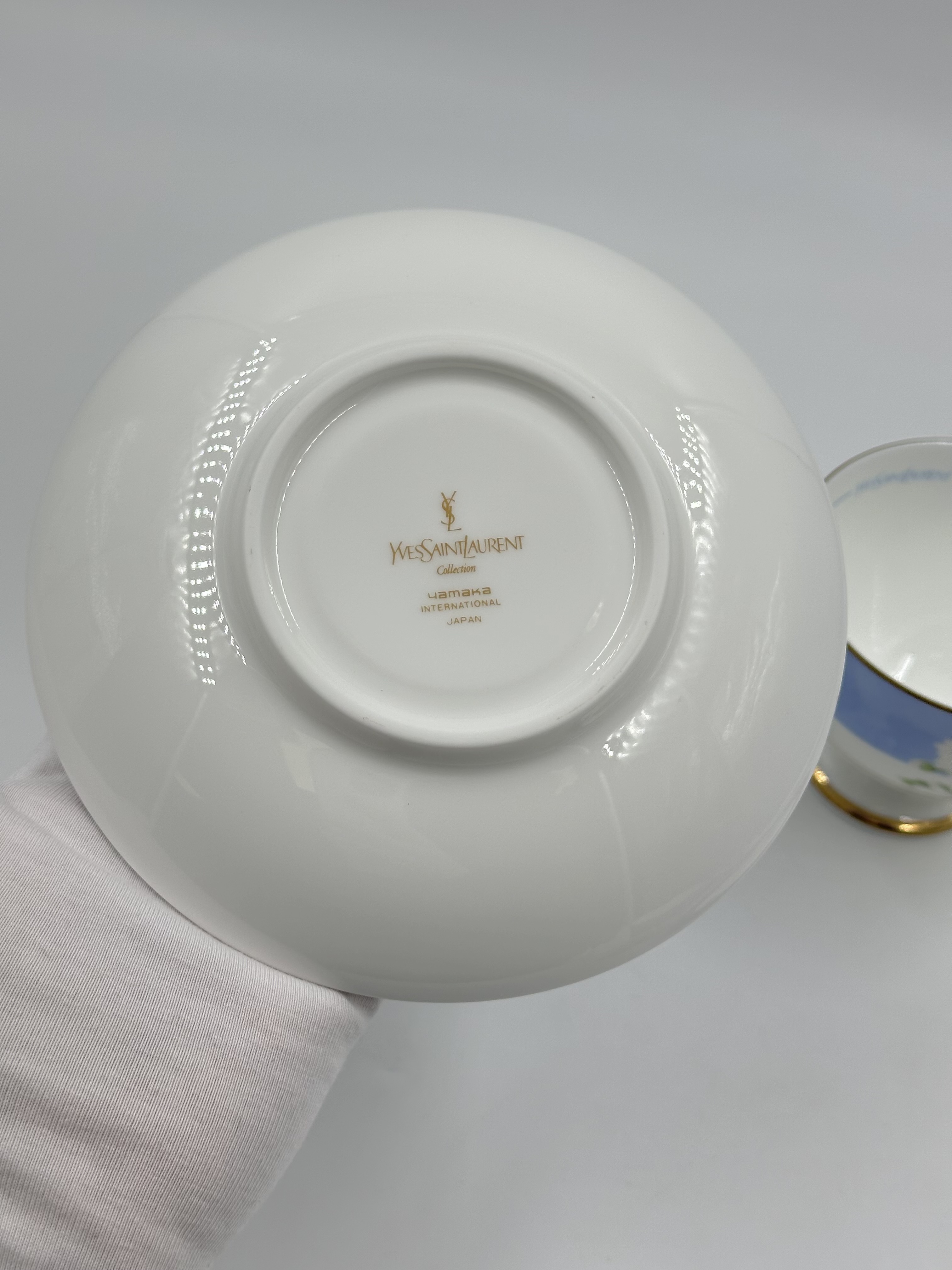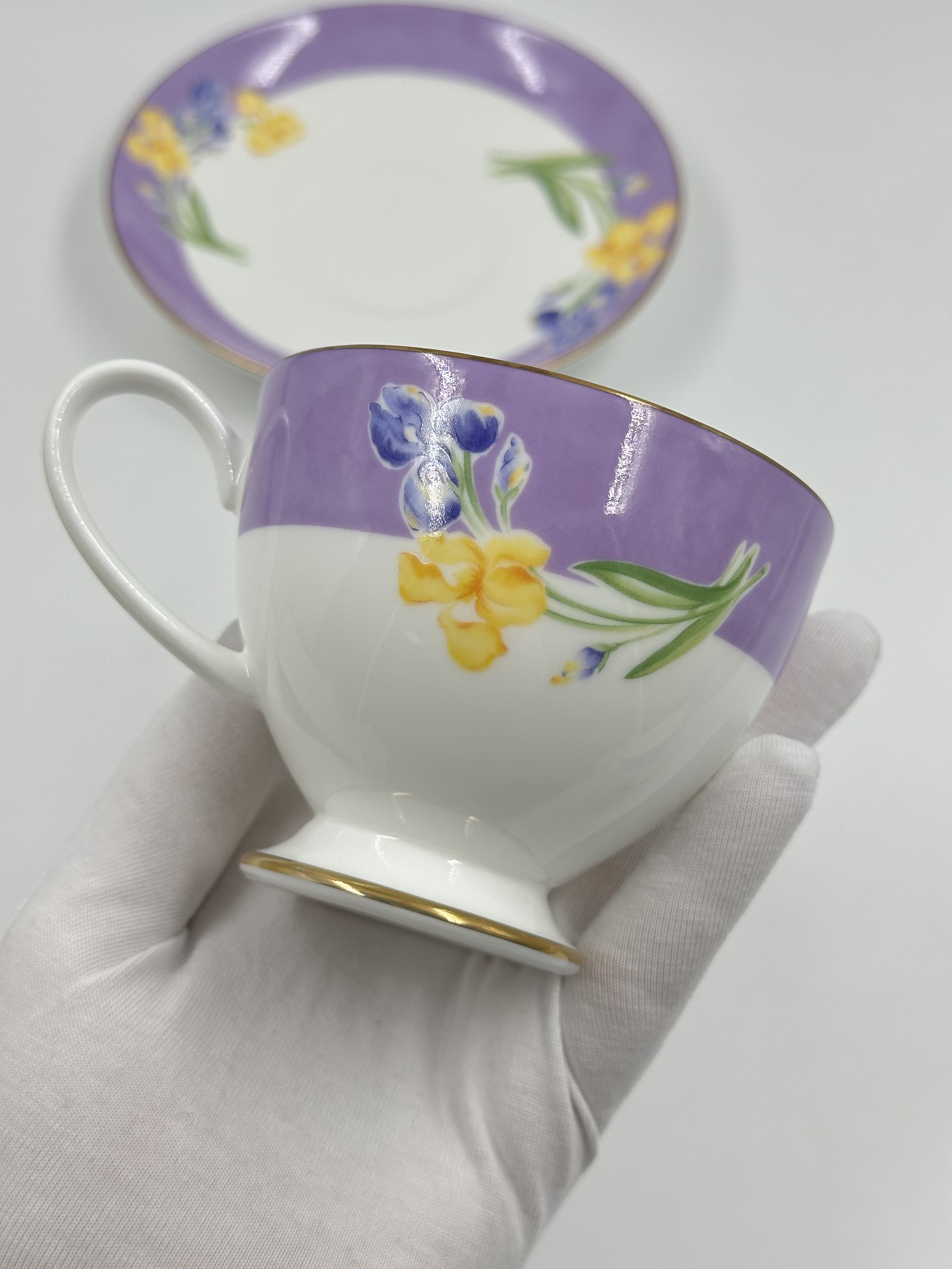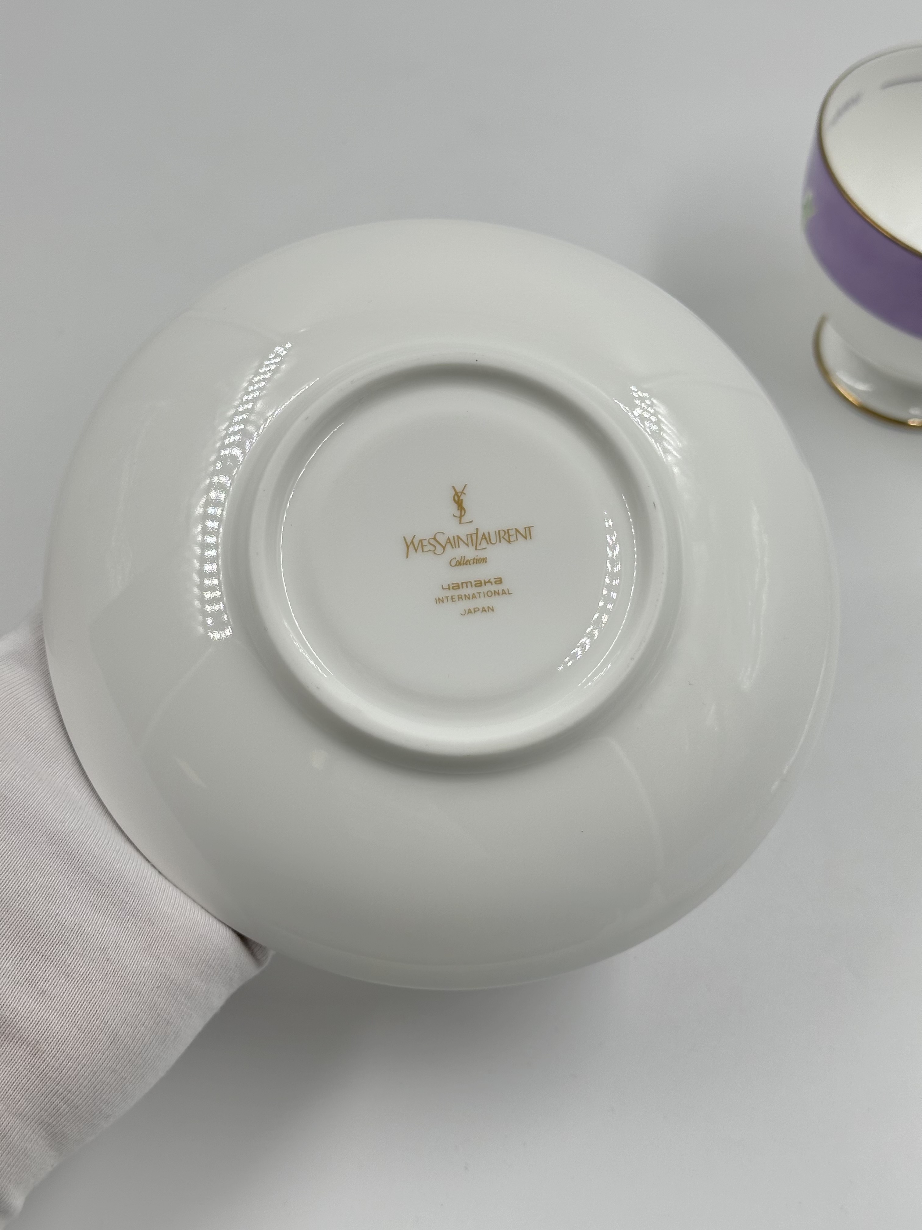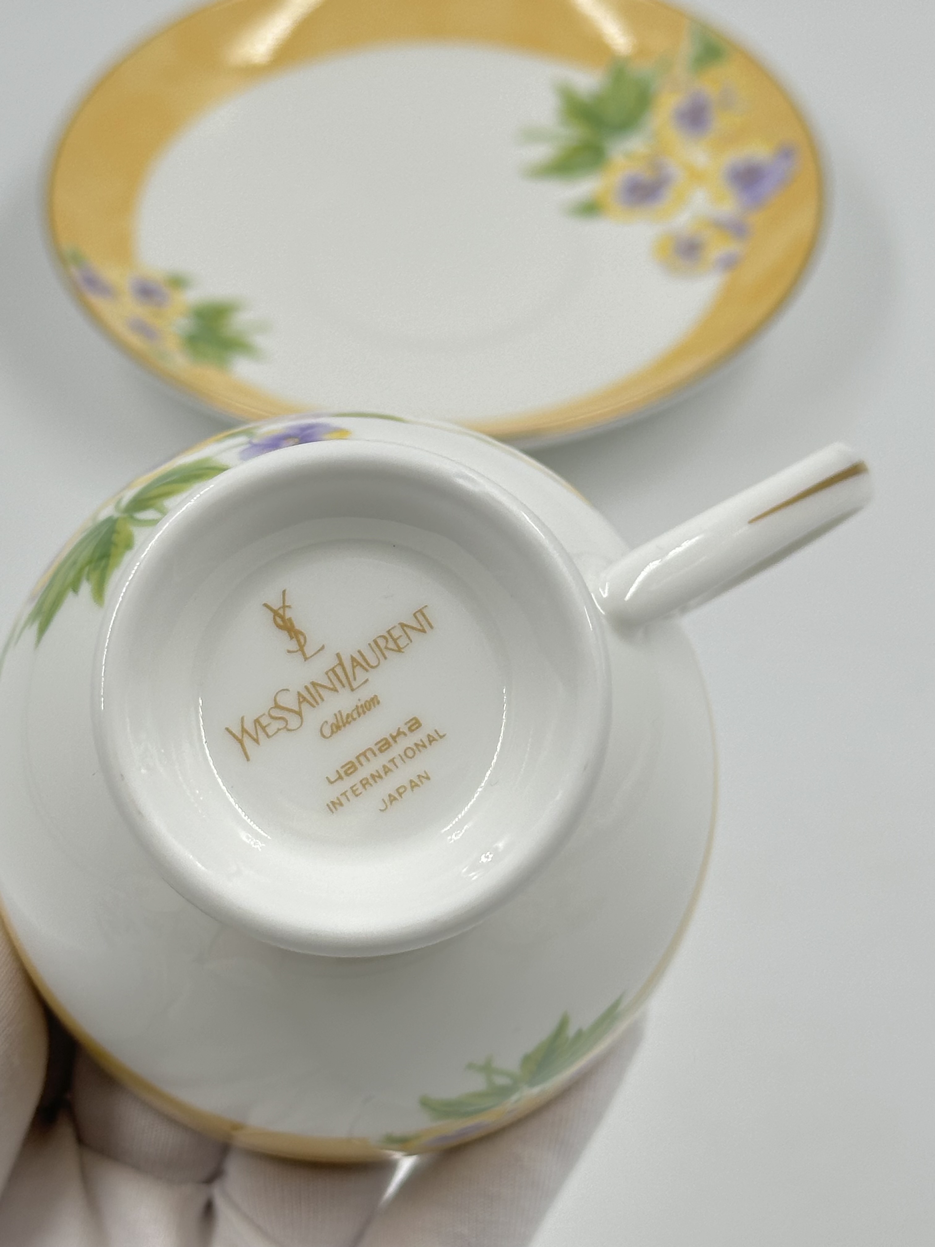 Фарфор. Диаметр блюдца 14,5см, объём чашки 200мл.