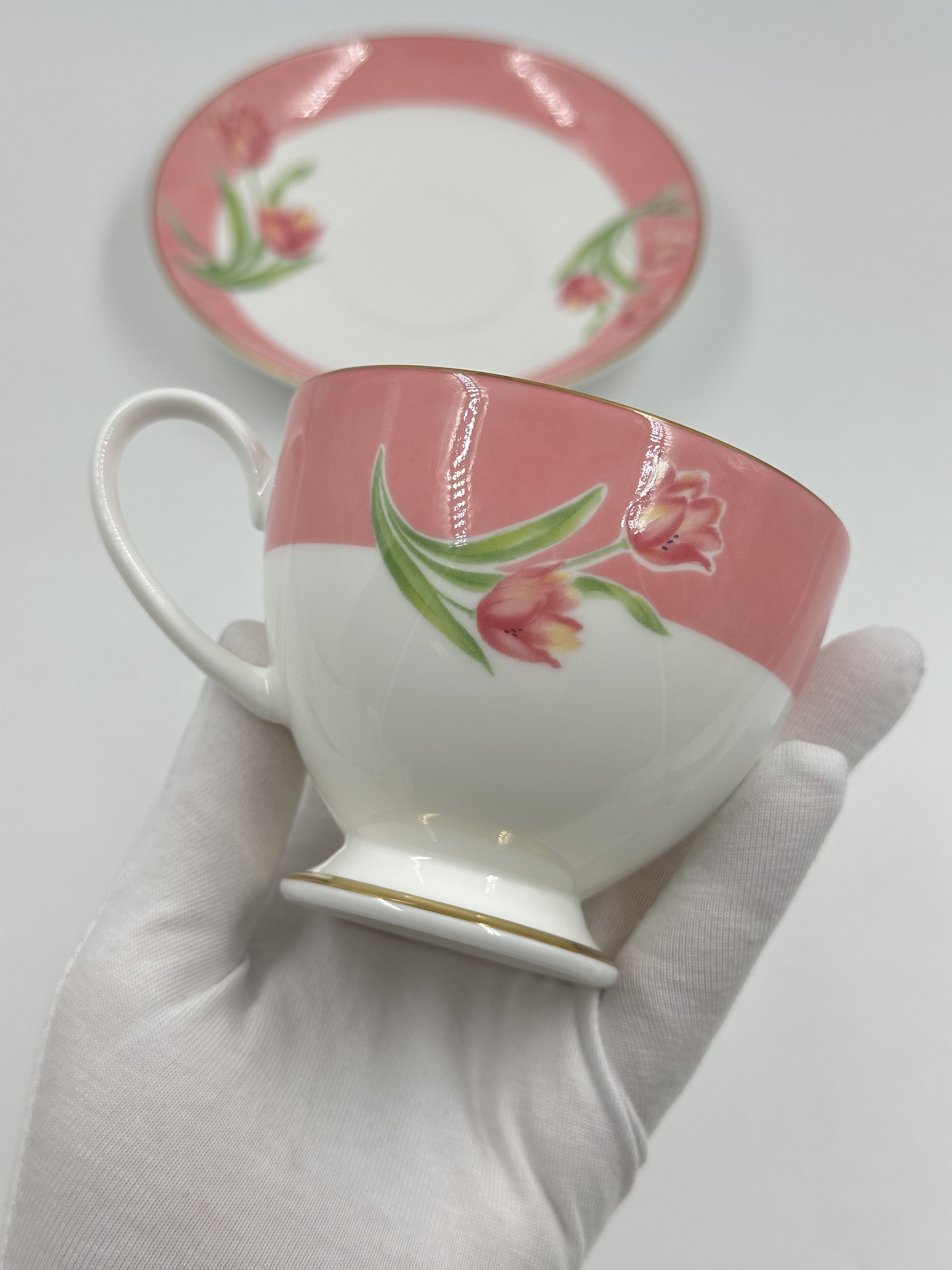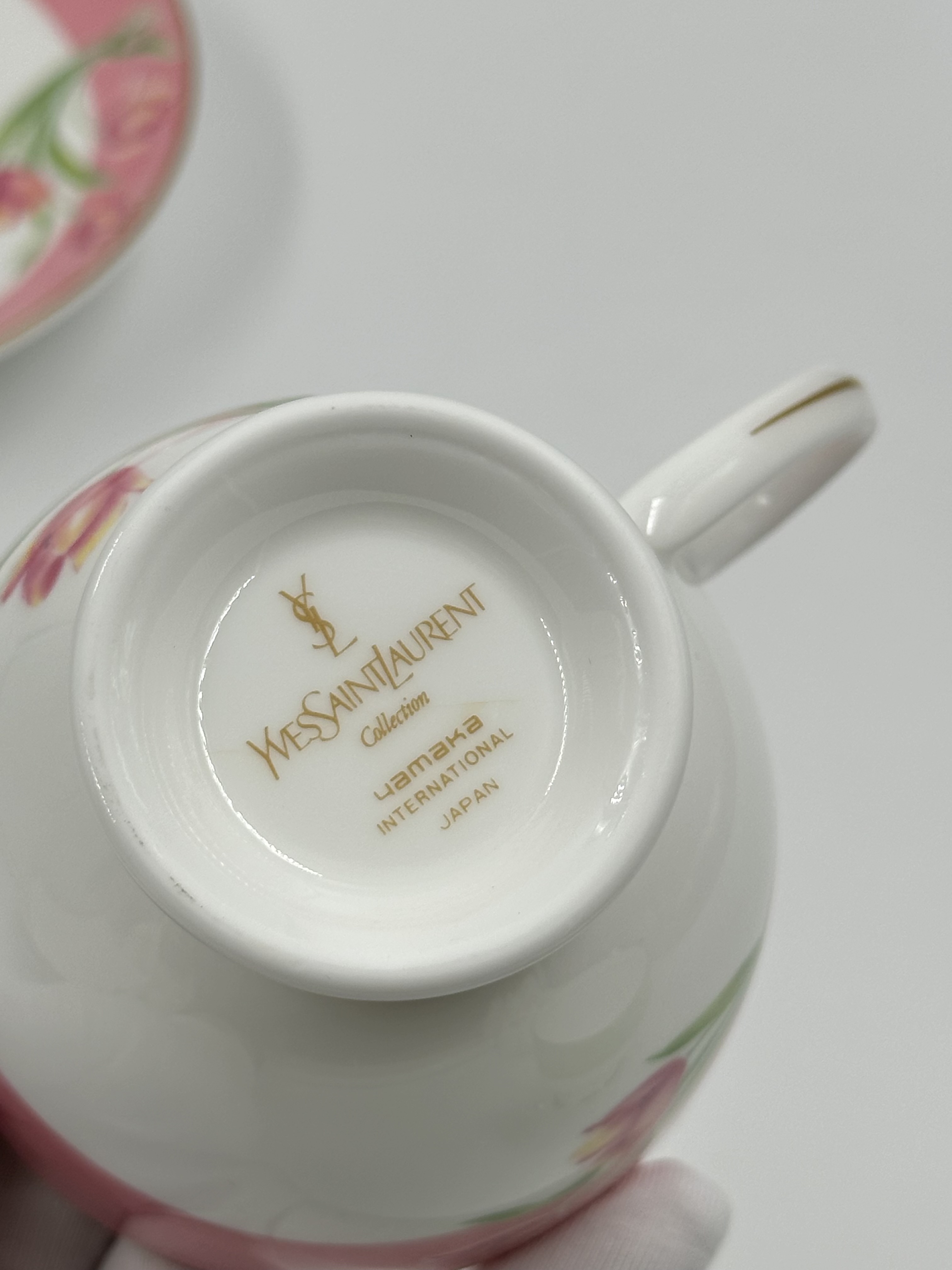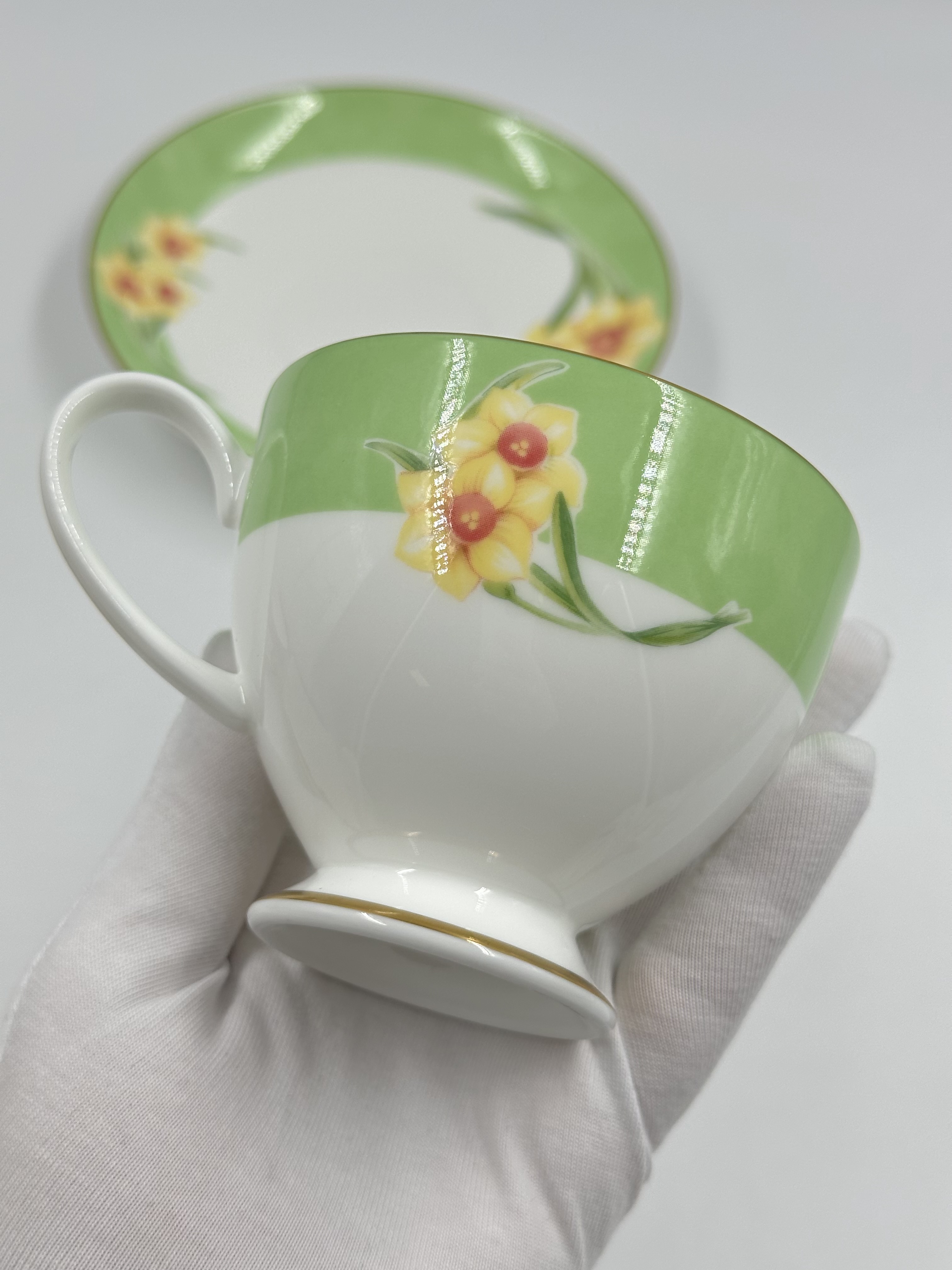 Фарфор. Диаметр блюдца 14,5см, объём чашки 200мл.