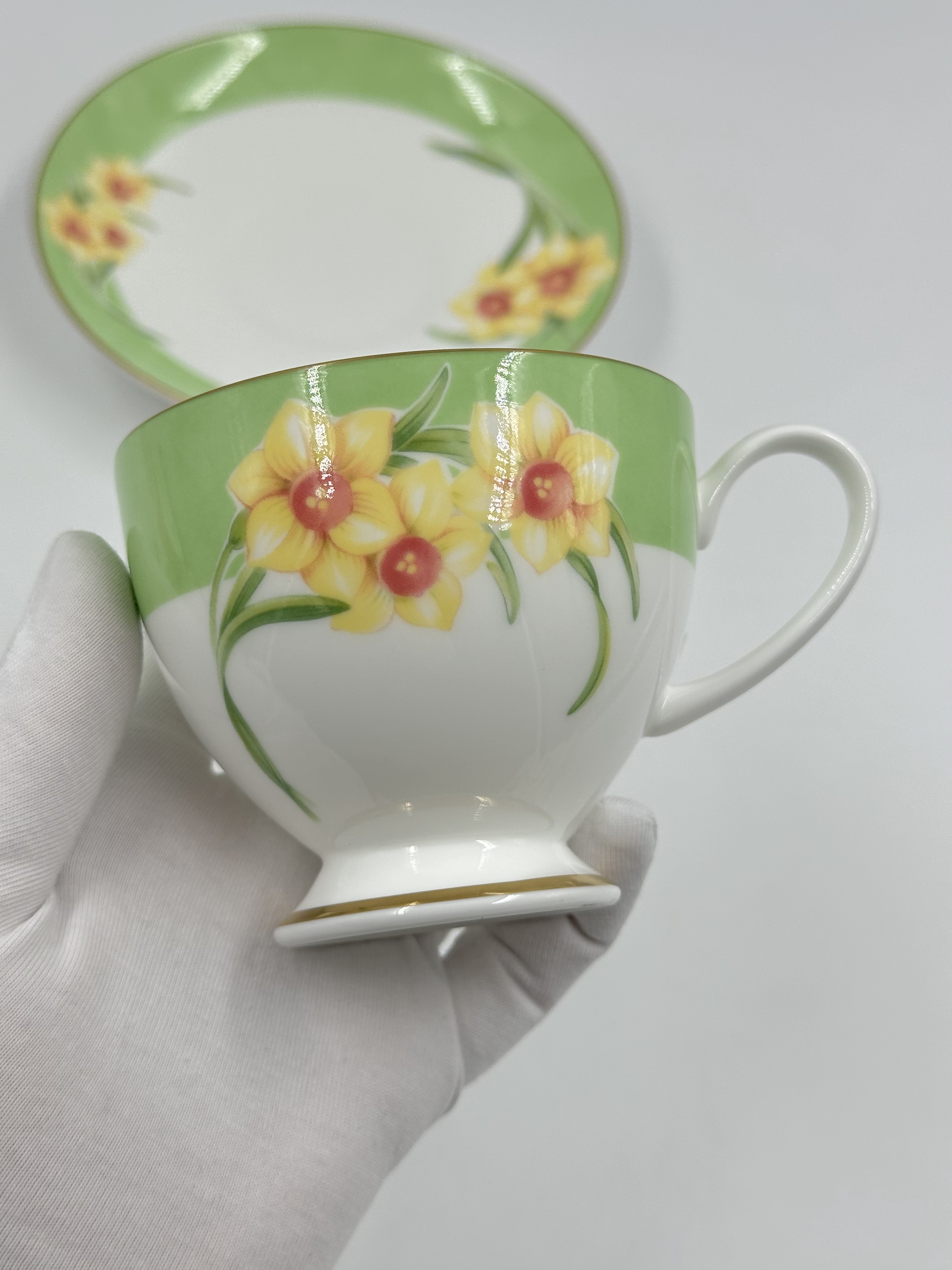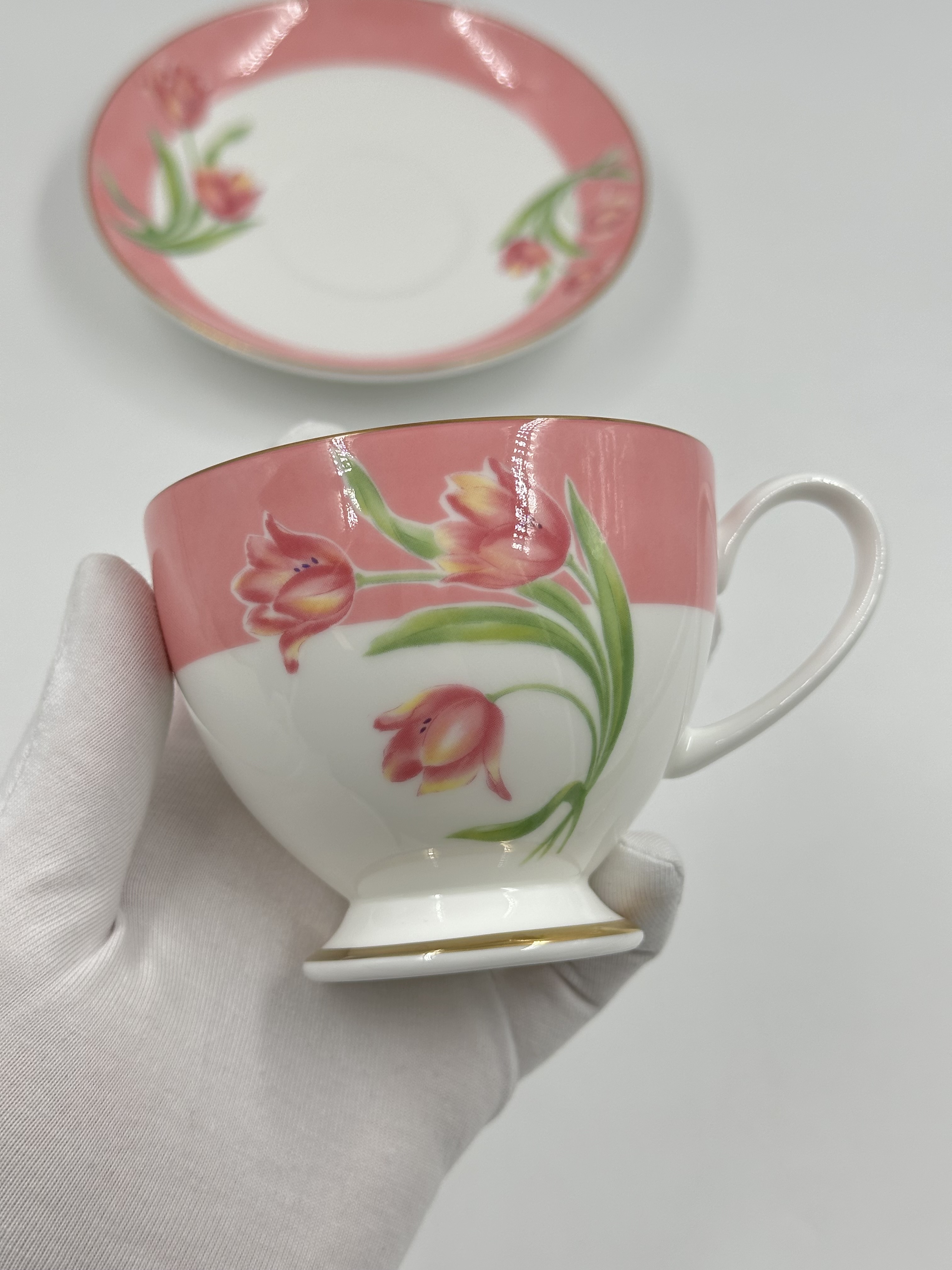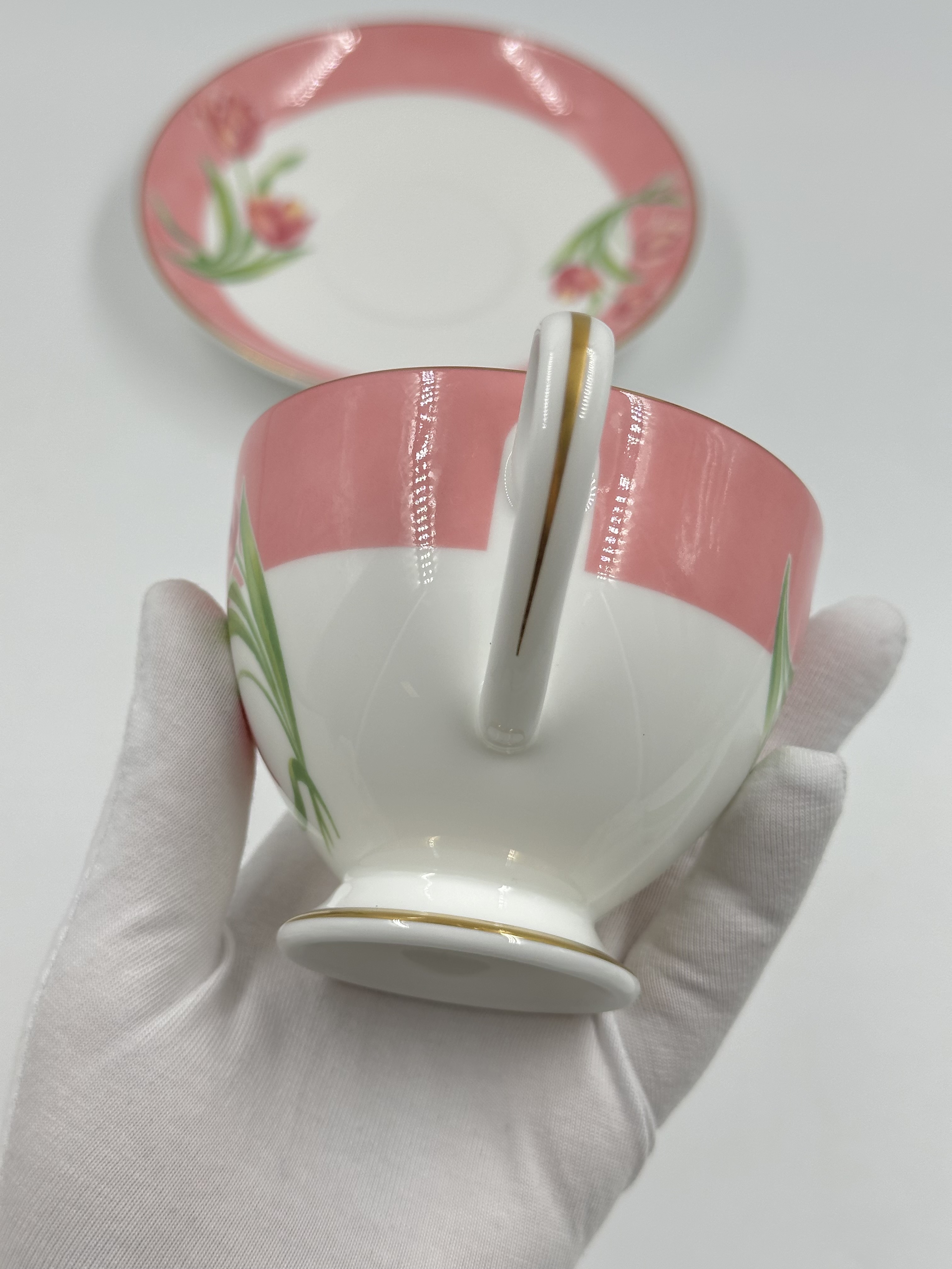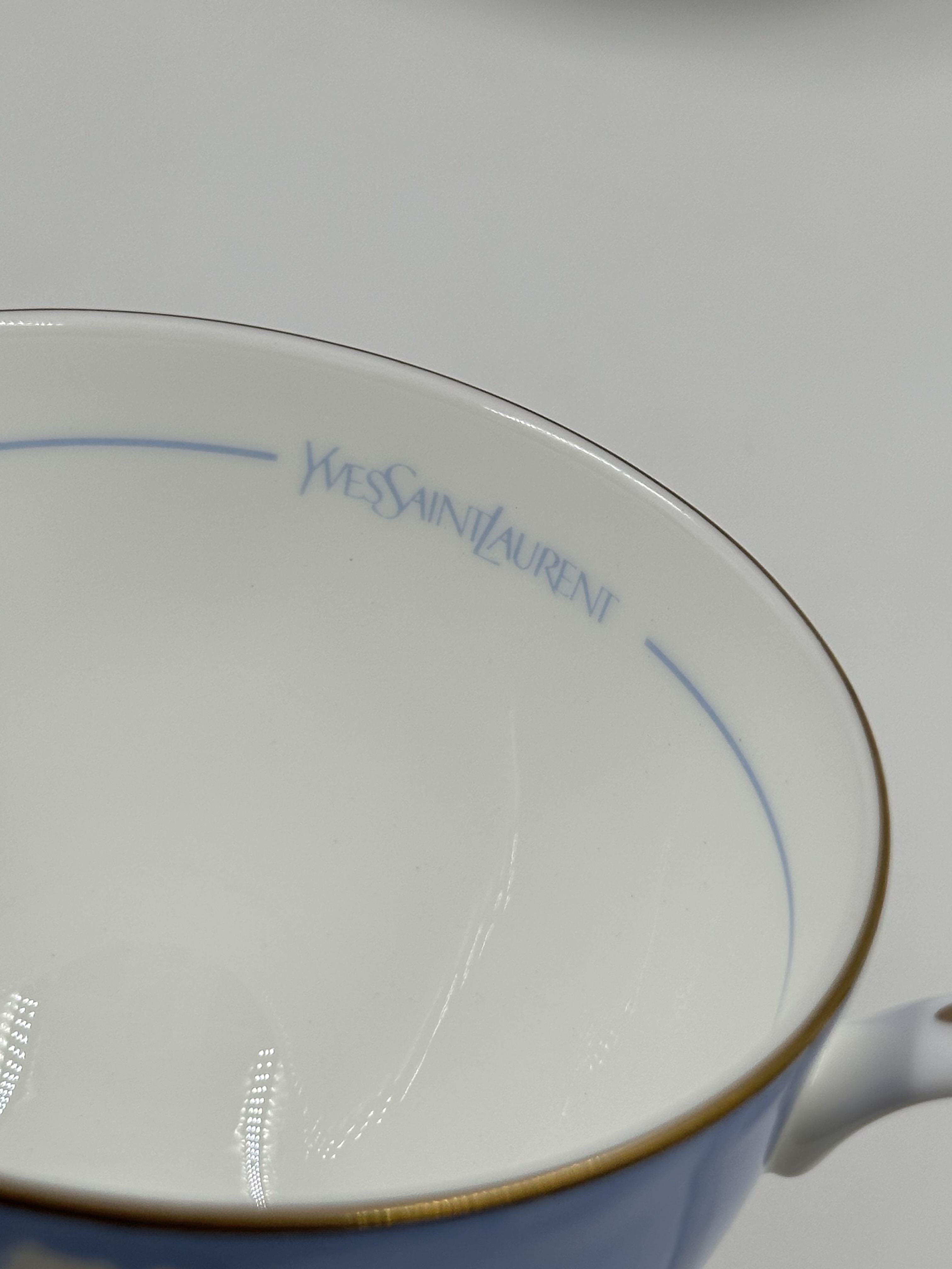 Фарфор. Диаметр блюдца 14,5см, объём чашки 200мл.
