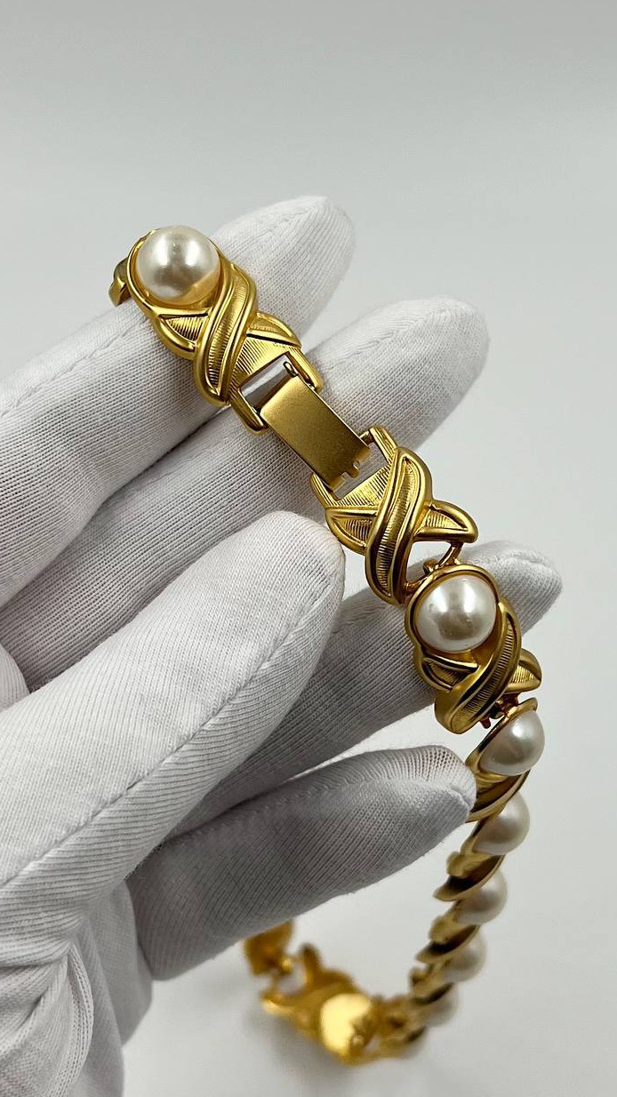 Бижутерный сплав, имитация жемчуга. На вставках присутствуют следы времени.