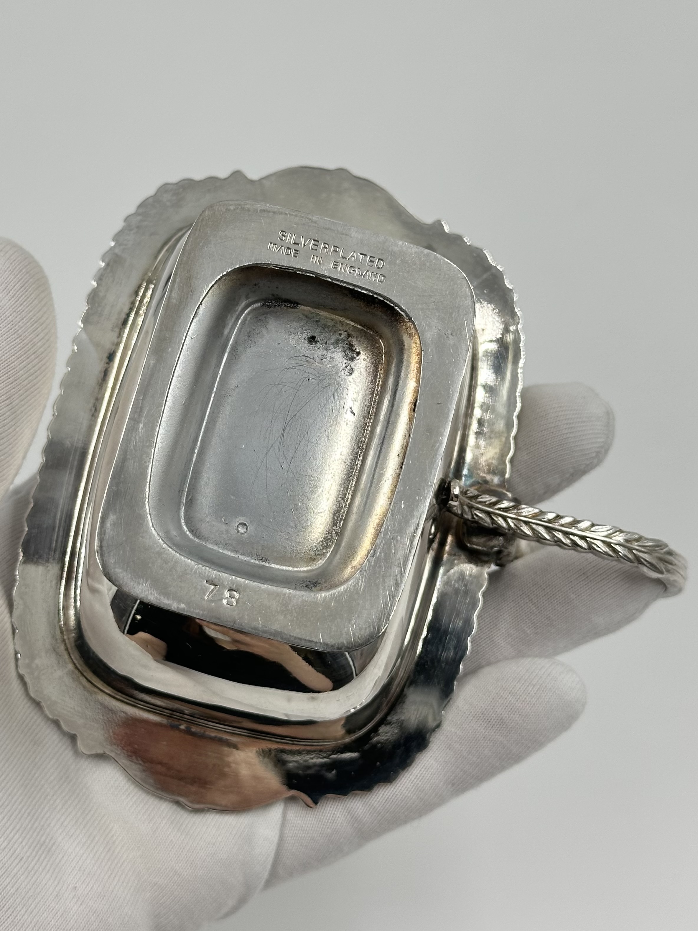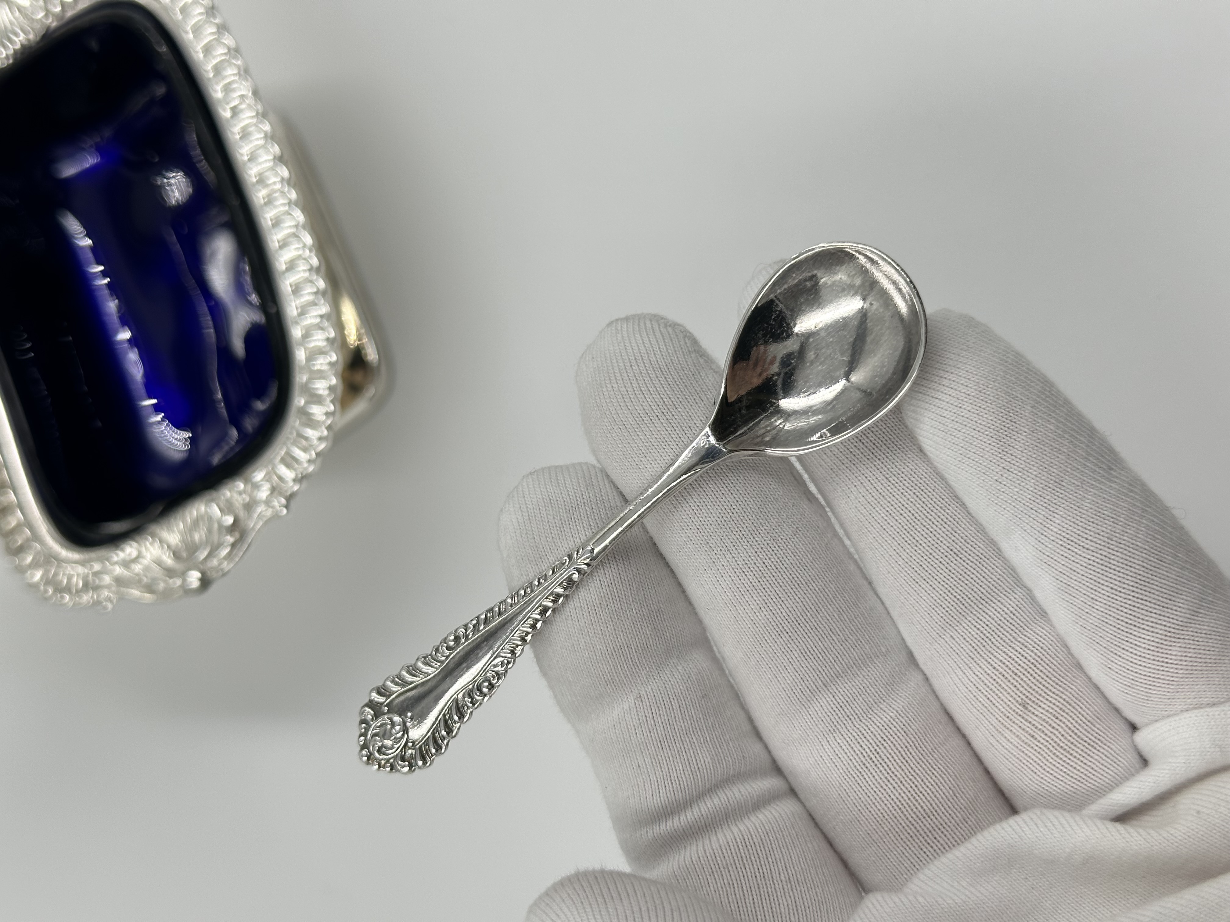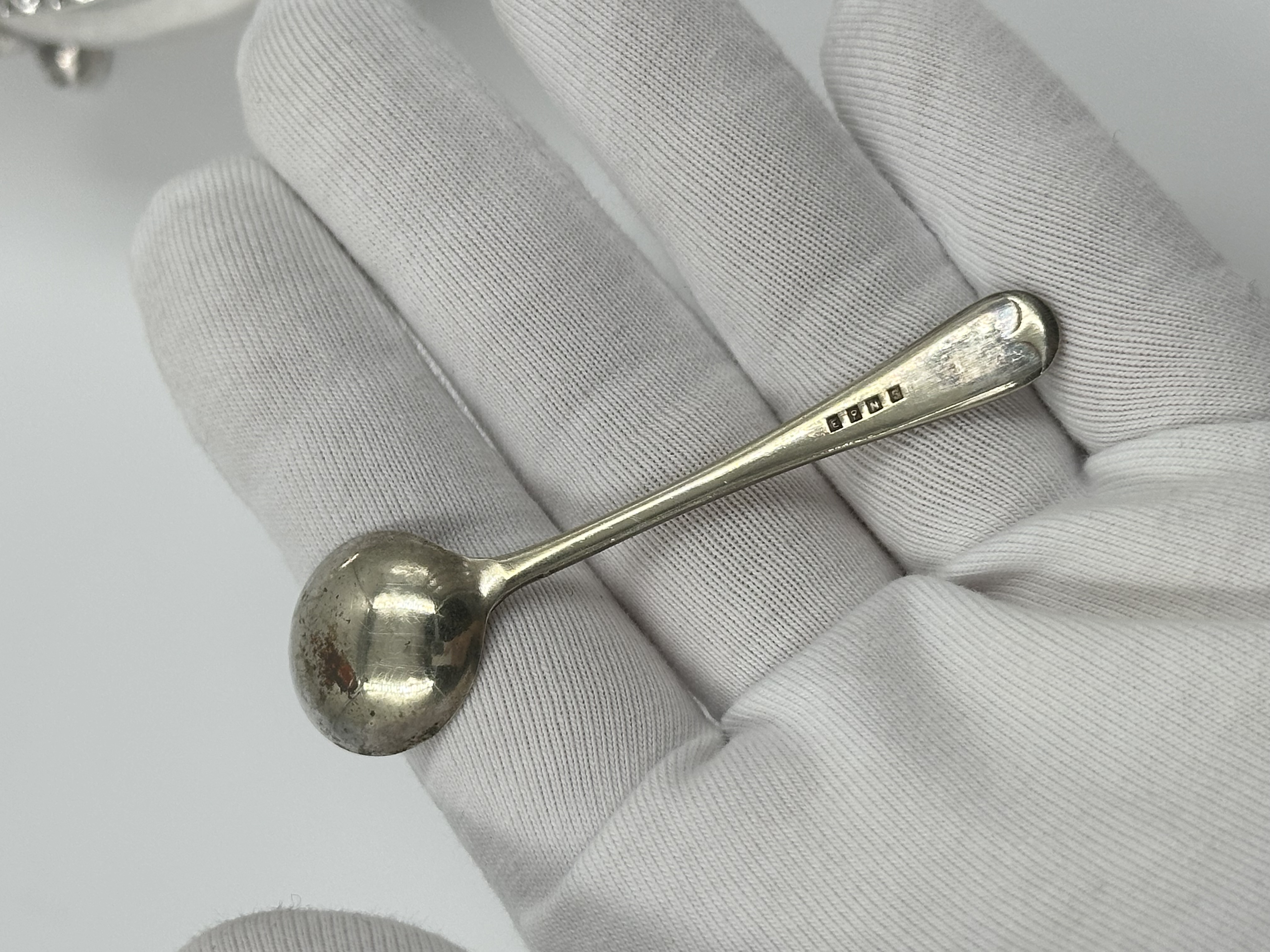 Серебрение, стекло. На ложке присутствуют потертости покрытия.