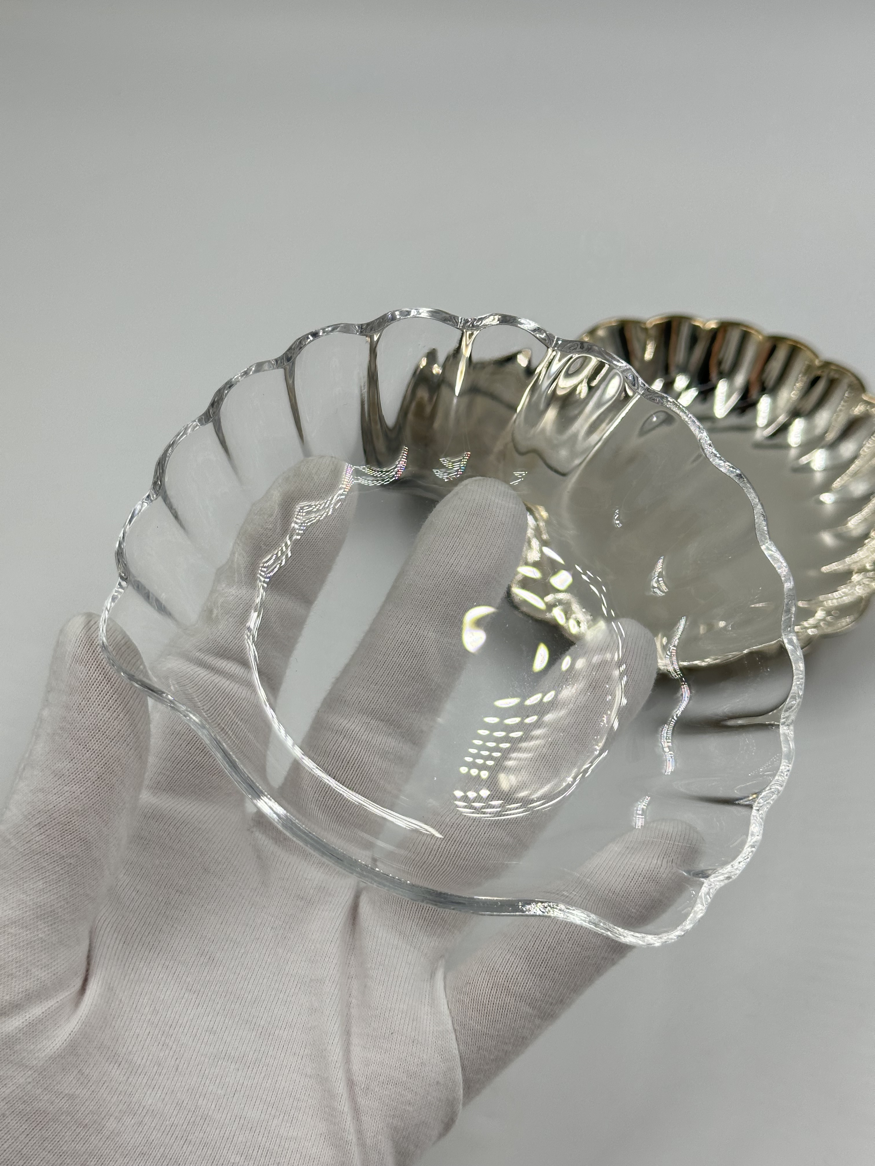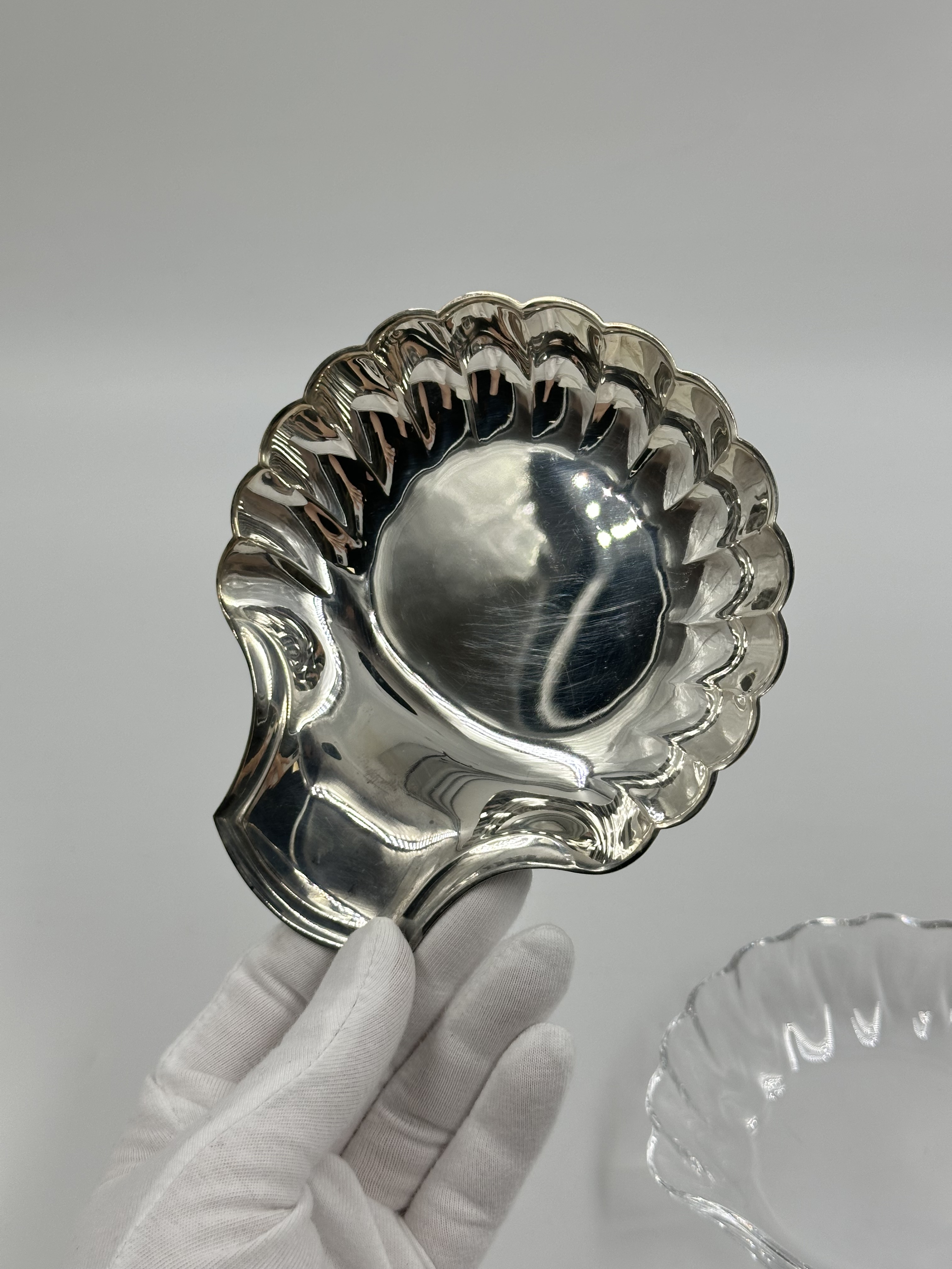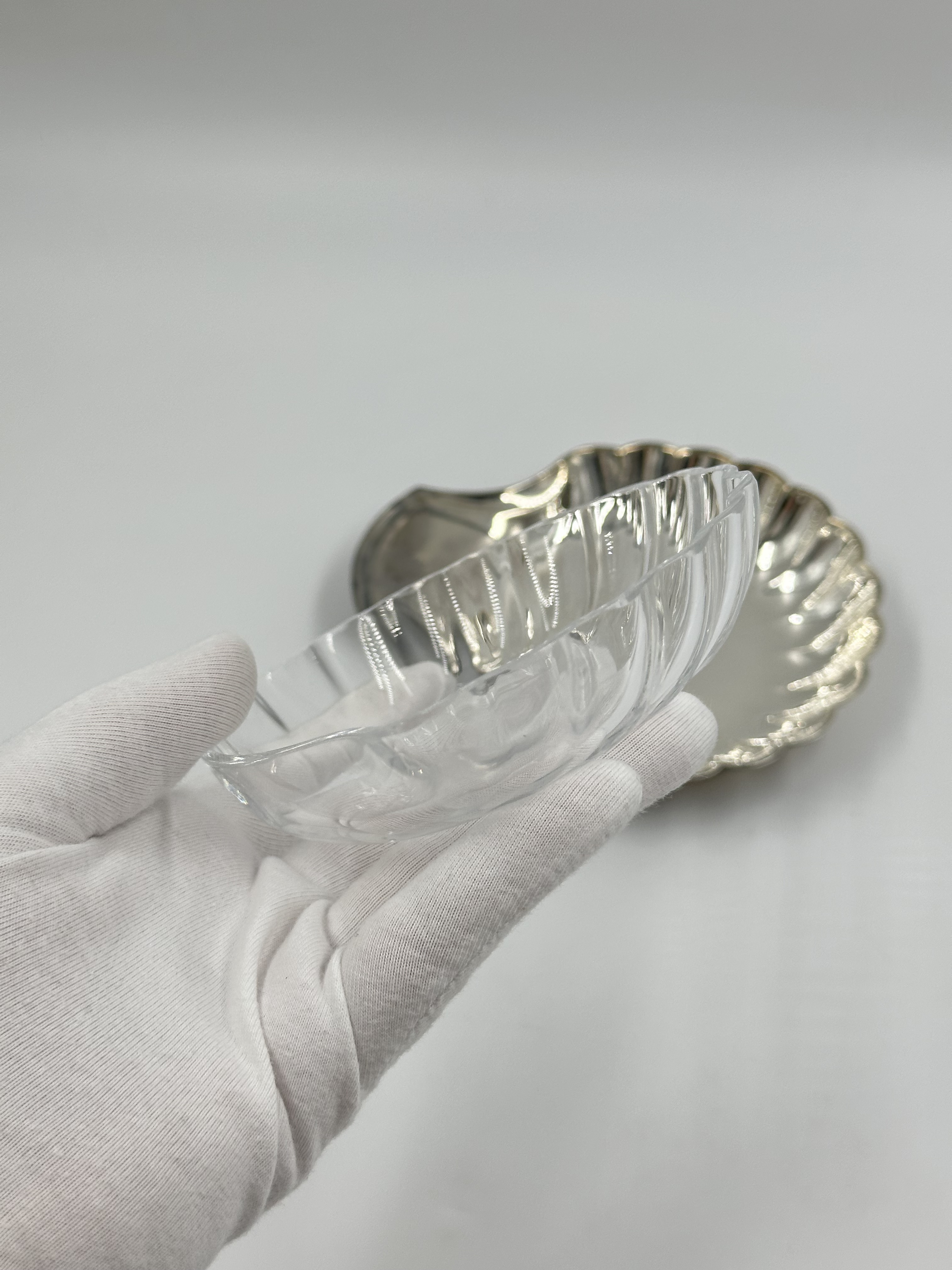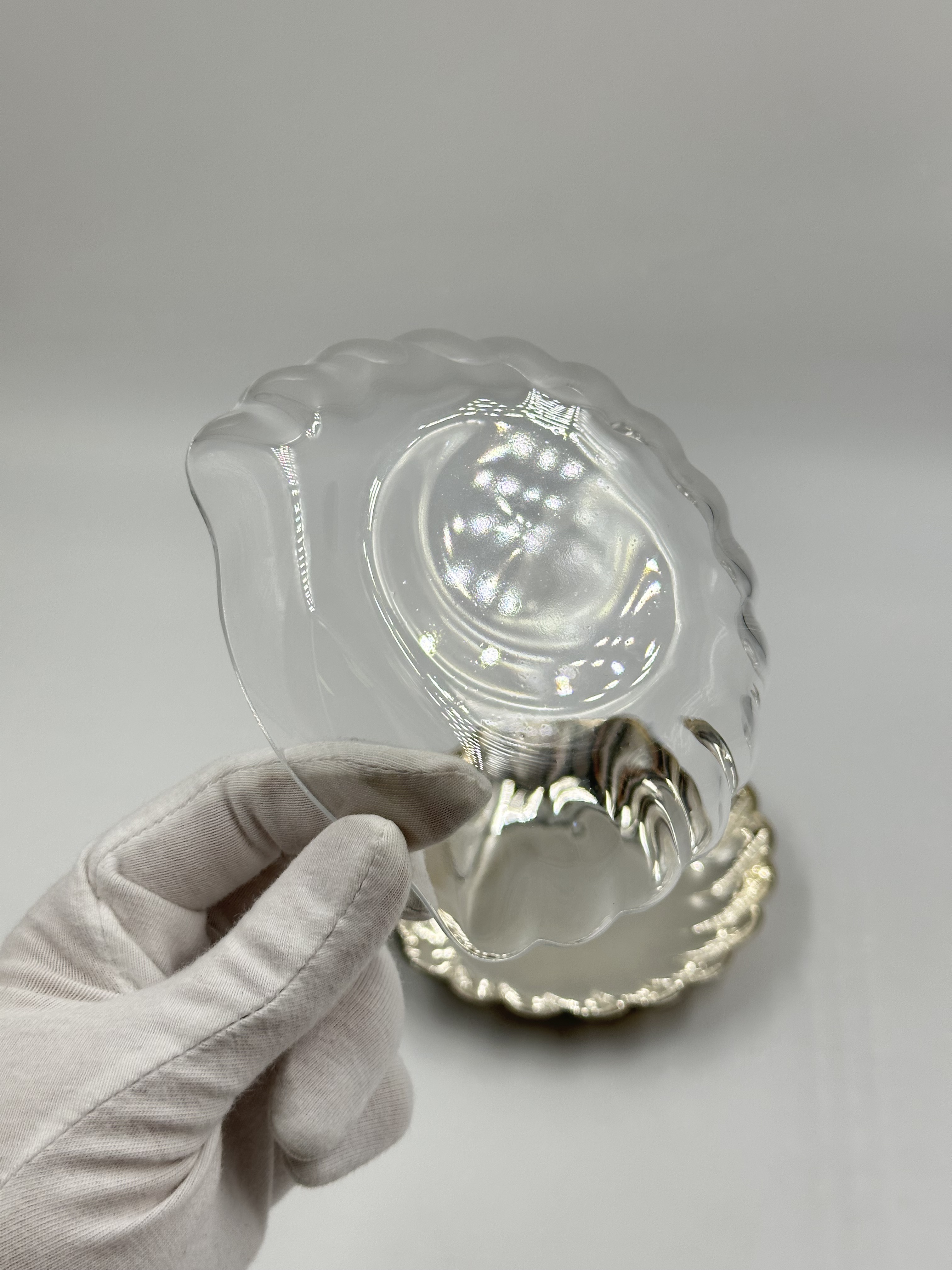 Серебрение, стекло. Присутствуют царапины. CHRISOTEL - линия предметов сервировки для отелей и ресторанов от Christofle. Размер 11,5 х 13,2см.