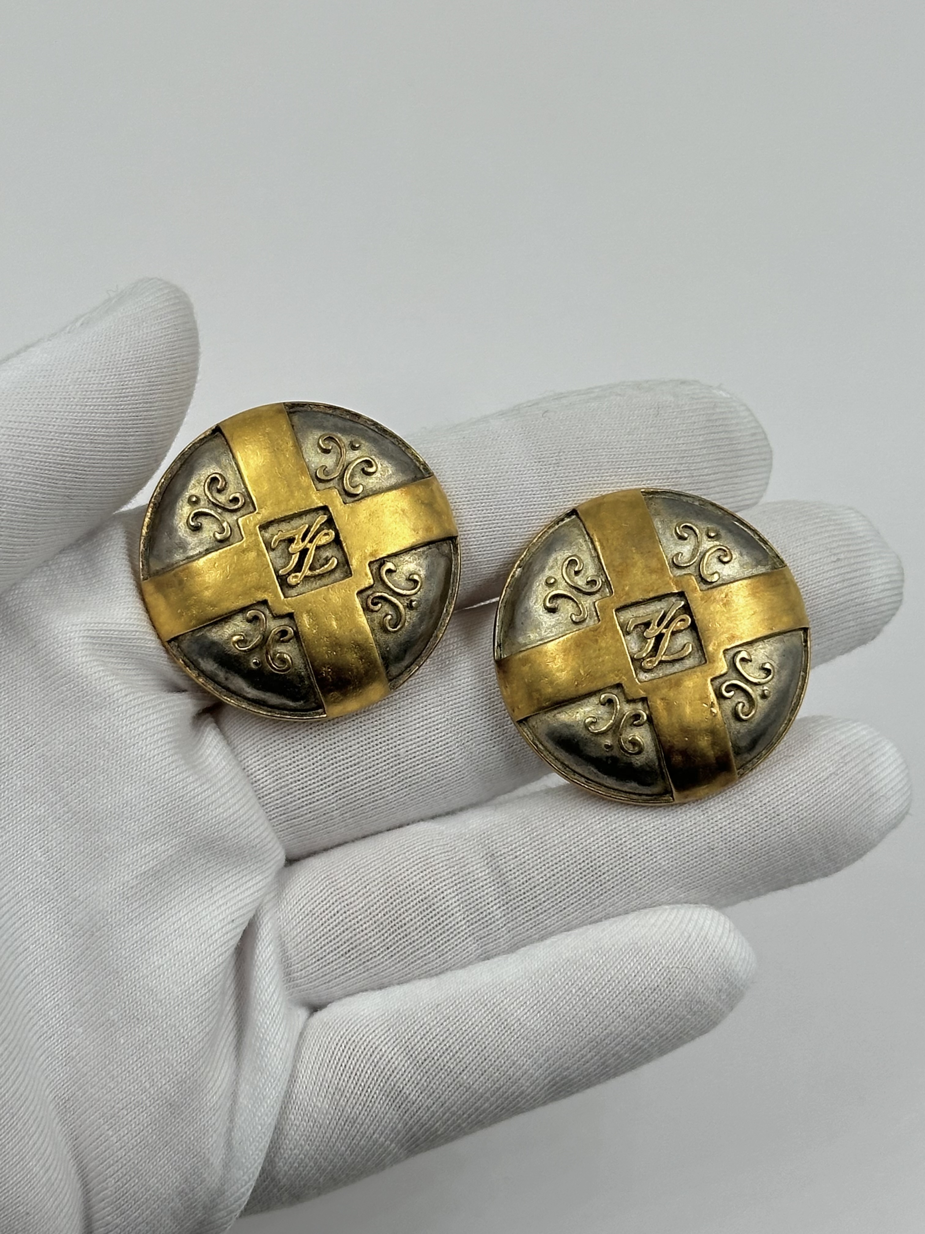 Бижутерный сплав, позолота. Присутствуют следы времени, небольшие потертости. Размер 3,2см.