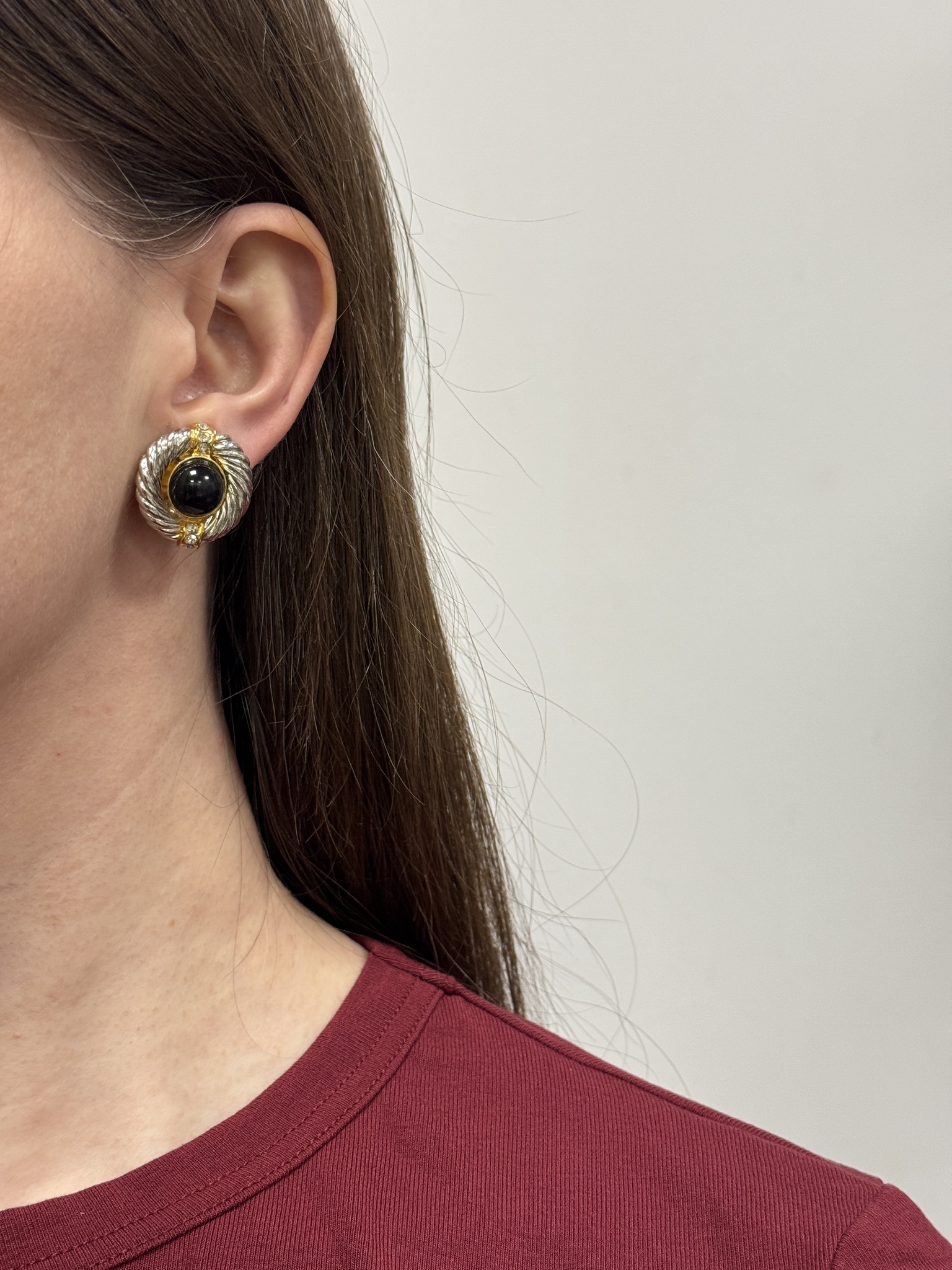 Бижутерный сплав, пластик. Размер 2,4см. На кабошонах незначительные потертости.