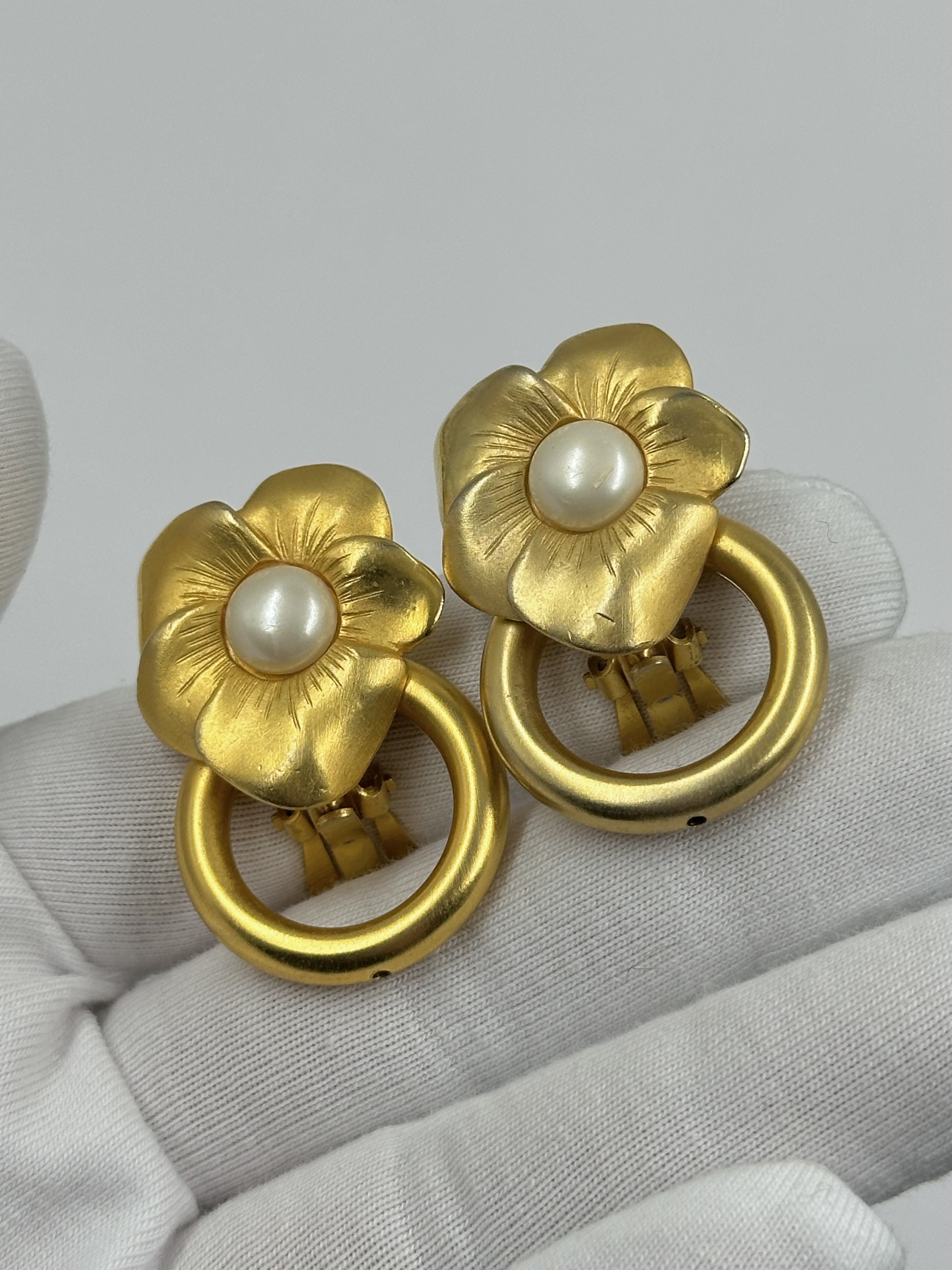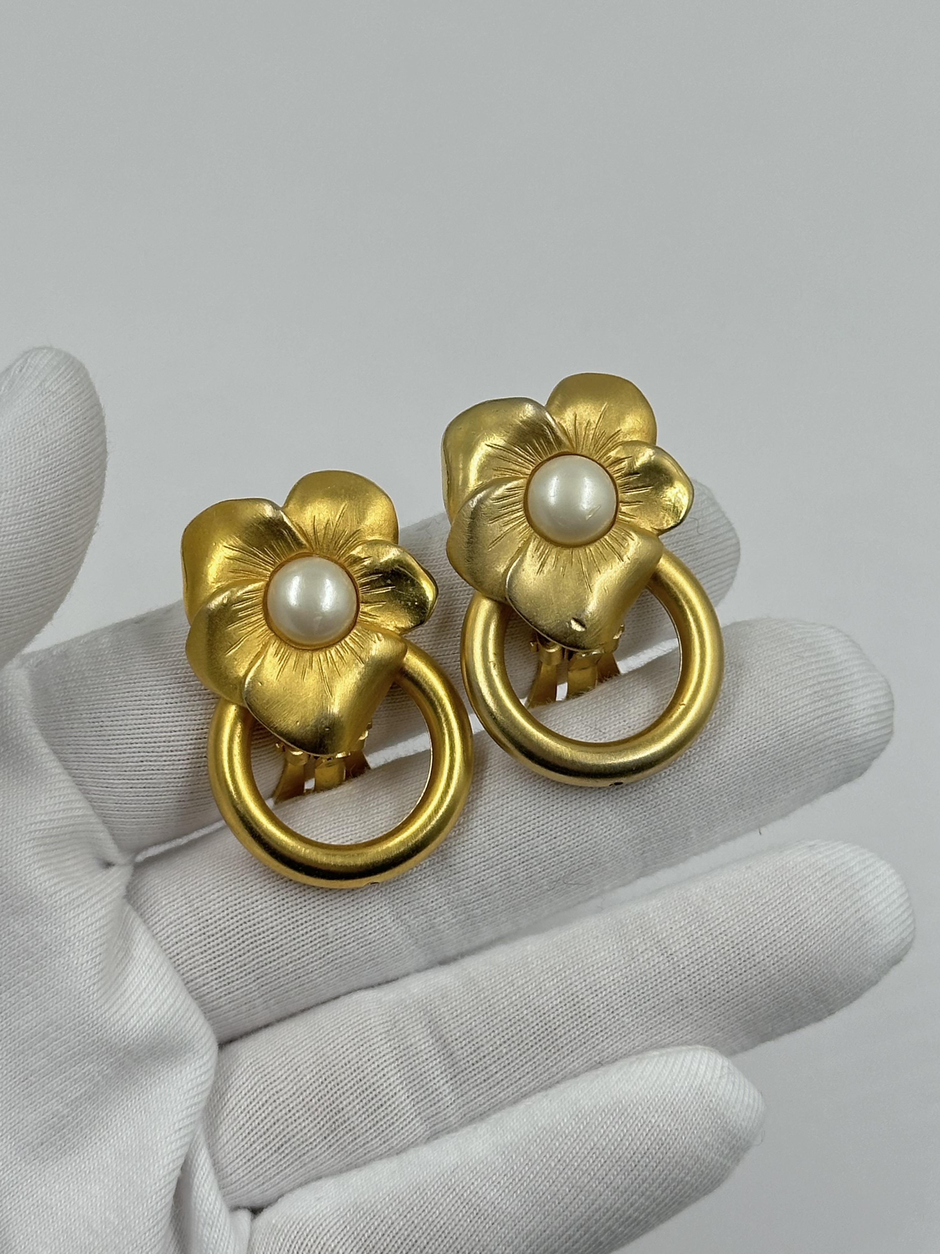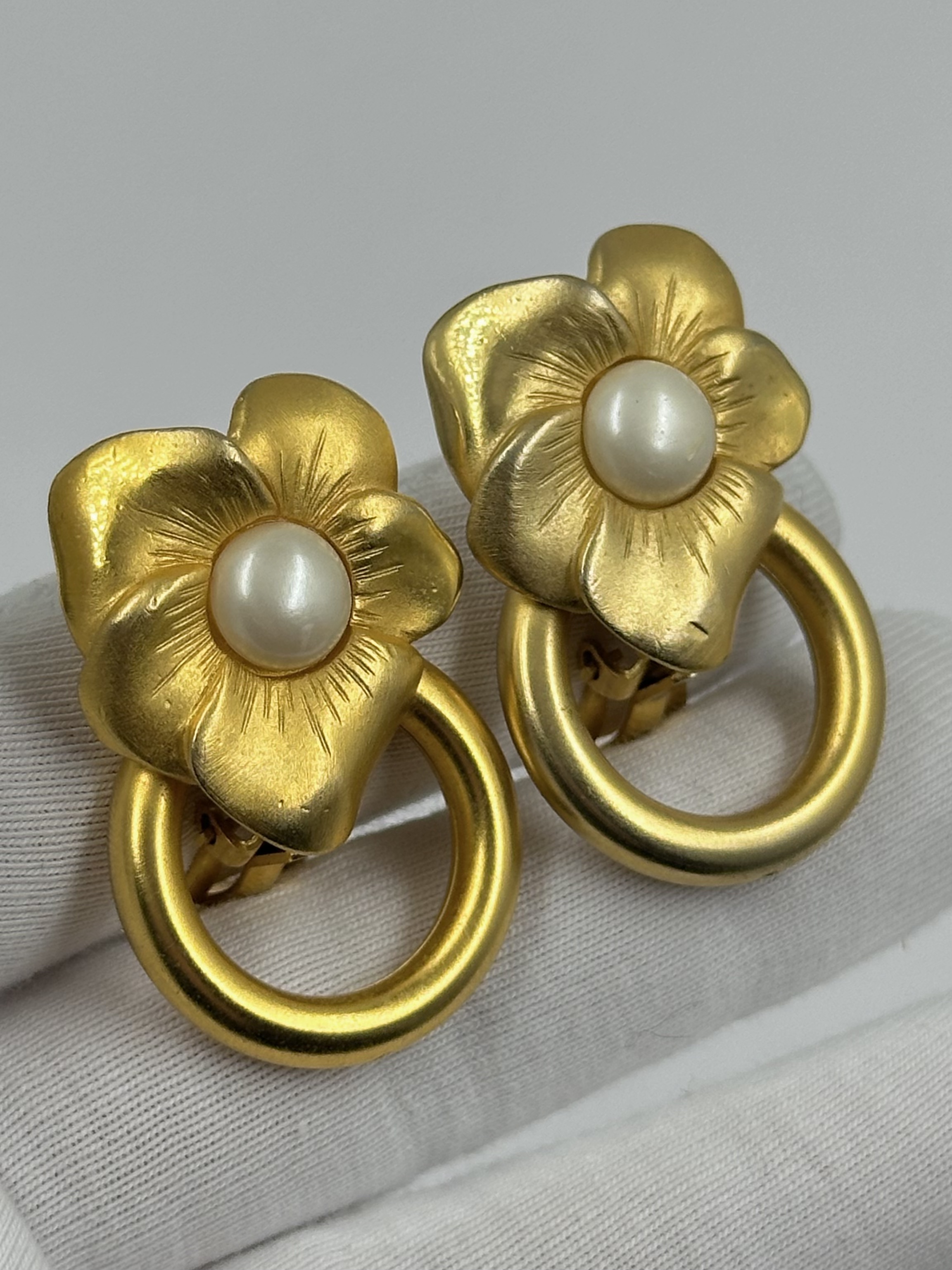 Бижутерный сплав, позолота, имитация жемчуга. Оттенок позолоты немного различается.