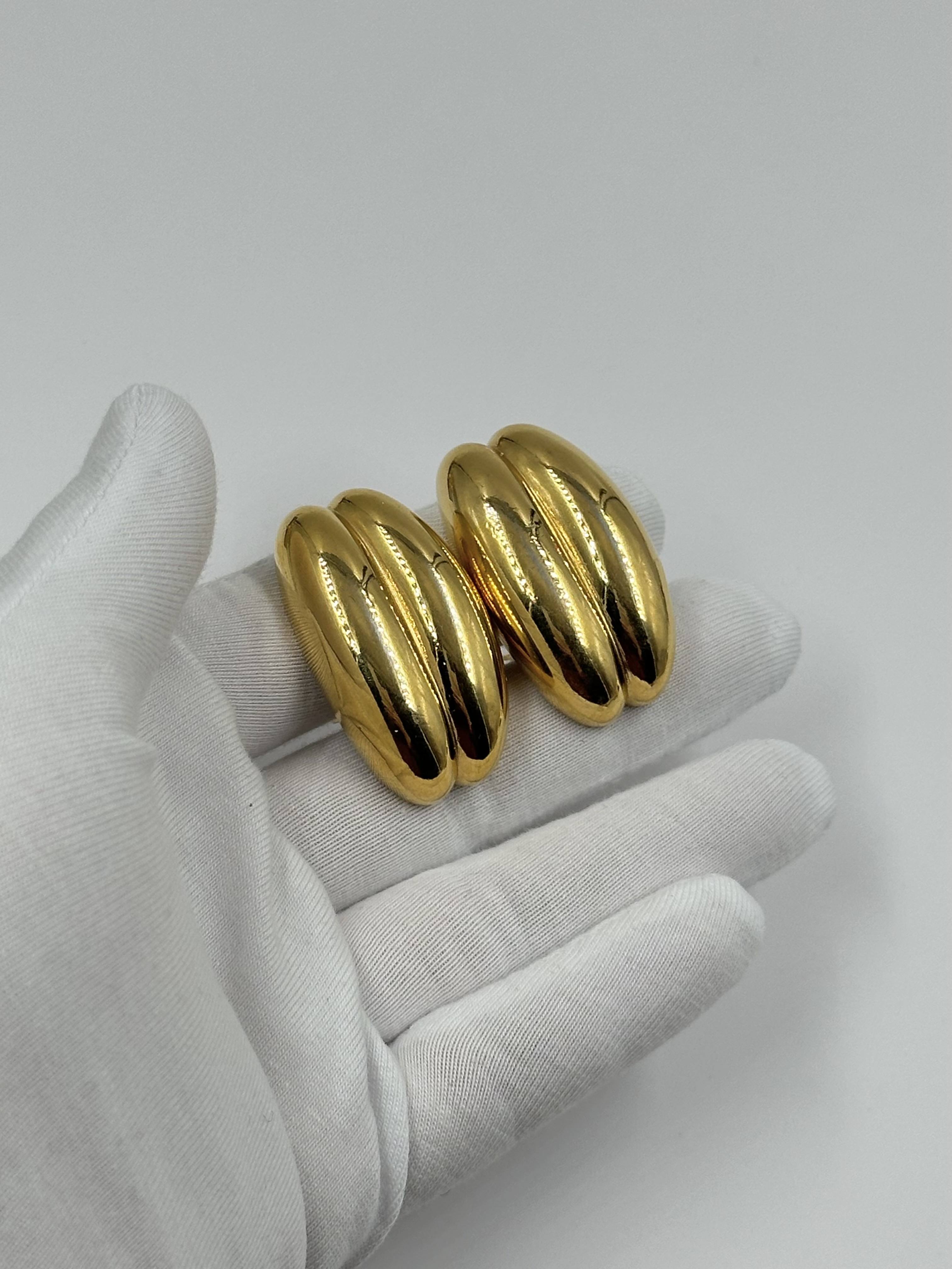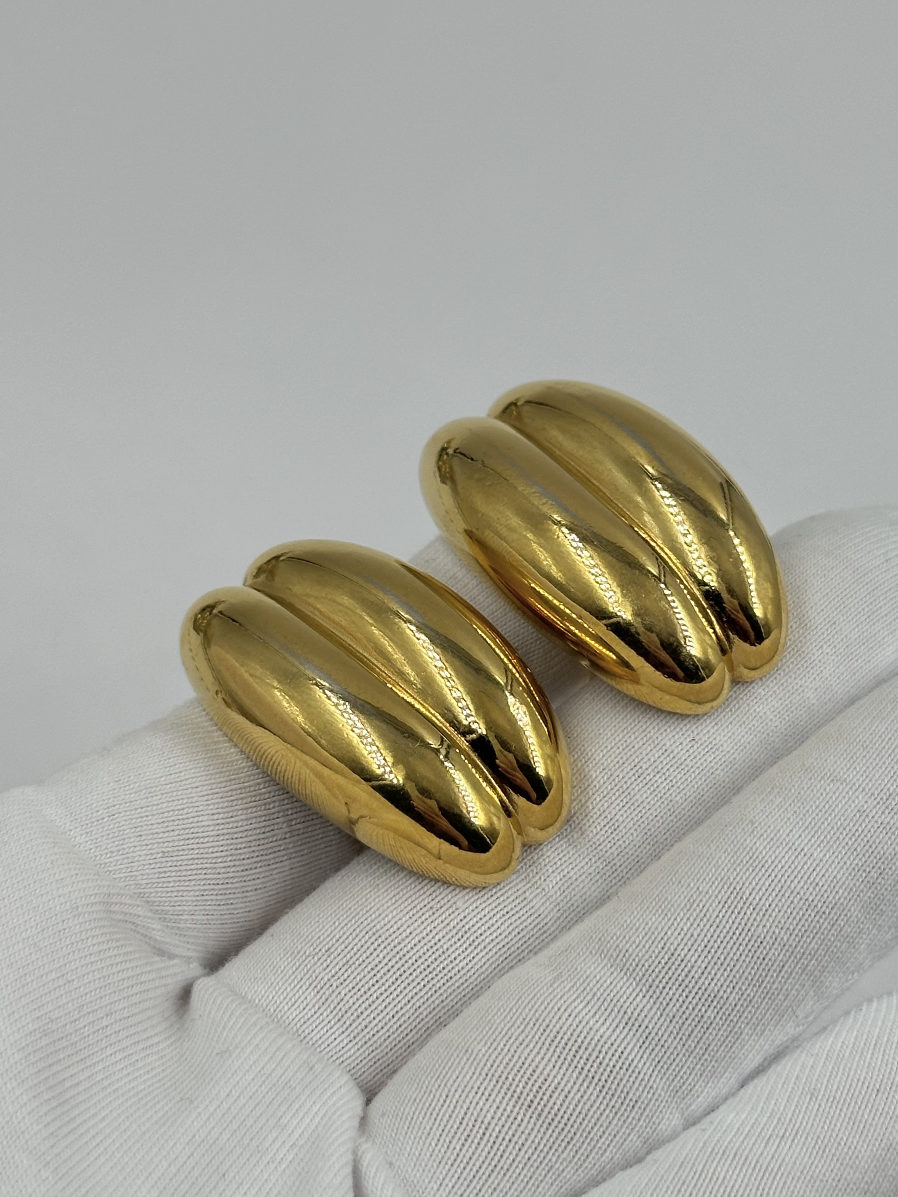 Бижутерный сплав, позолота. Размер 2,1 х 3,7см. Присутствуют потертости и небольшие сколы покрытия с обратной стороны.