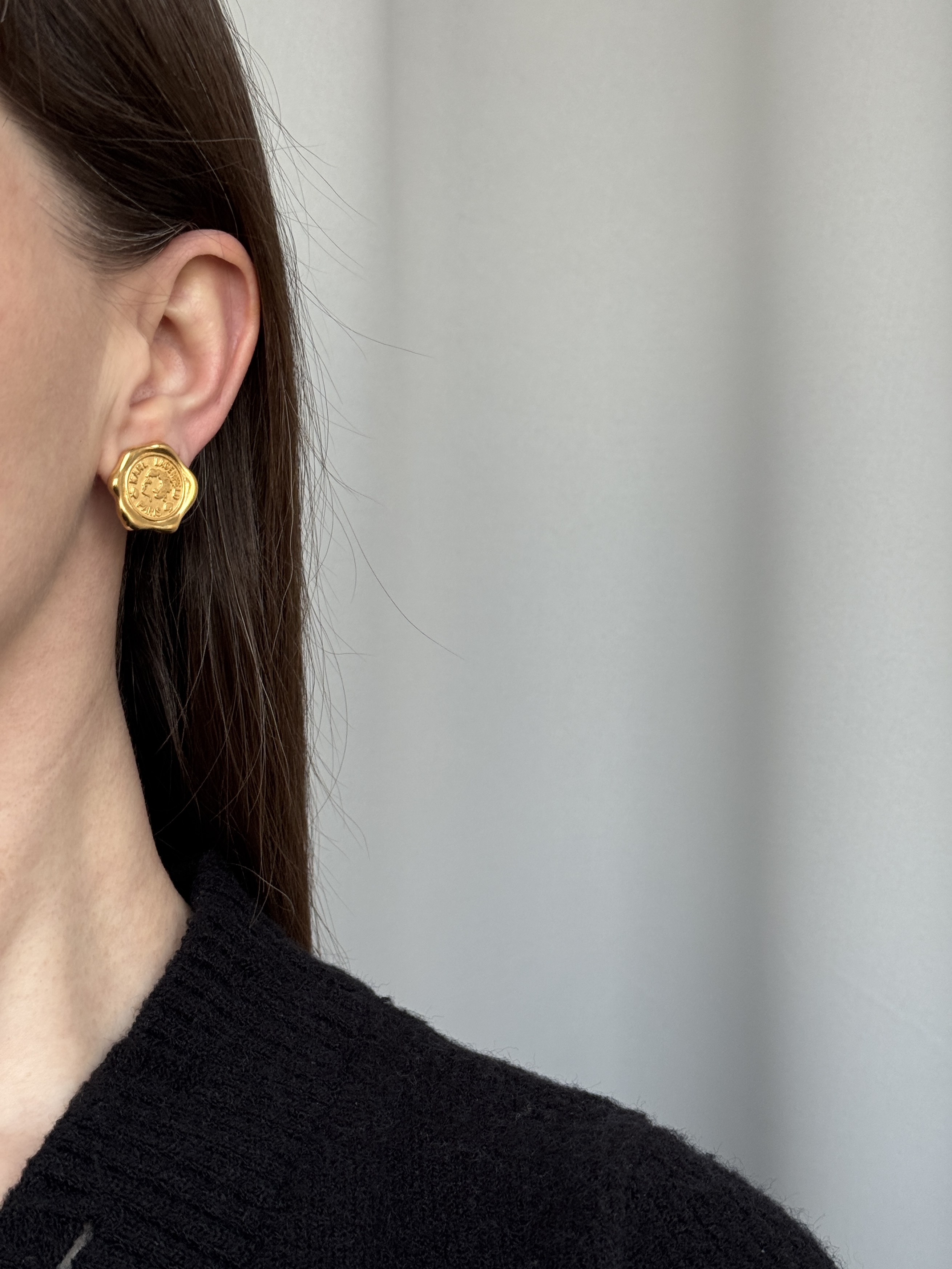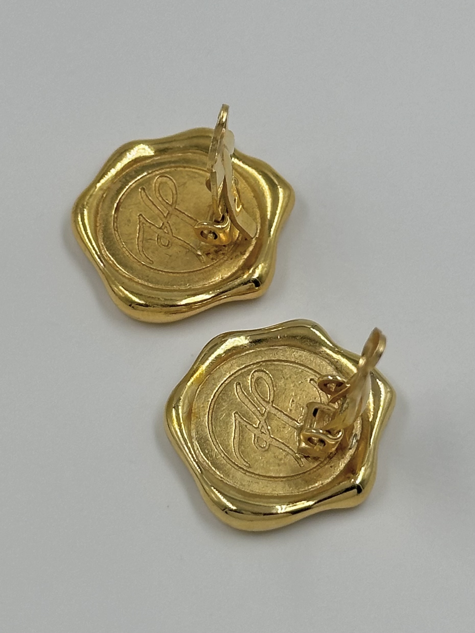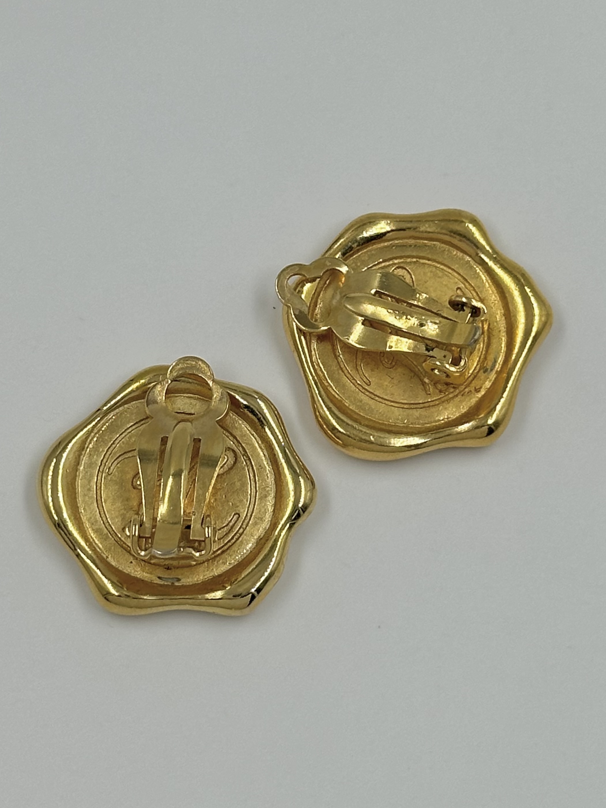 Бижутерный сплав, позолота. Размер 2 х 2,2см. Зажимы прилегают не плотно, но не влияет на посадку.