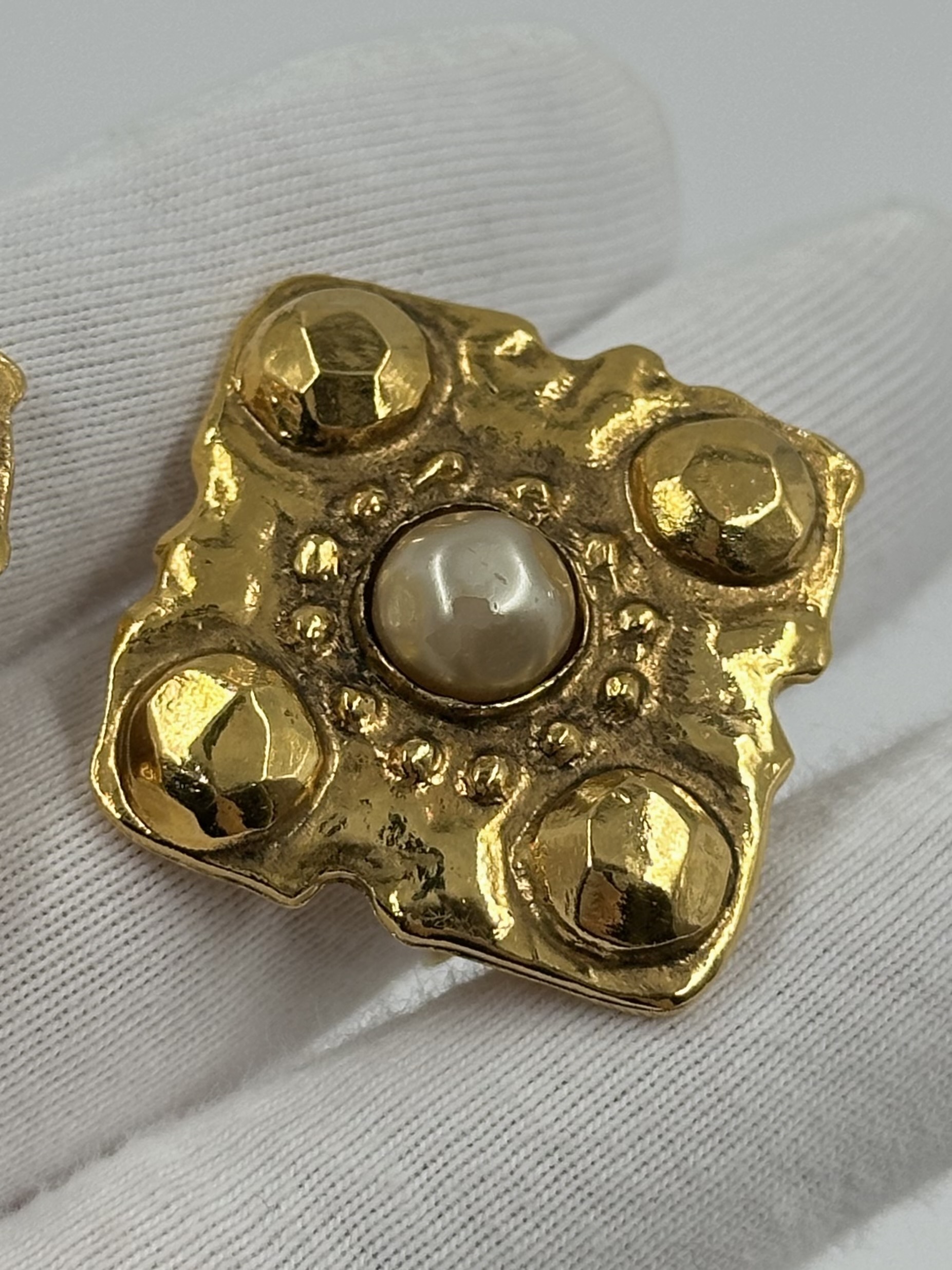 Бижутерный сплав, позолота, имитация жемчуга. Присутствуют сходы покрытия на вставках. Размер 3,5см. 23 сезон (1984 год).