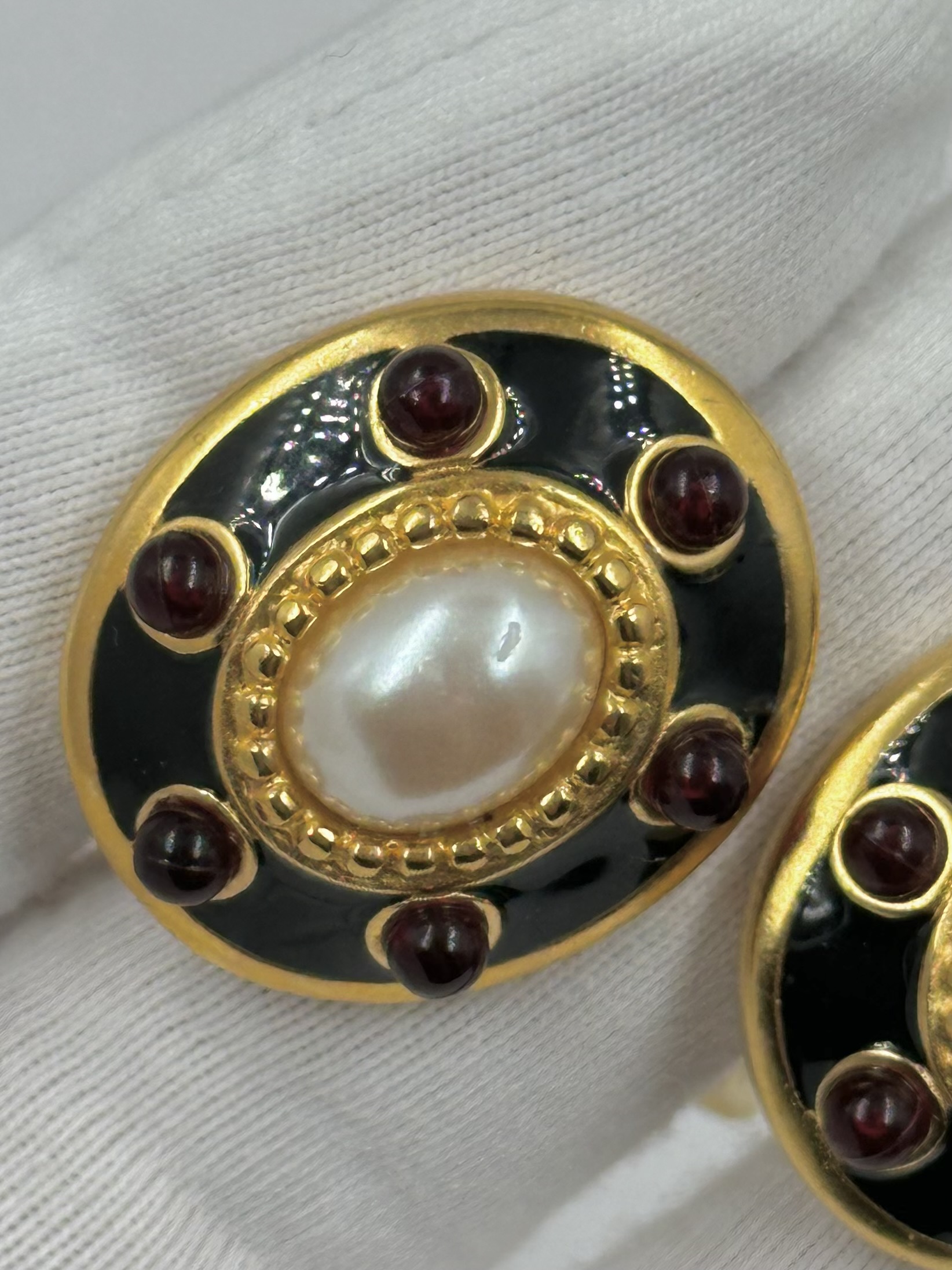 Бижутерный сплав, эмаль, пластик. На вставках присутствуют сходы покрытия. Размер 2 х 2,3см.