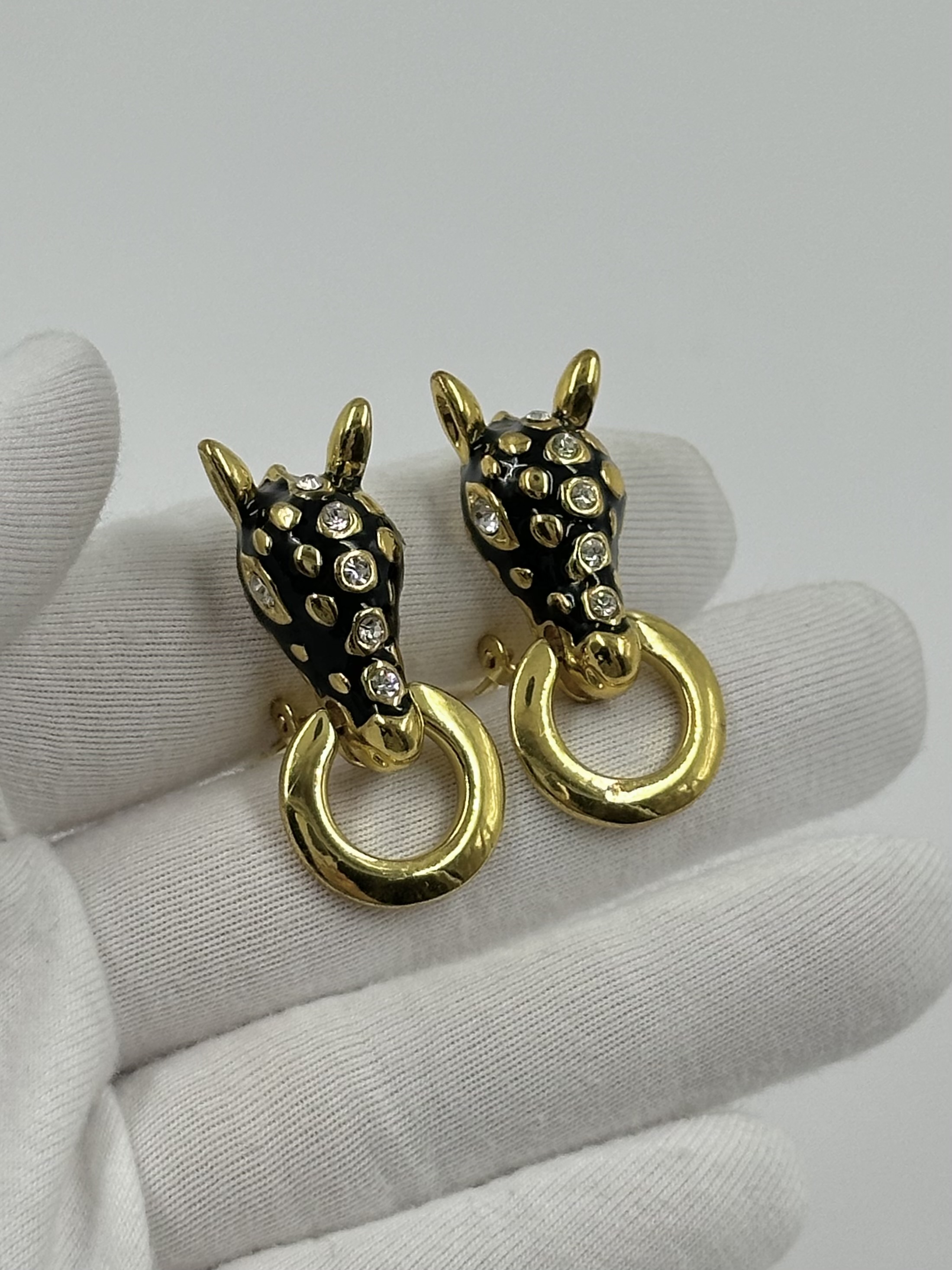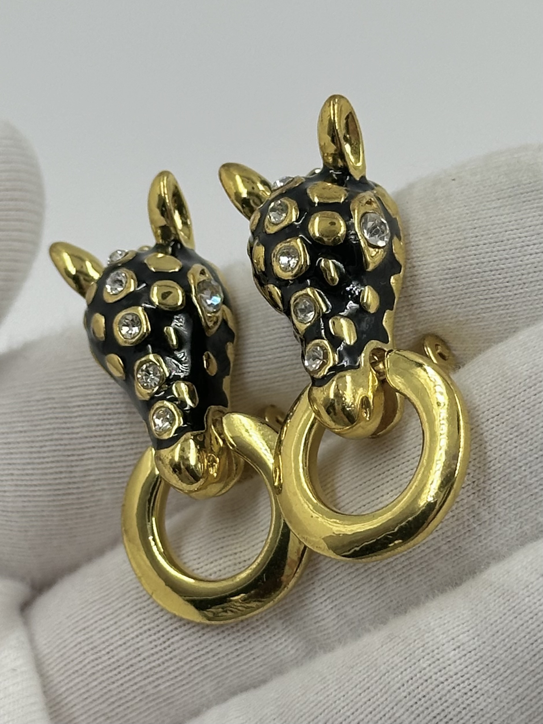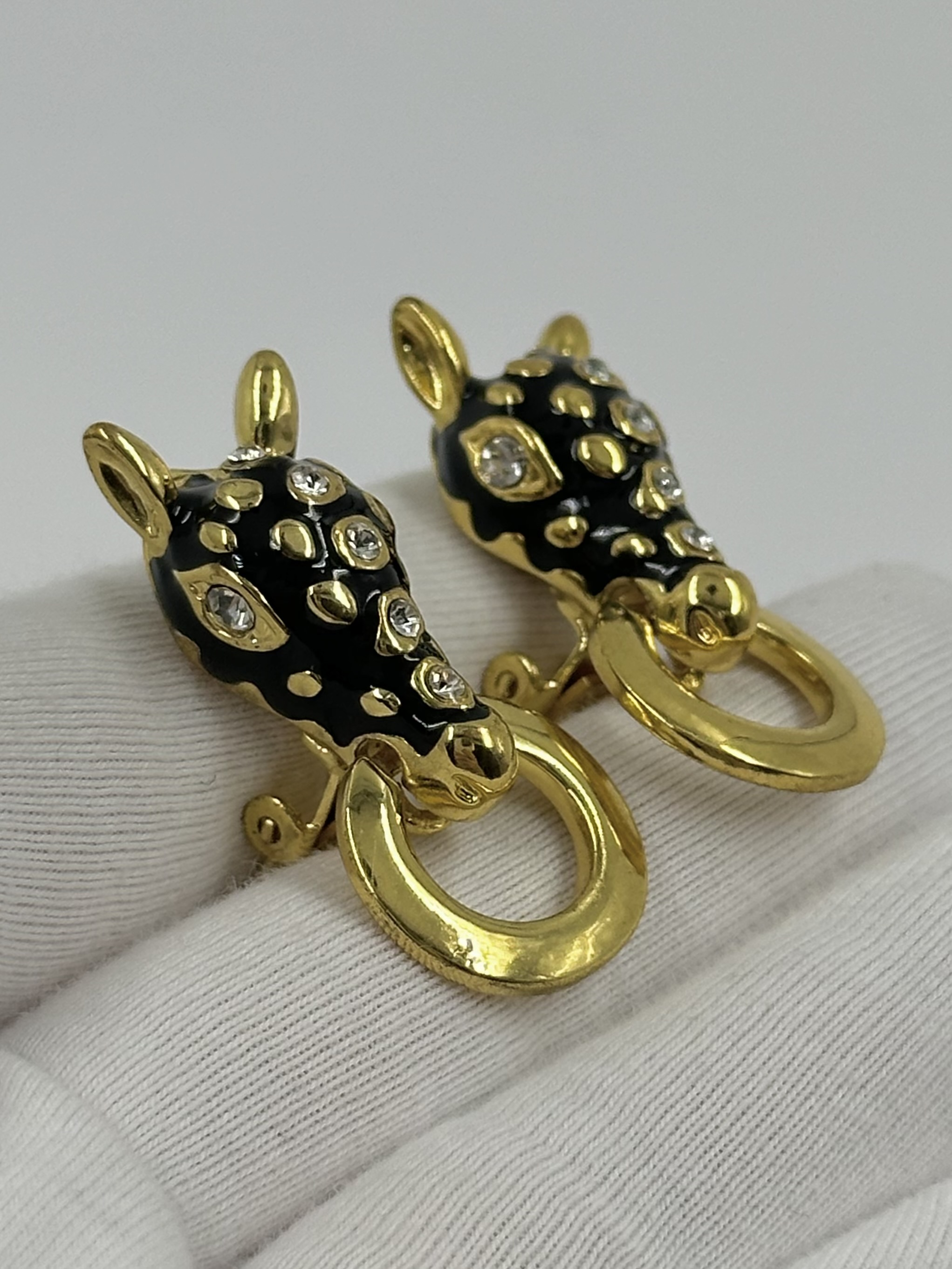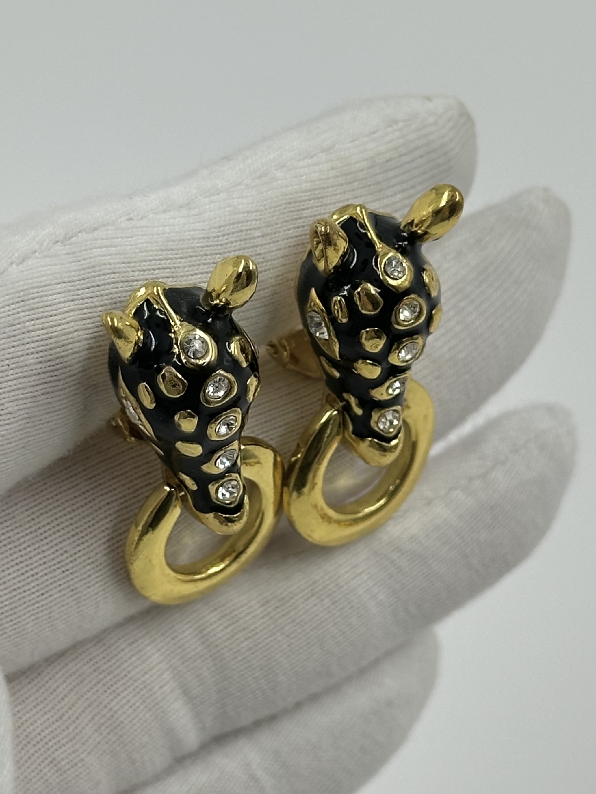 Бижутерный сплав, эмаль, кристаллы. Размер 1,7 x 3,7см. Небольшие потемнения на замках.