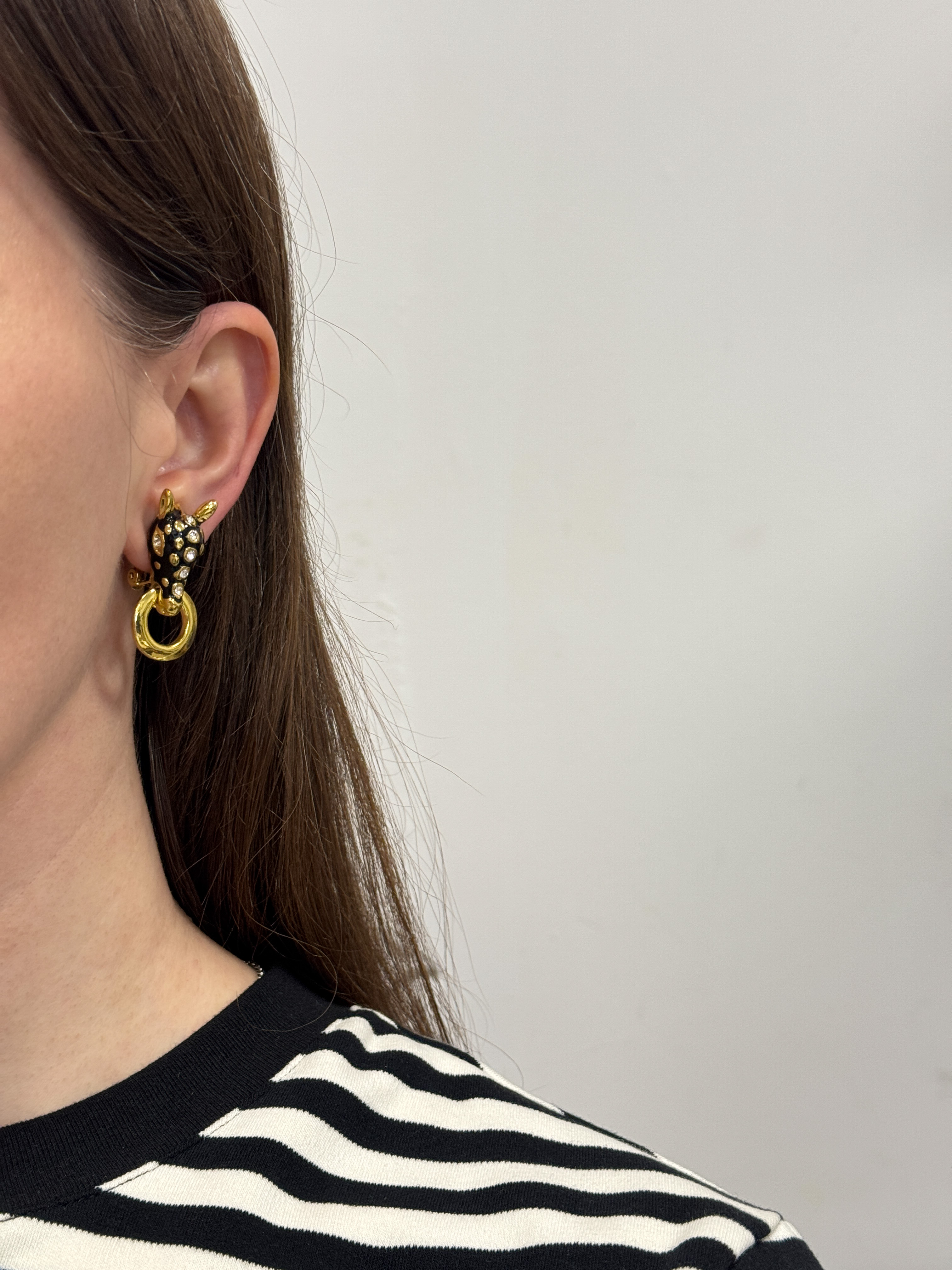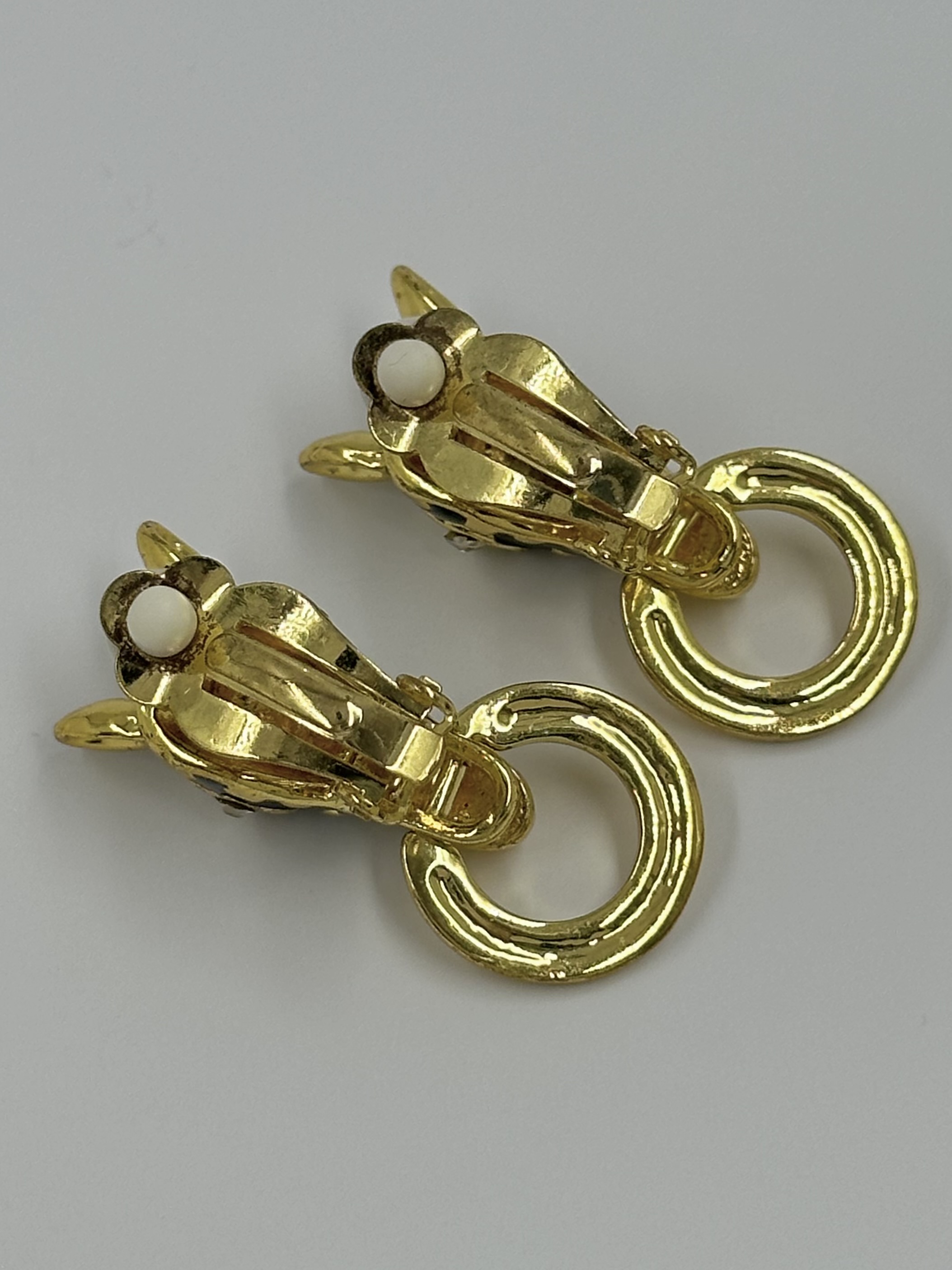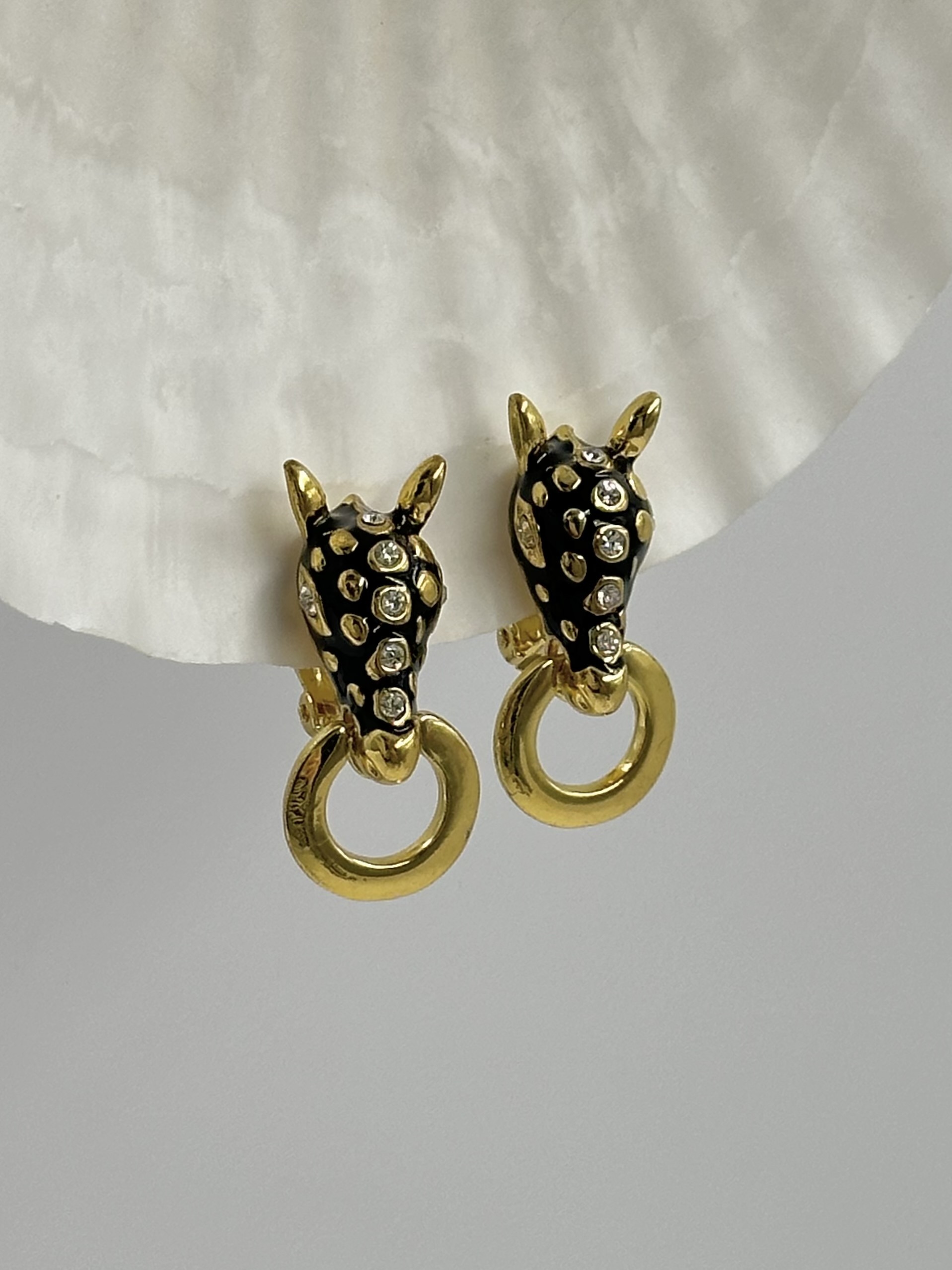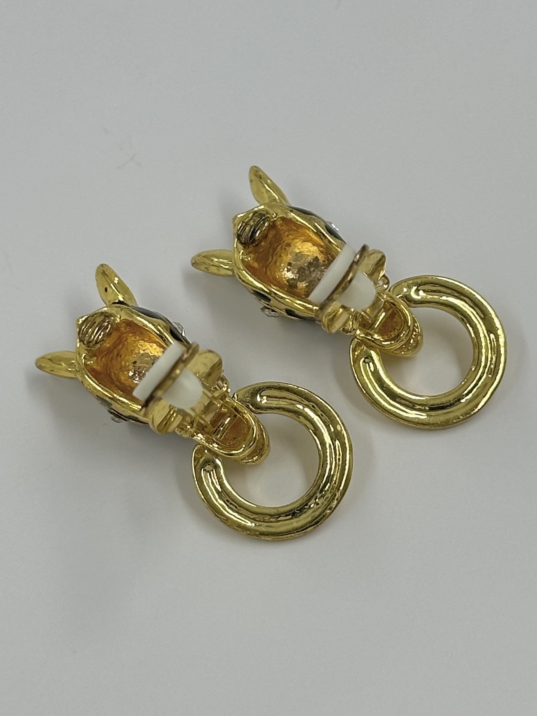 Бижутерный сплав, эмаль, кристаллы. Размер 1,7 x 3,7см. Небольшие потемнения на замках.