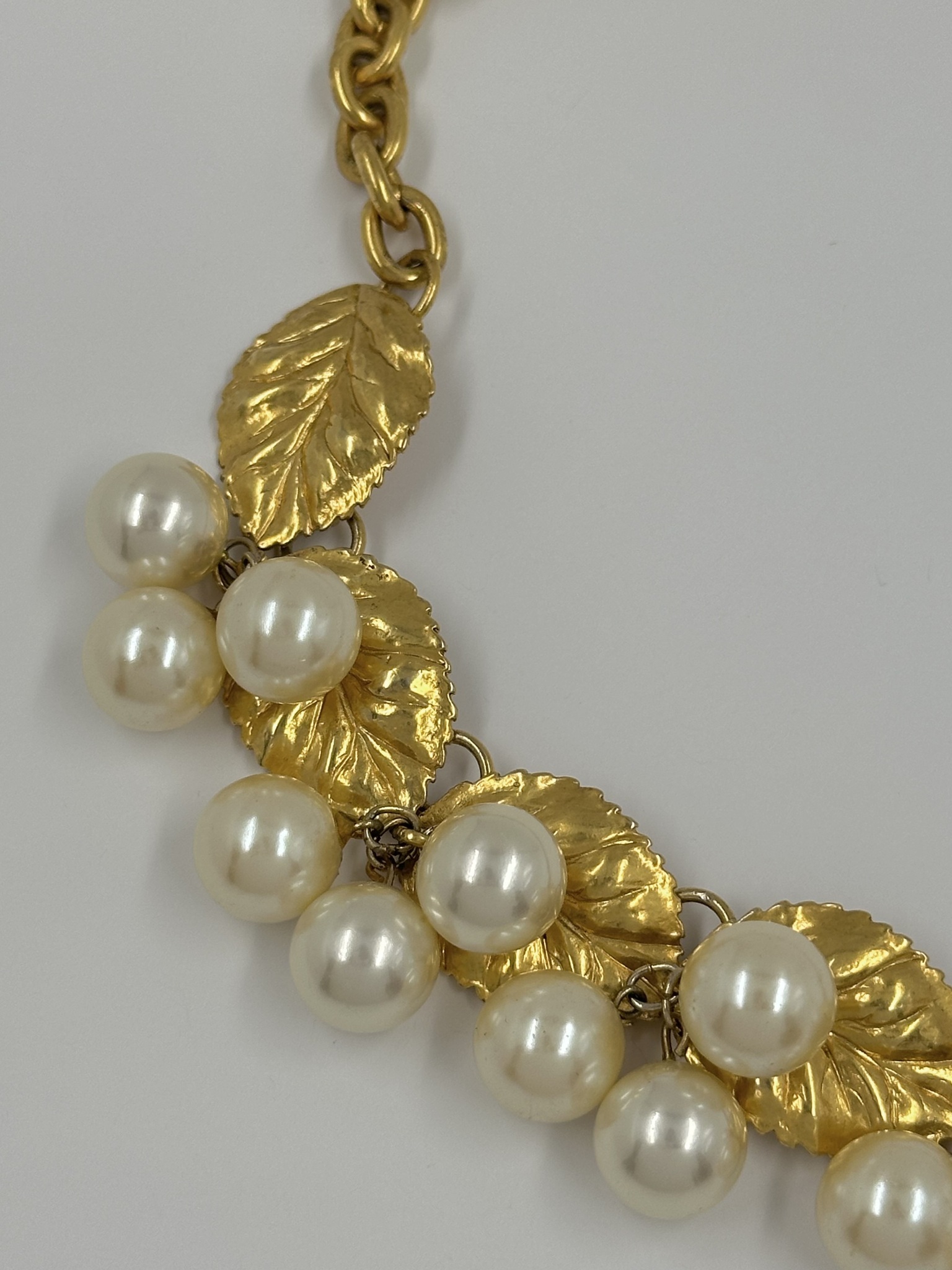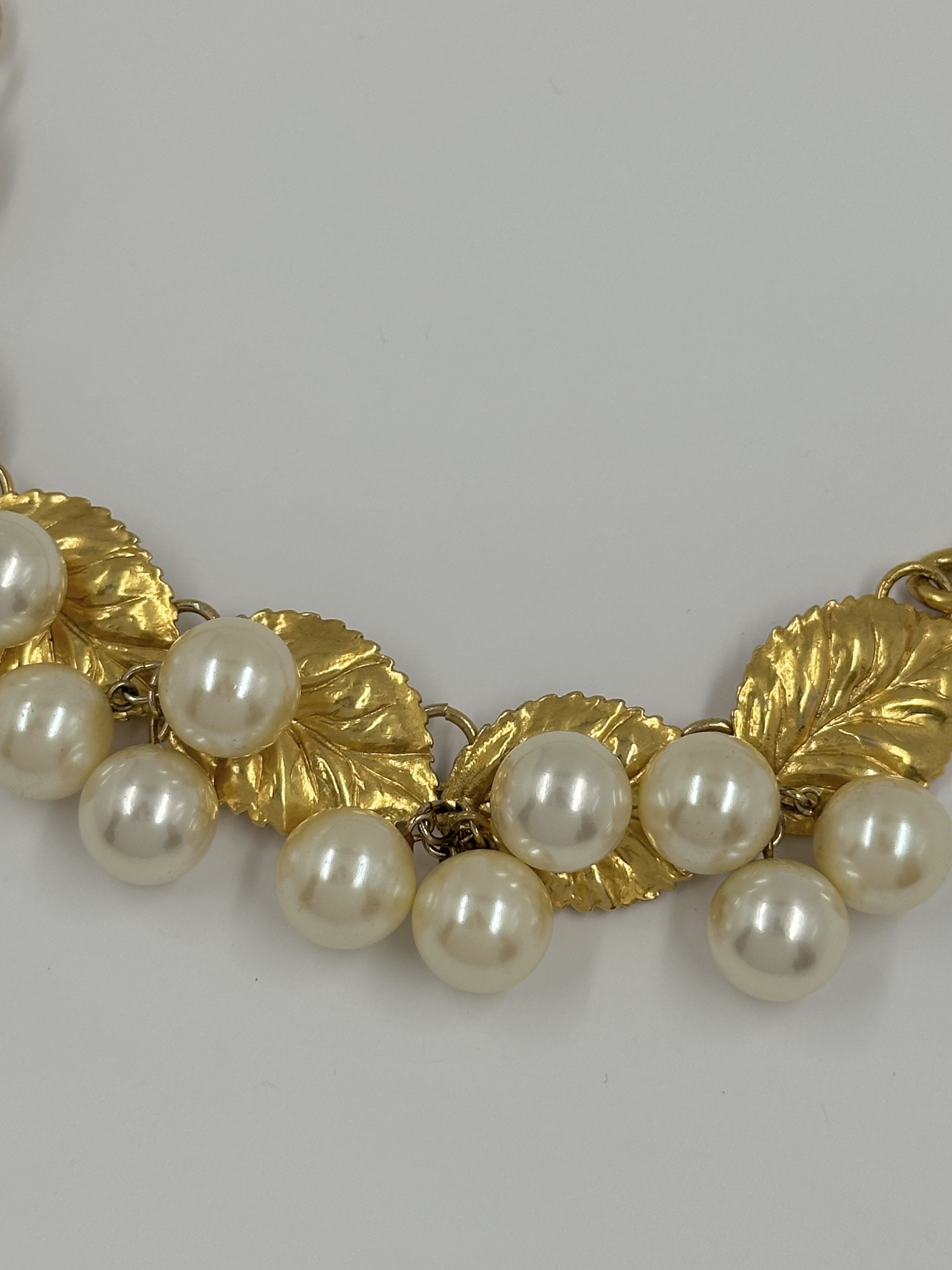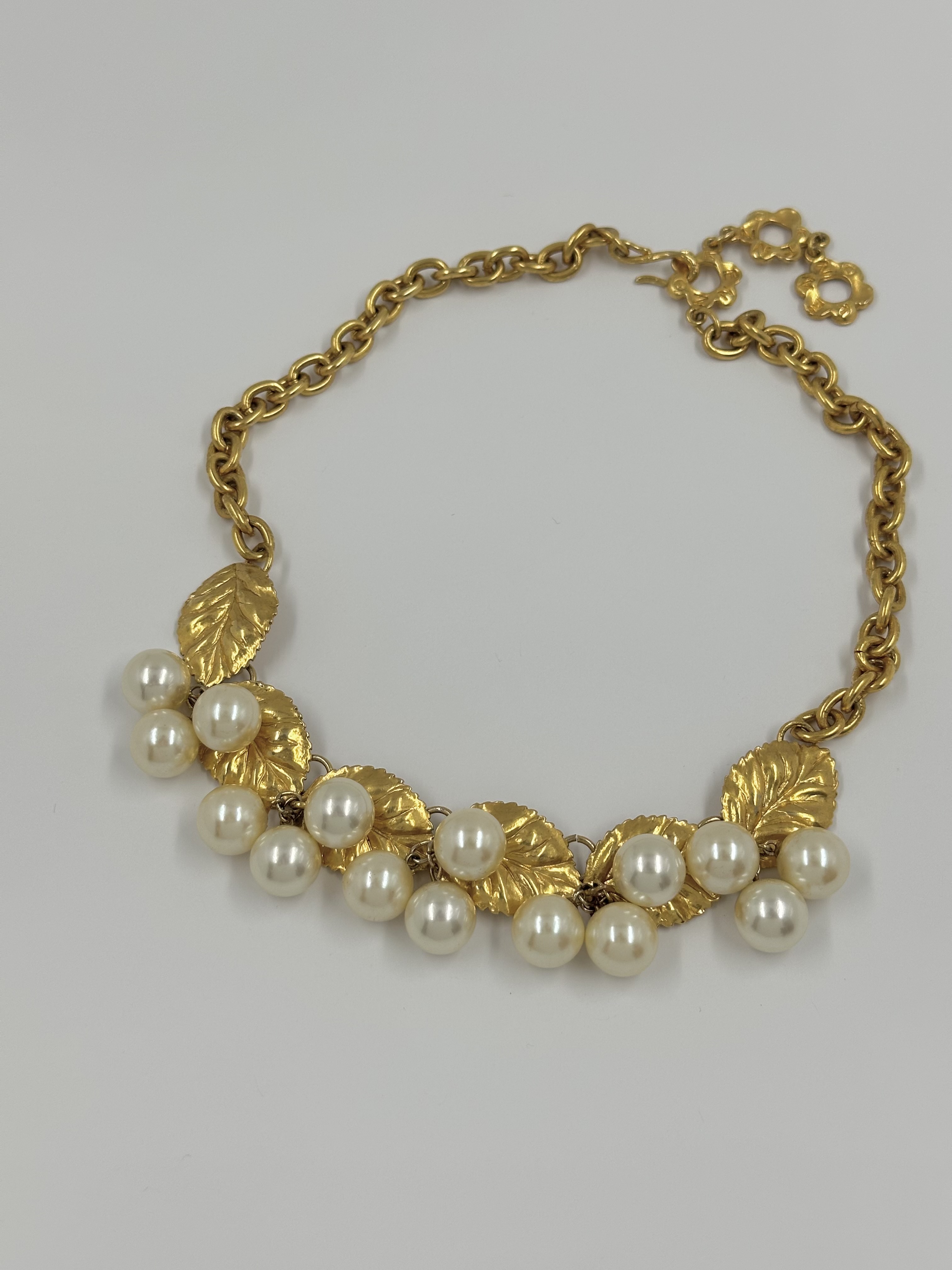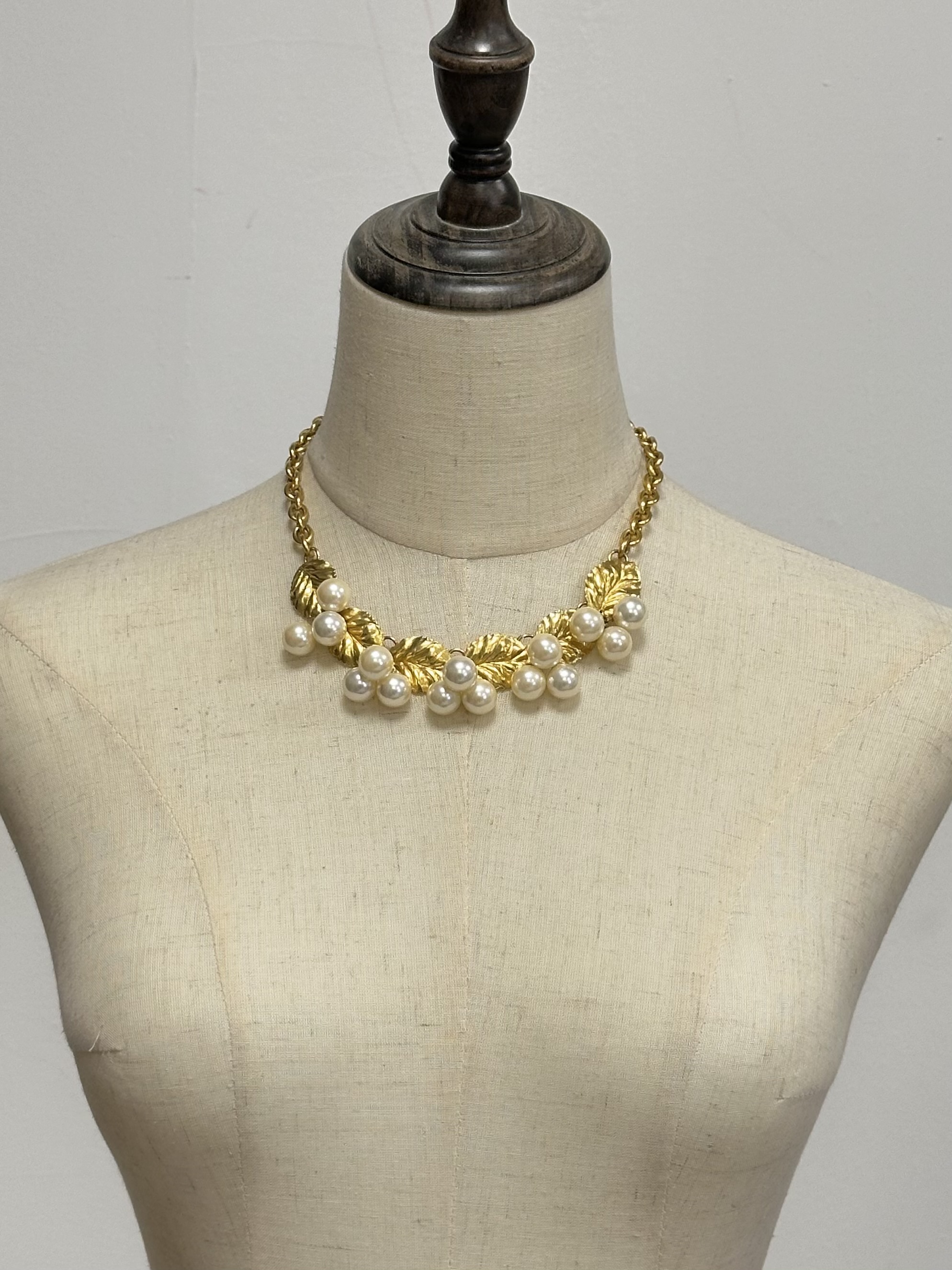 Бижутерный сплав, позолота, имитация жемчуга.