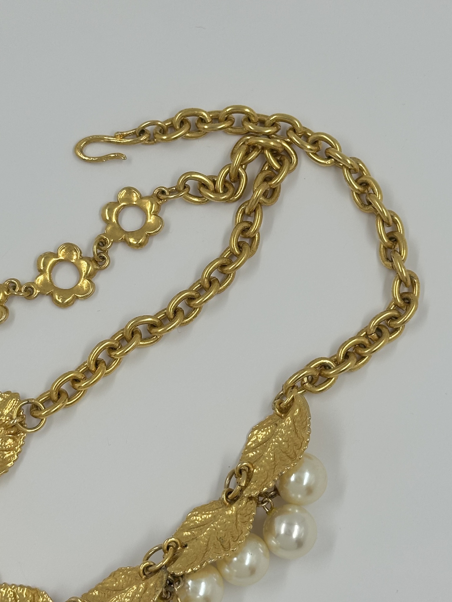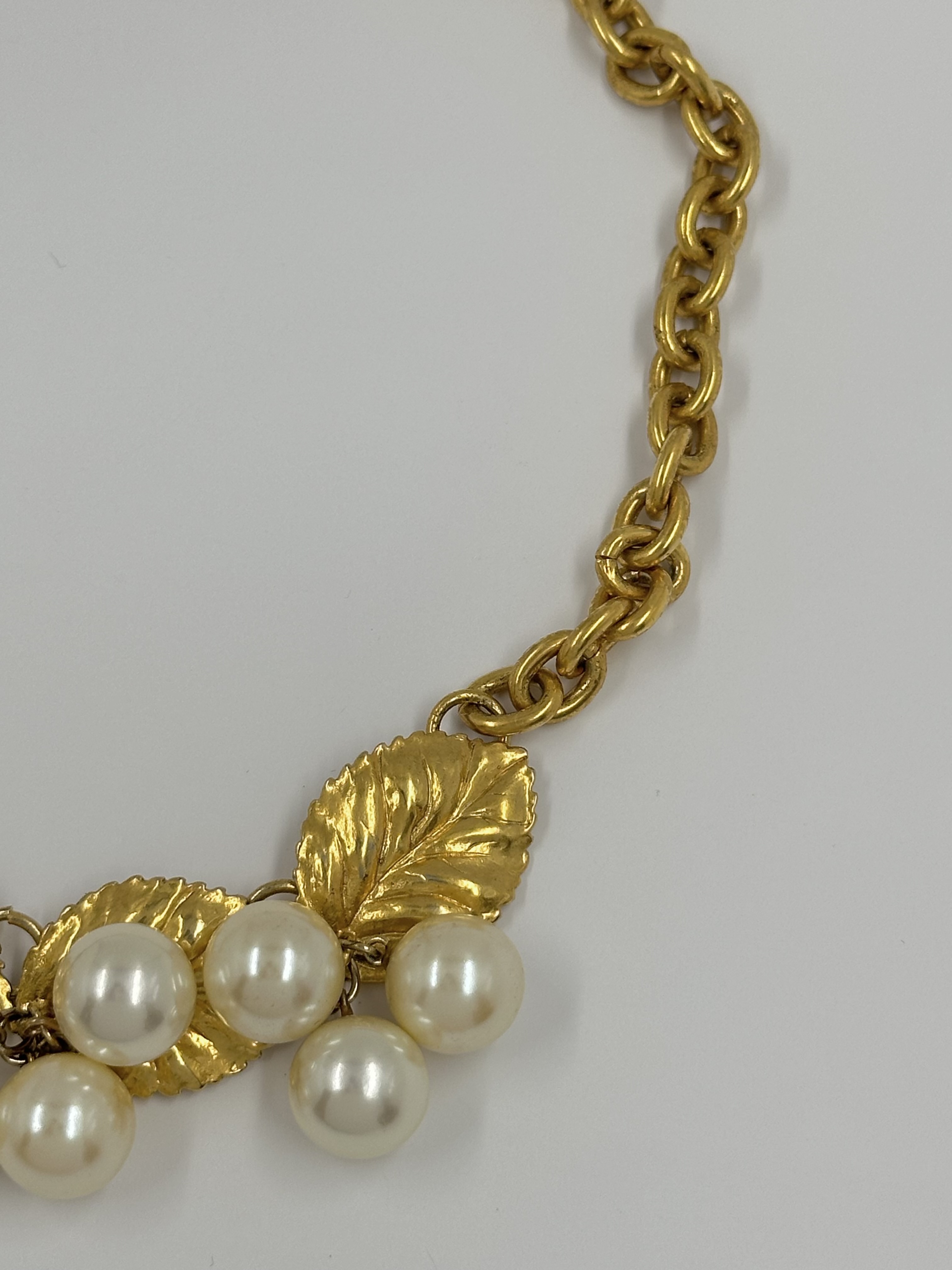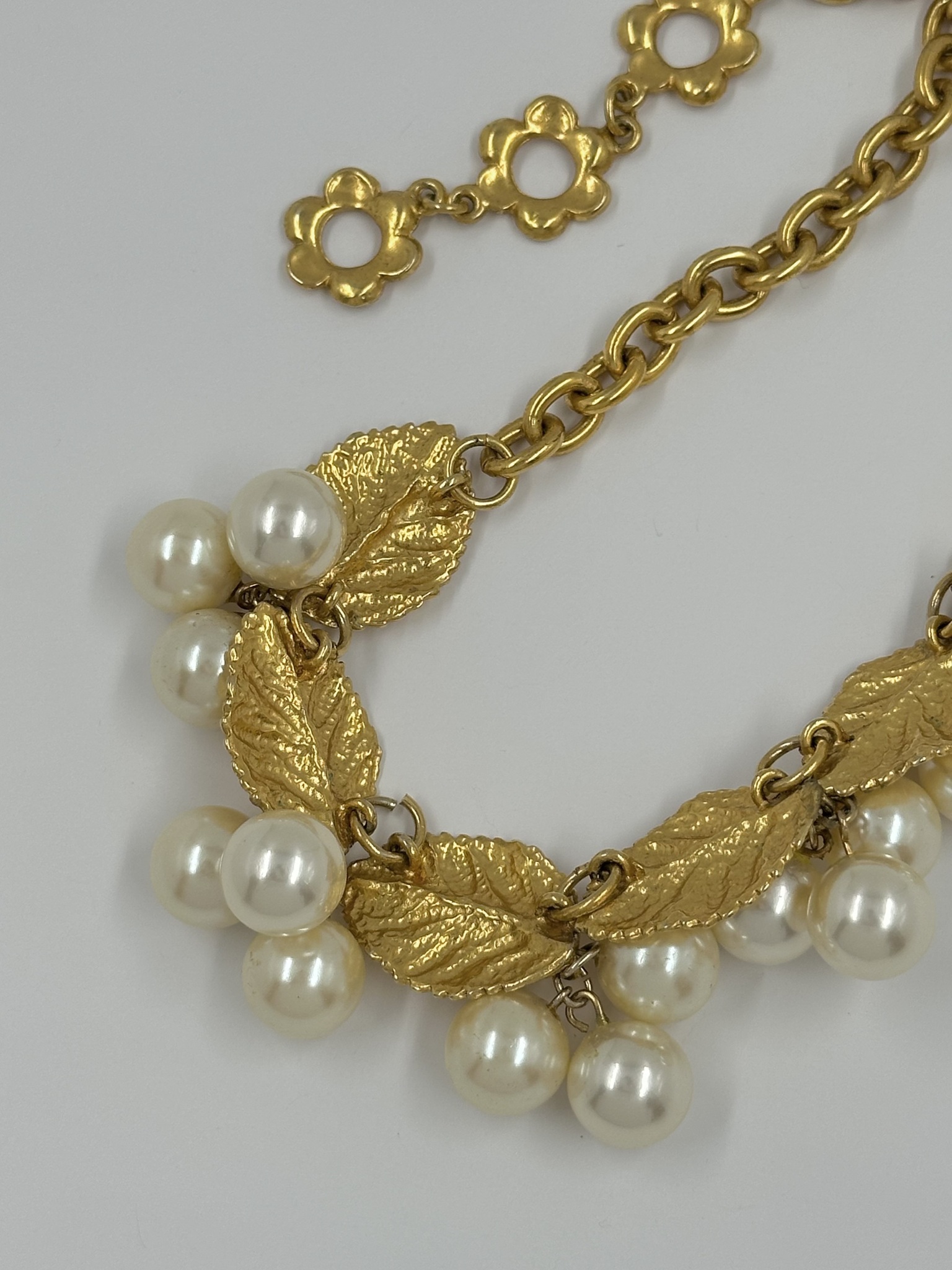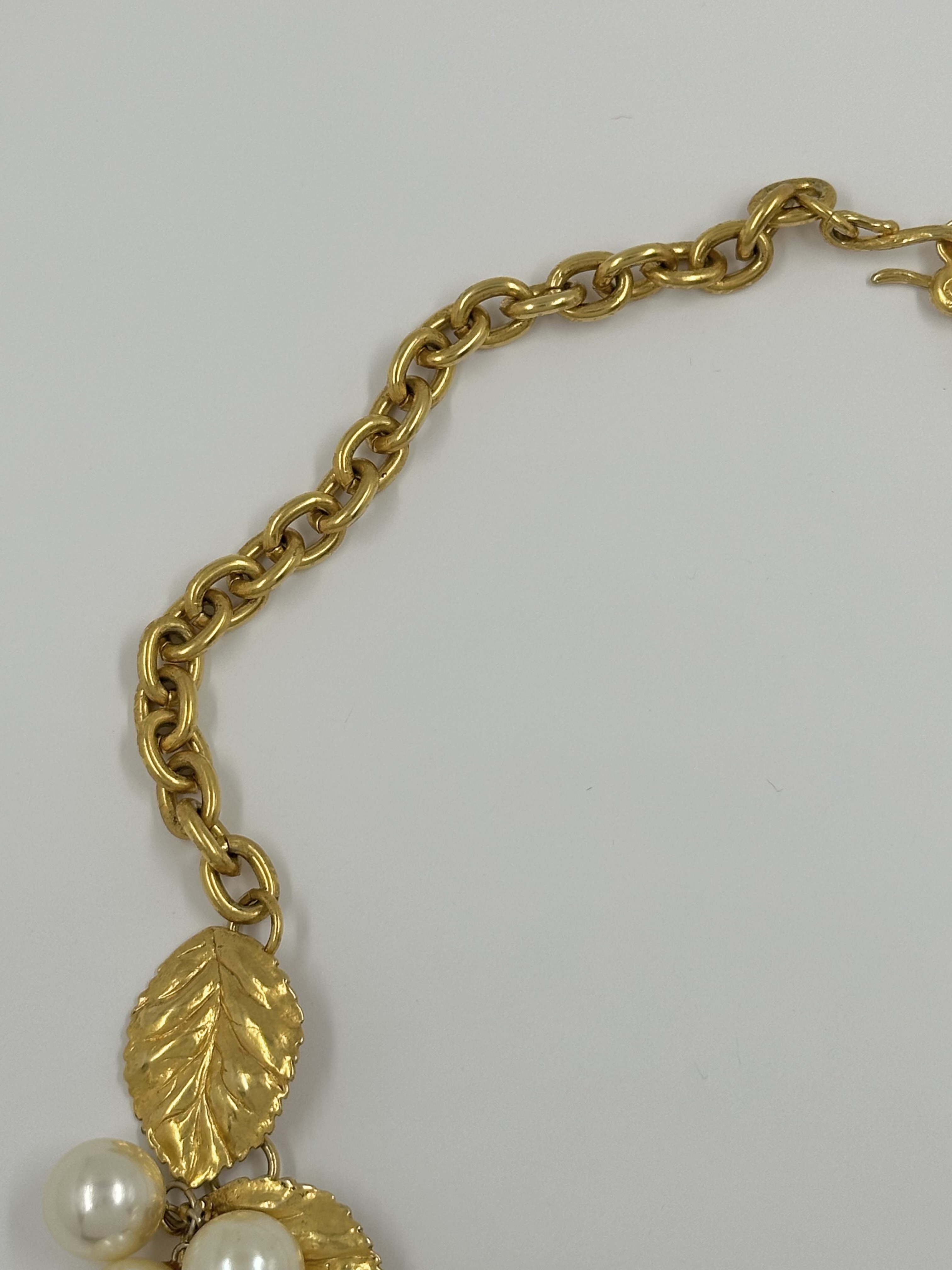 Бижутерный сплав, позолота, имитация жемчуга.