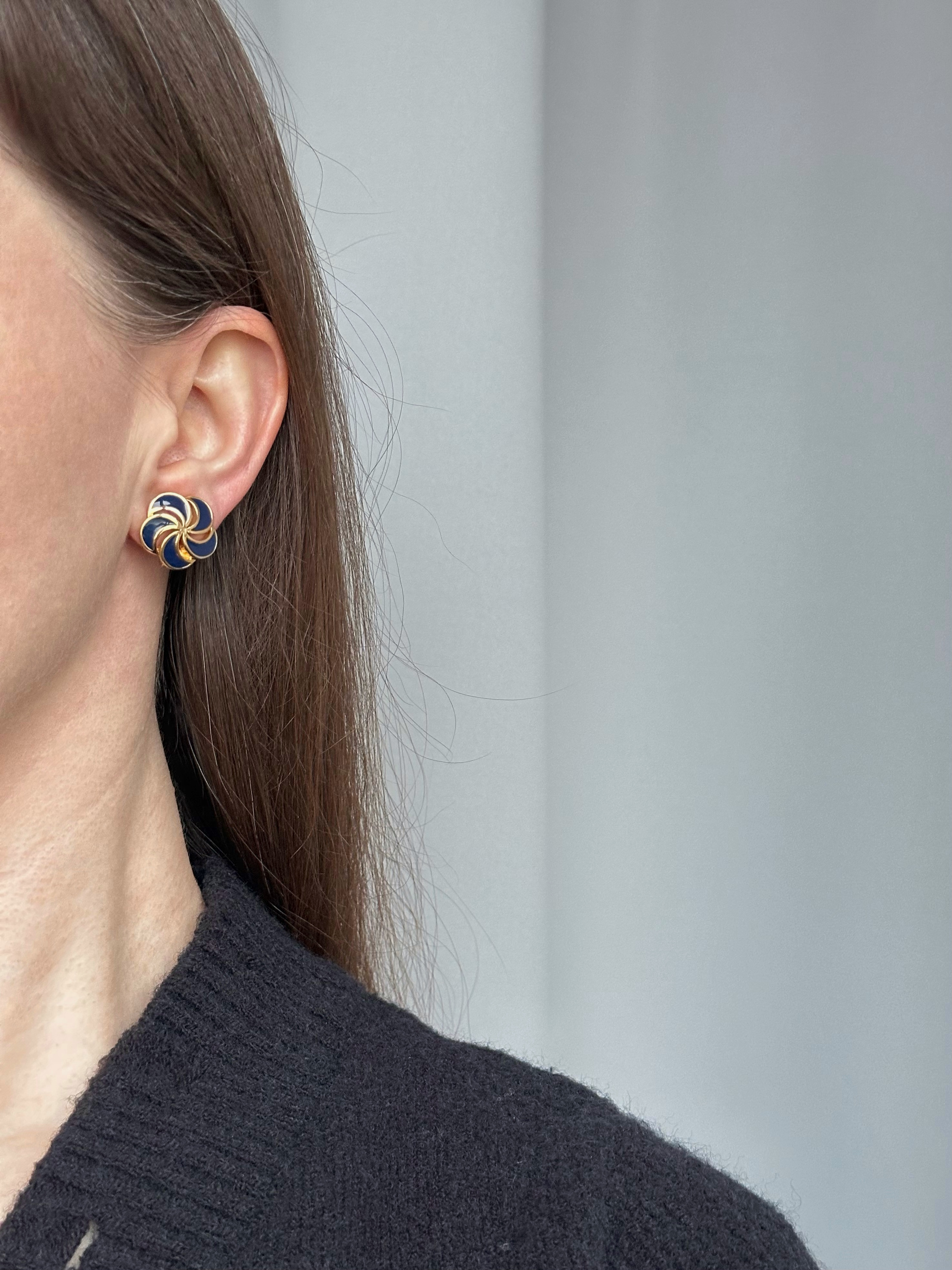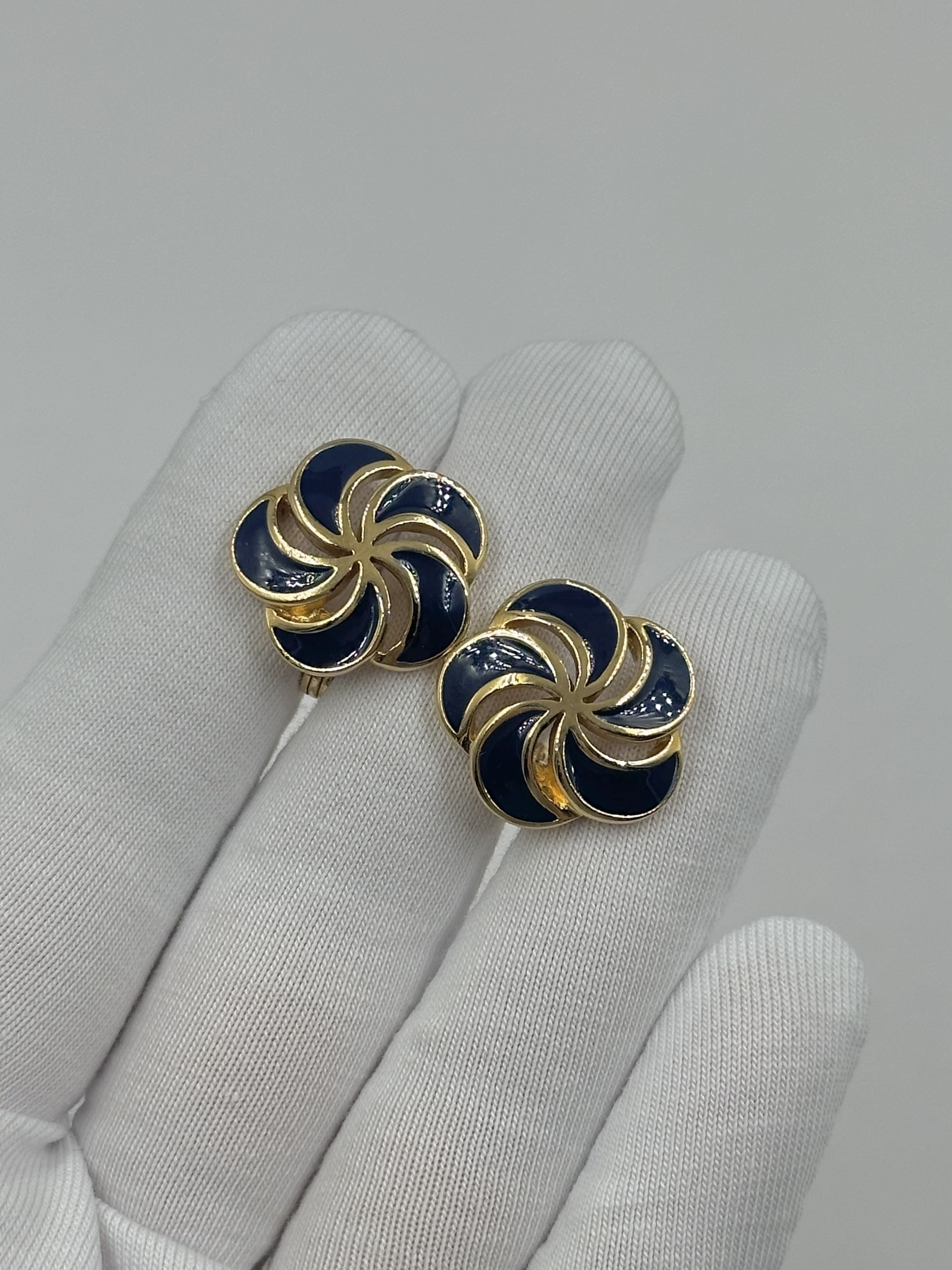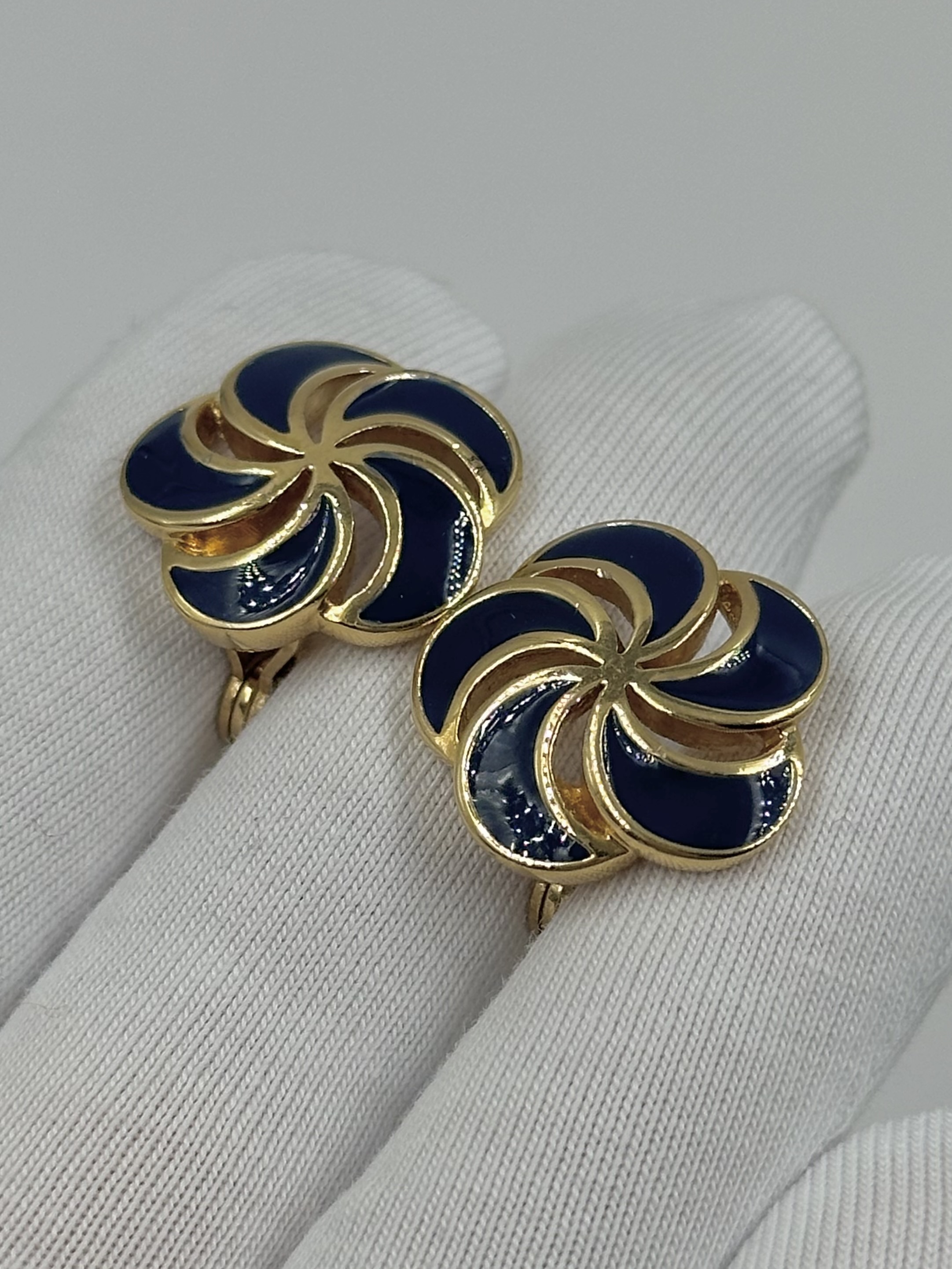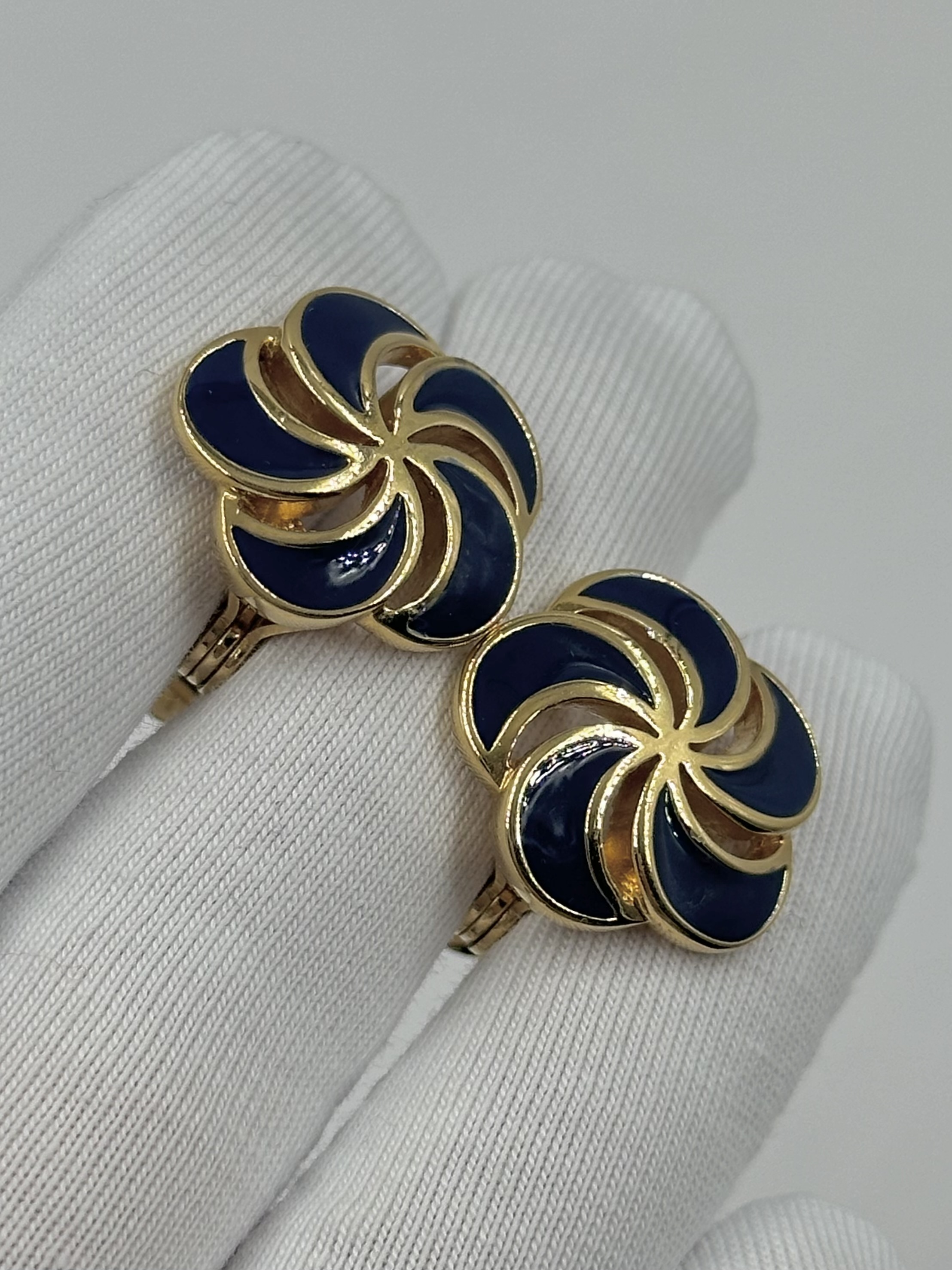 Бижутерный сплав, эмаль. Размер 1,9см. С обратной стороны присутствует небольшой скол покрытия на одной клипсе.
