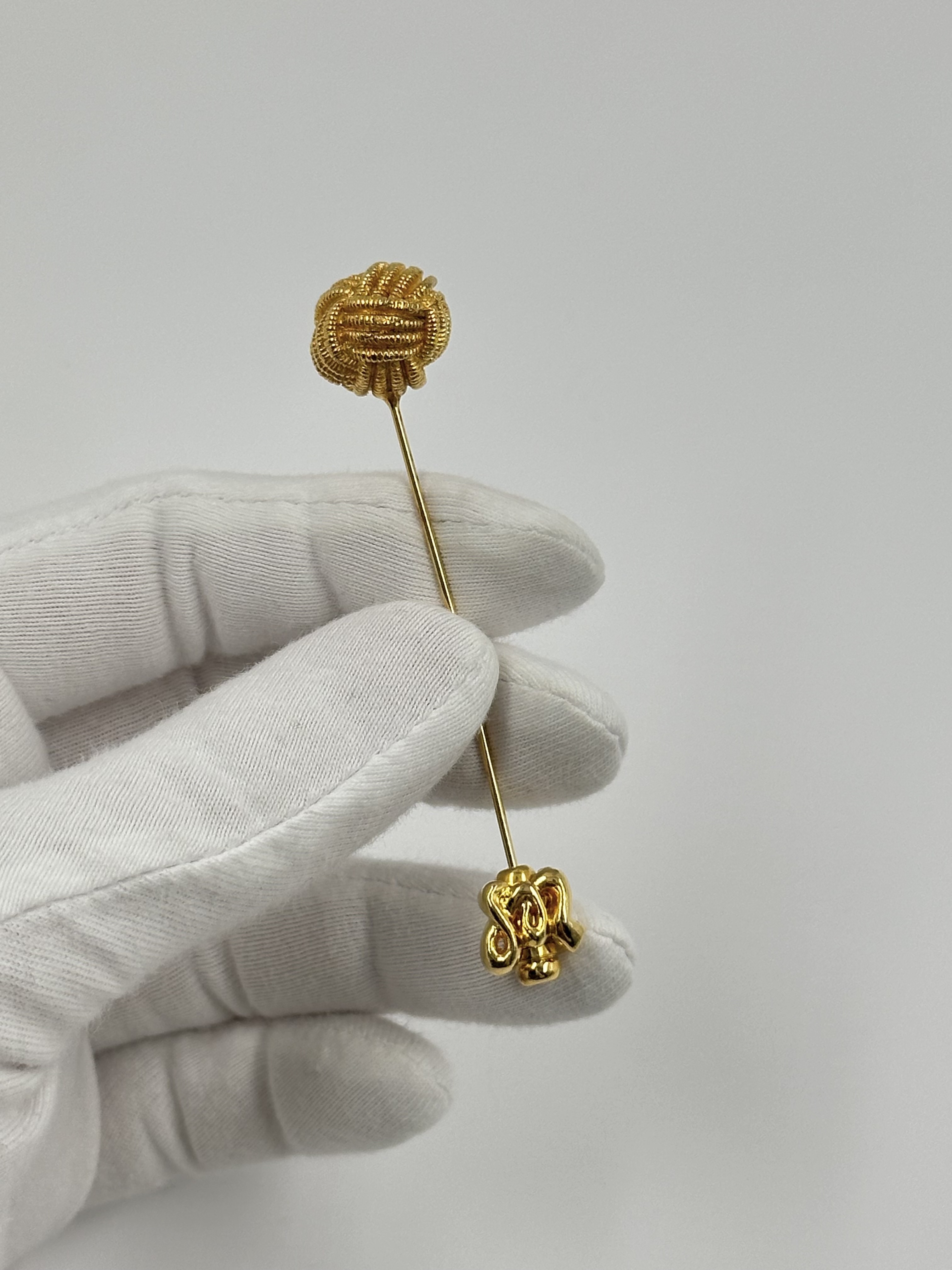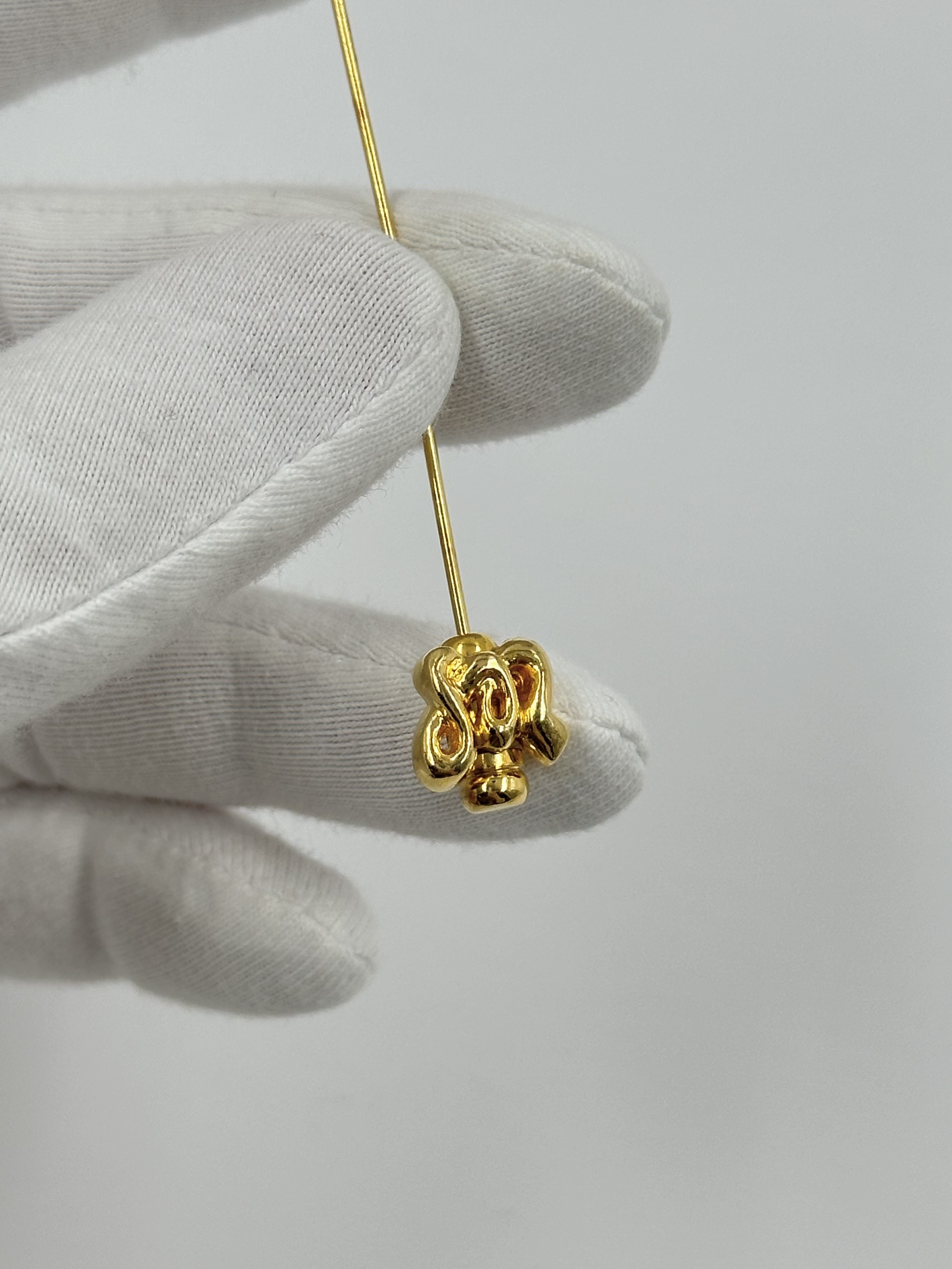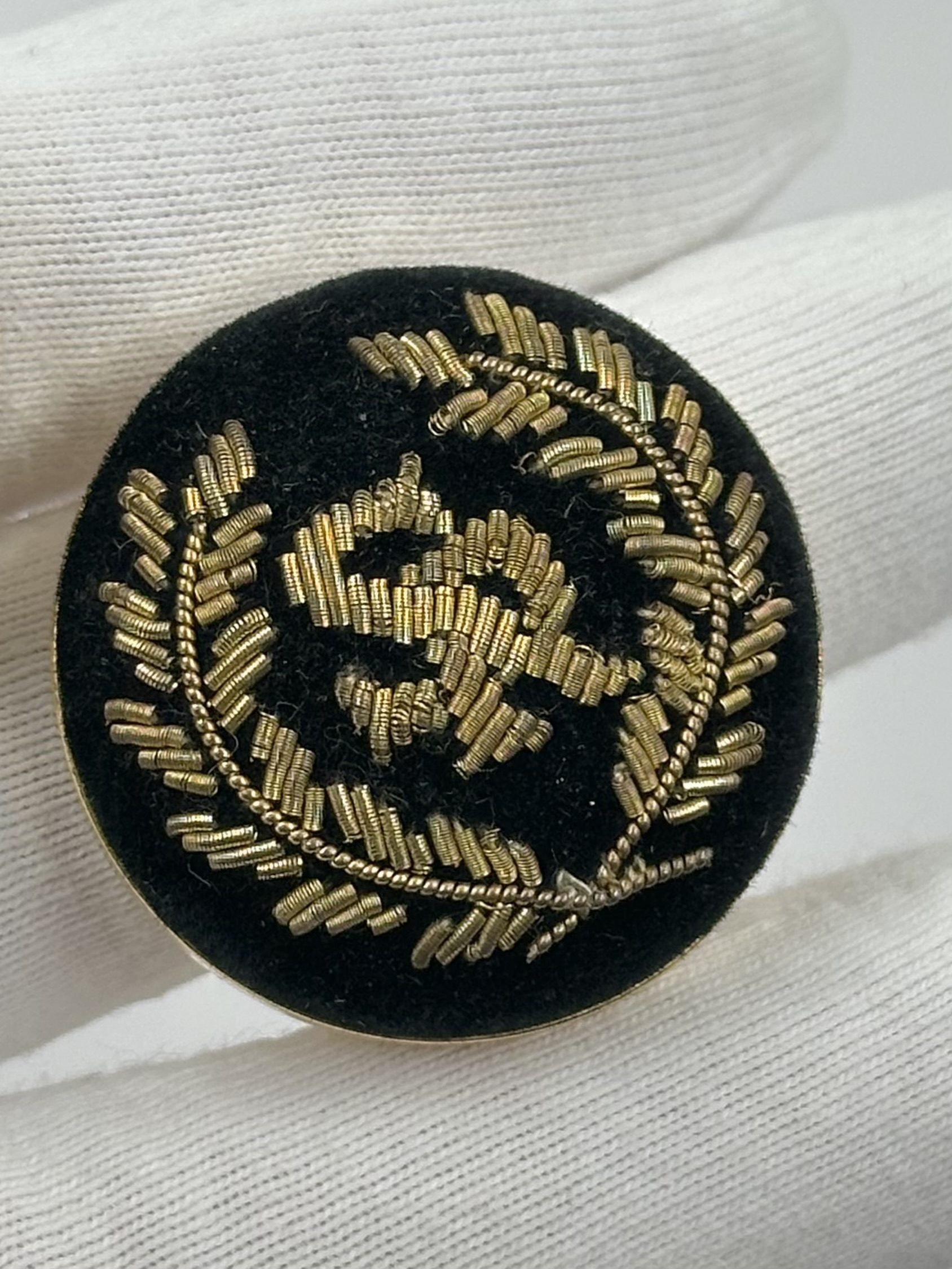 Бижутерный сплав, позолота, текстиль, канитель. Размер 2,9см.