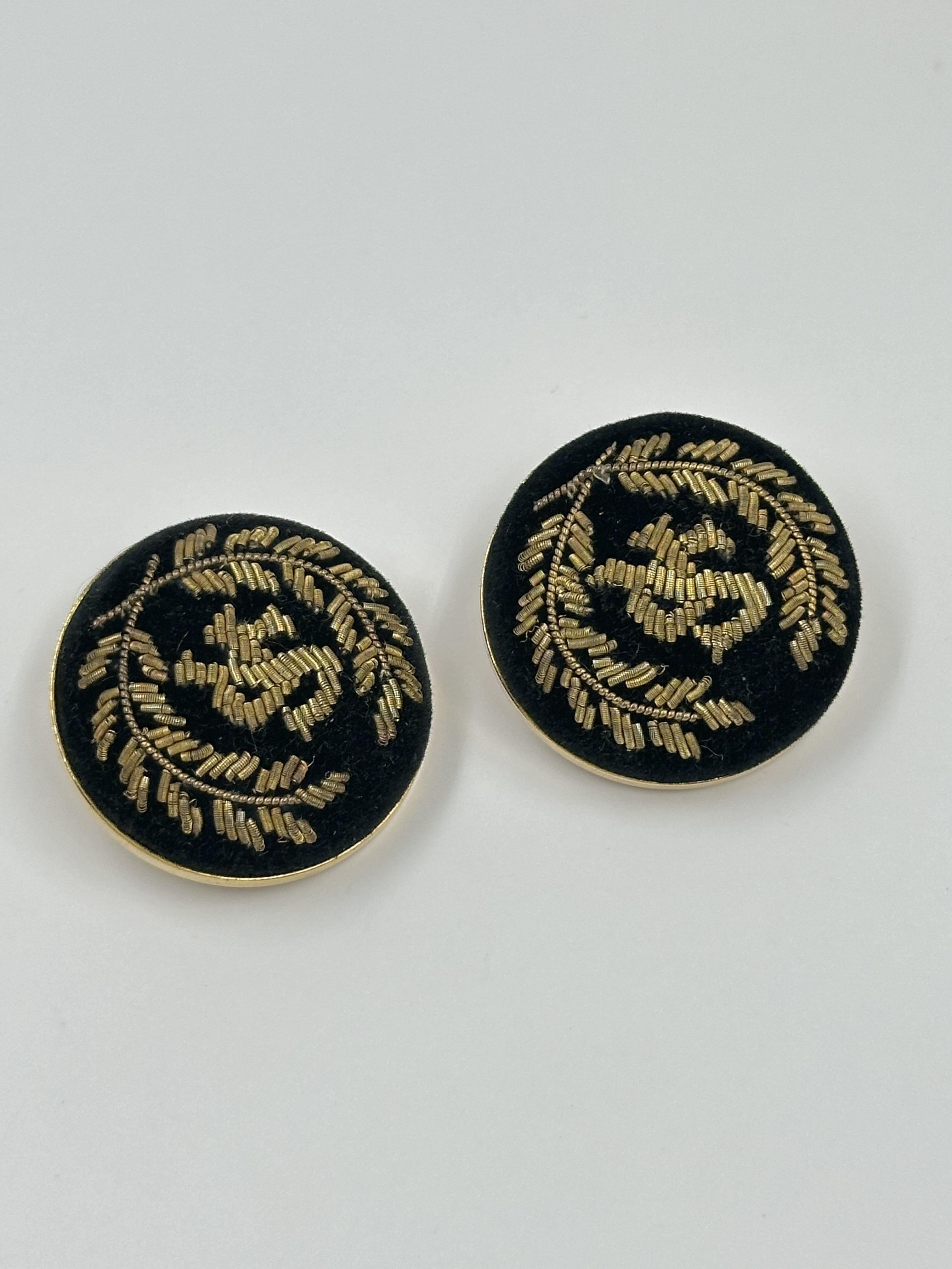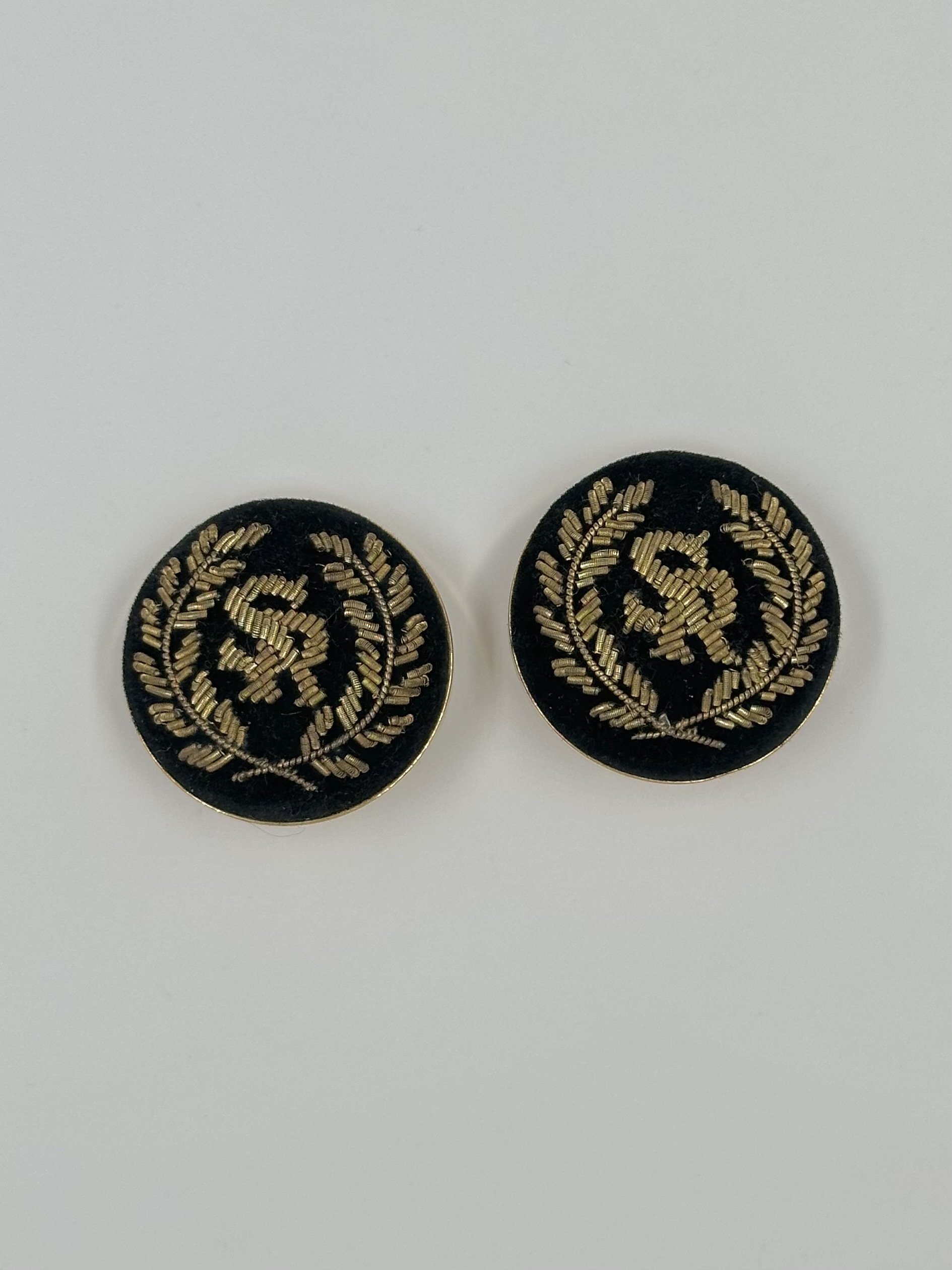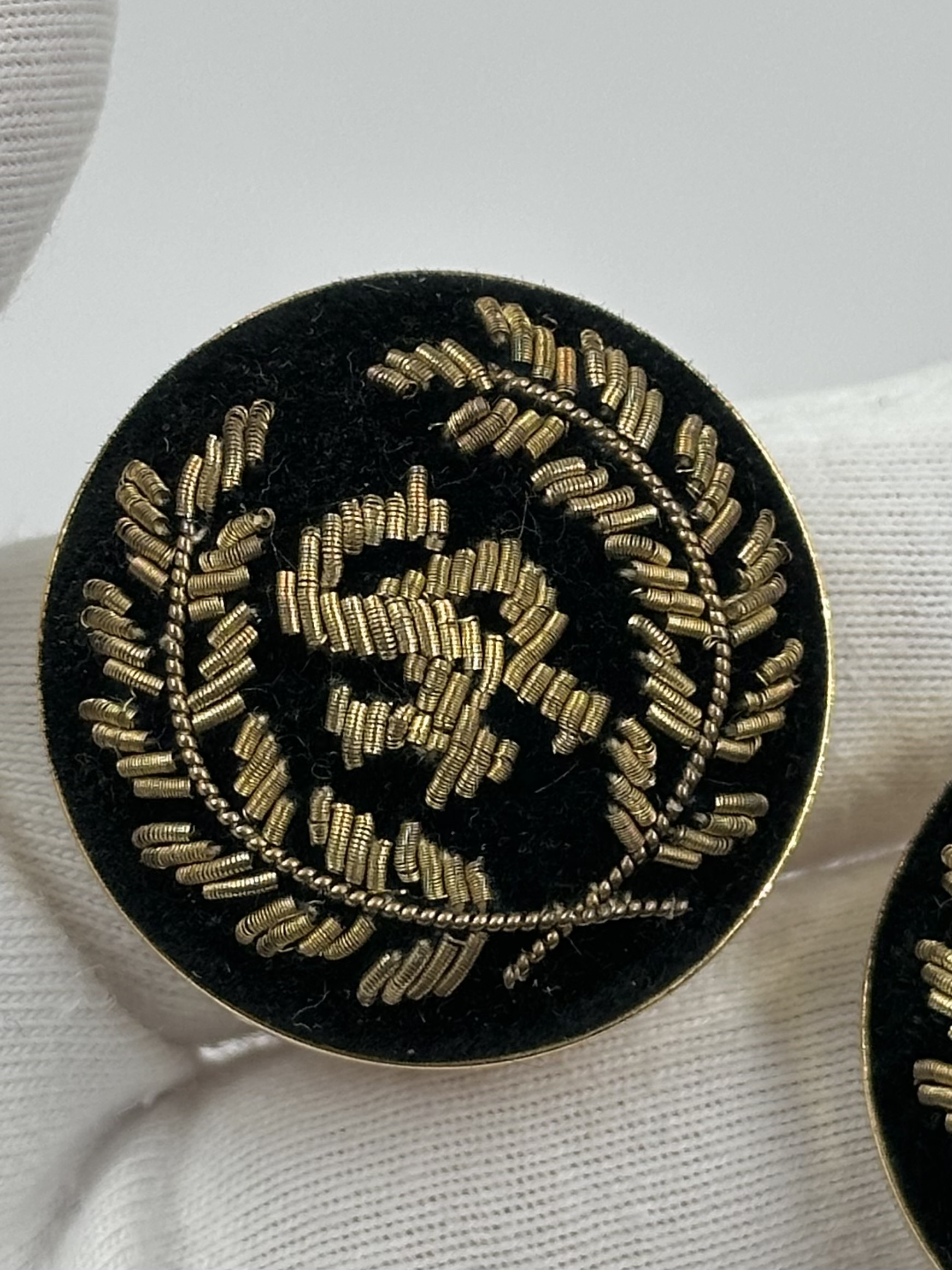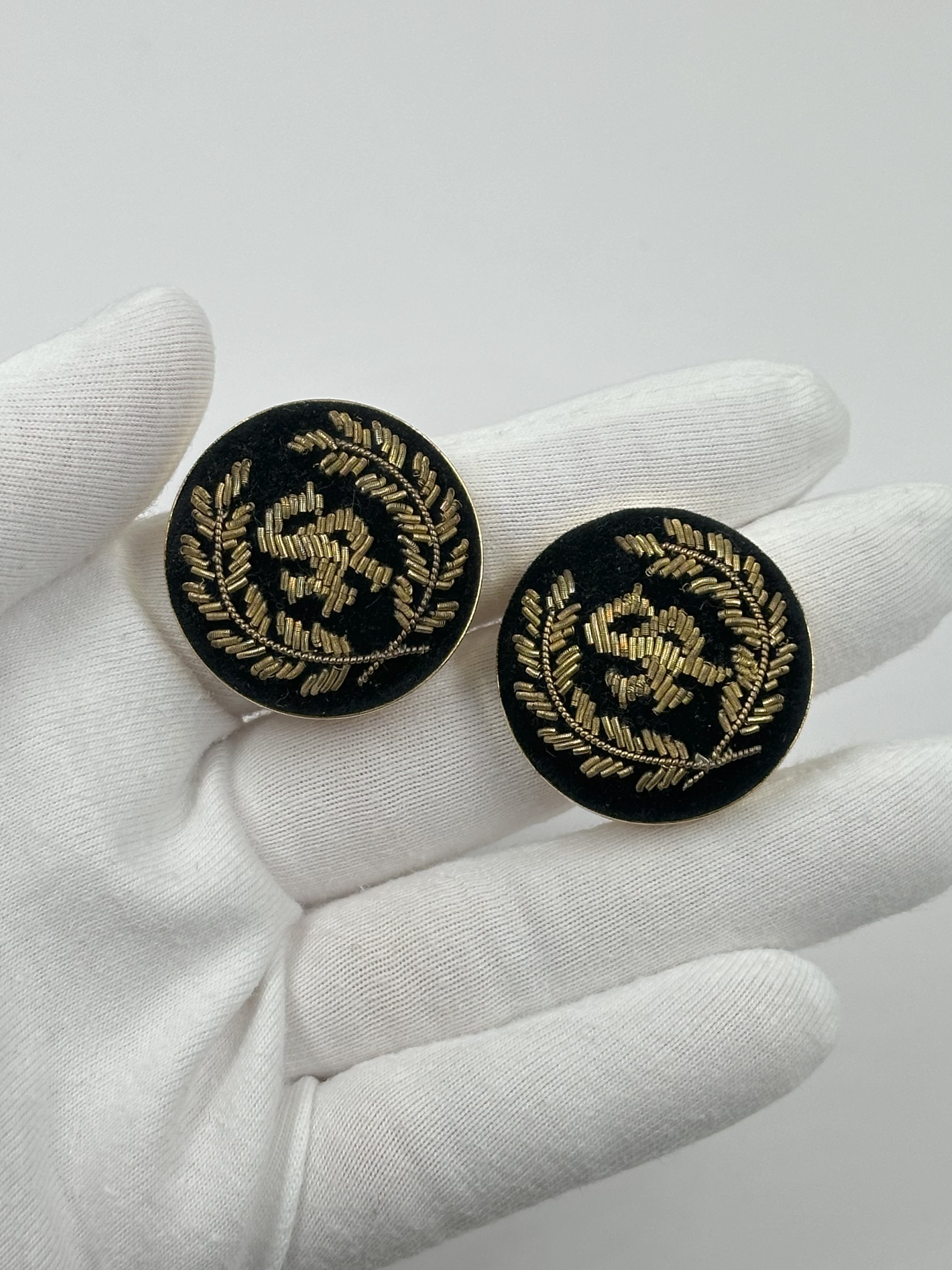 Бижутерный сплав, позолота, текстиль, канитель. Размер 2,9см.