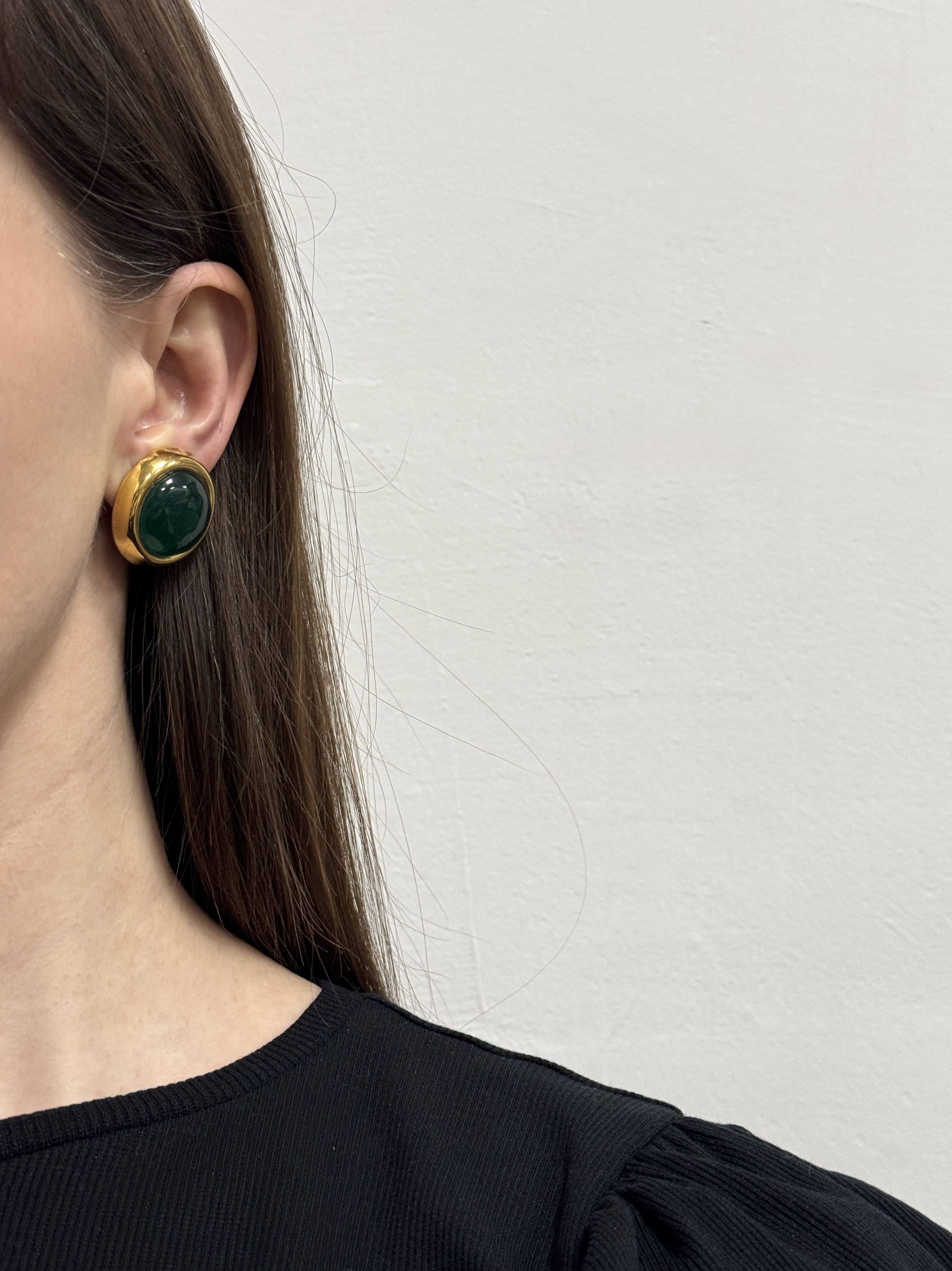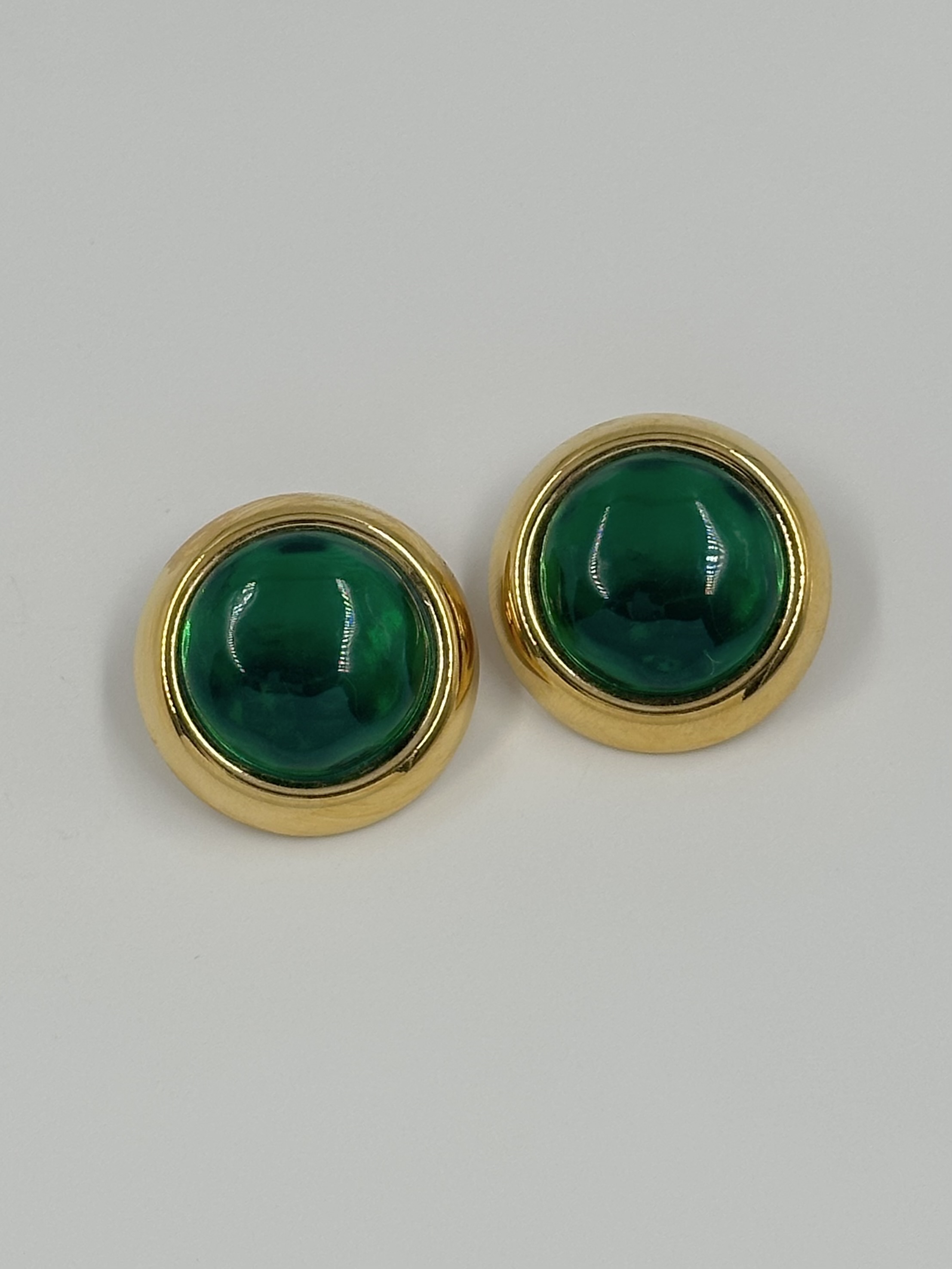 Бижутерный сплав, позолота, пластик. Присутствует патина с обратной стороны и небольшая на ободке. Размер 2,9см.