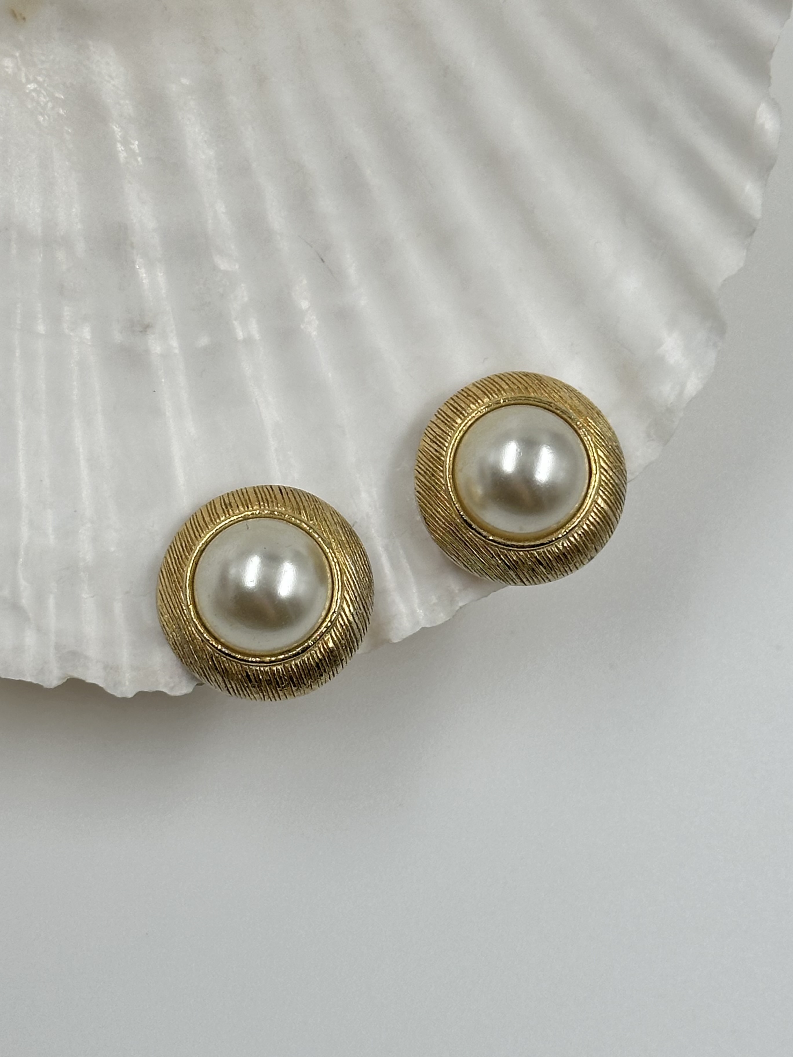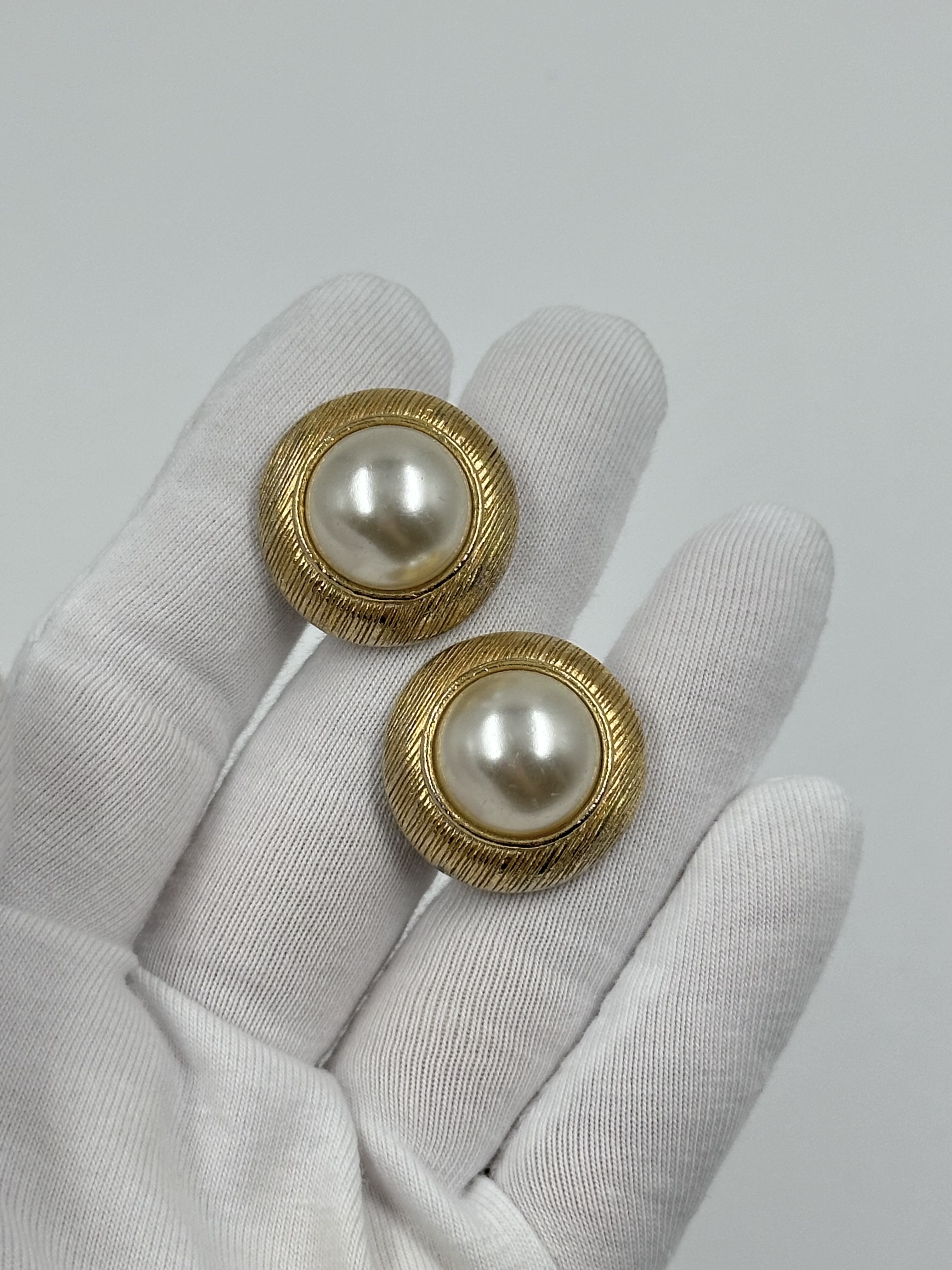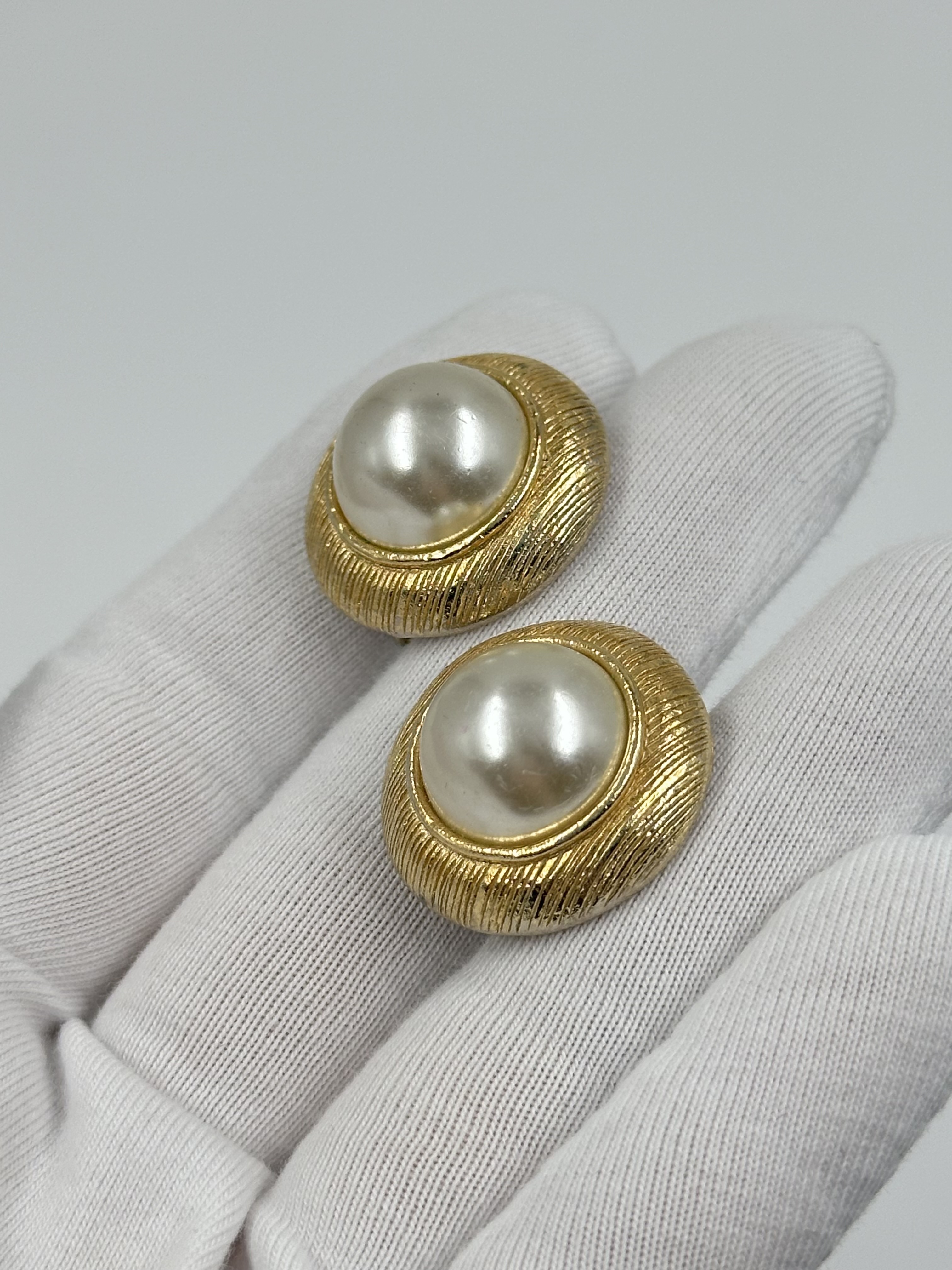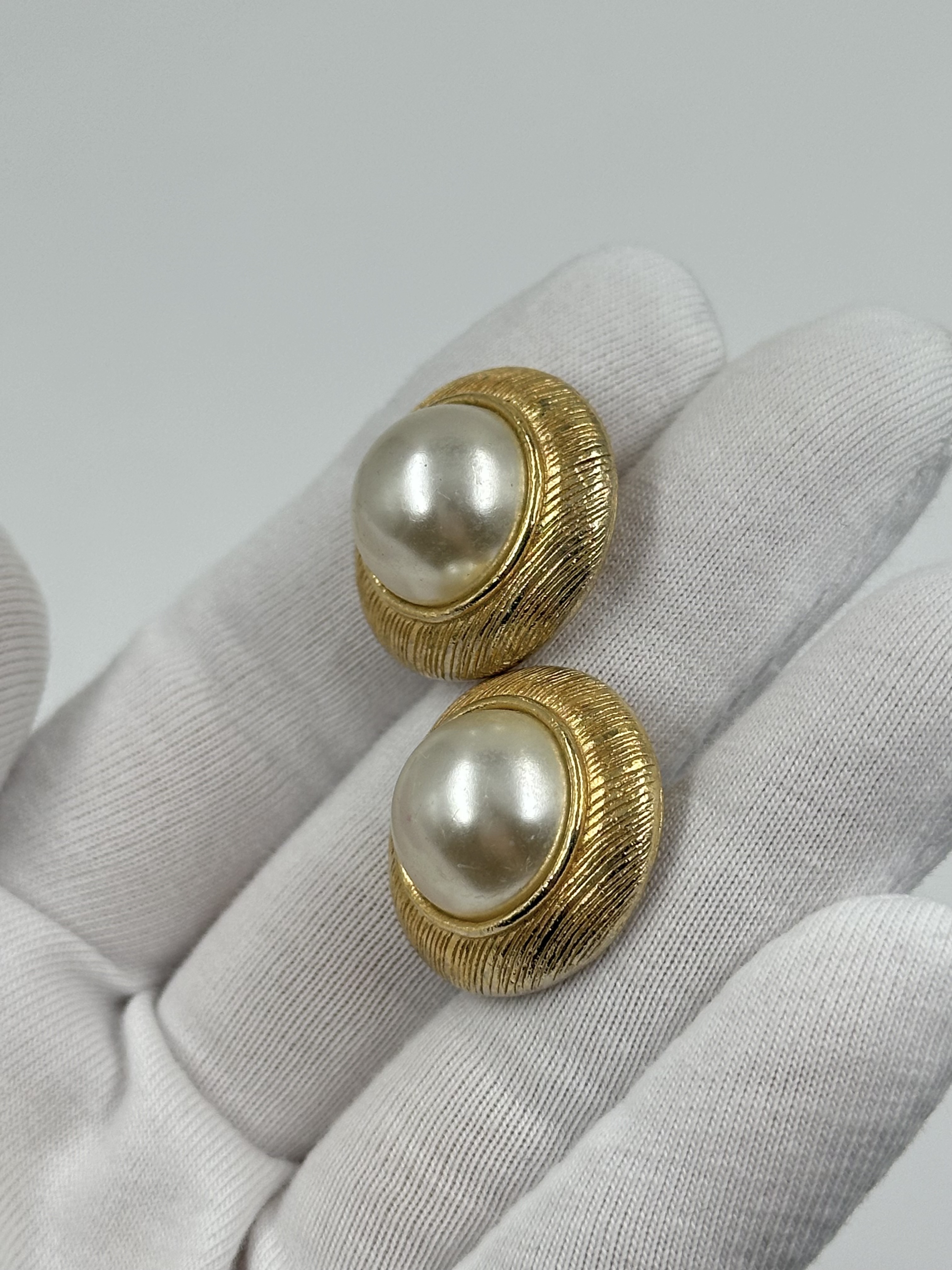 Бижутерный сплав, имитация жемчуга. Присутствуют потертости.