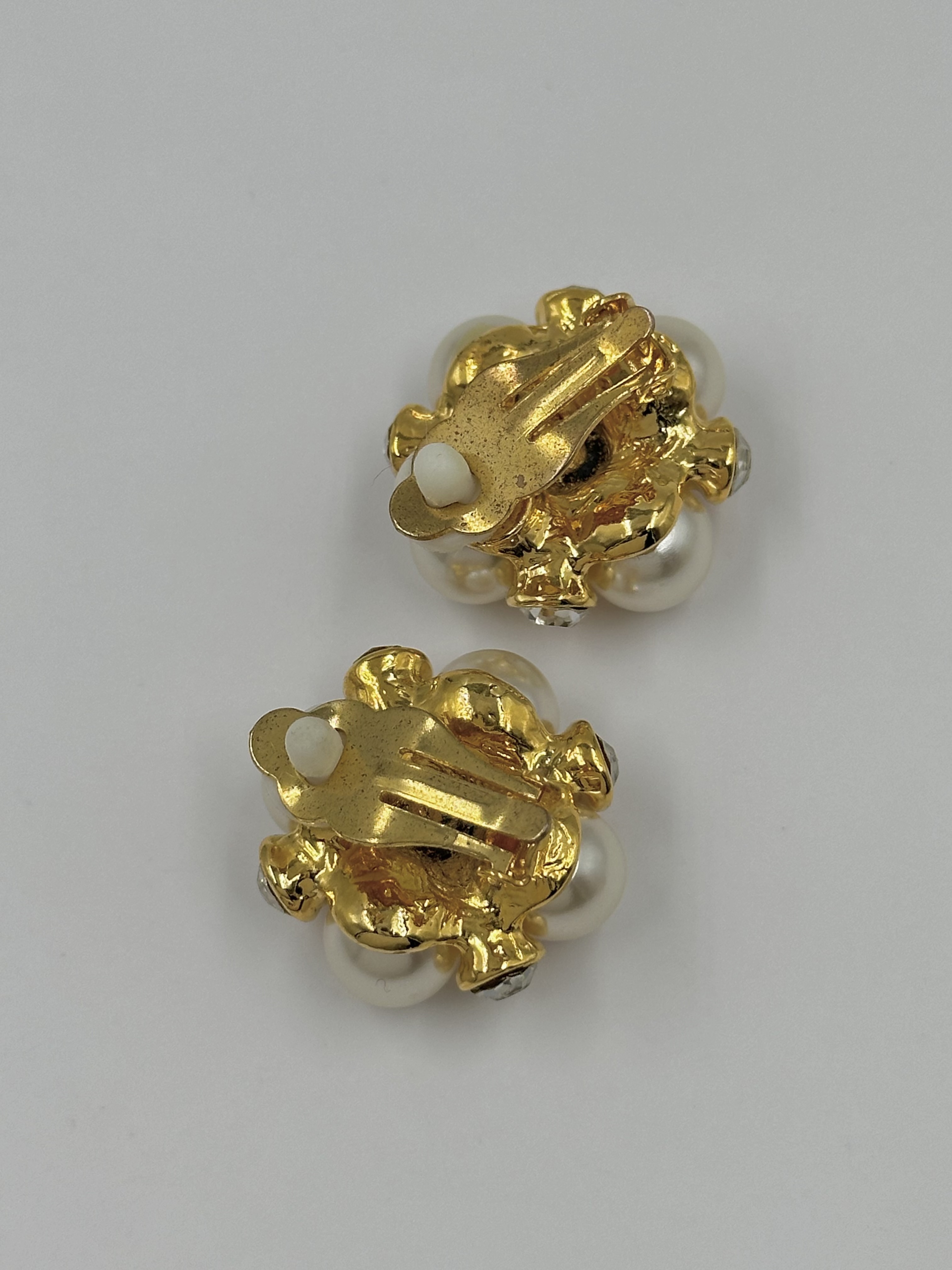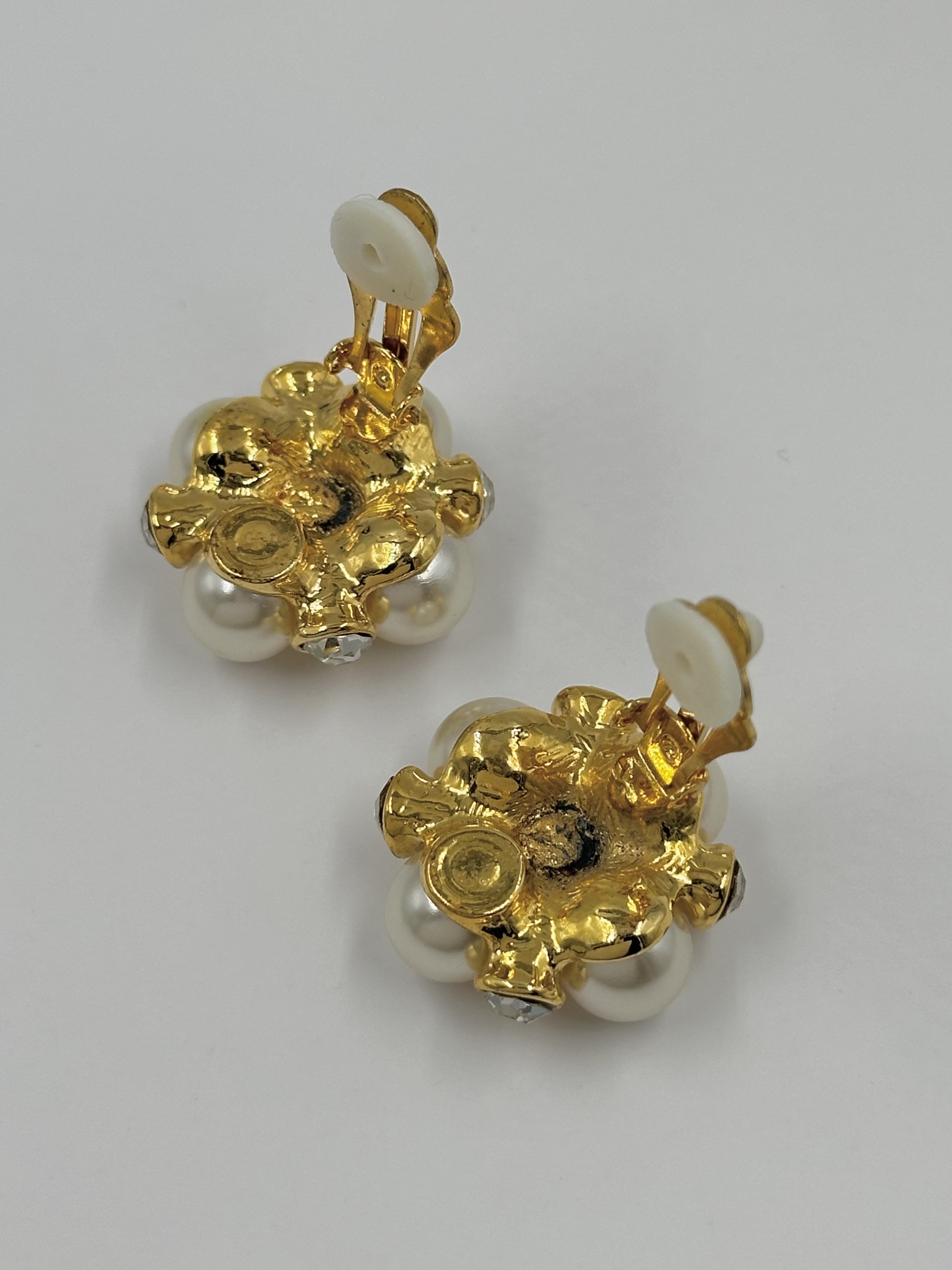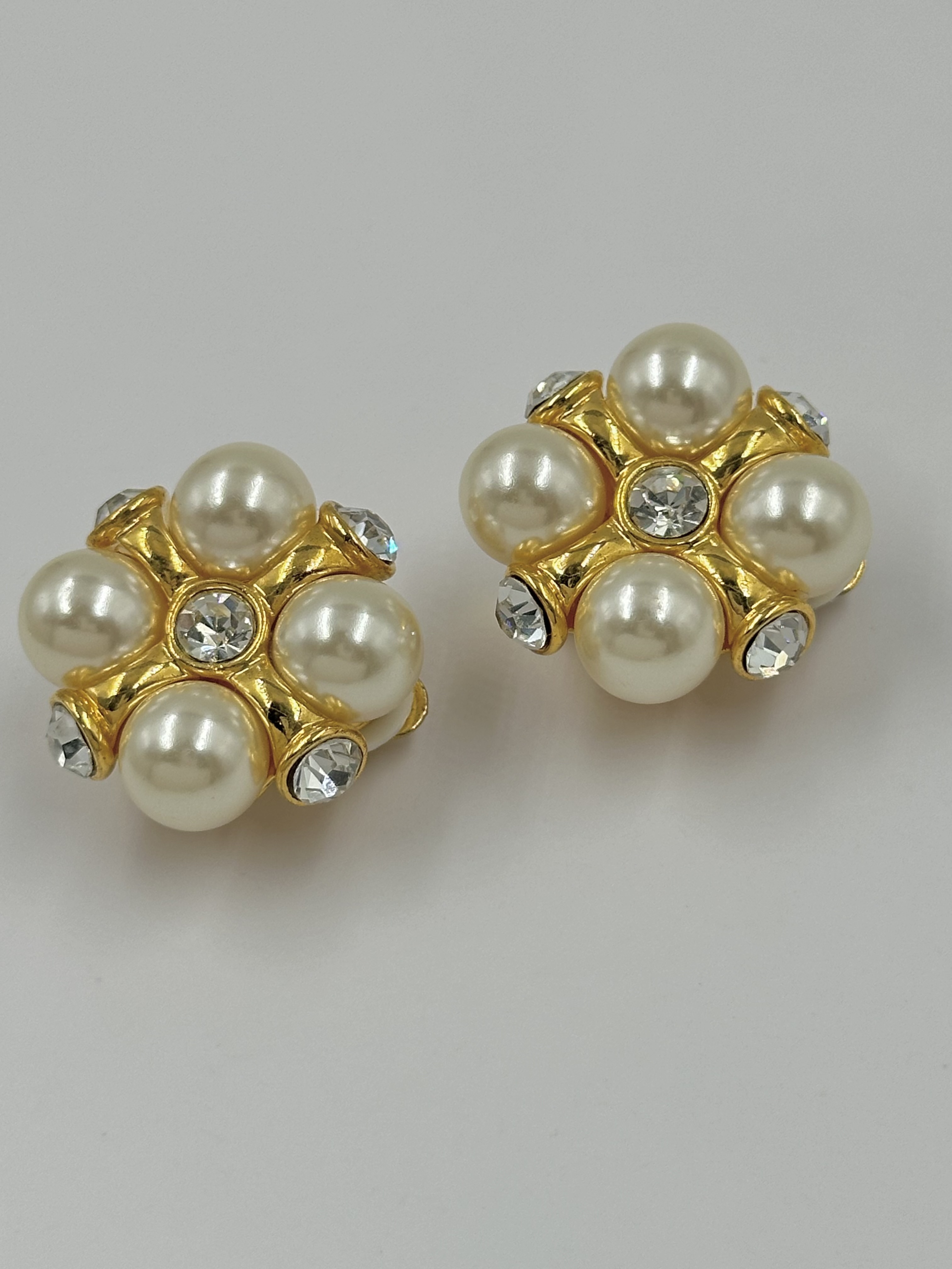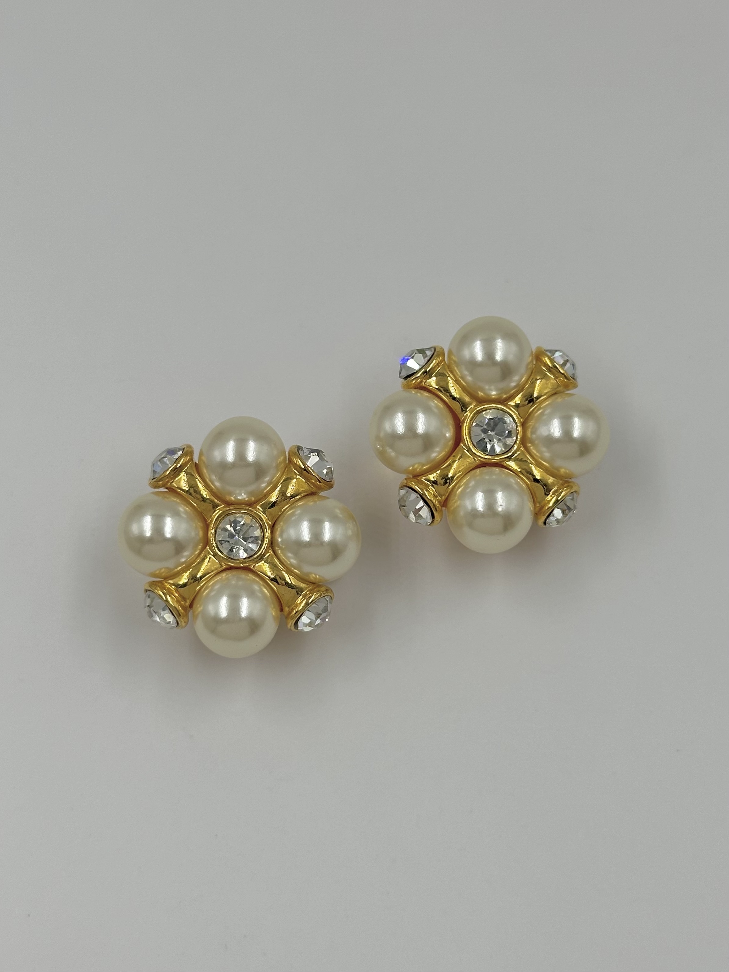 Бижутерный сплав, кристаллы, имитация жемчуга. Присутствует небольшая патина с обратной стороны. Размер 2,6см.