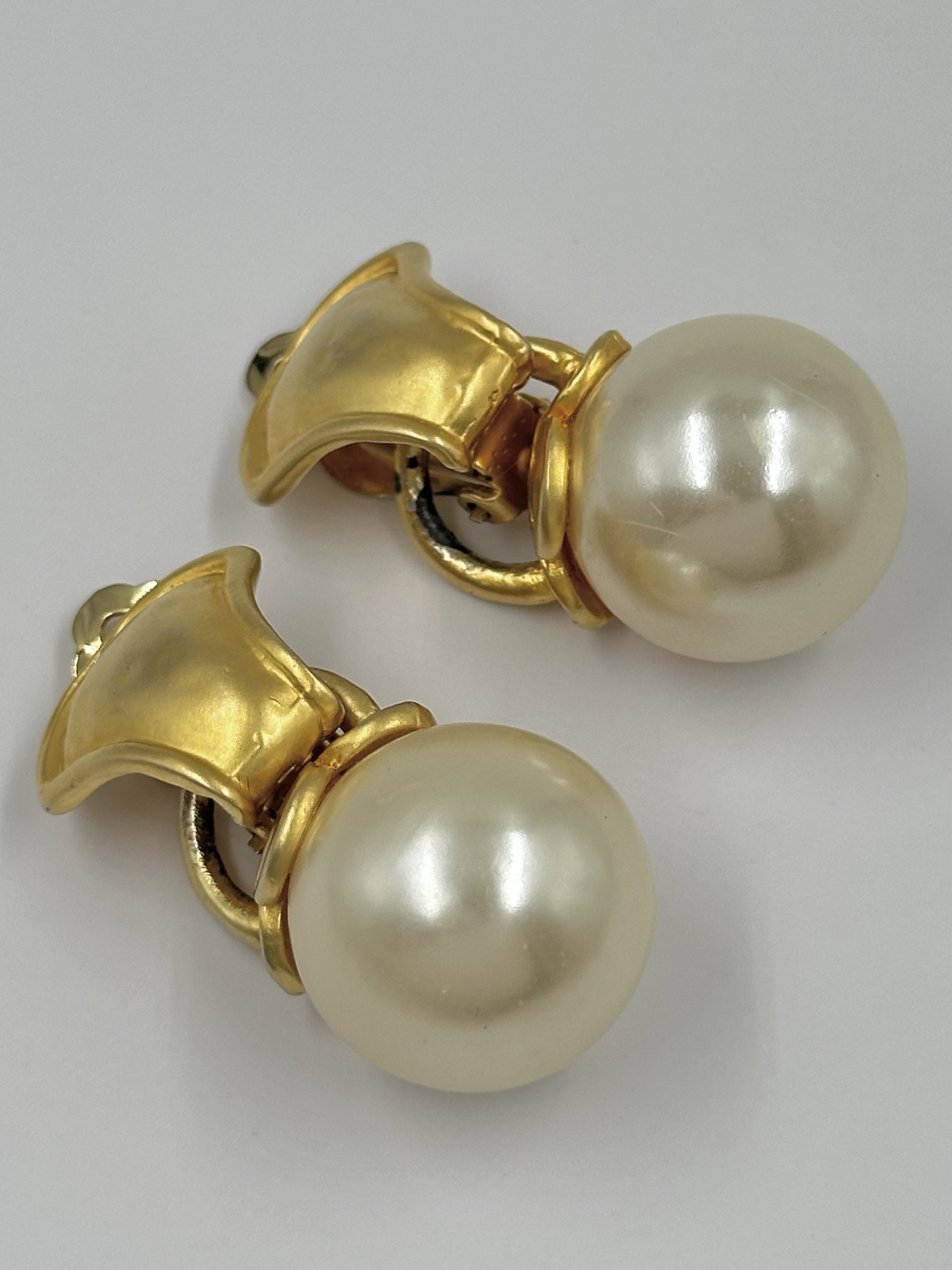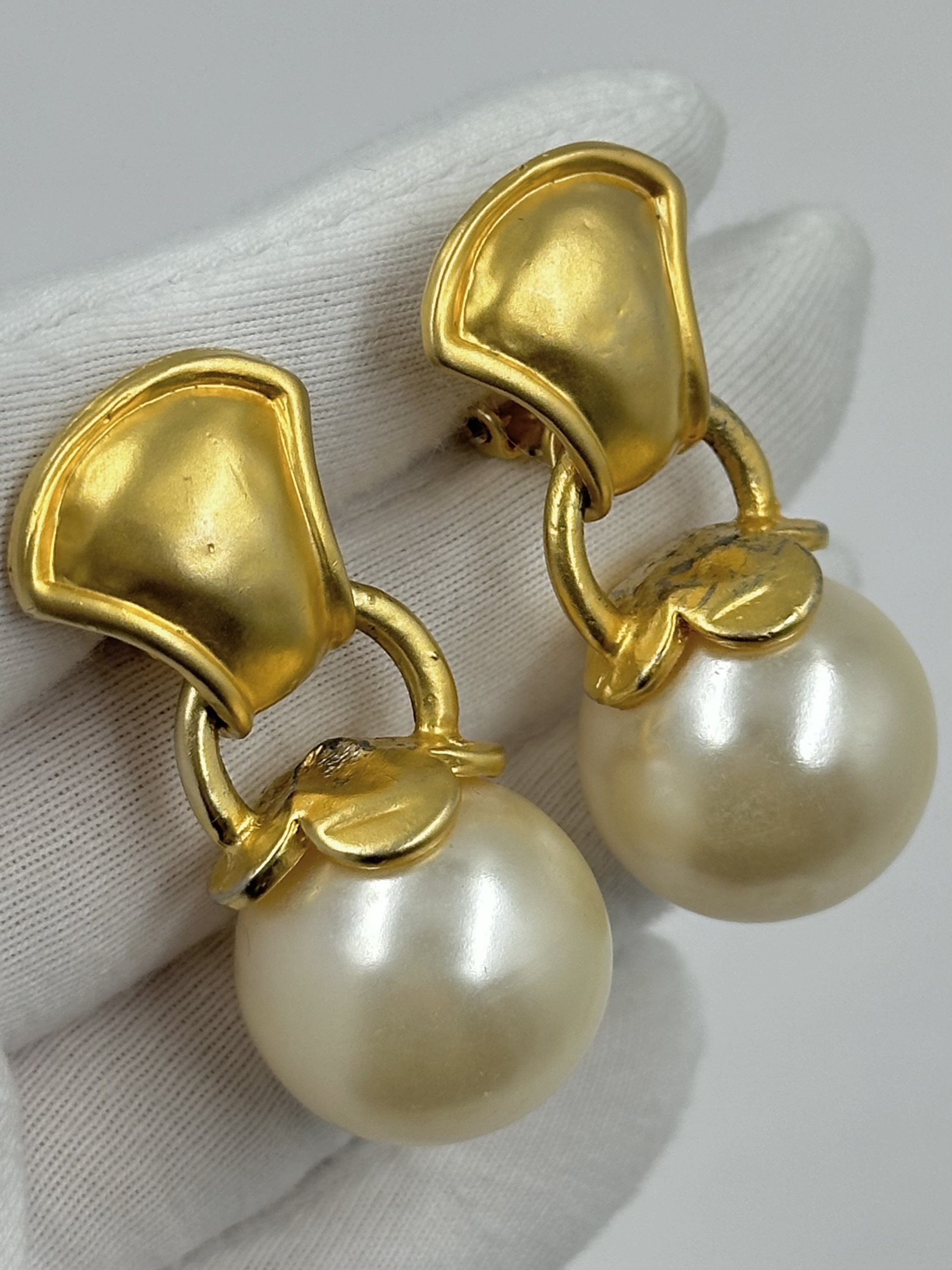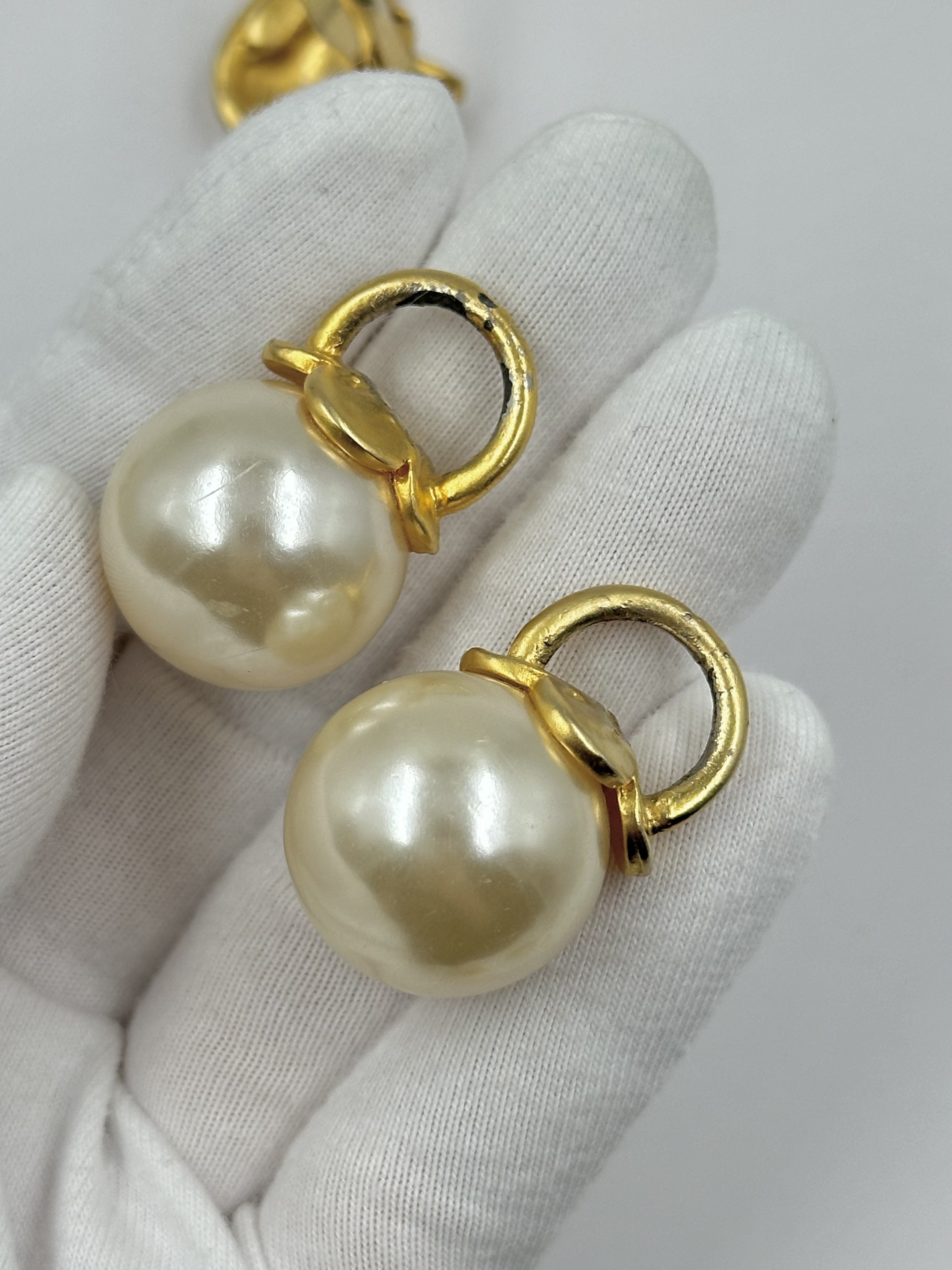 Бижутерный сплав, пластик. Присутствуют сколы покрытия, небольшие царапины на бусинах. Размер в длину 4,3см.